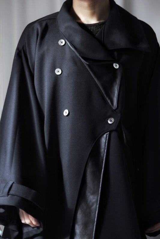 wool × leather layered coat