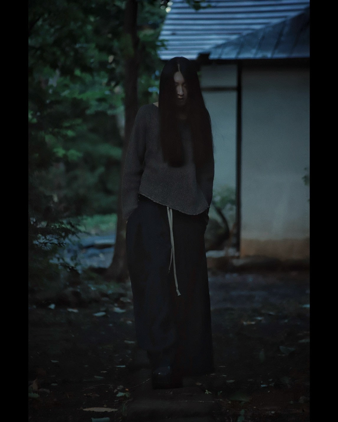右足はテーパードに、左足はスリットの入ったフレアに。