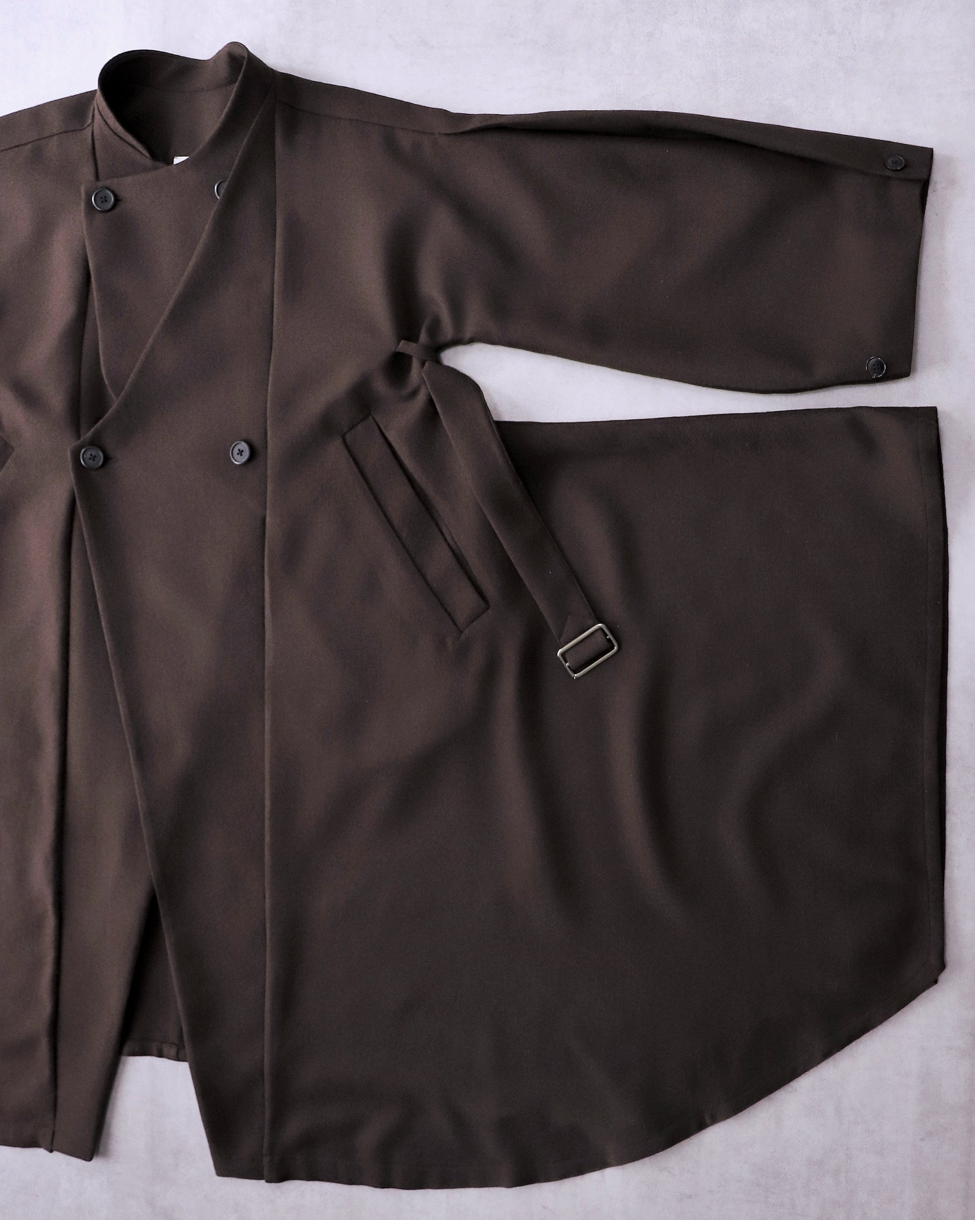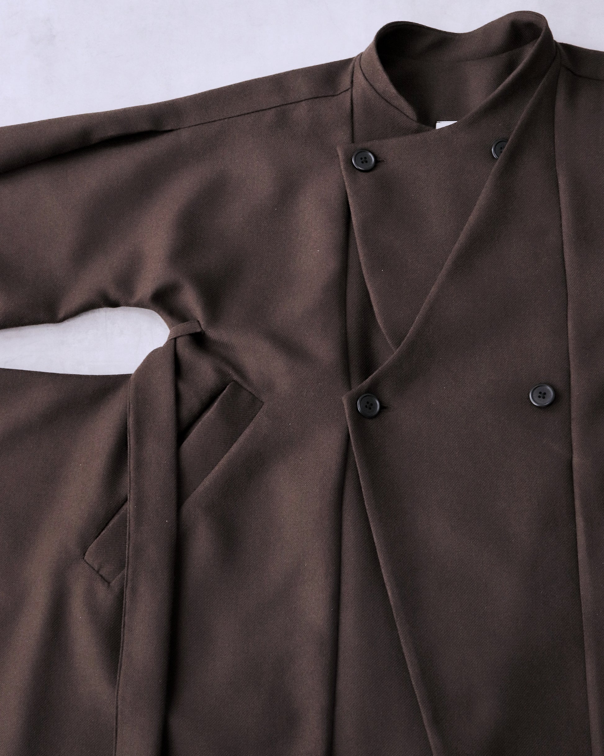 大振りな衿は、立てる、倒す、挟み込むの三様の遊び方が可能です。