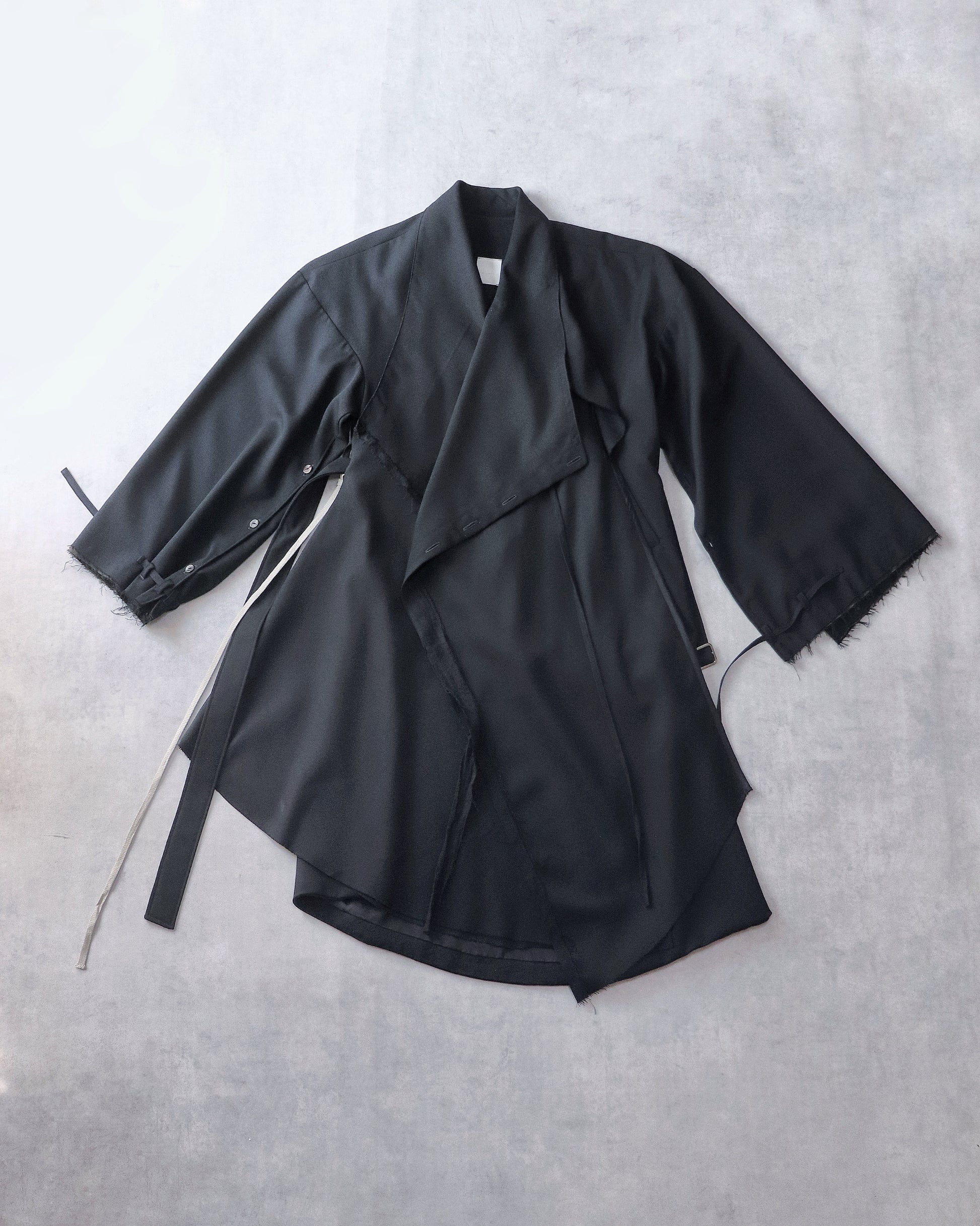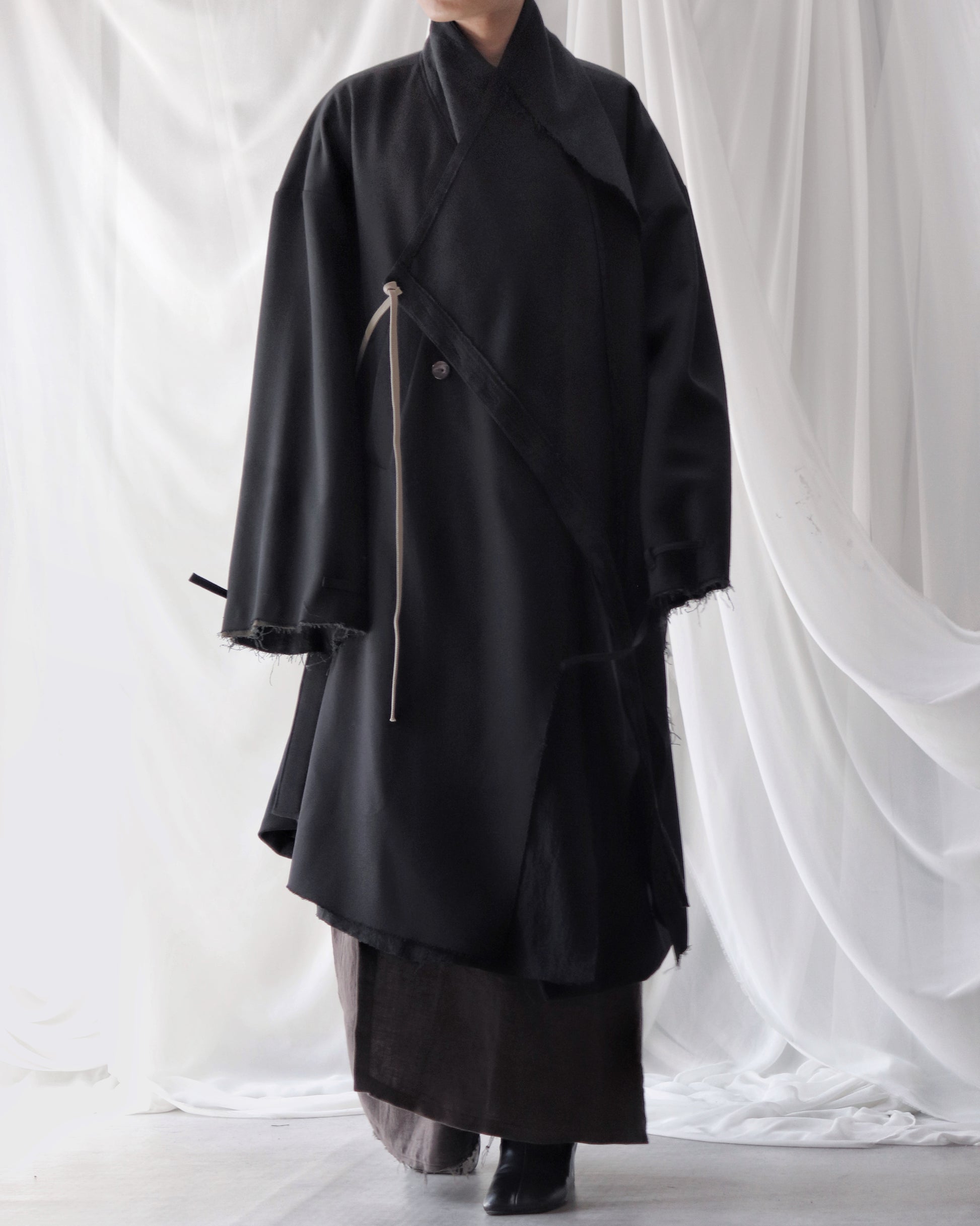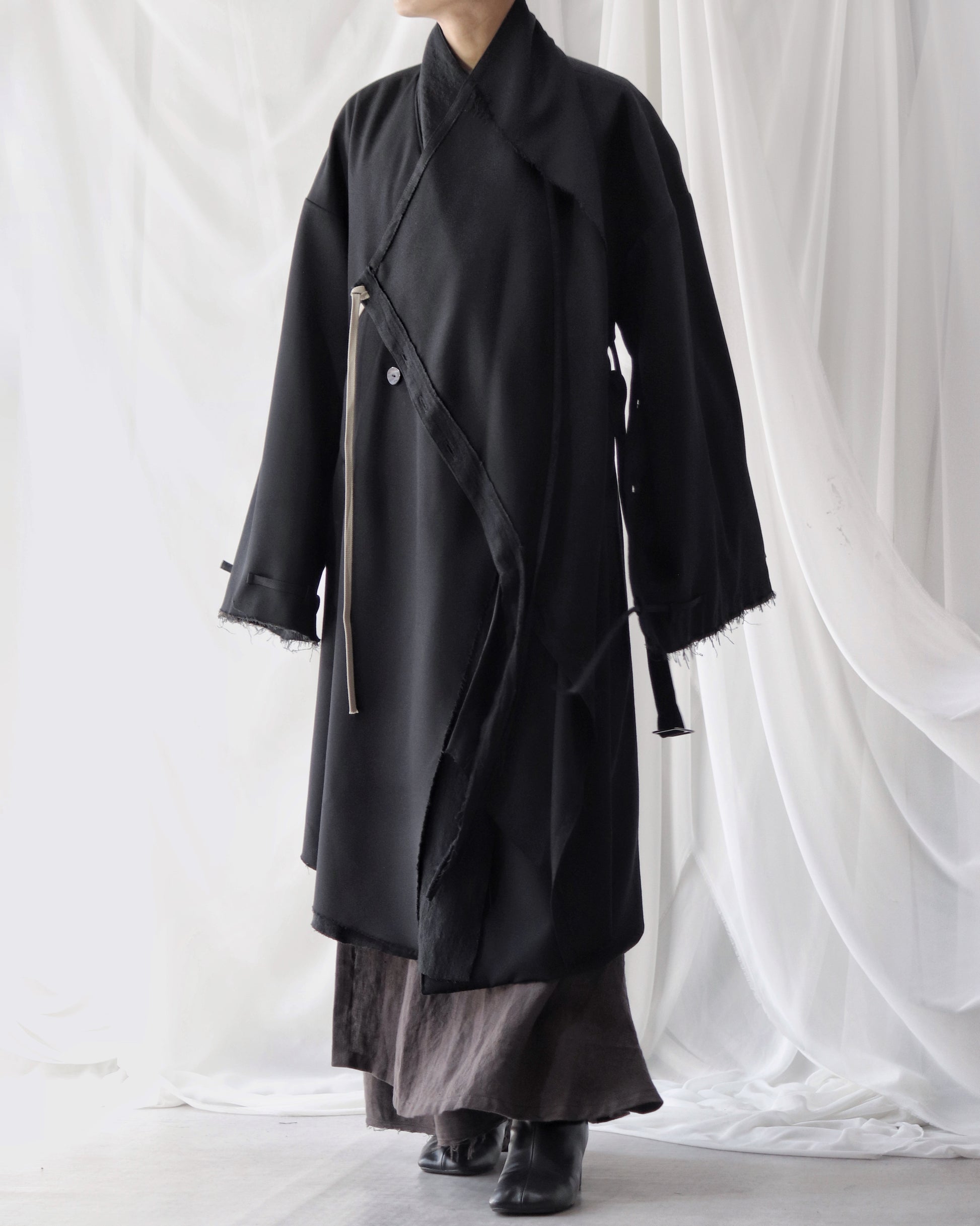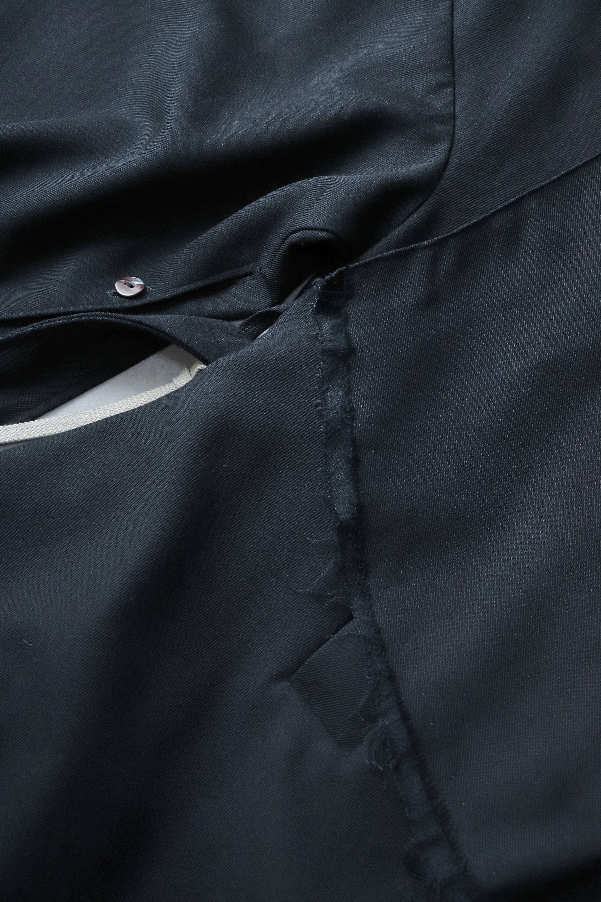 同じく右前身頃もウールと麻の2重の切りっぱなしとなります。
