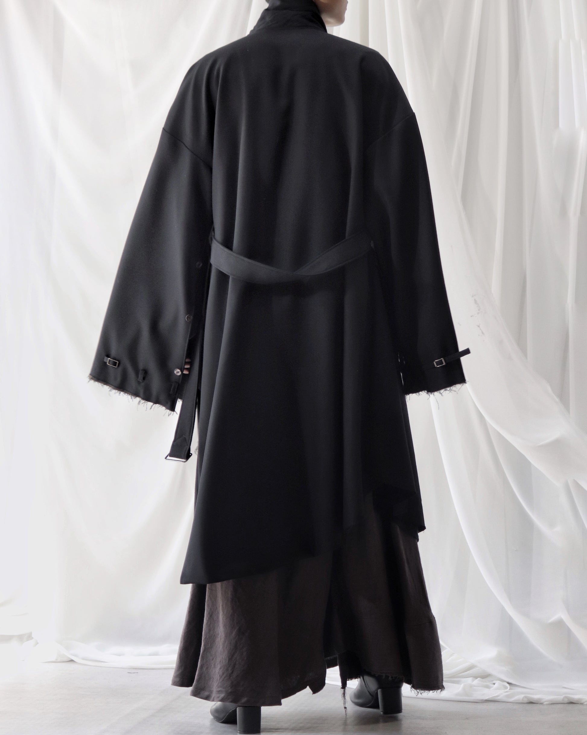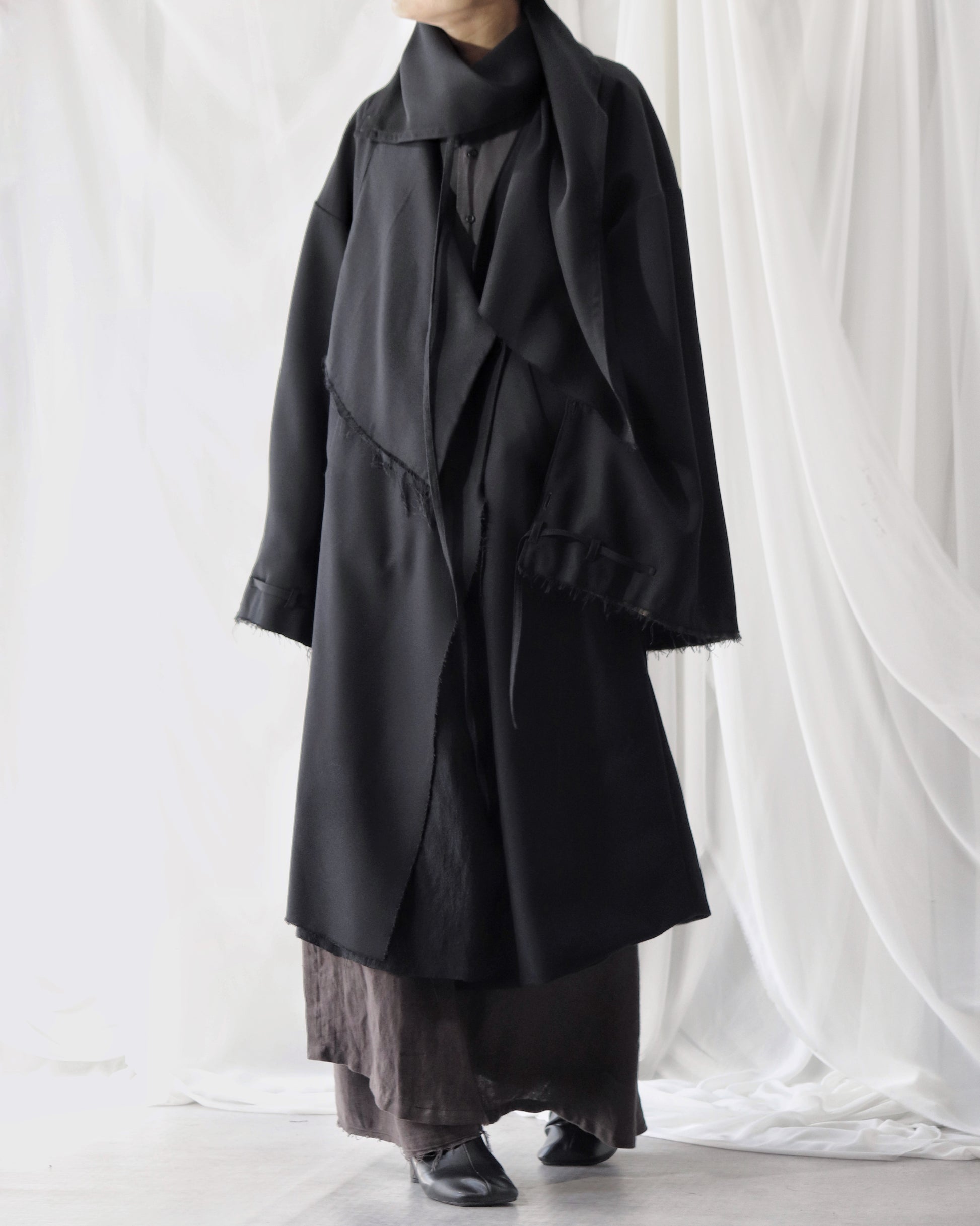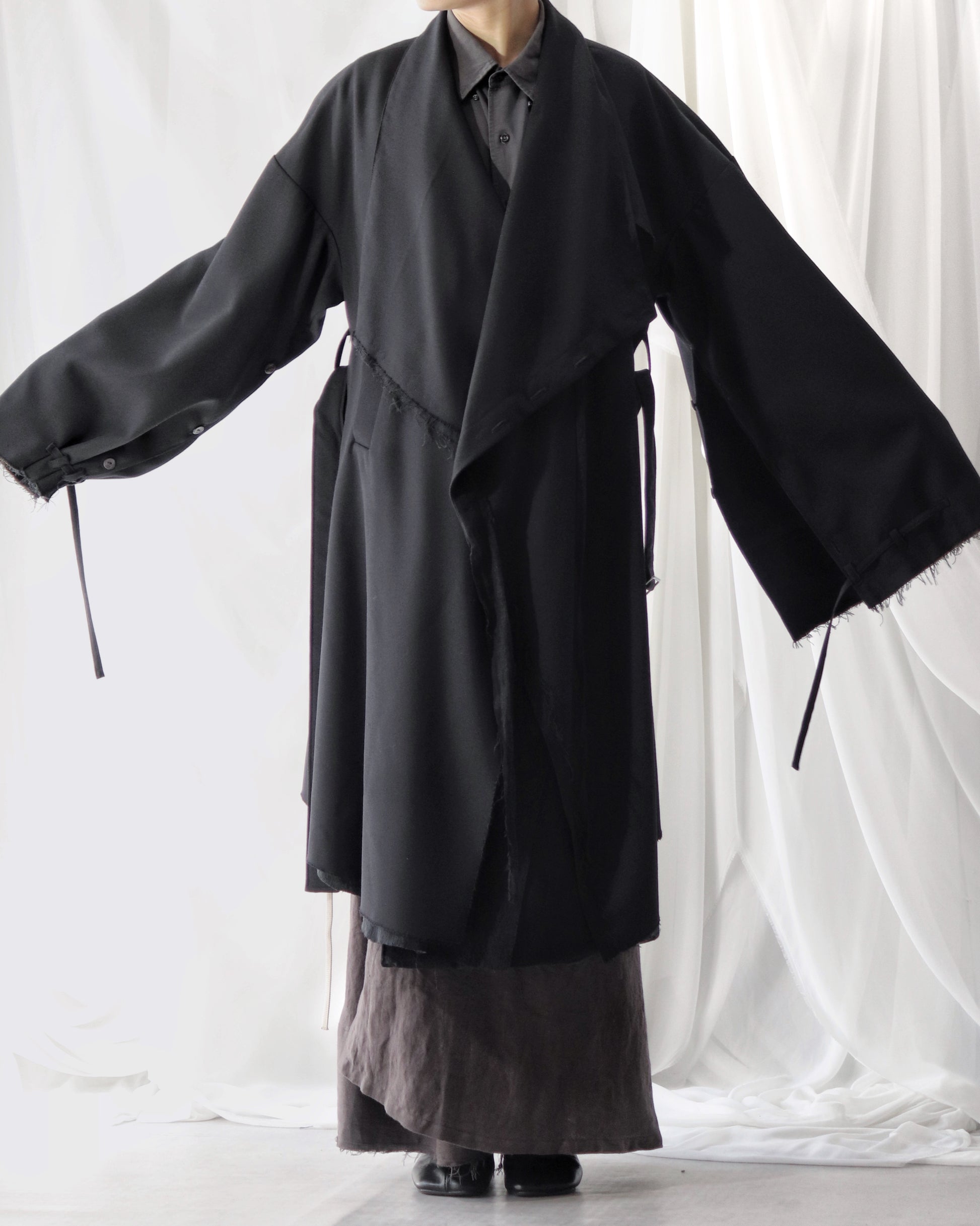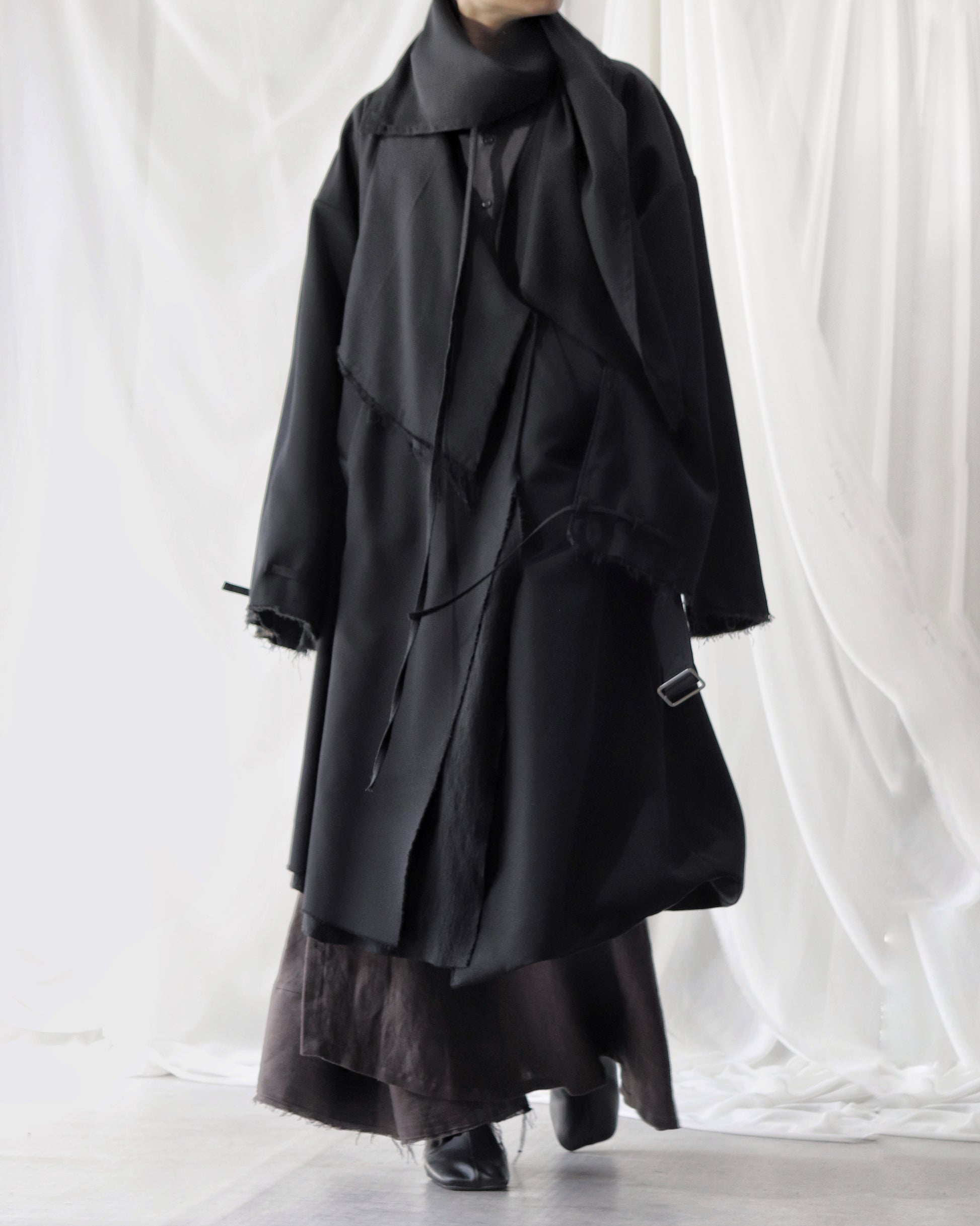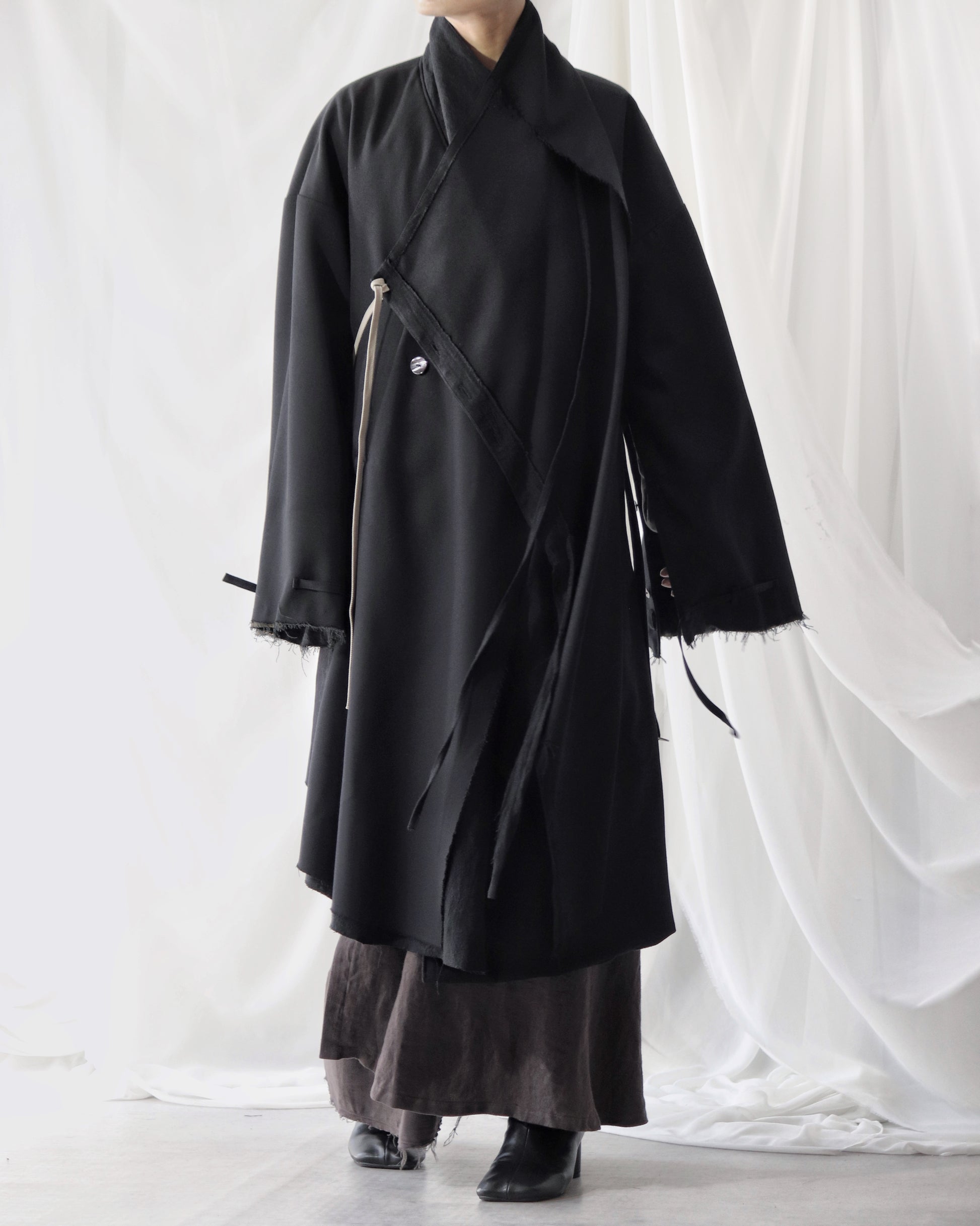 同じく右前身頃もウールと麻の2重の切りっぱなしとなります。