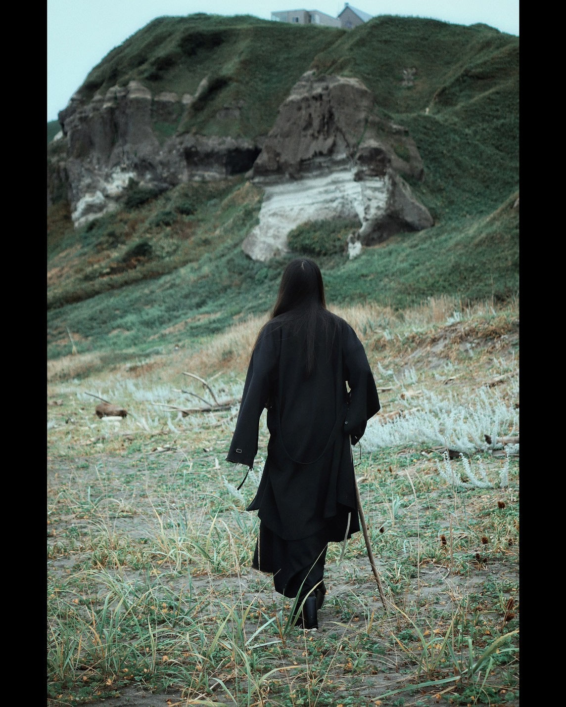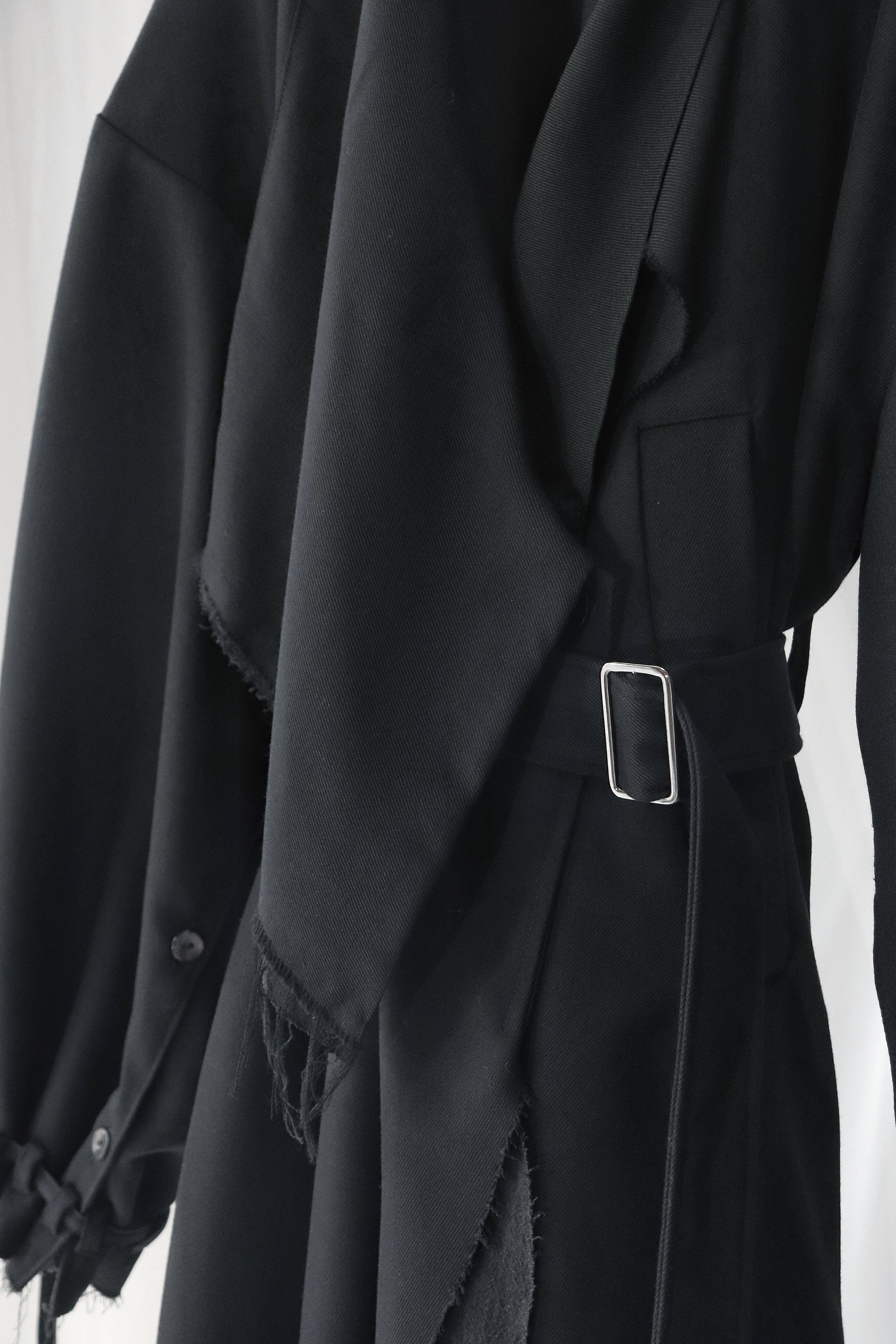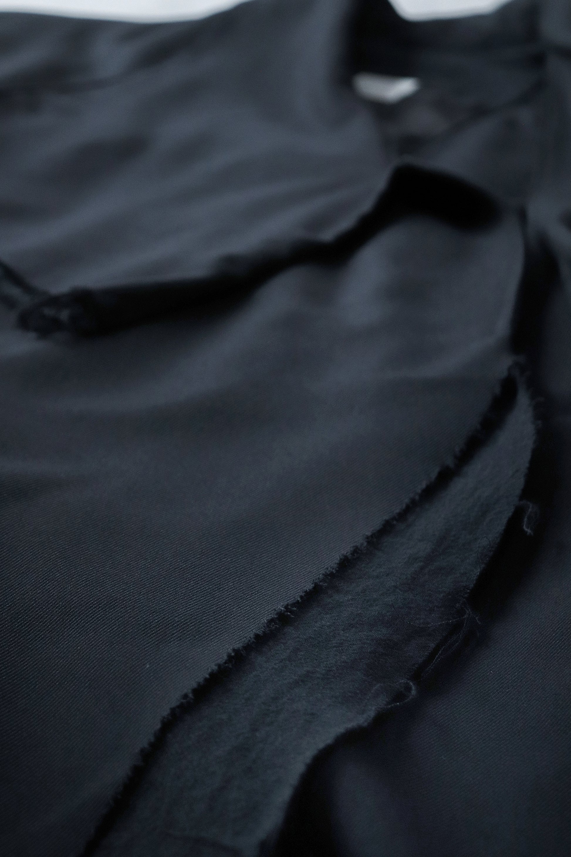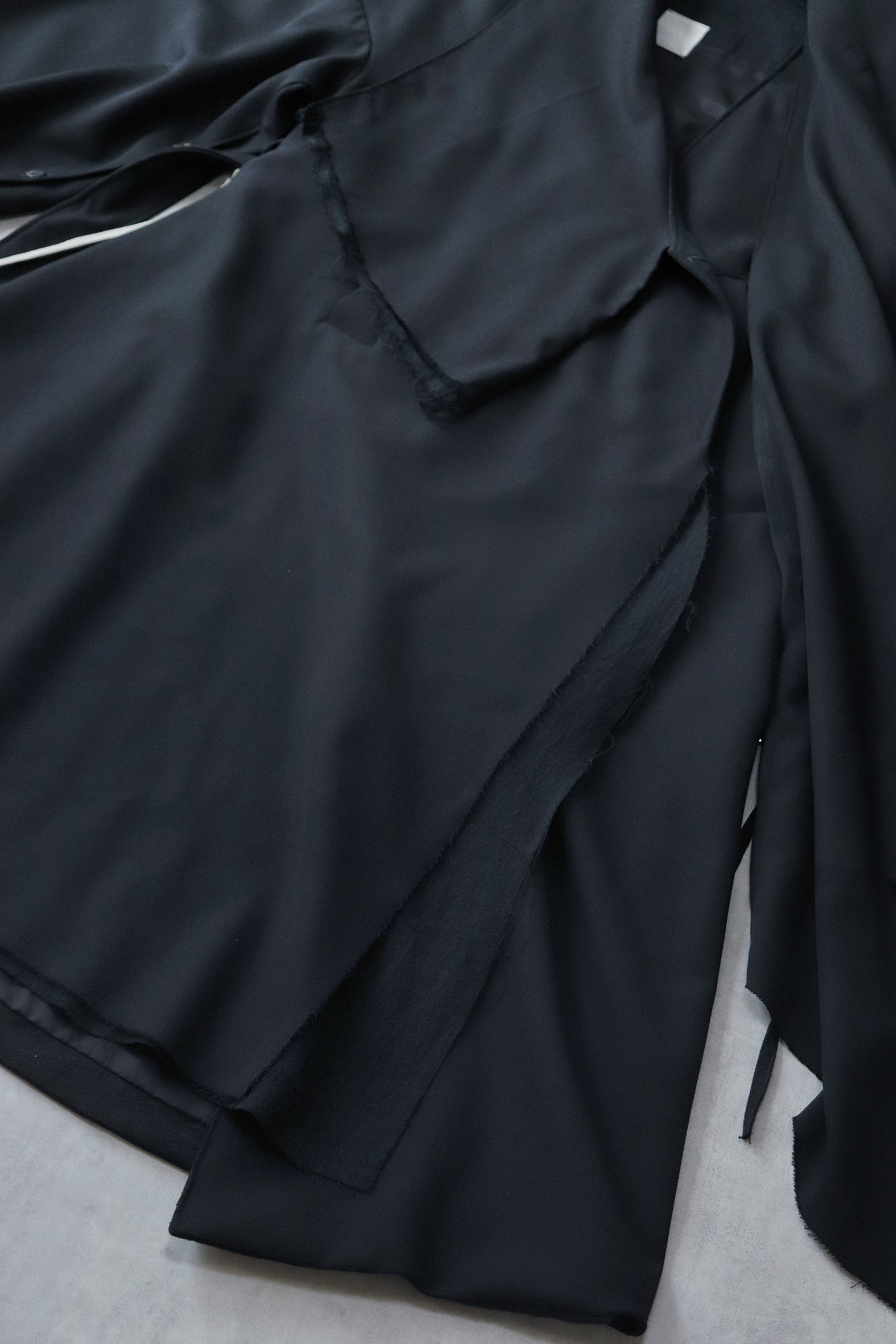 同じく右前身頃もウールと麻の2重の切りっぱなしとなります。