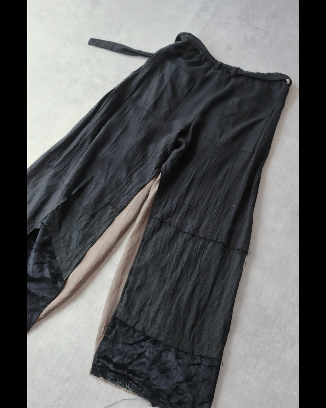 綿、綿麻、麻のハギレを繋ぎ合わせ、裁断して作りました。
