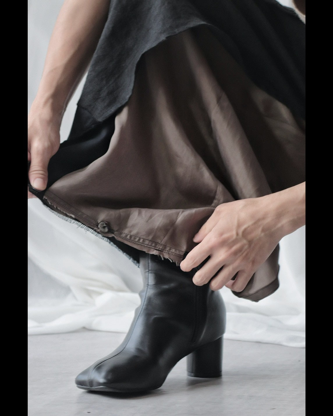 裾は2つのボタンを留めると細くなります。