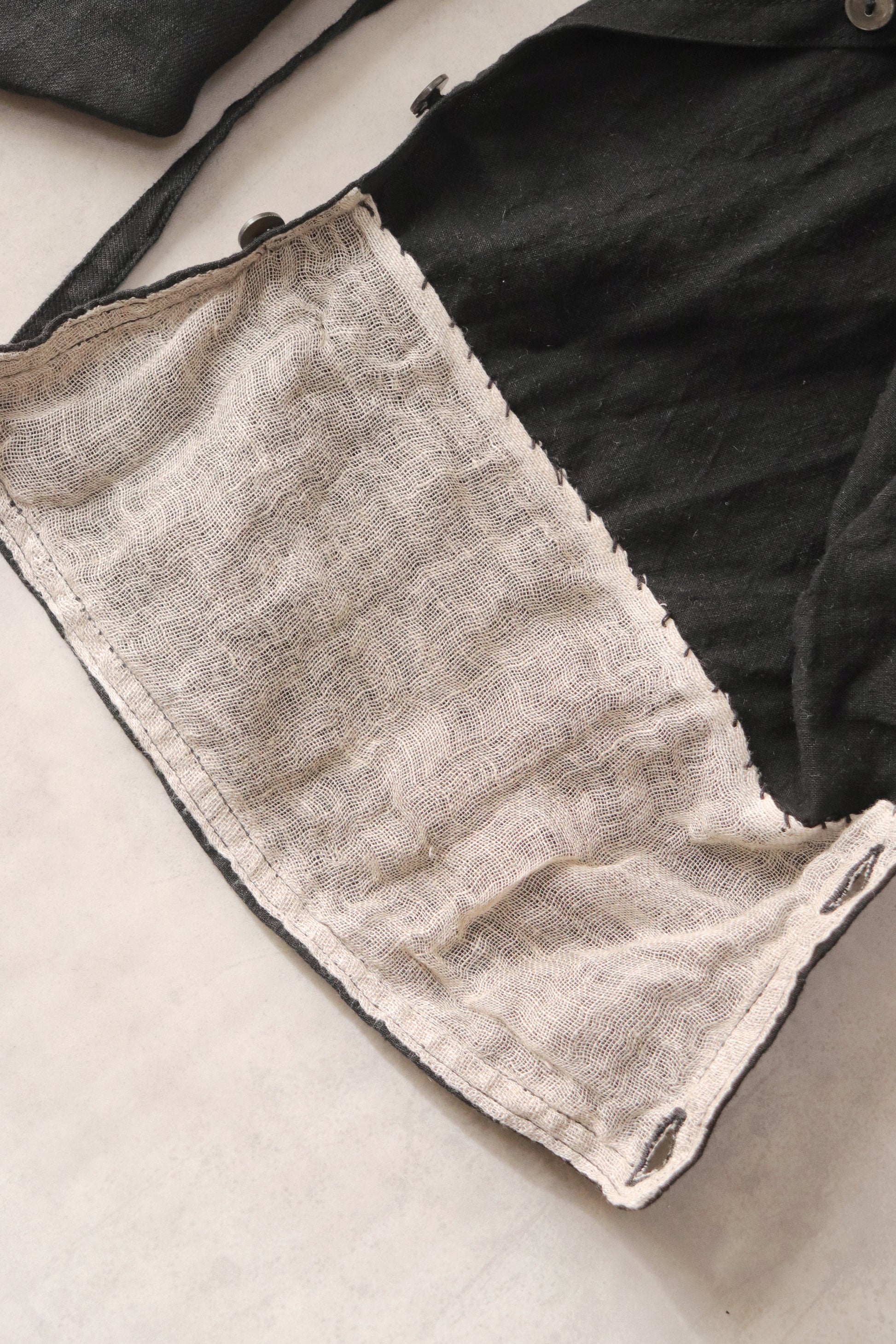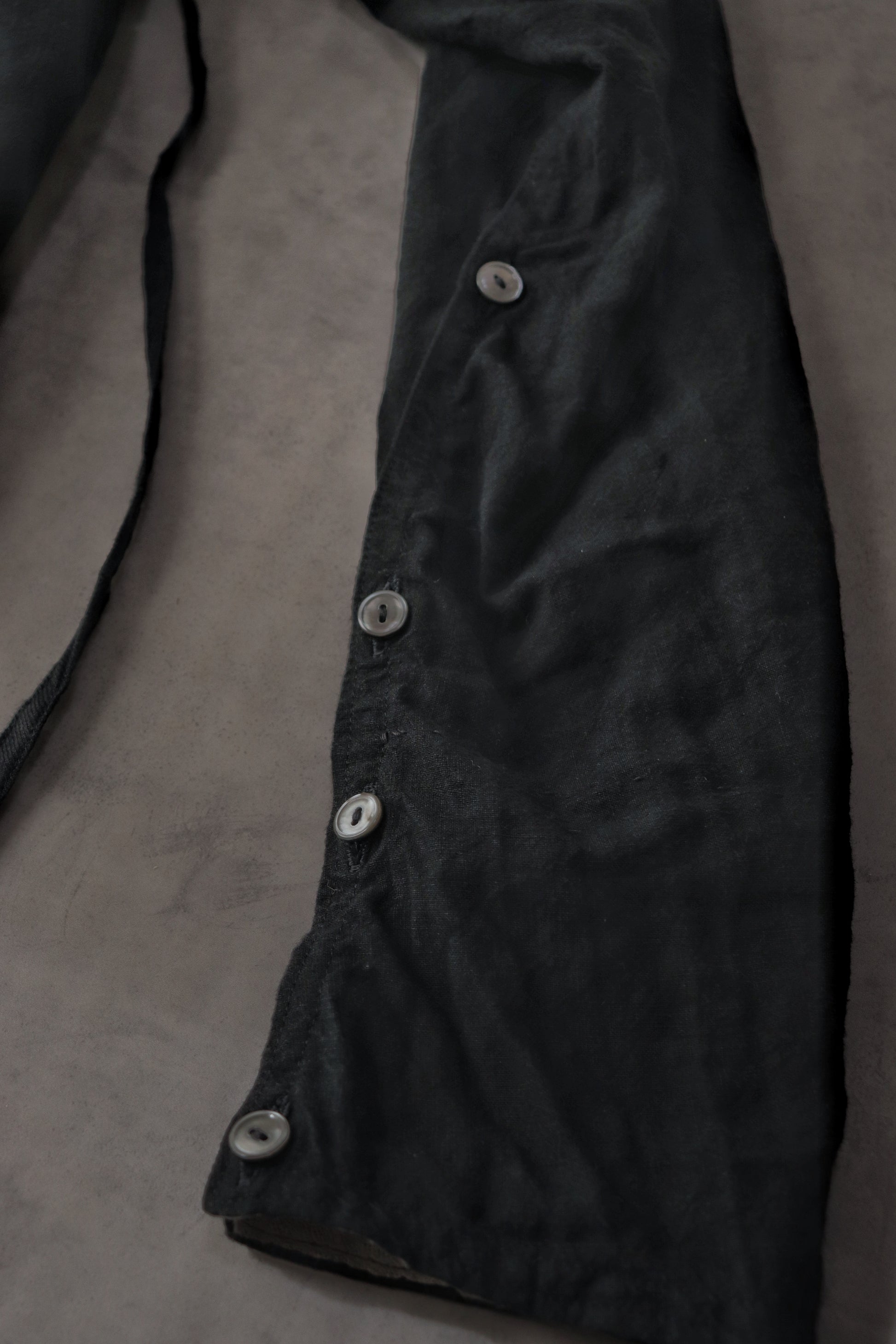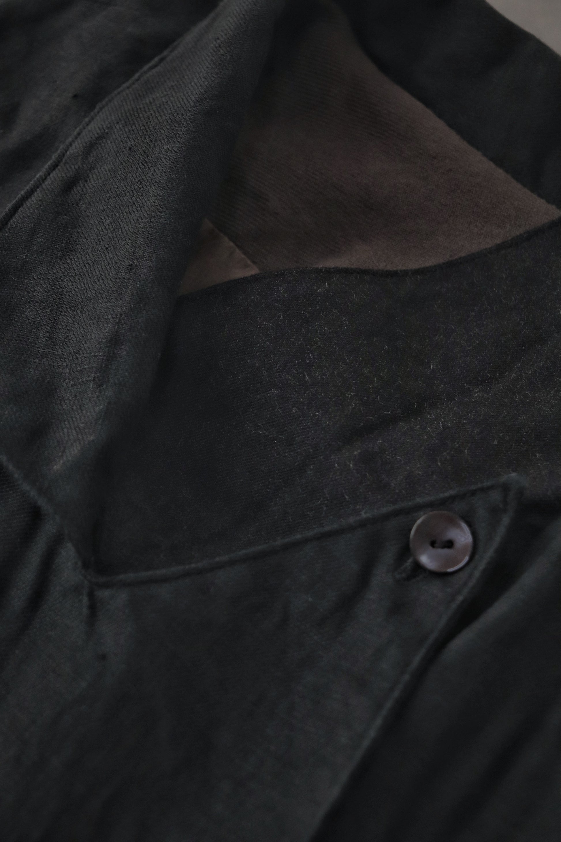 前表地と袖と表襟は異なる麻を、背面と裏襟は濃いグレーのウールを使用。それぞれ春~秋に適したやや薄い生地となります。