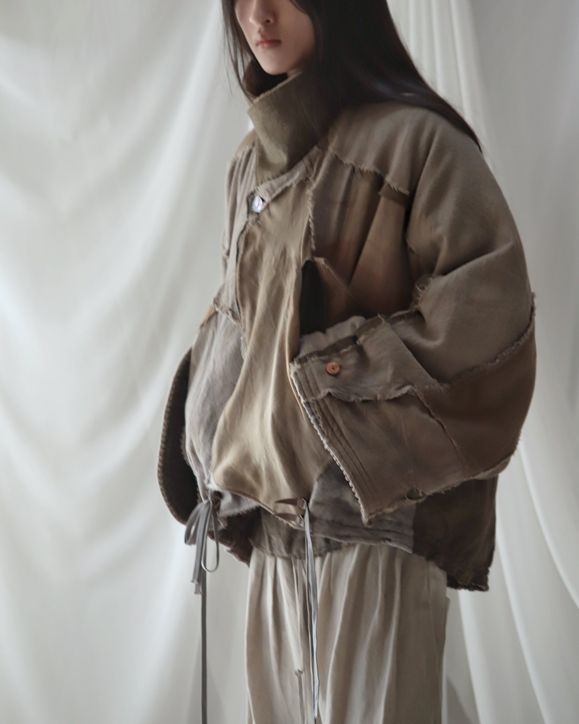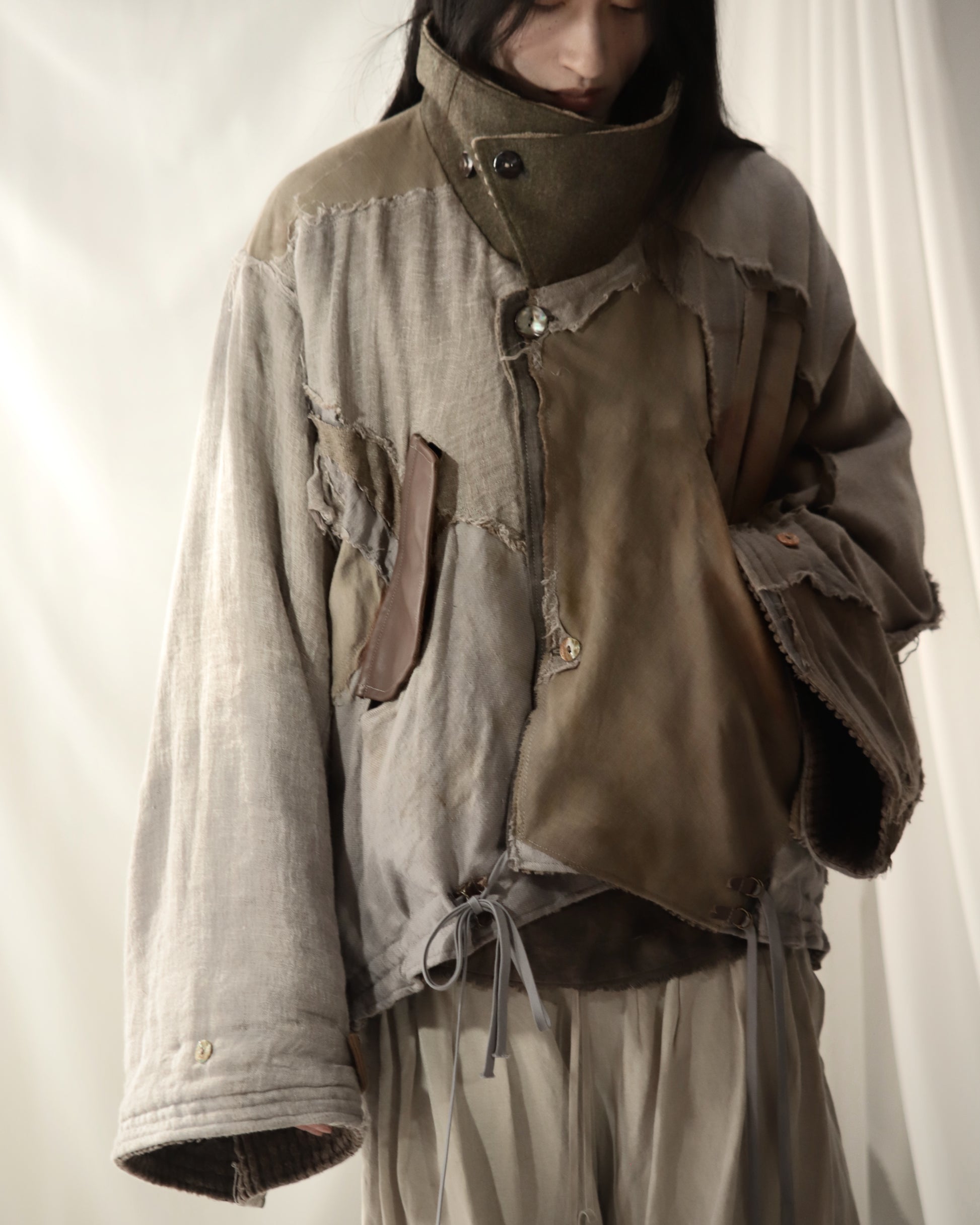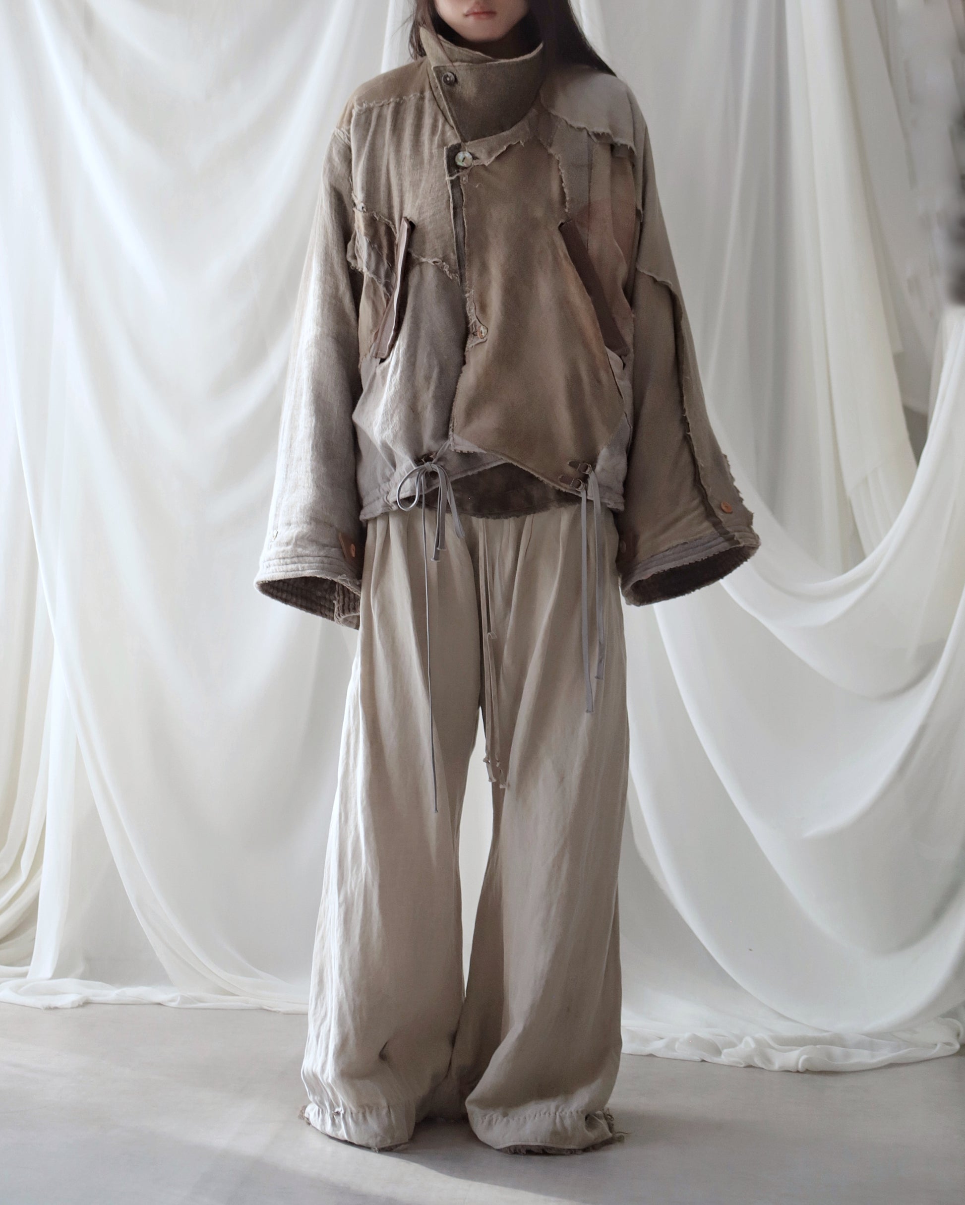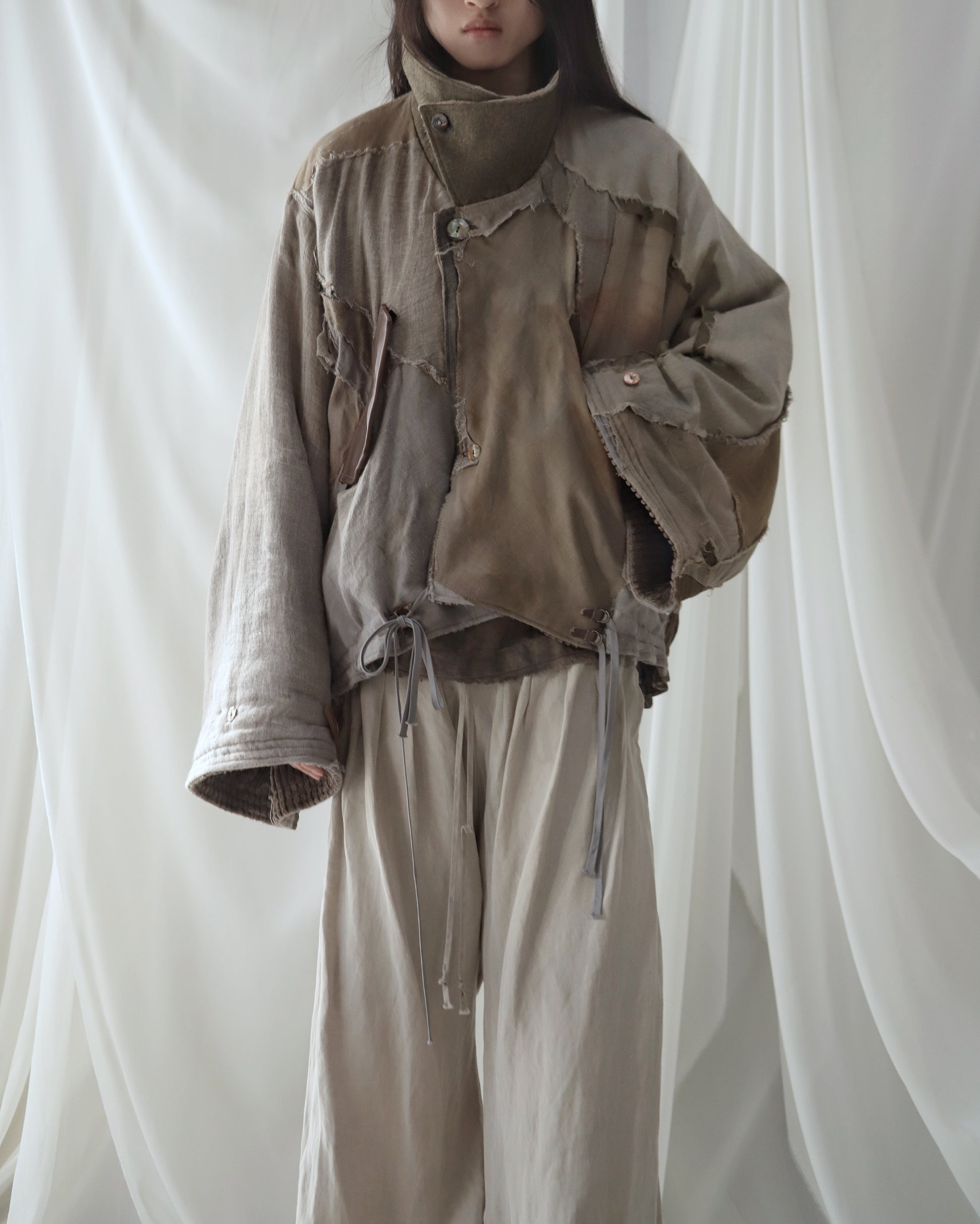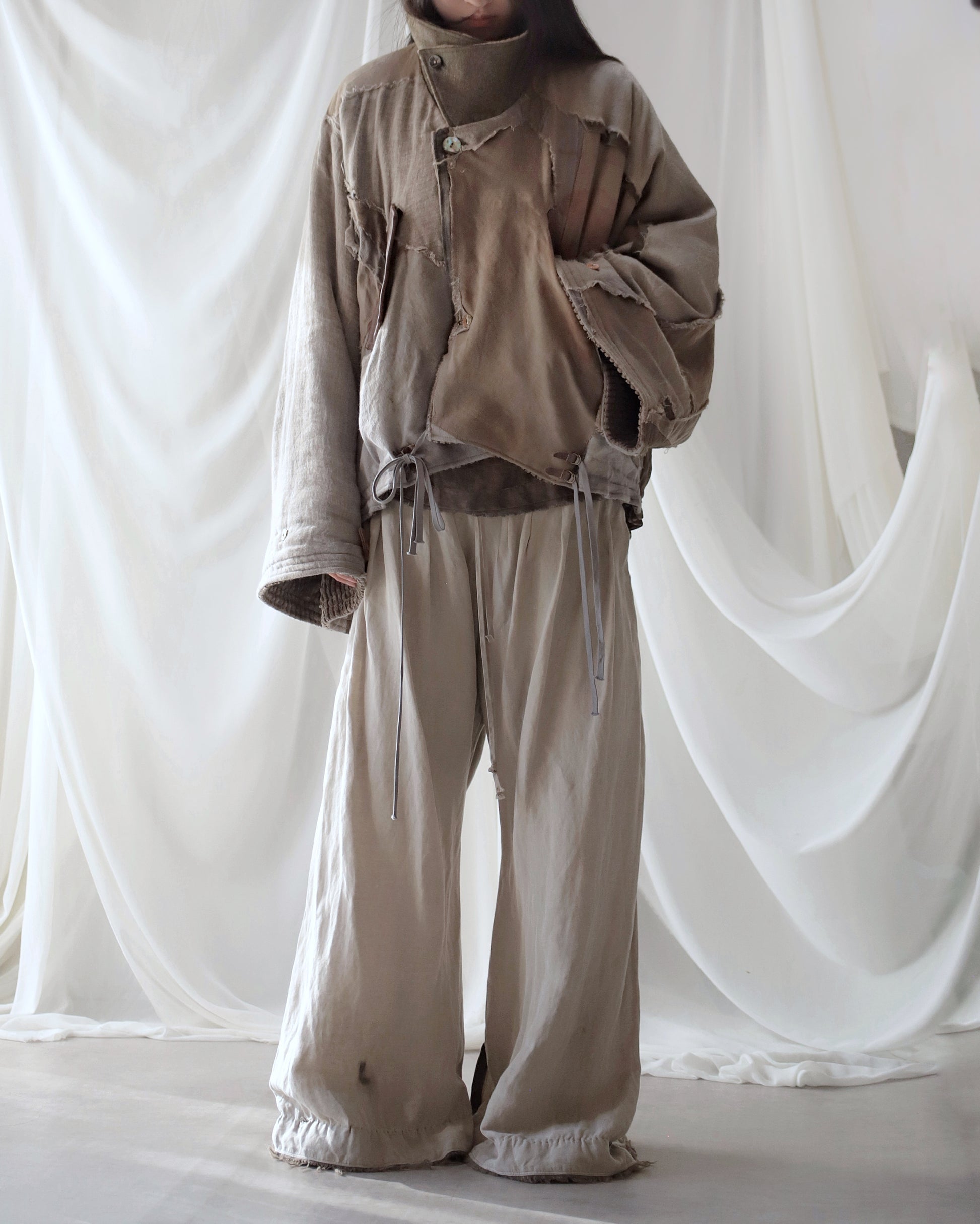 Made from a single assembled fabric created using leftover “化-bake” scraps (wool, linen, and cotton) produced this year.