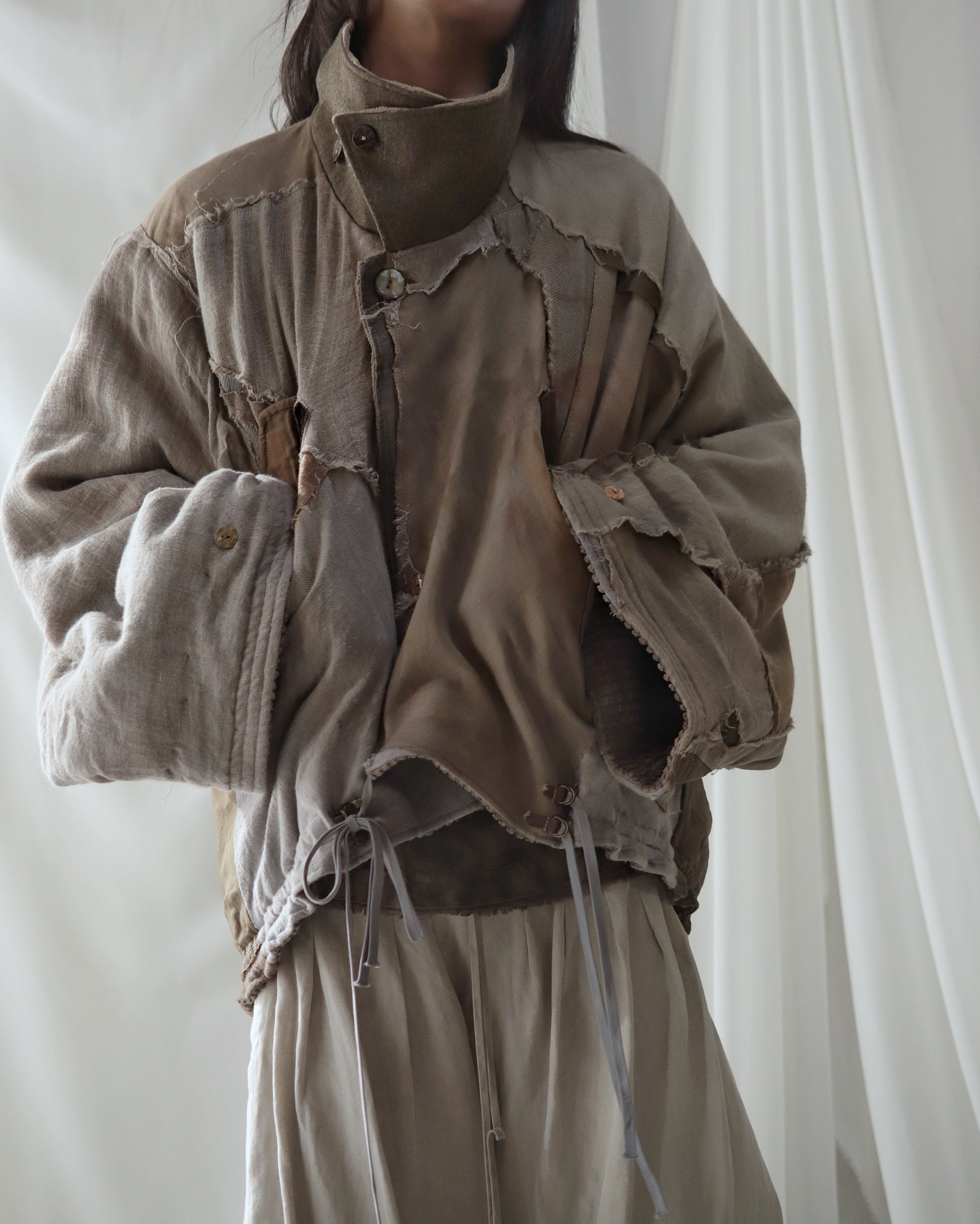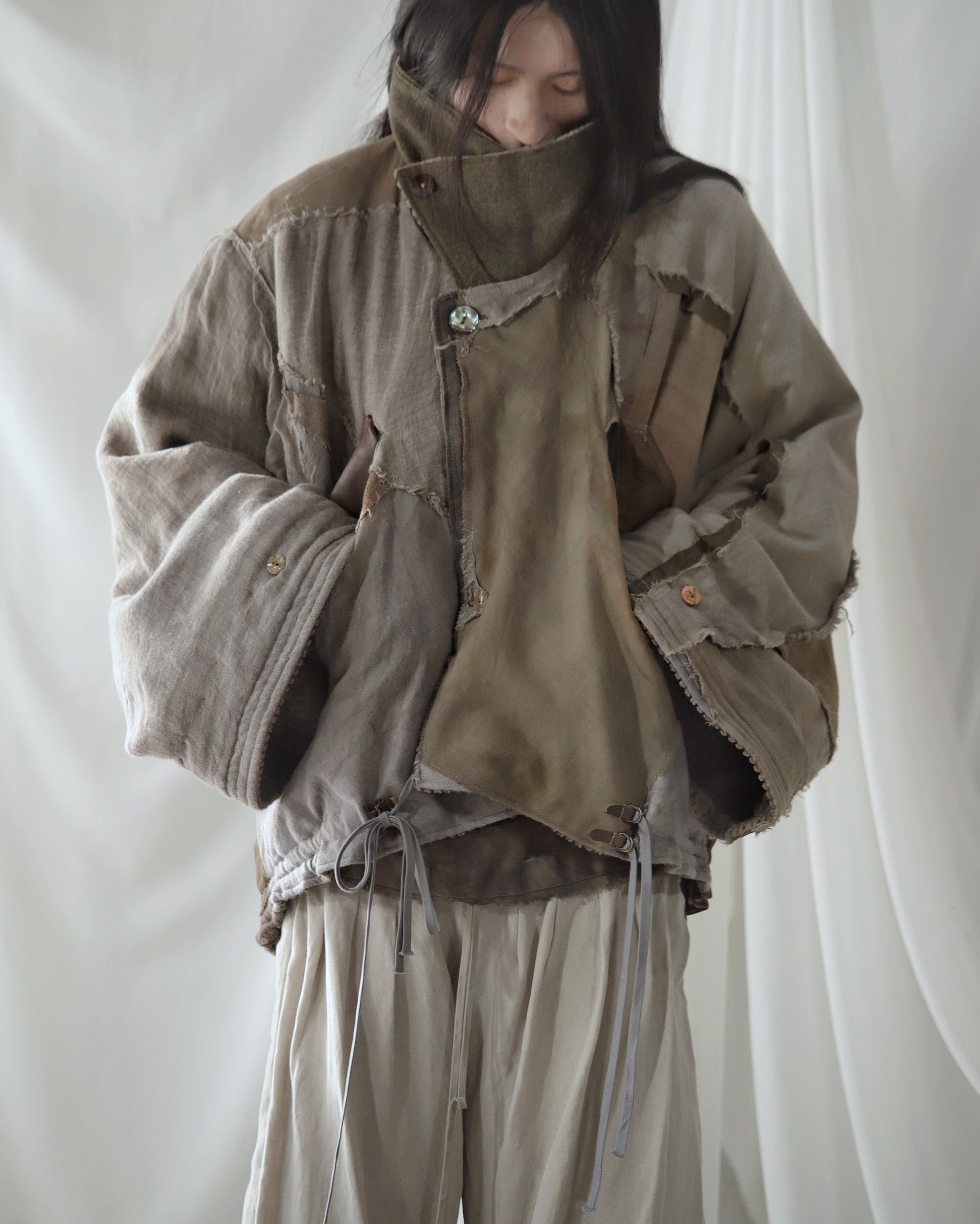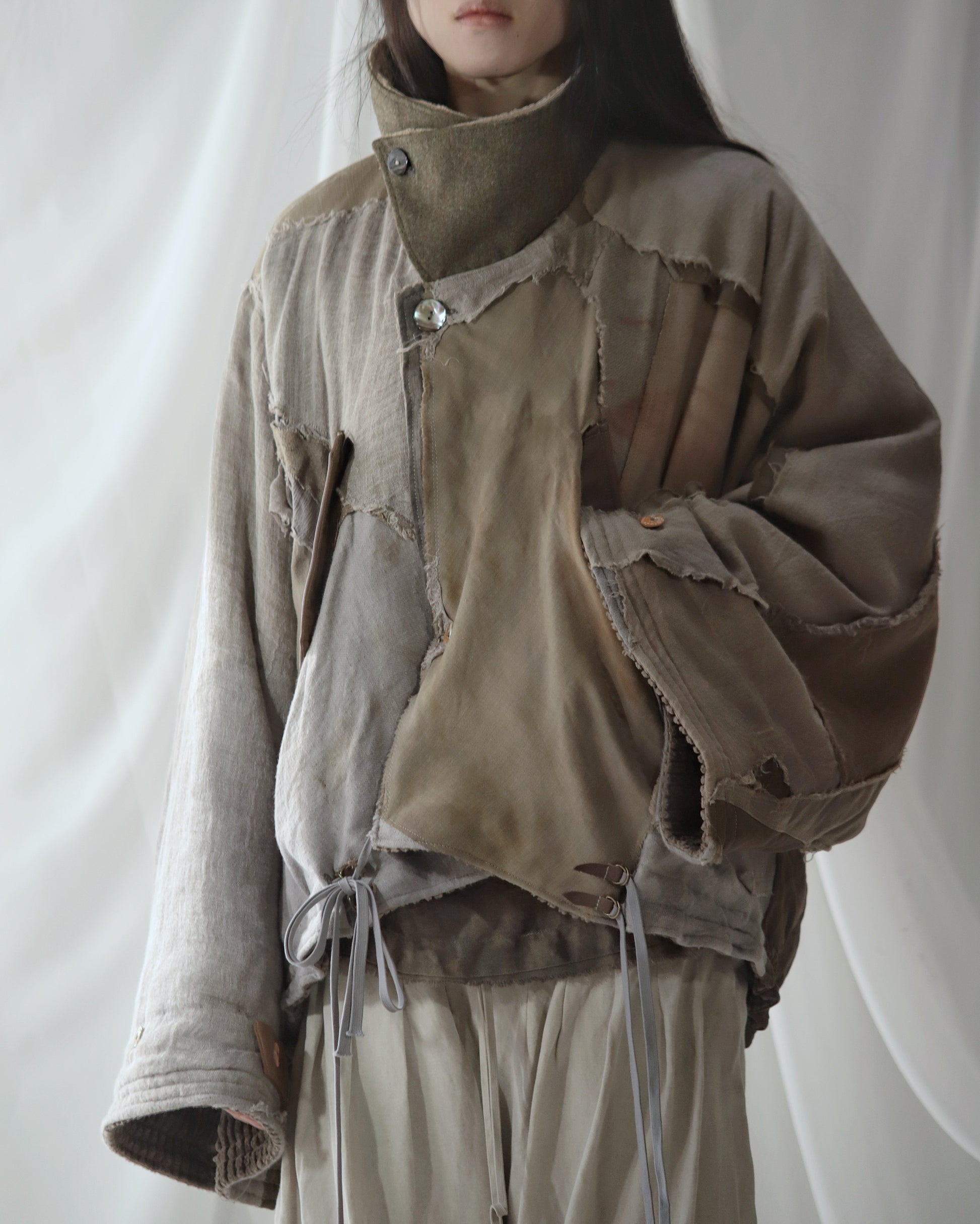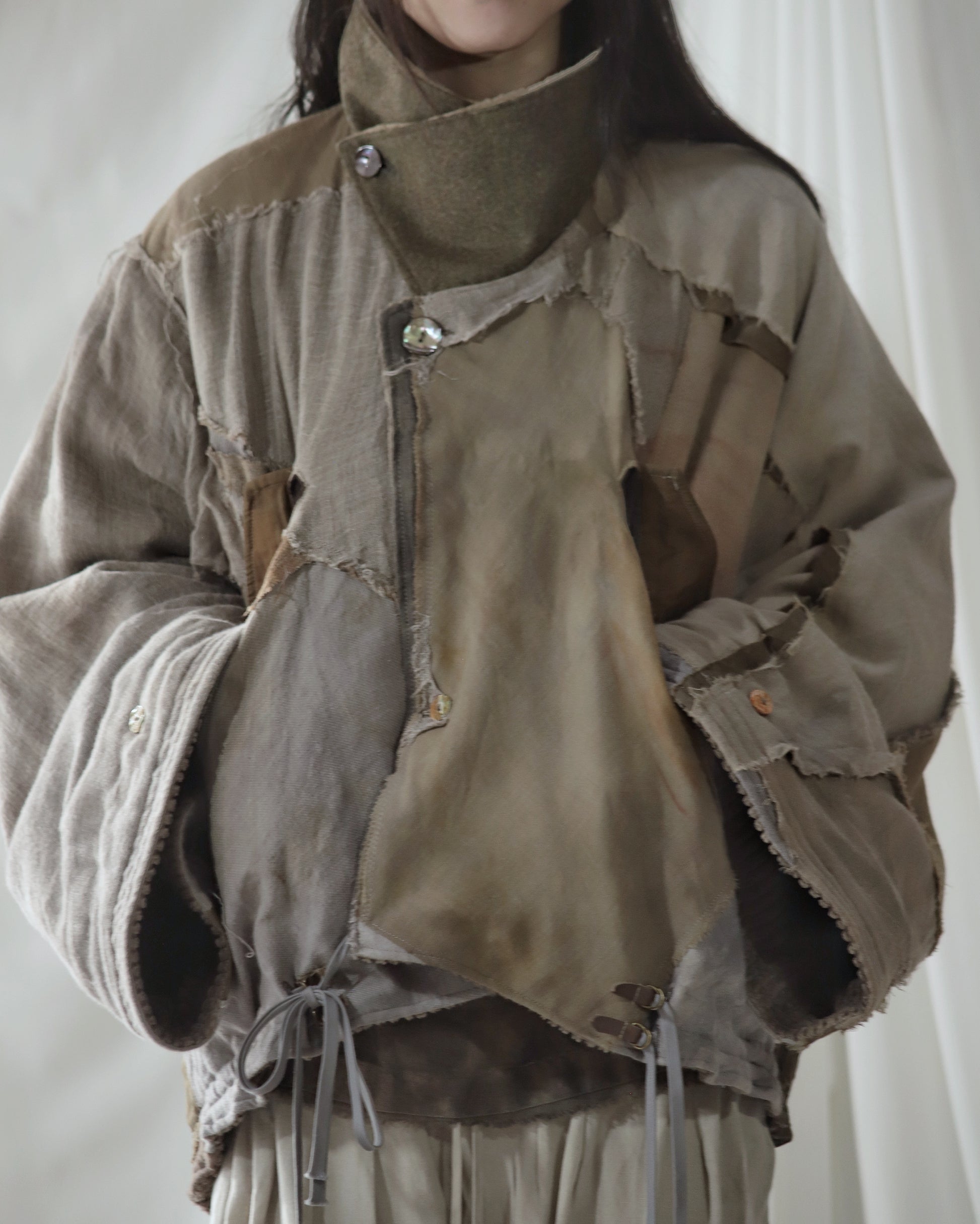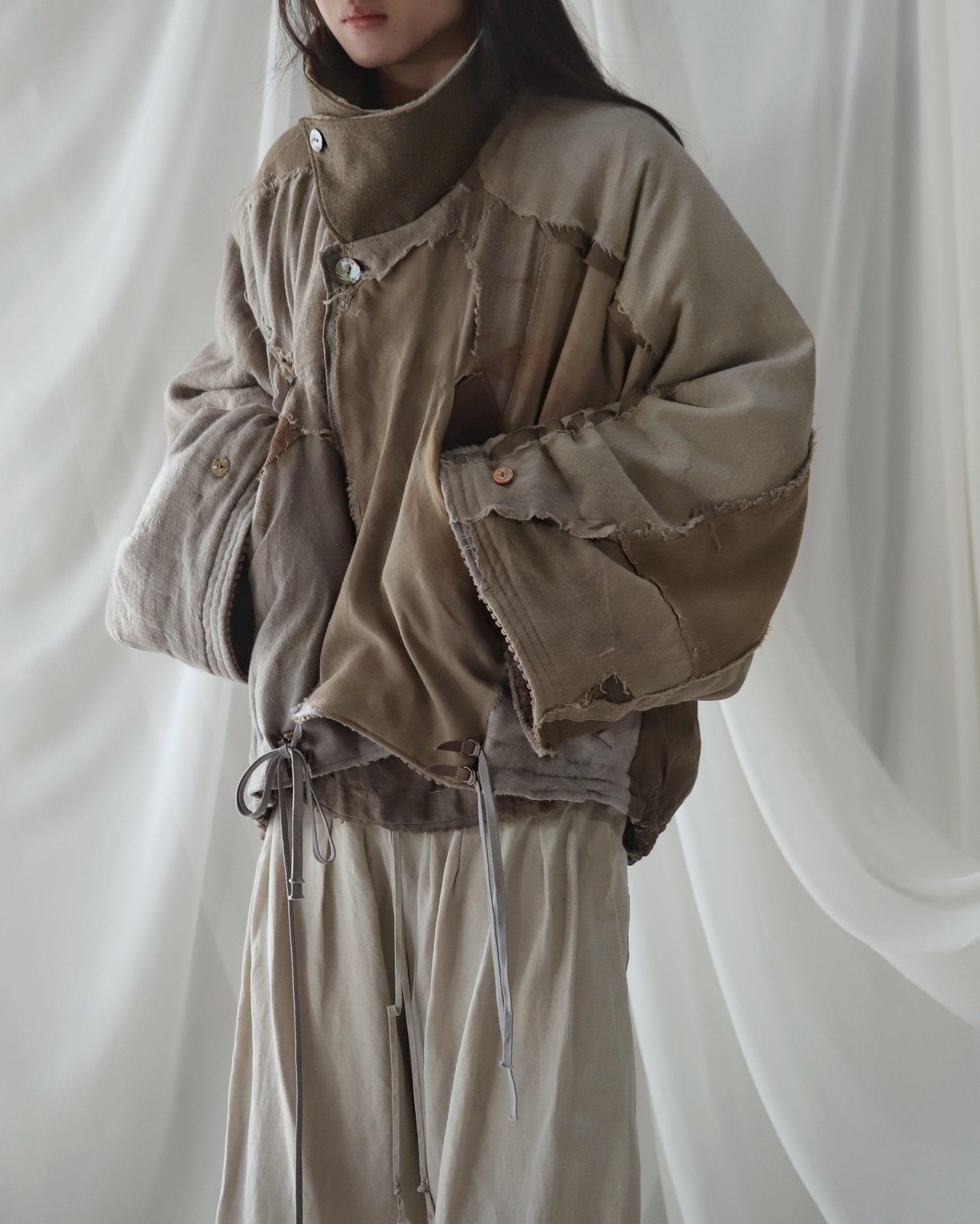 Made from a single assembled fabric created using leftover “化-bake” scraps (wool, linen, and cotton) produced this year.