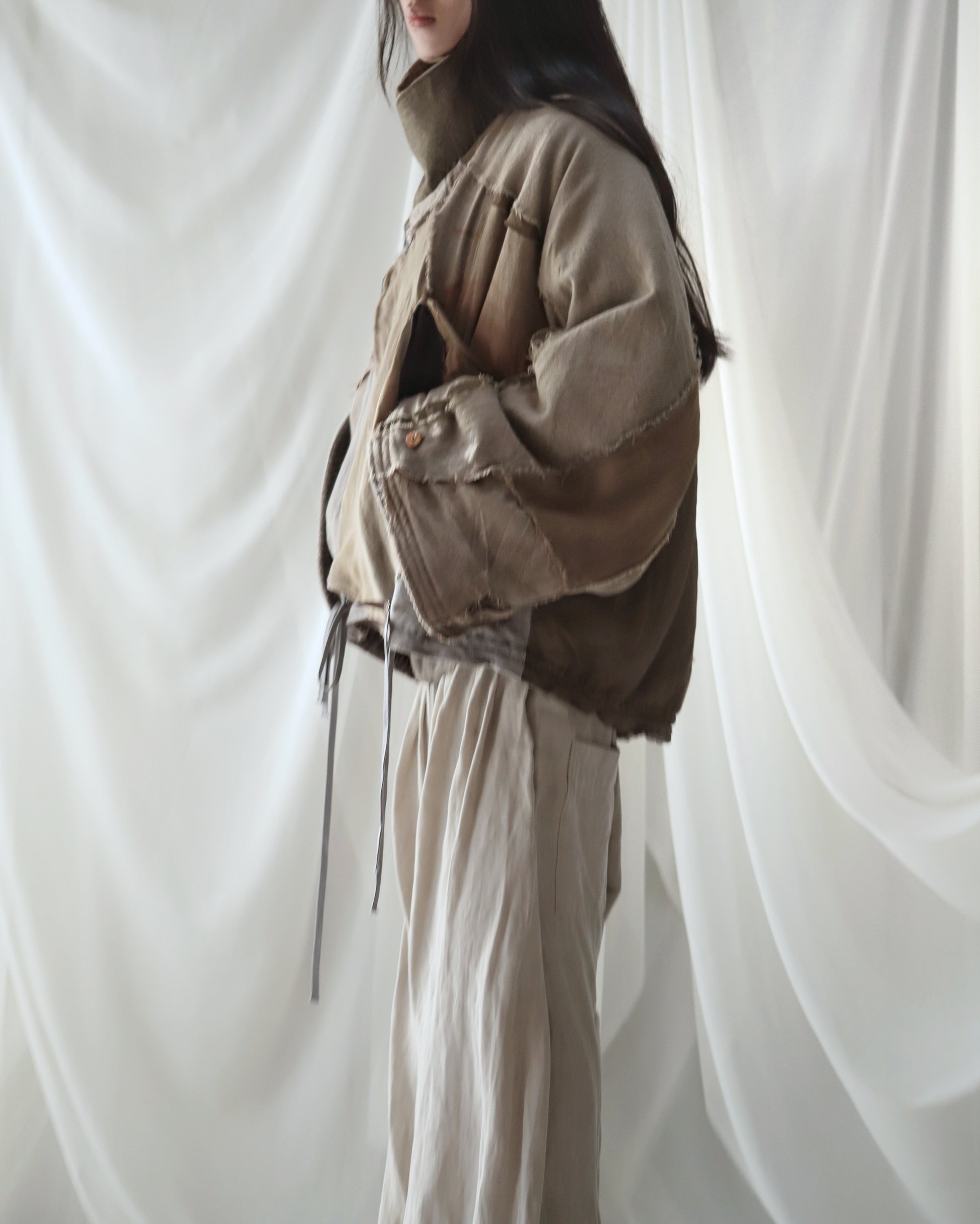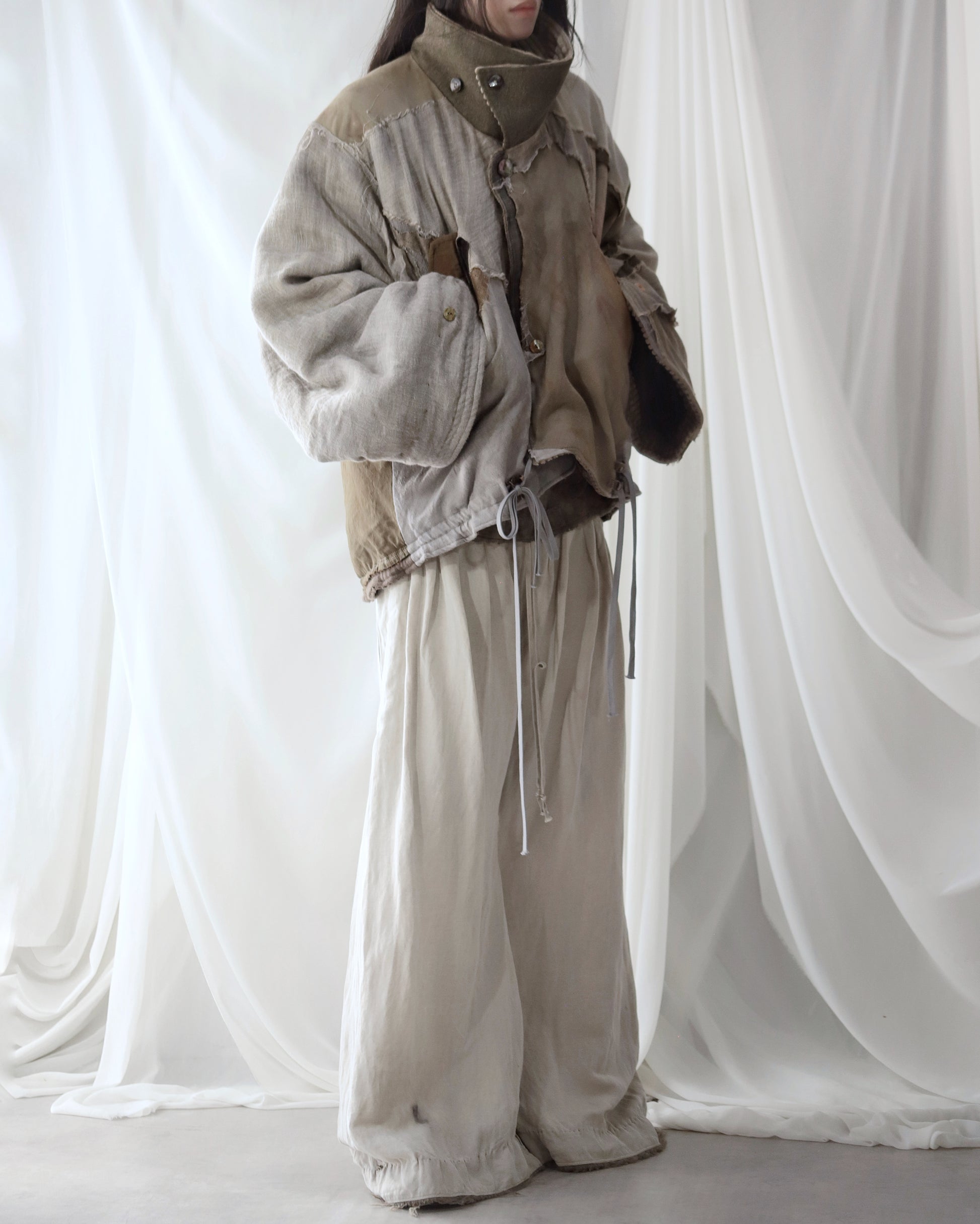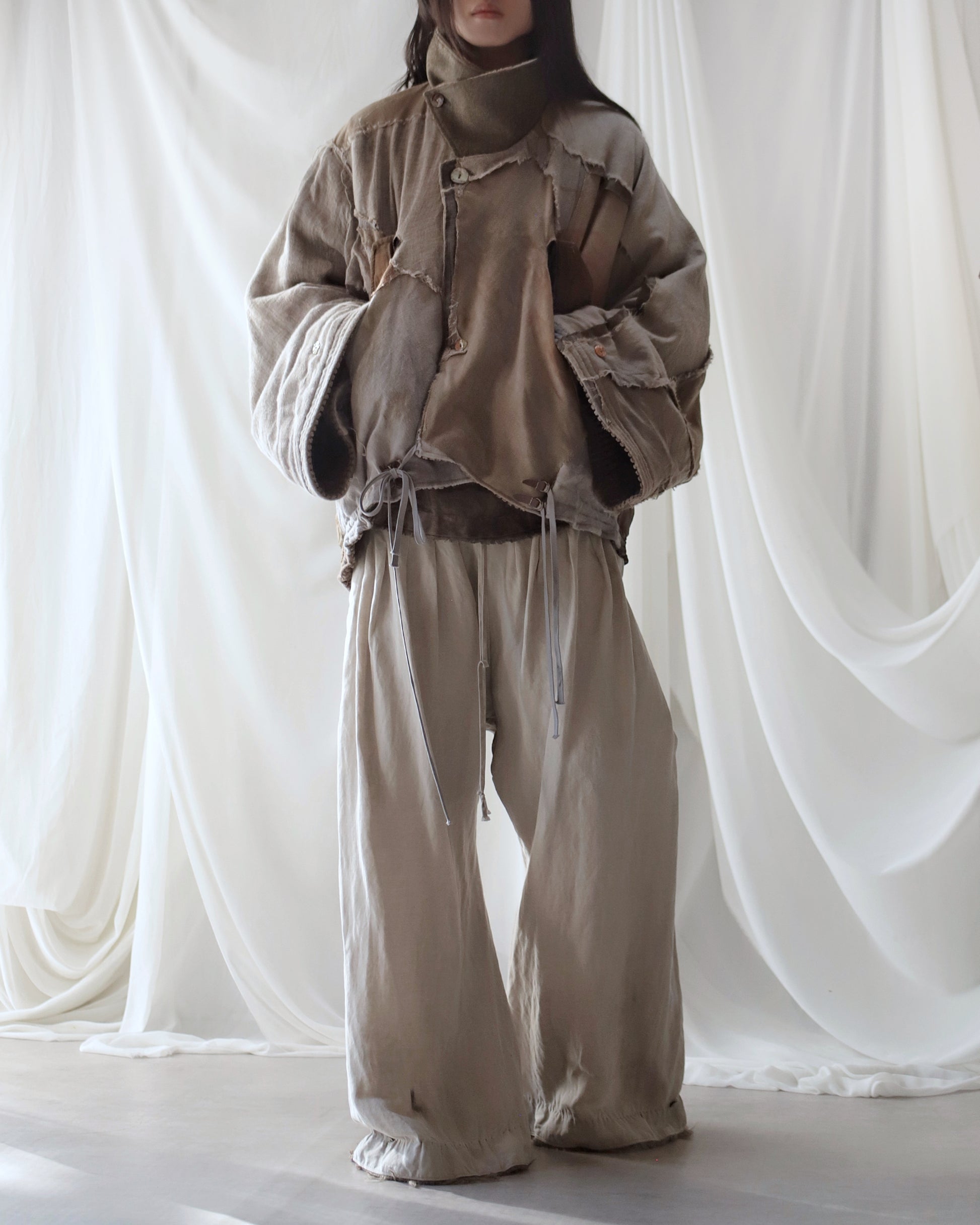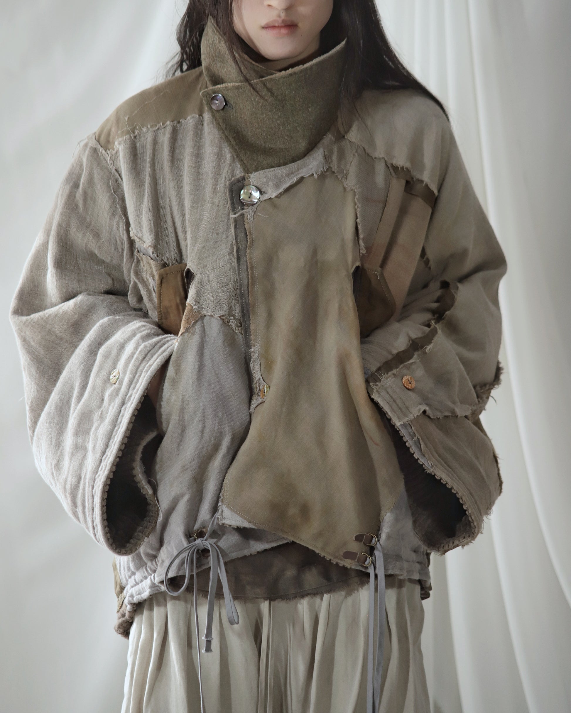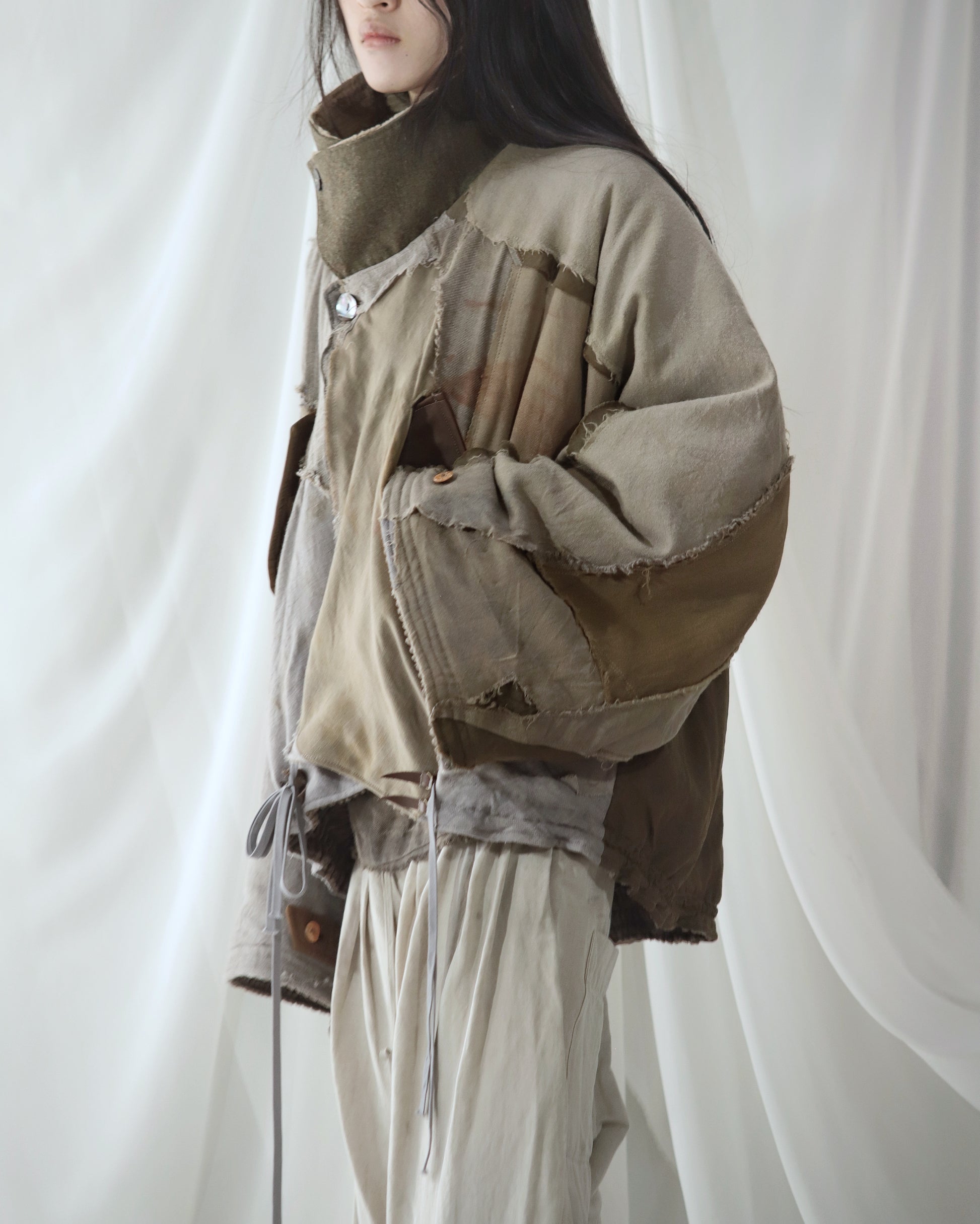 Made from a single assembled fabric created using leftover “化-bake” scraps (wool, linen, and cotton) produced this year.