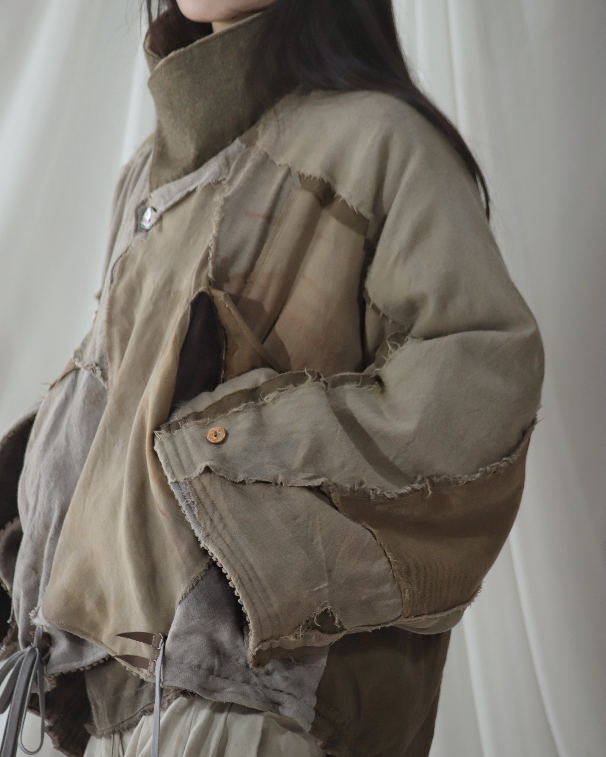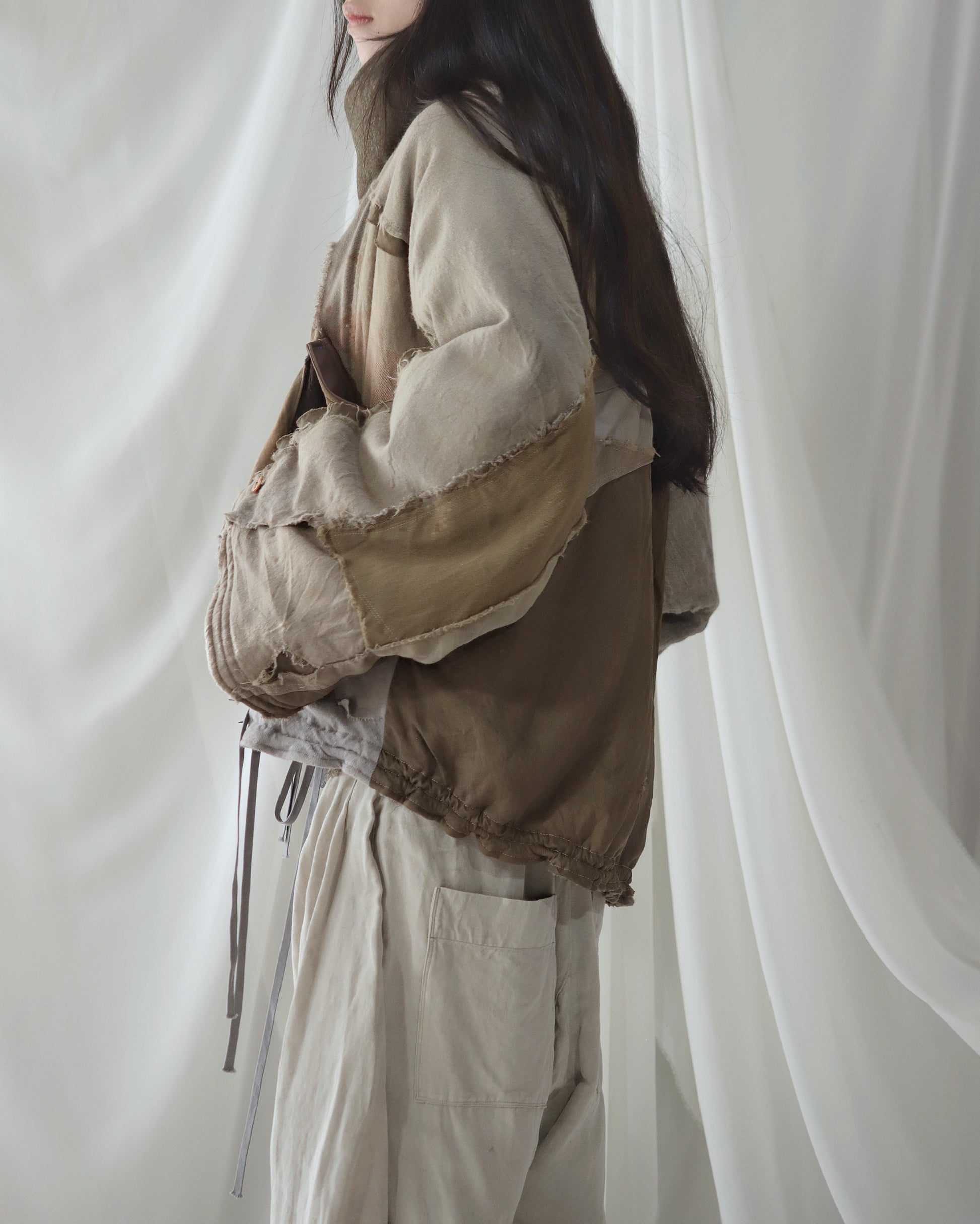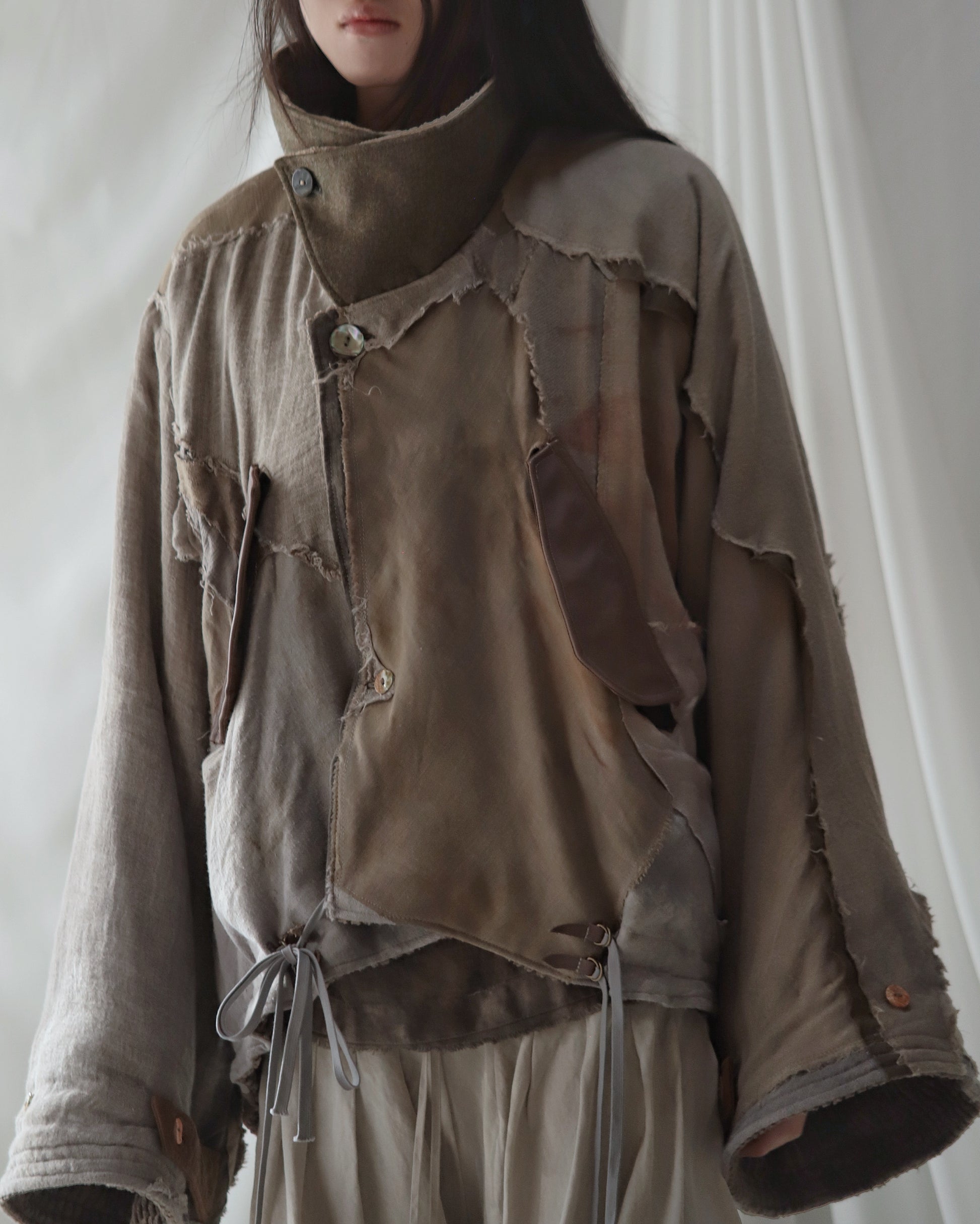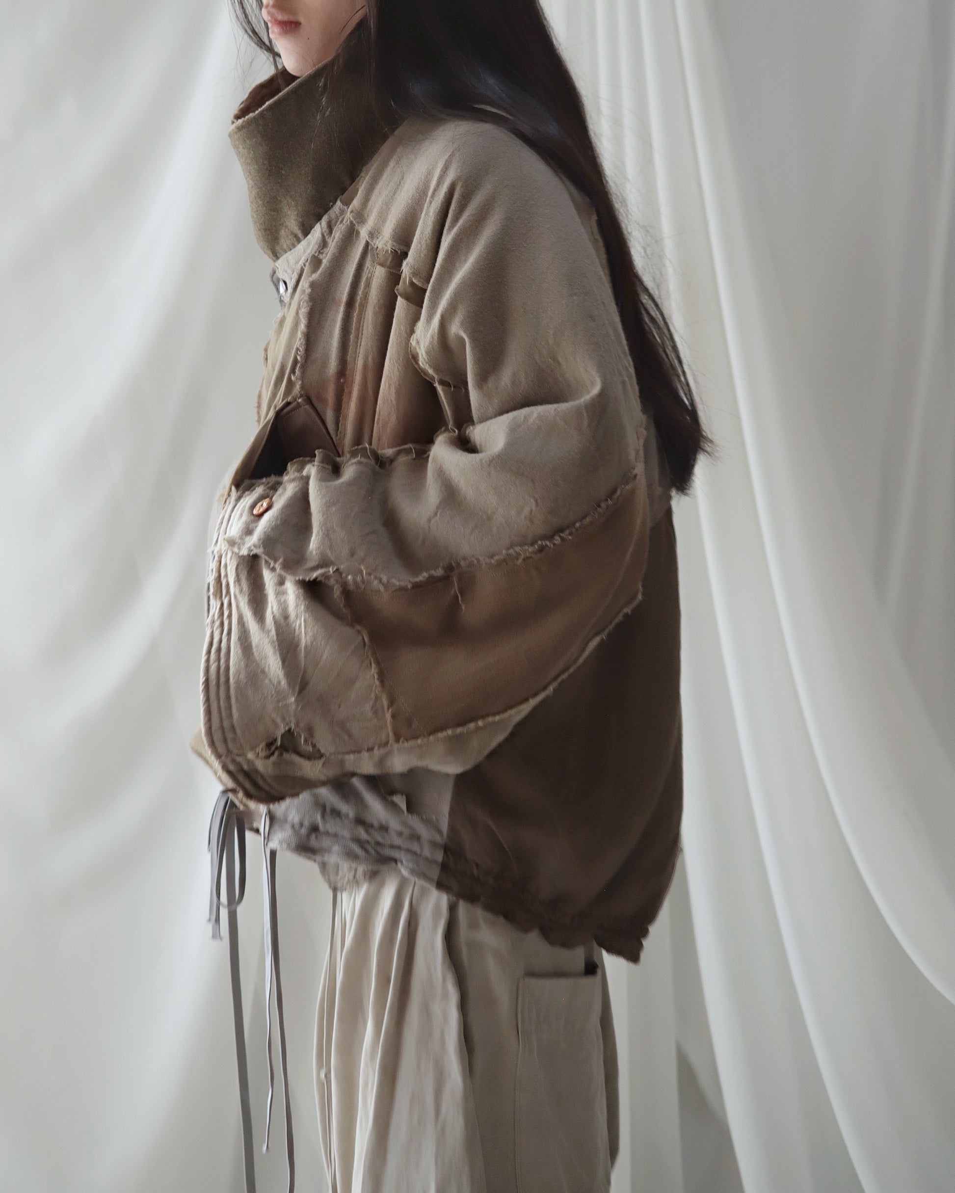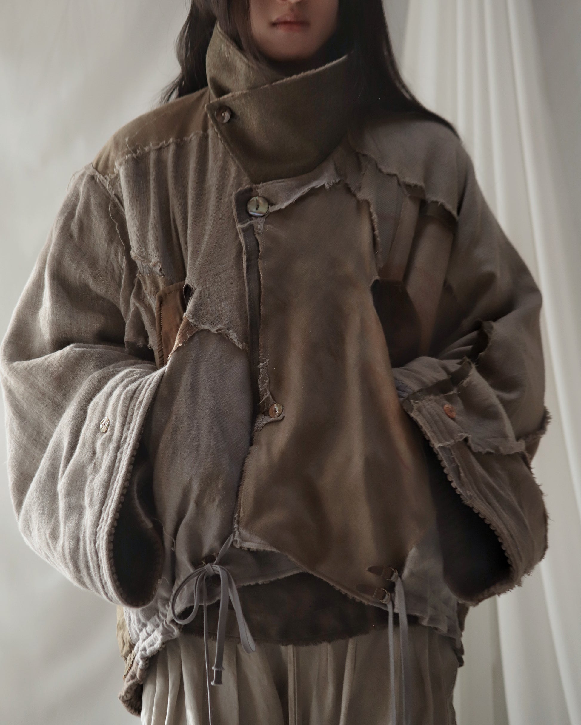 Made from a single assembled fabric created using leftover “化-bake” scraps (wool, linen, and cotton) produced this year.