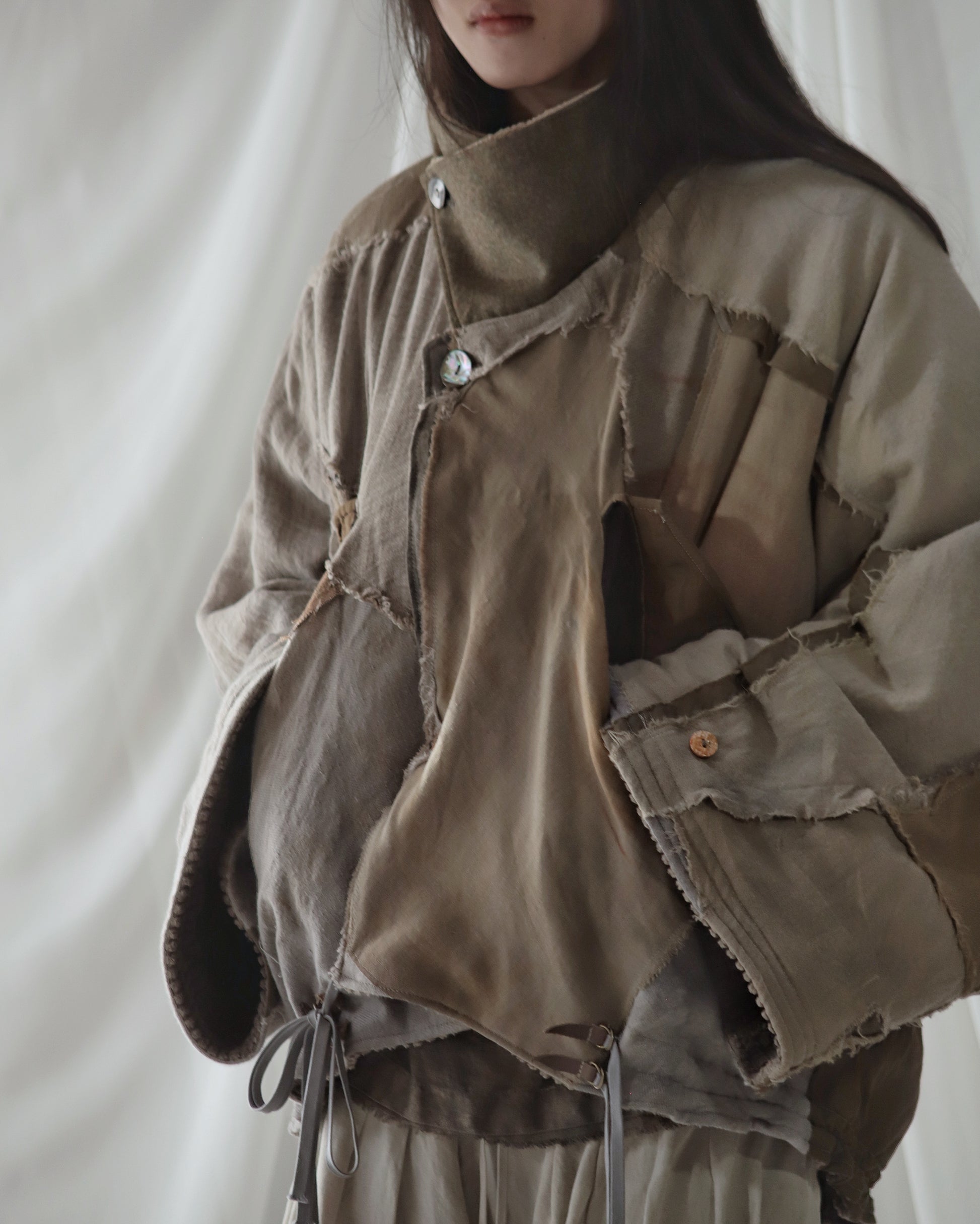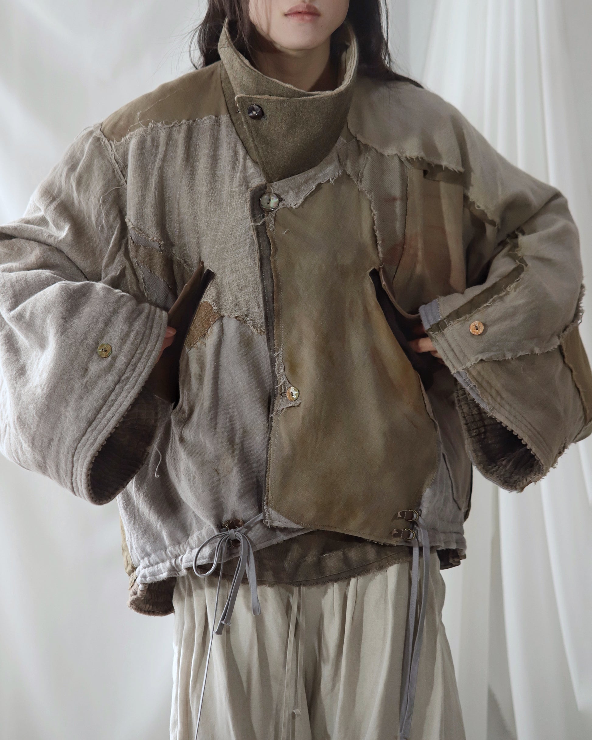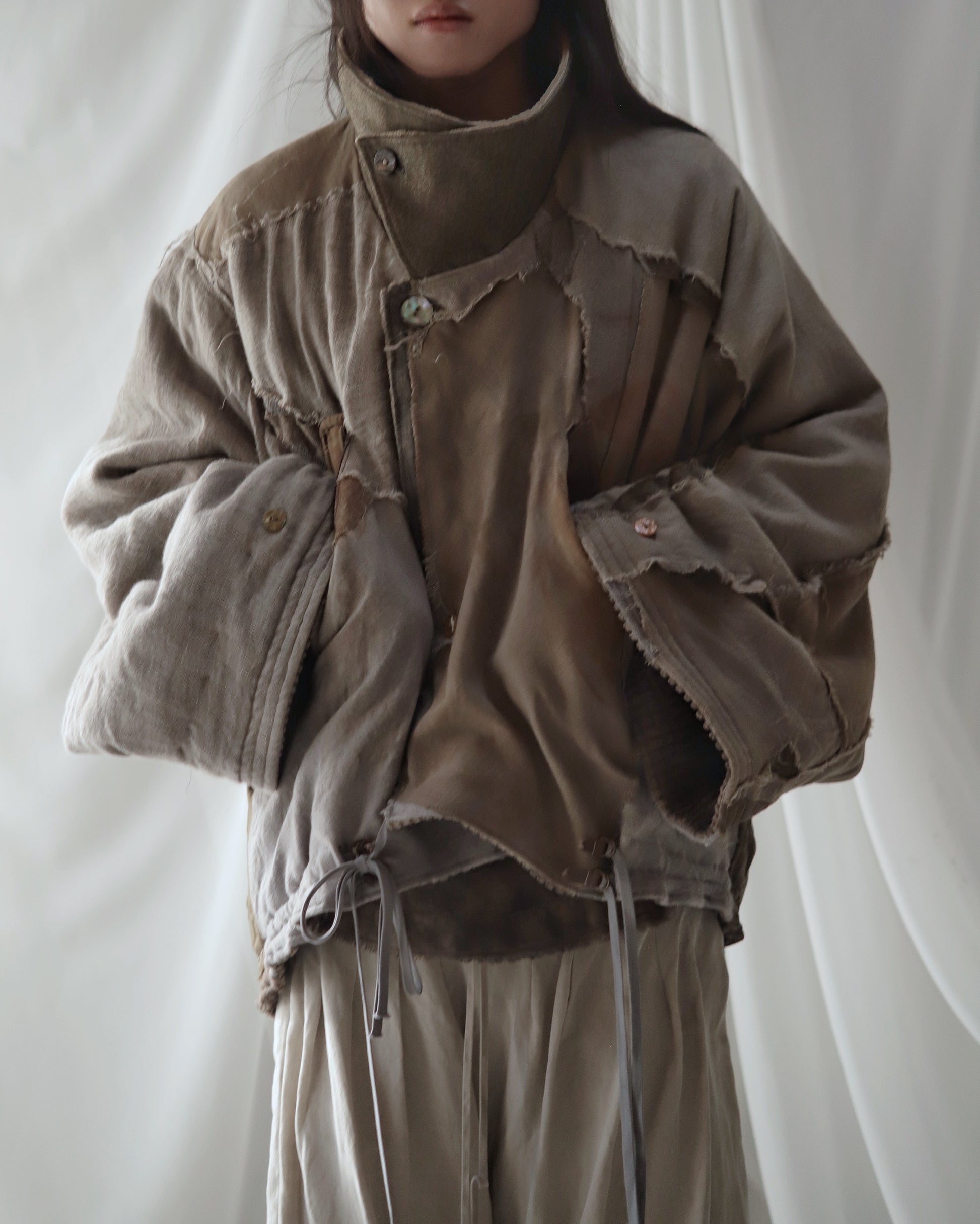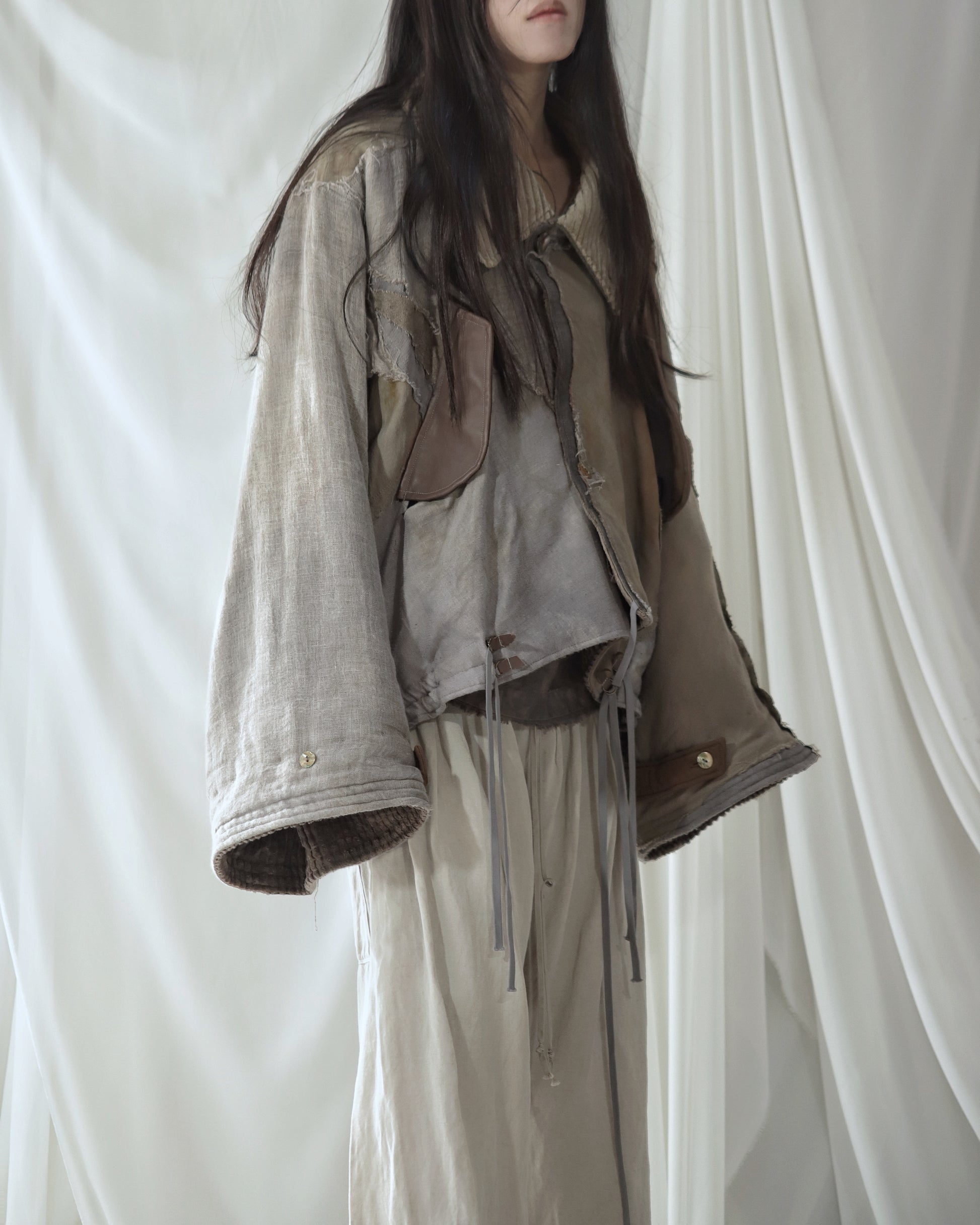 Made from a single assembled fabric created using leftover “化-bake” scraps (wool, linen, and cotton) produced this year.