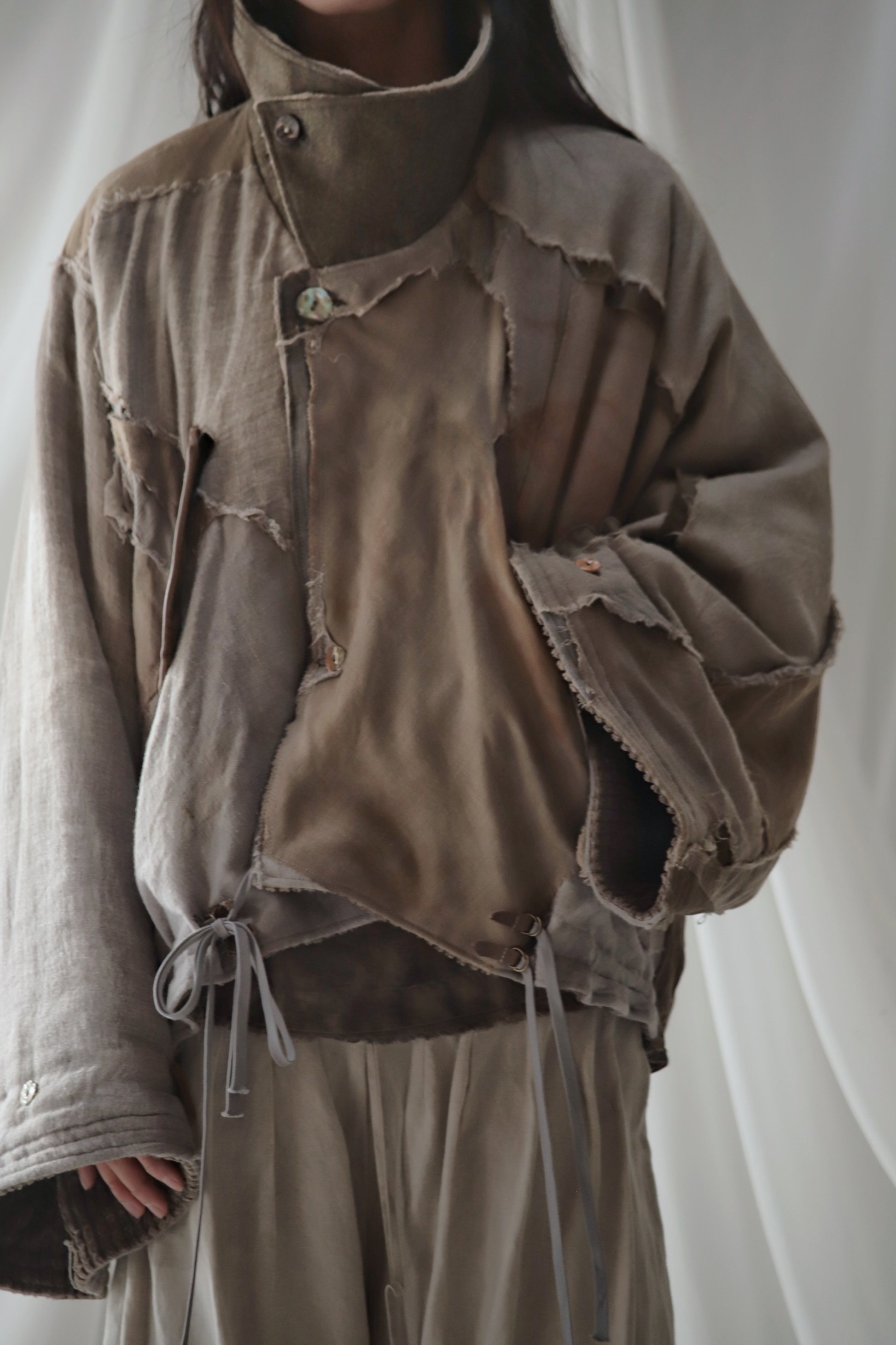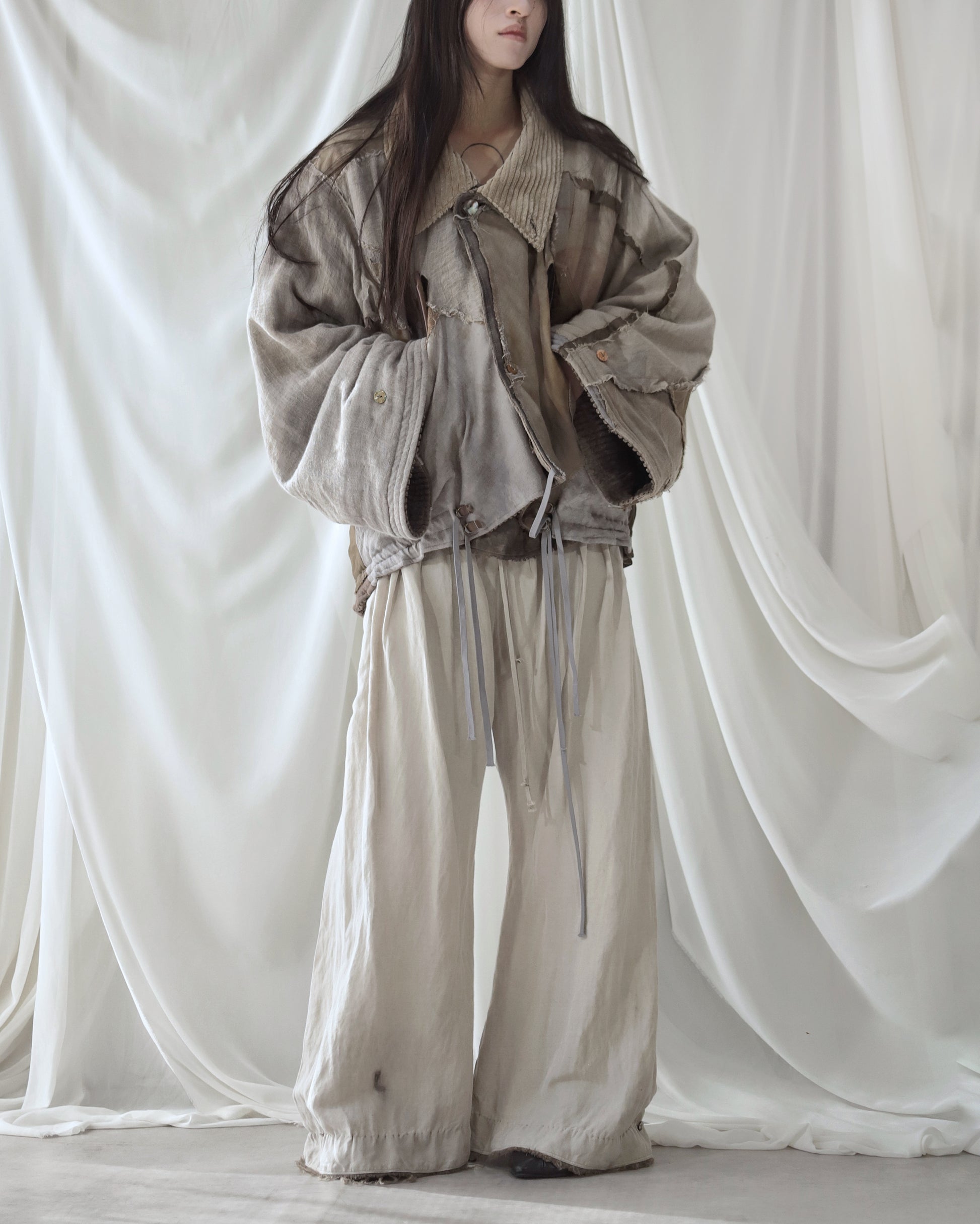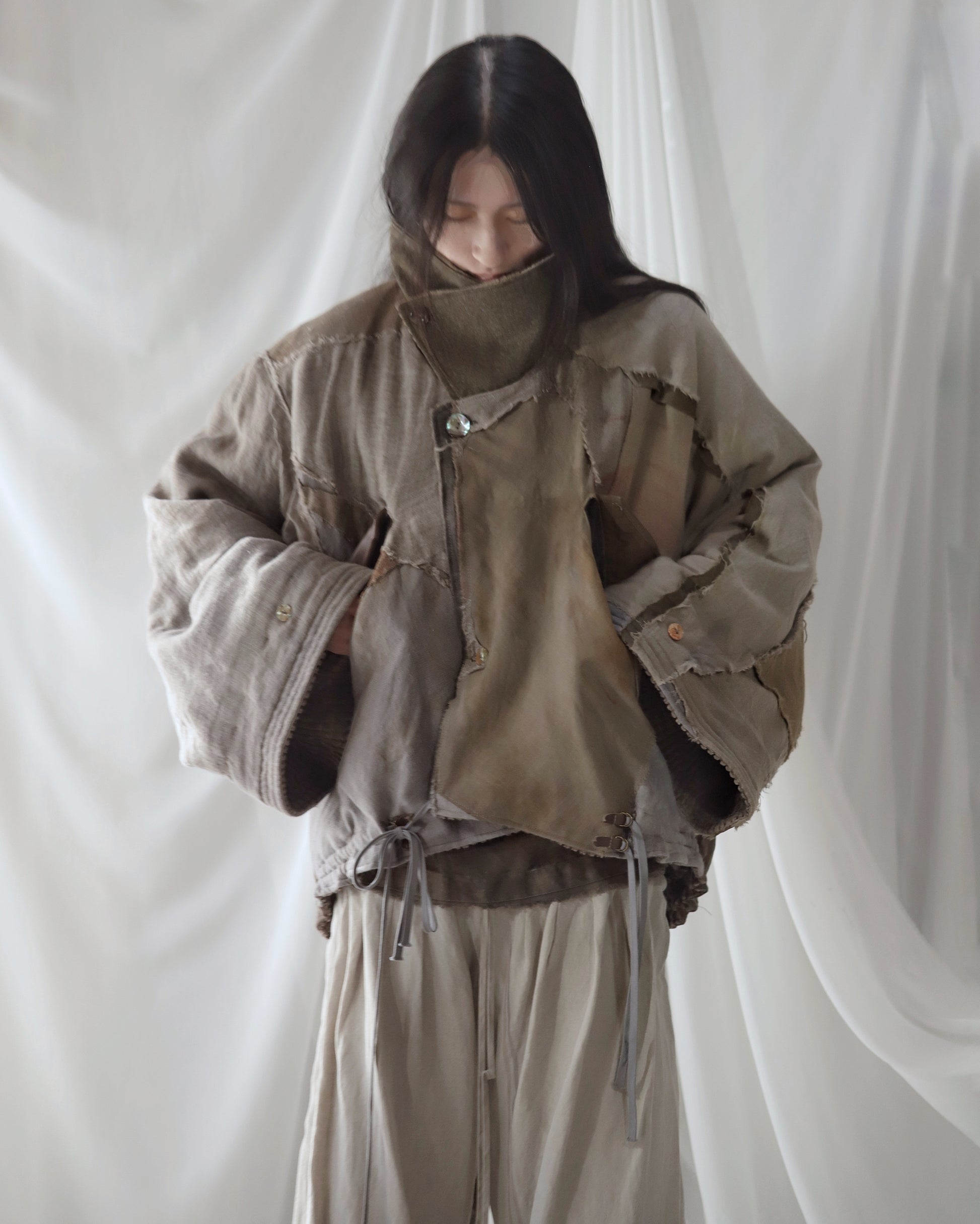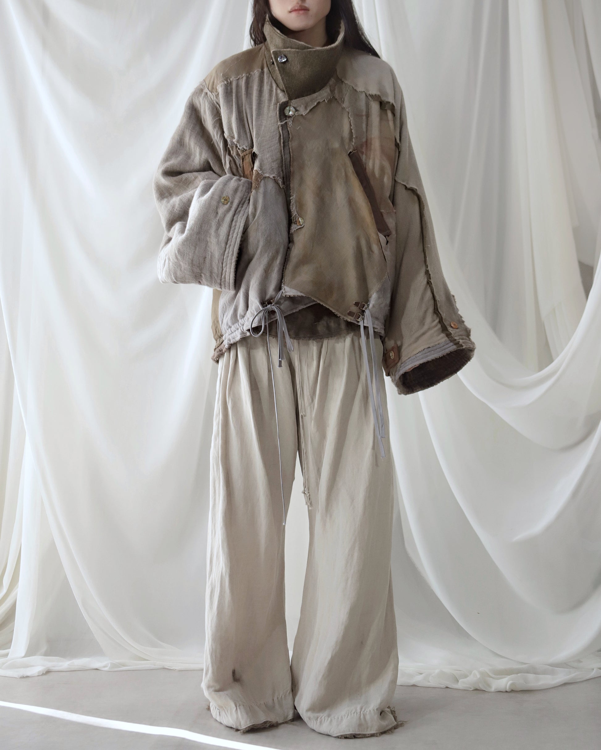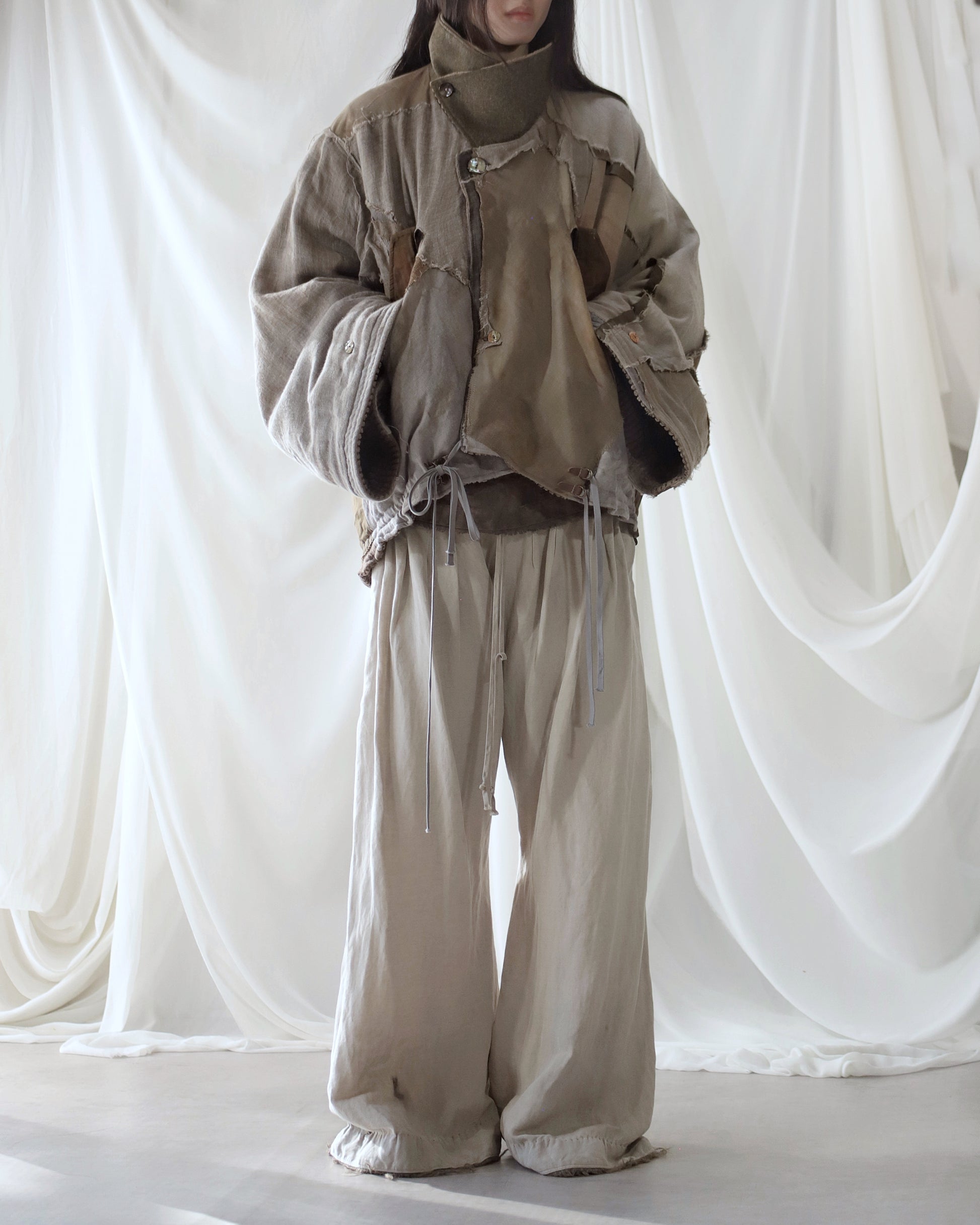 Made from a single assembled fabric created using leftover “化-bake” scraps (wool, linen, and cotton) produced this year.