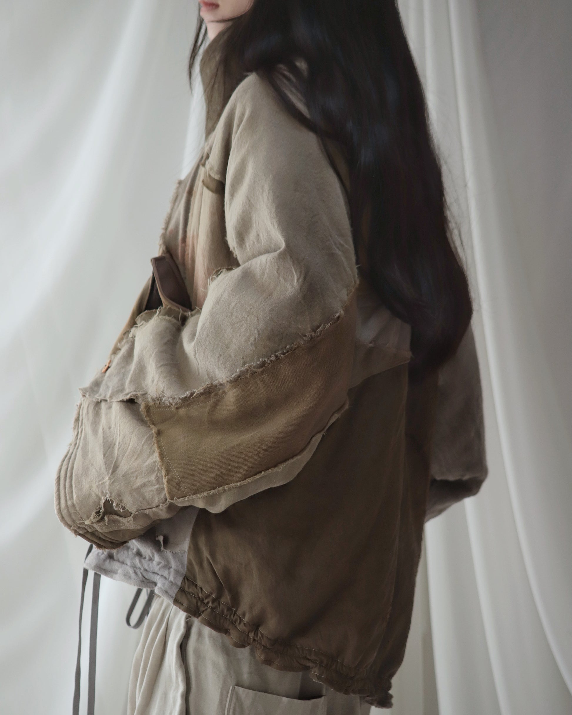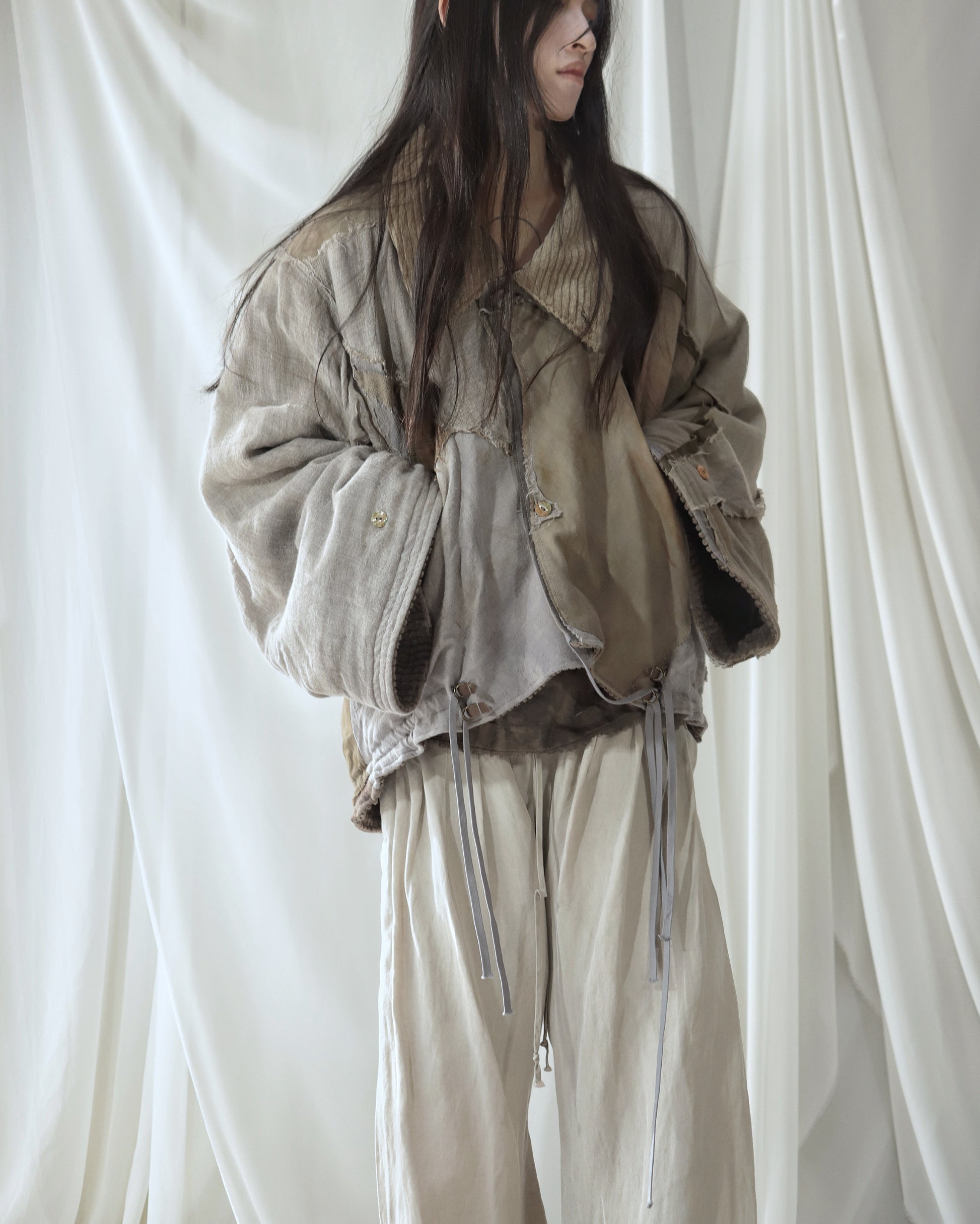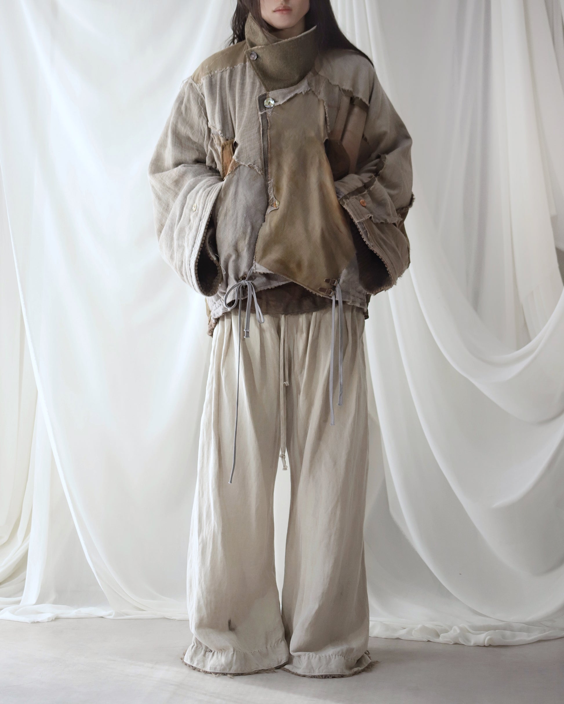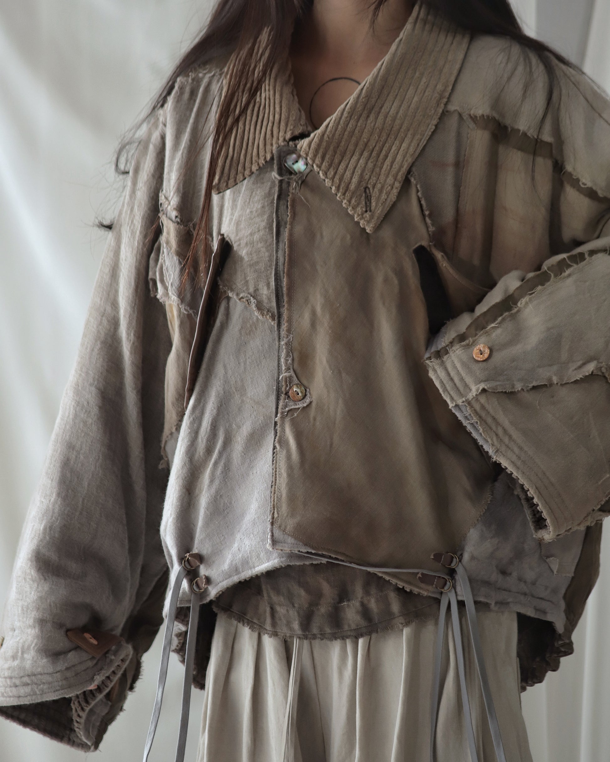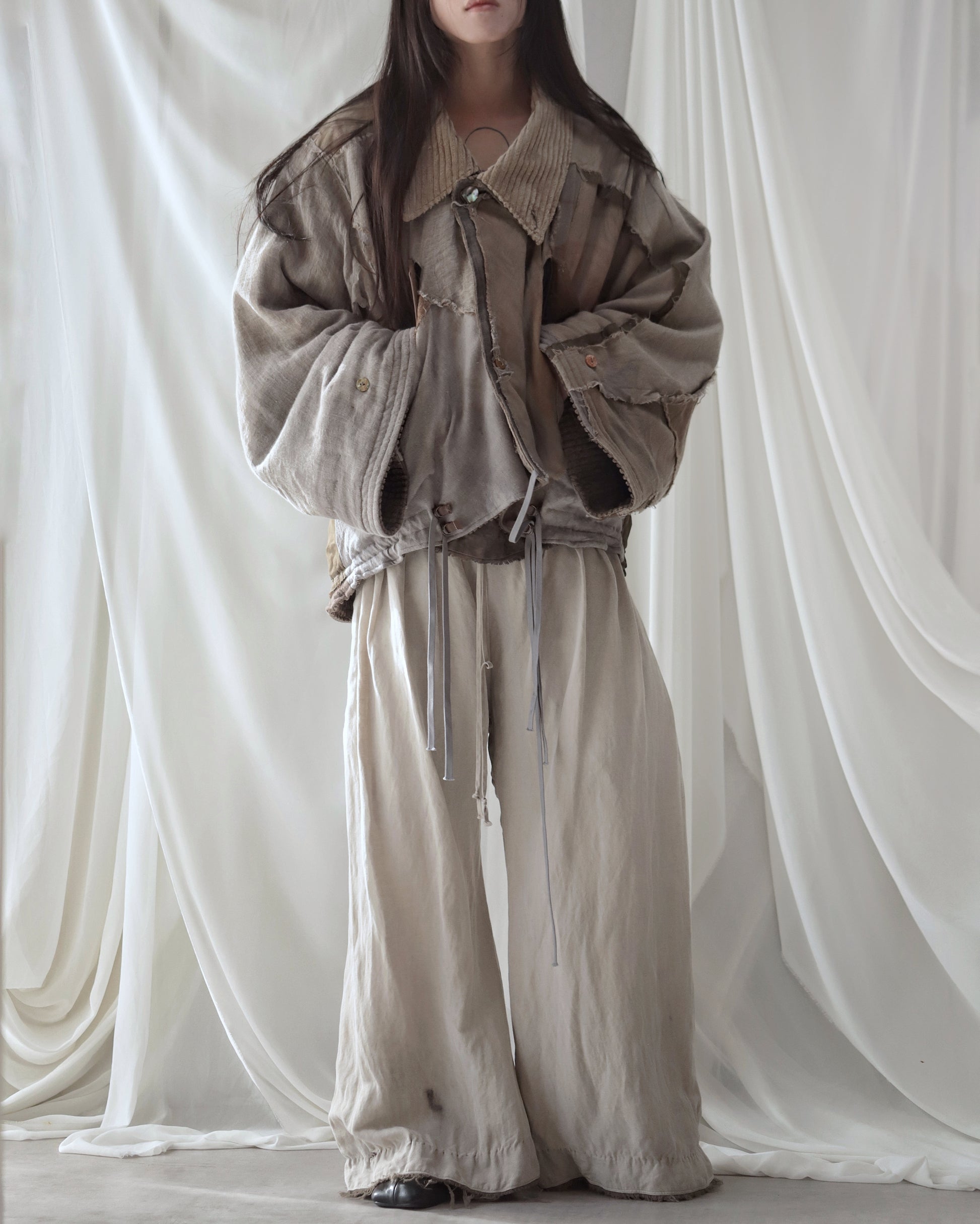 Made from a single assembled fabric created using leftover “化-bake” scraps (wool, linen, and cotton) produced this year.
