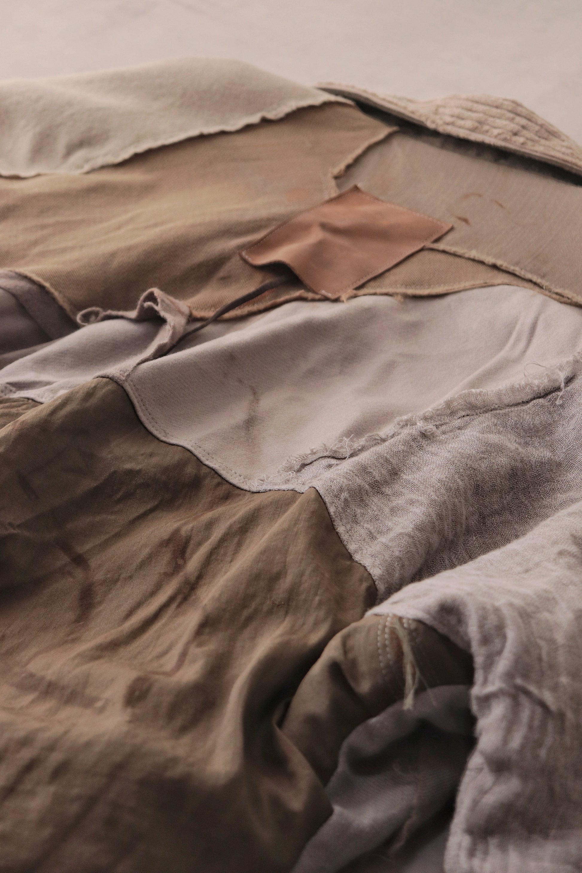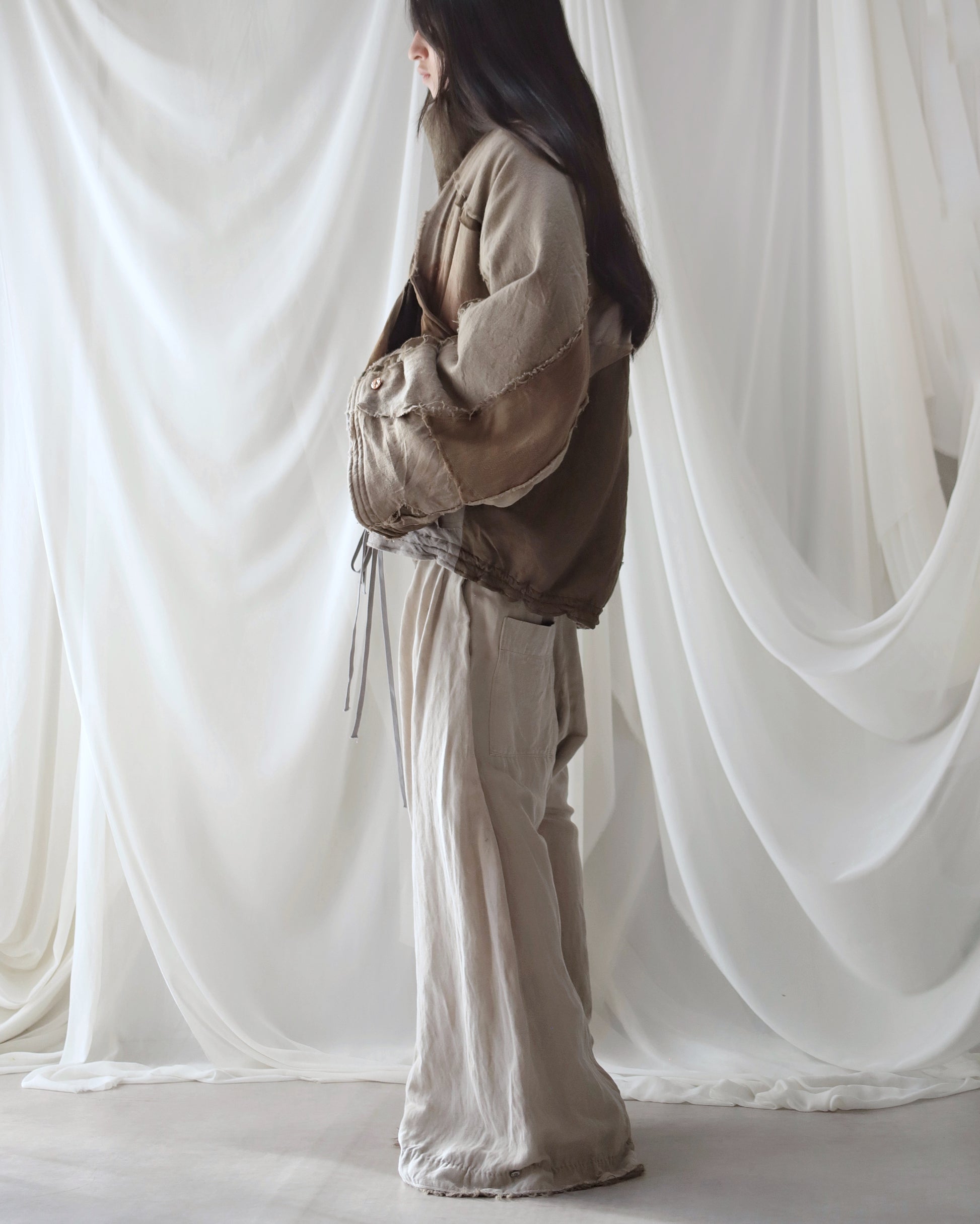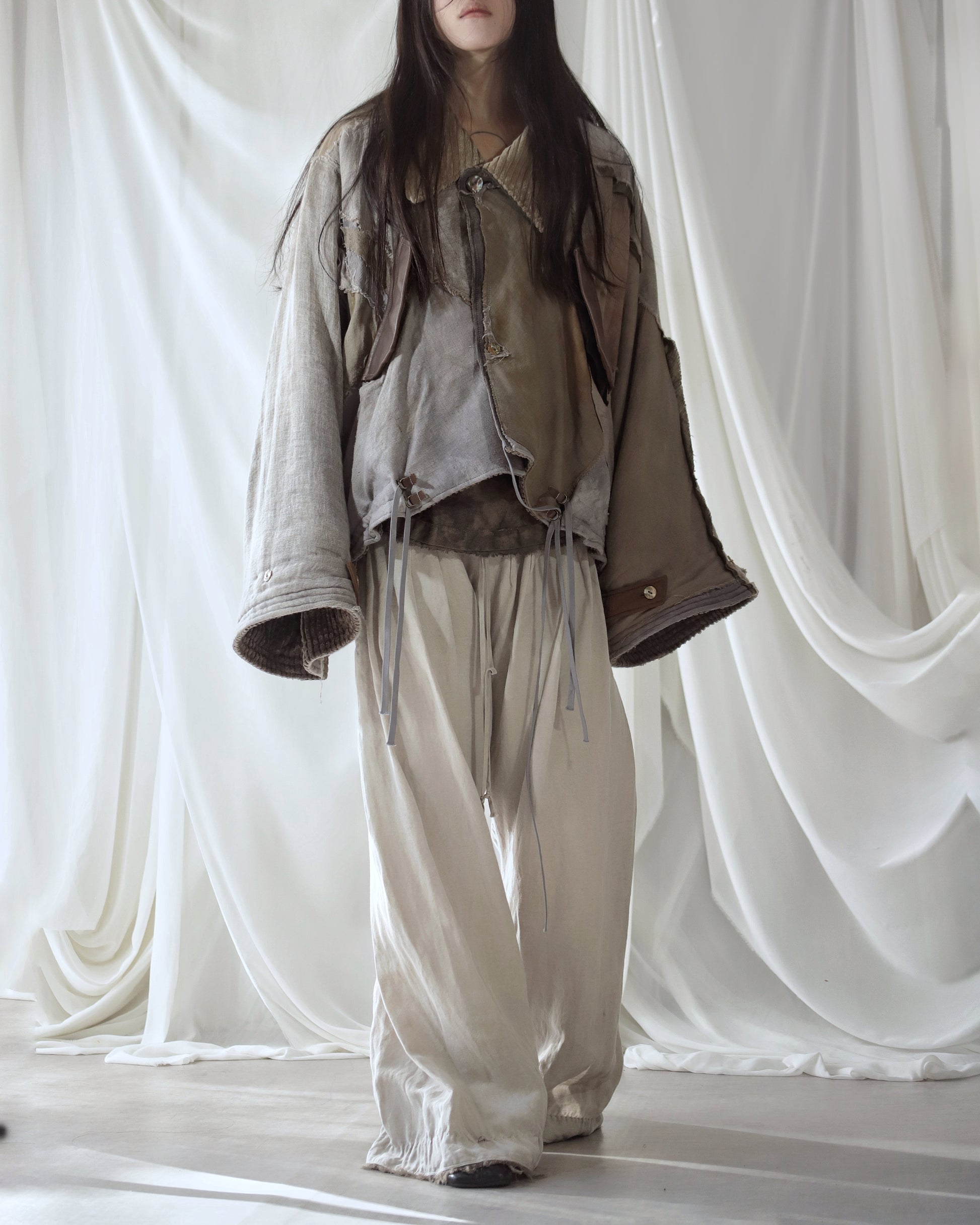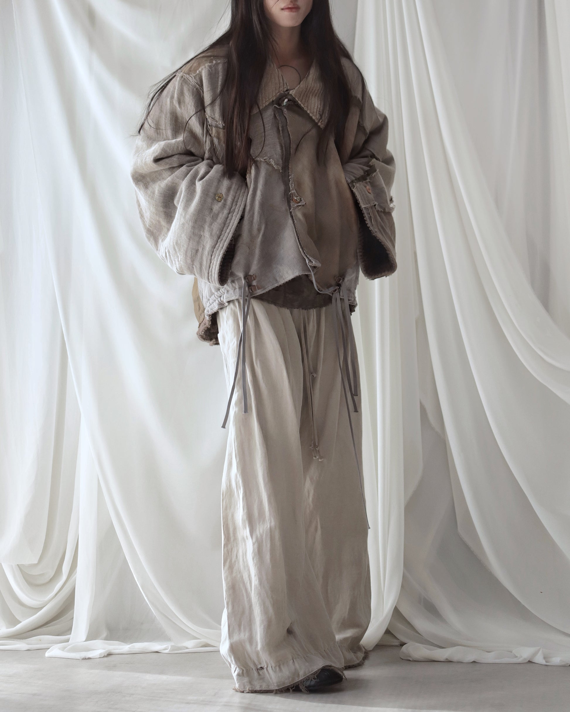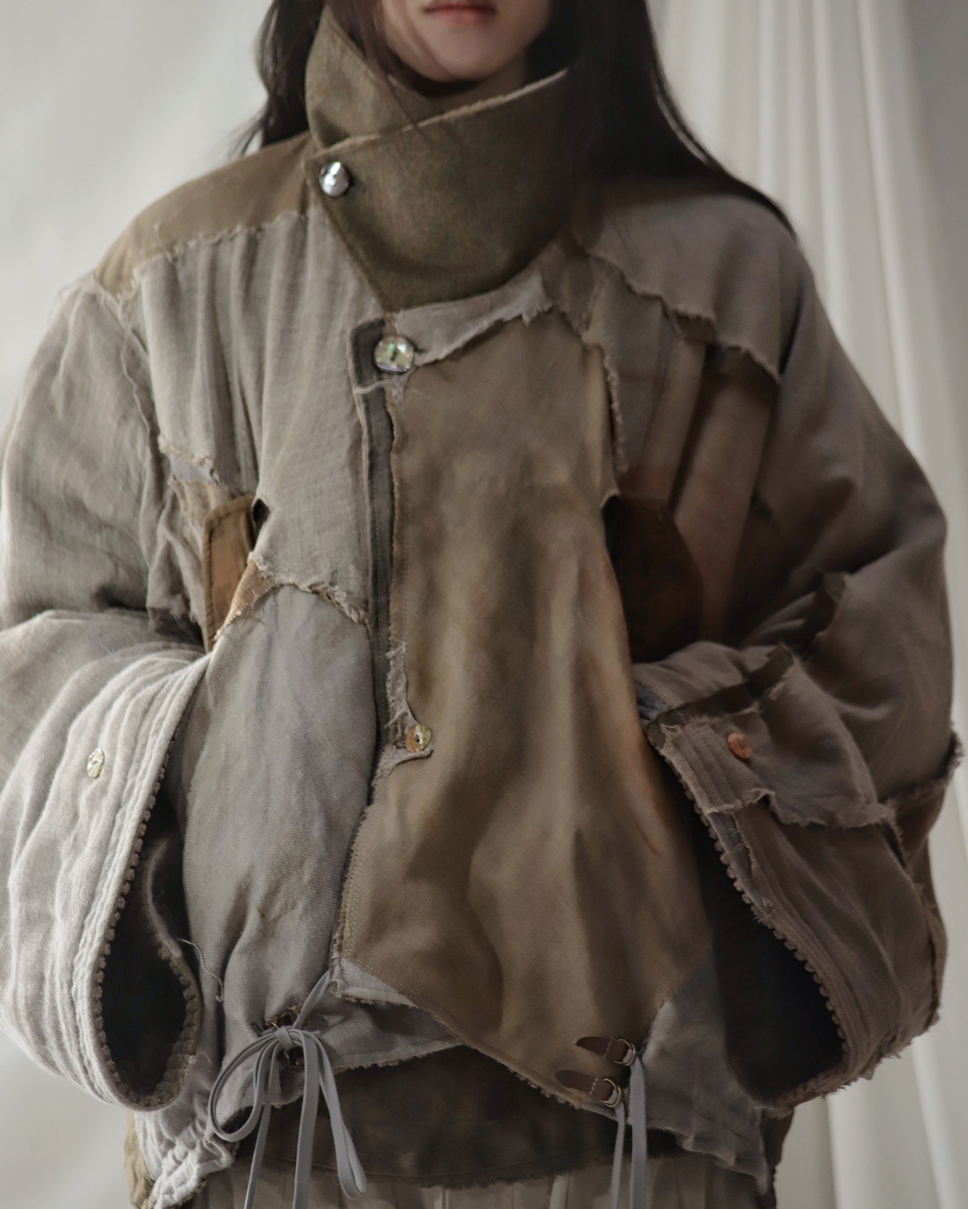 Made from a single assembled fabric created using leftover “化-bake” scraps (wool, linen, and cotton) produced this year.