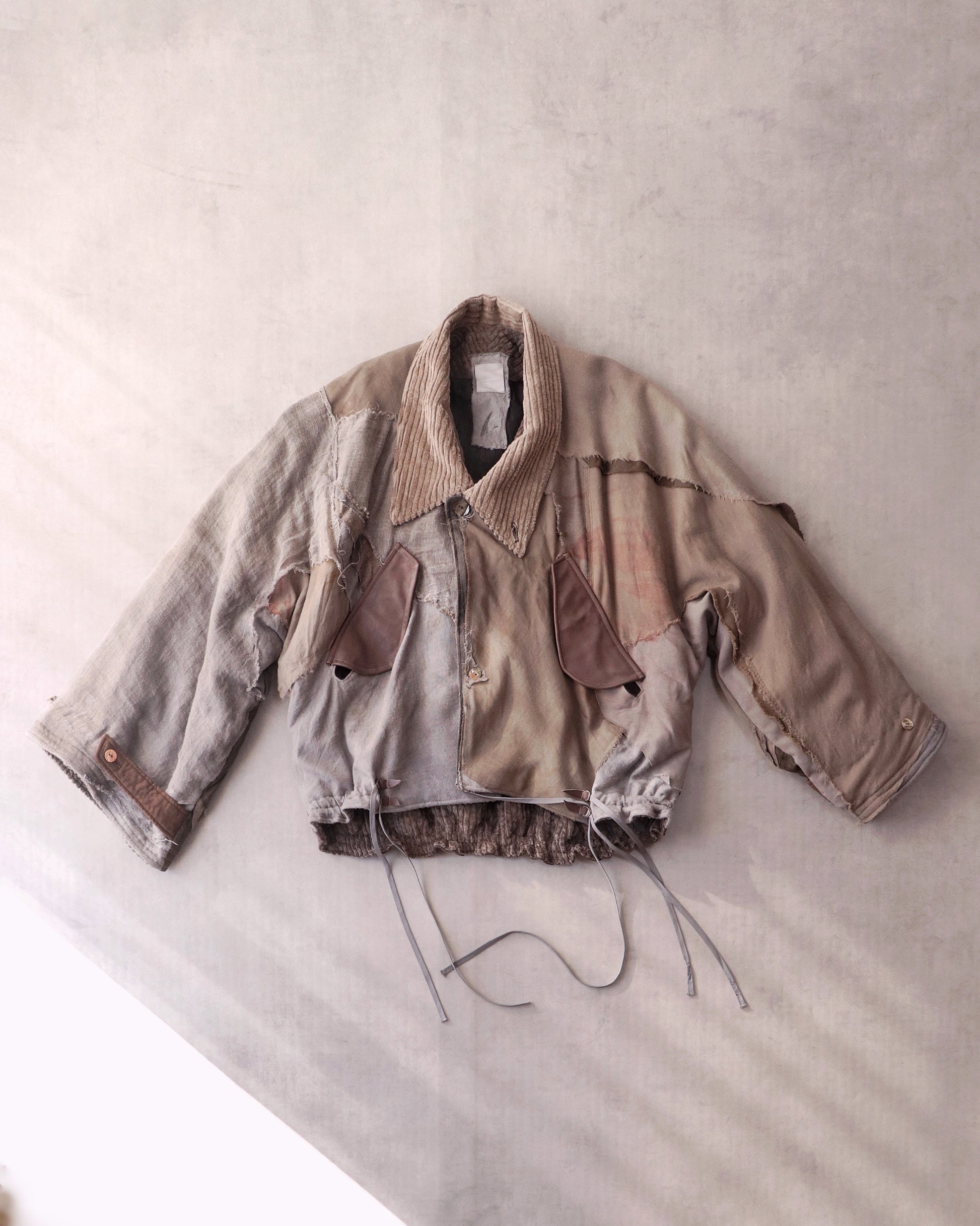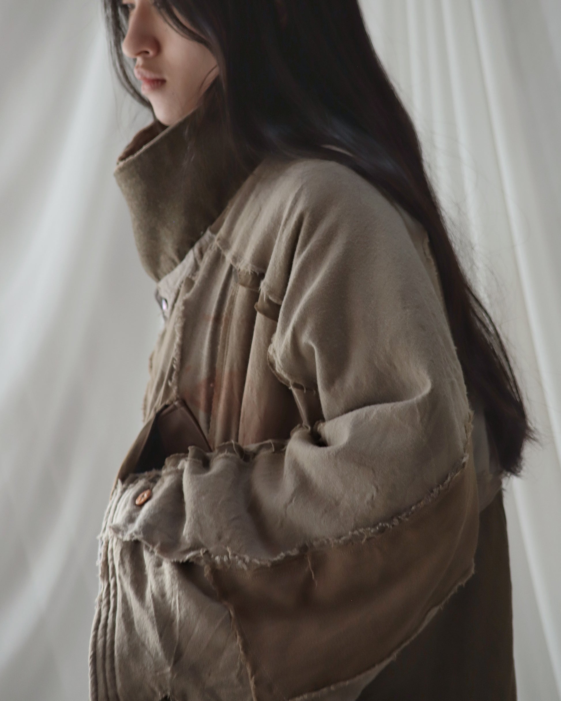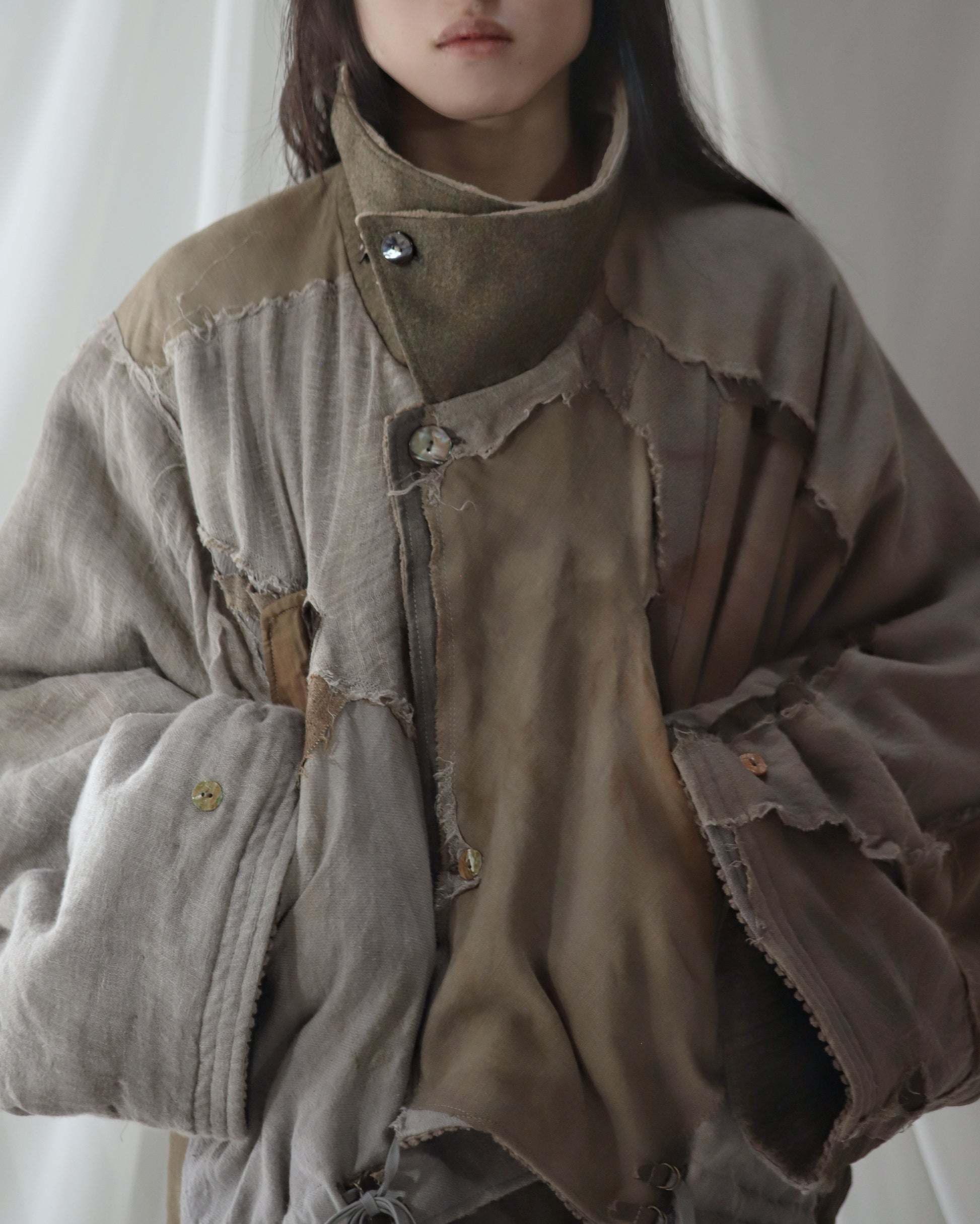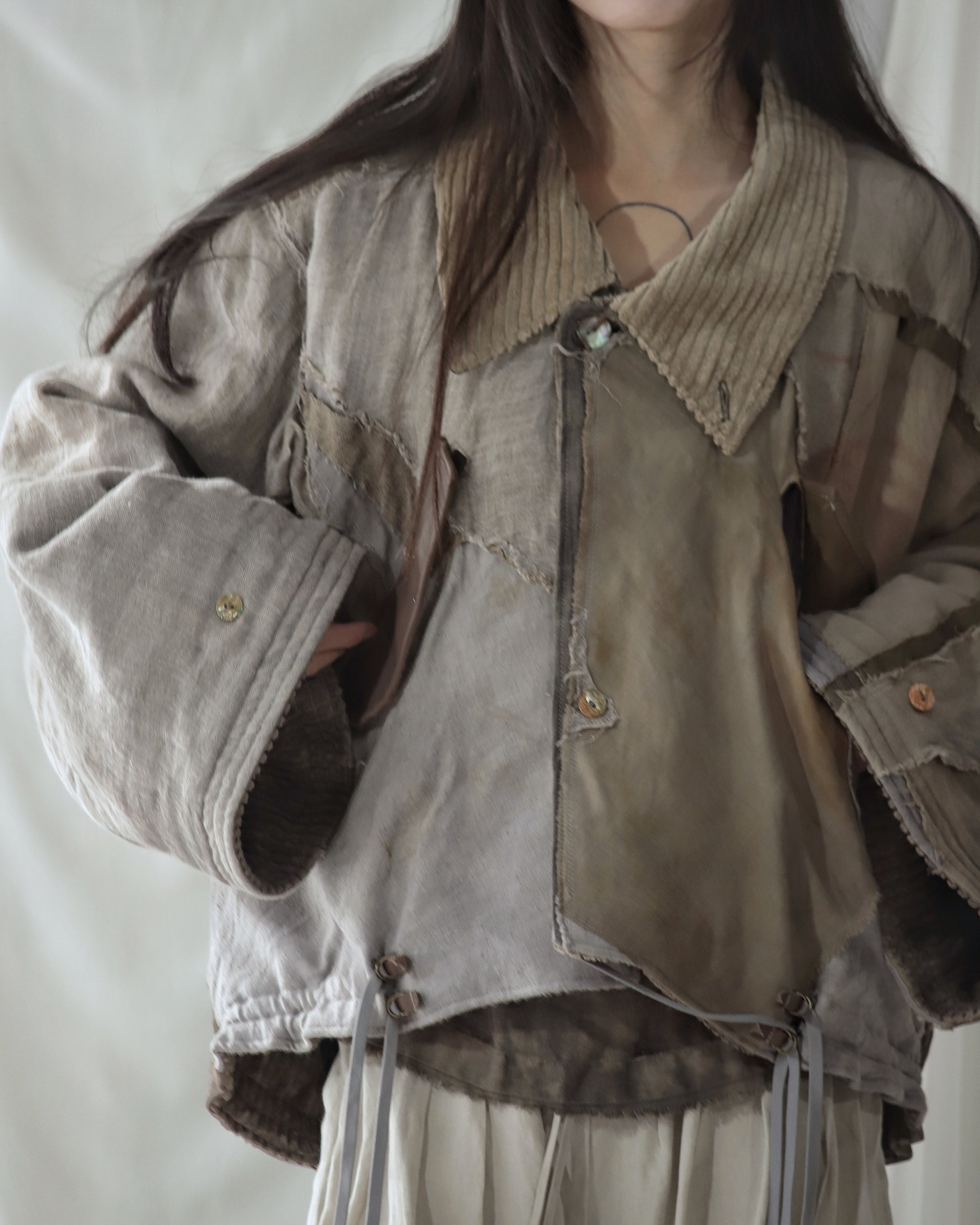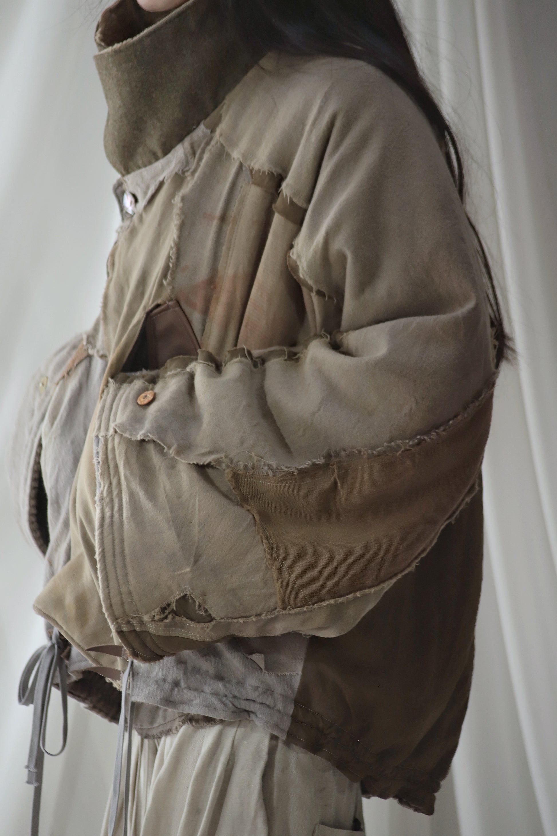 Made from a single assembled fabric created using leftover “化-bake” scraps (wool, linen, and cotton) produced this year.