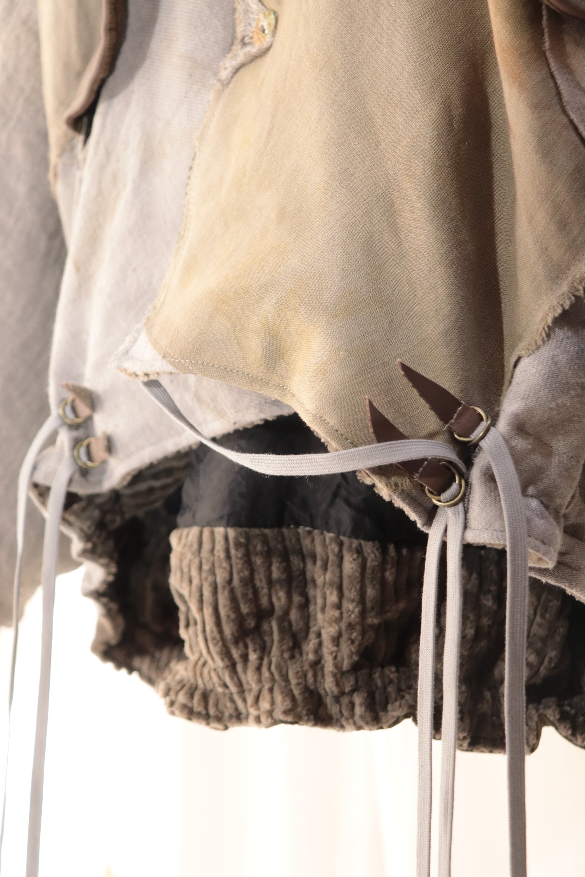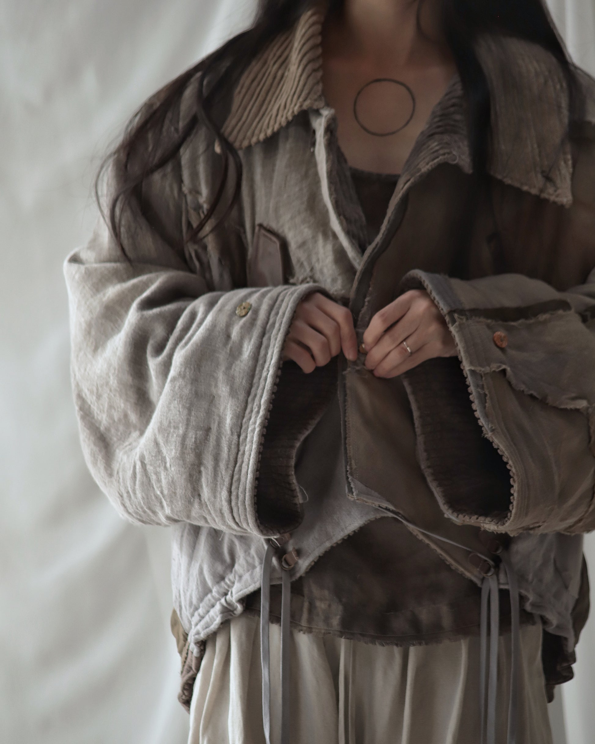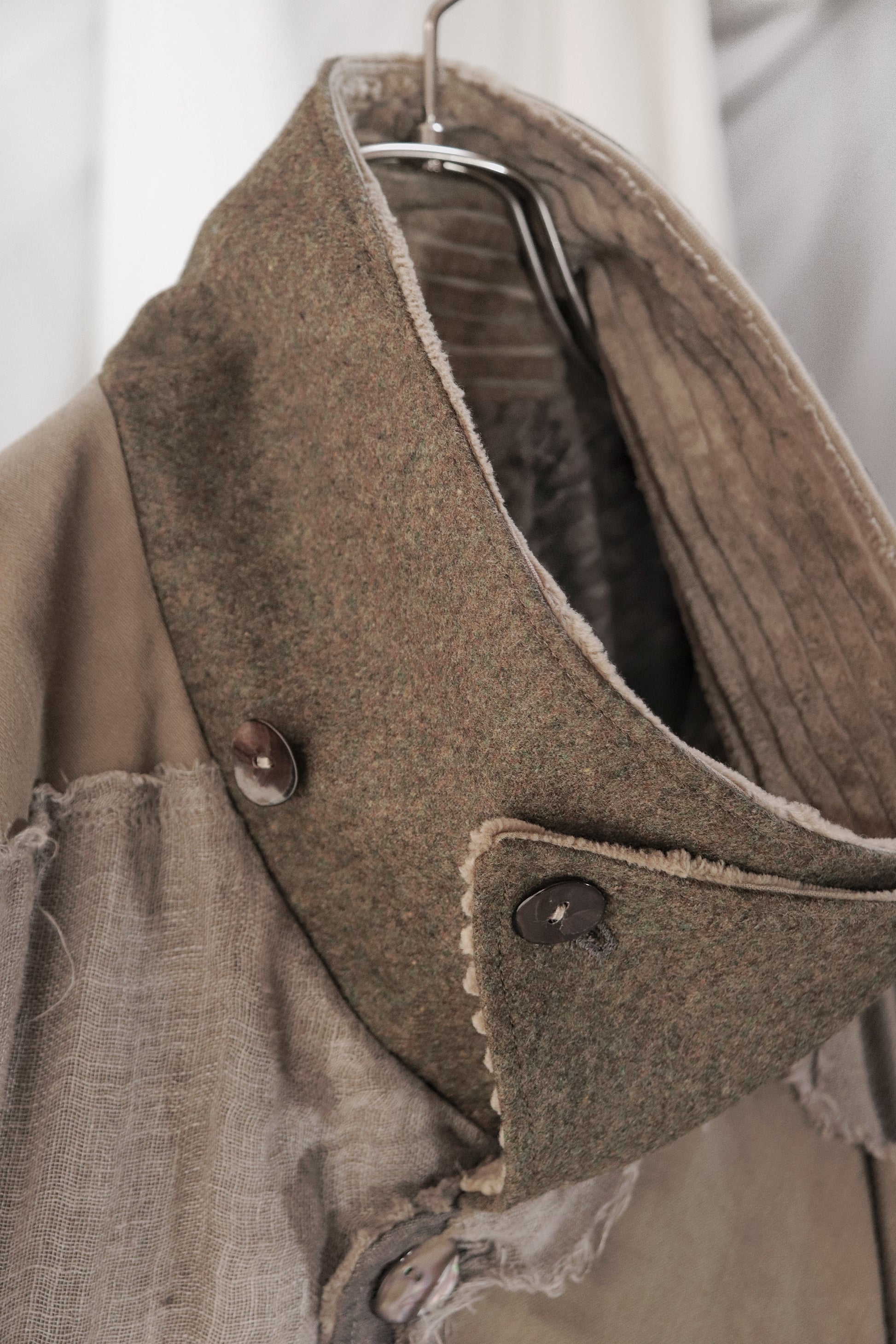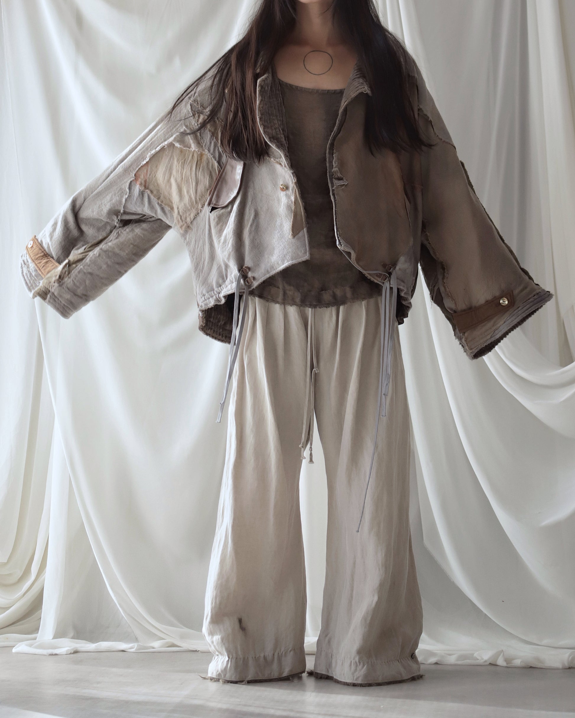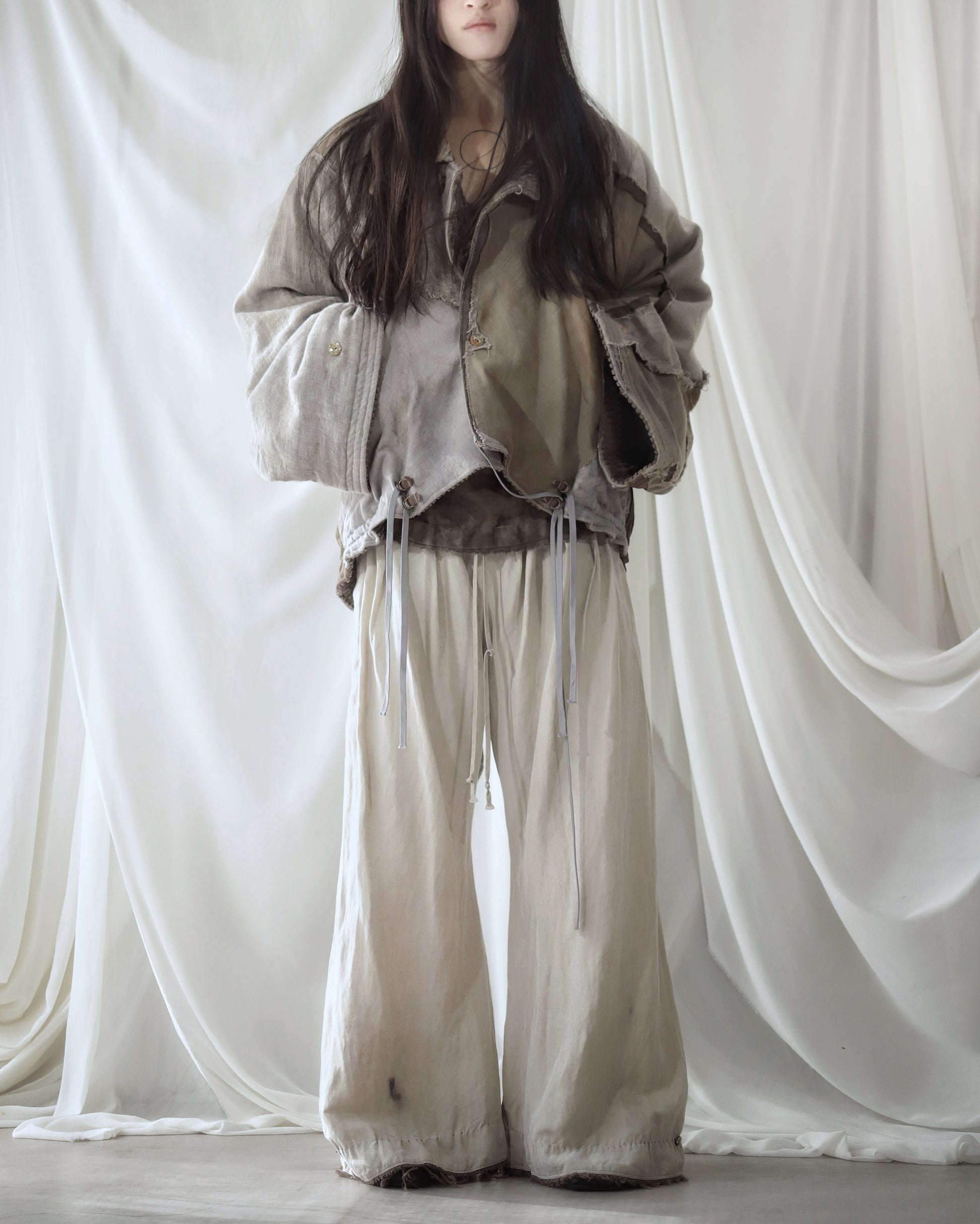 Made from a single assembled fabric created using leftover “化-bake” scraps (wool, linen, and cotton) produced this year.