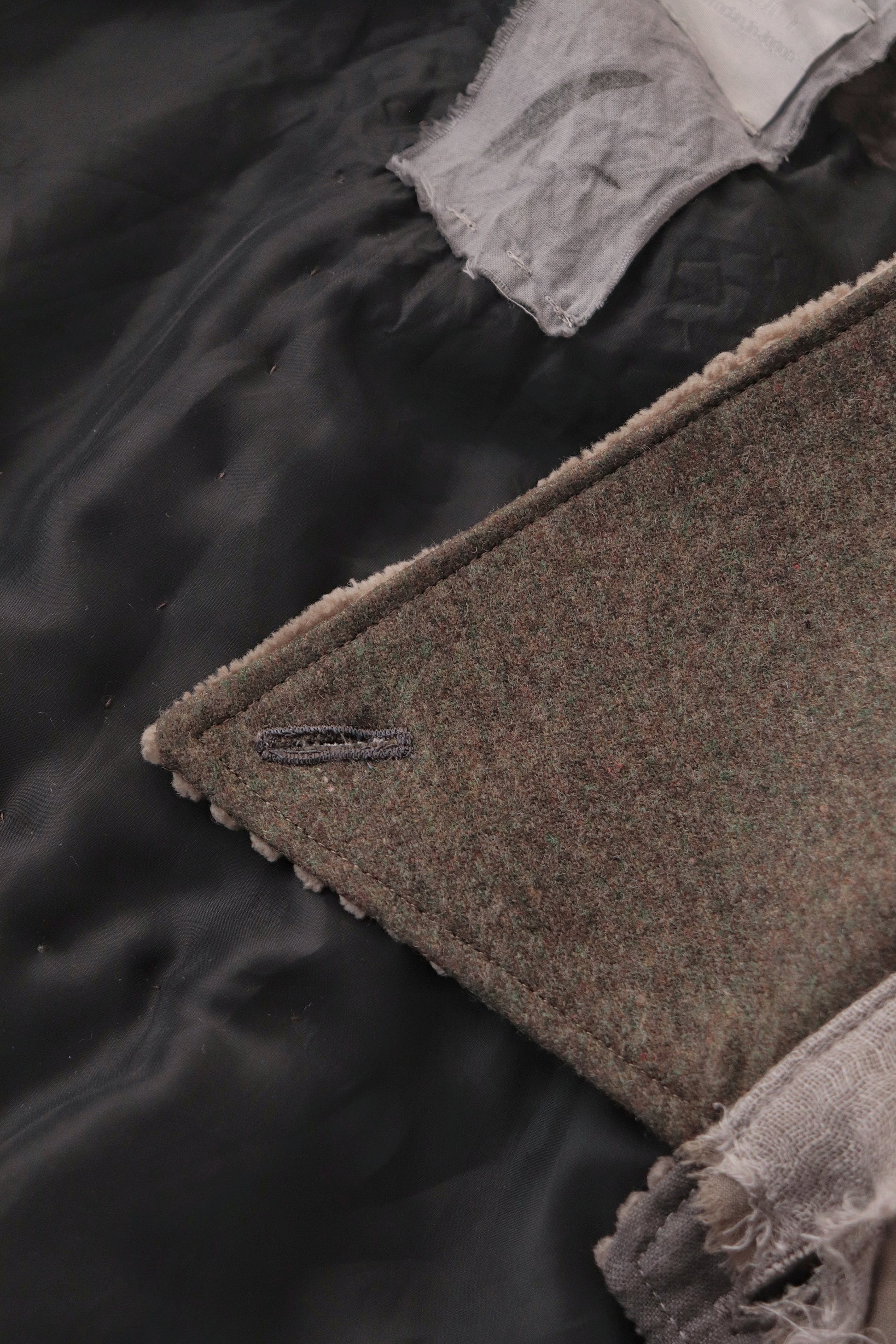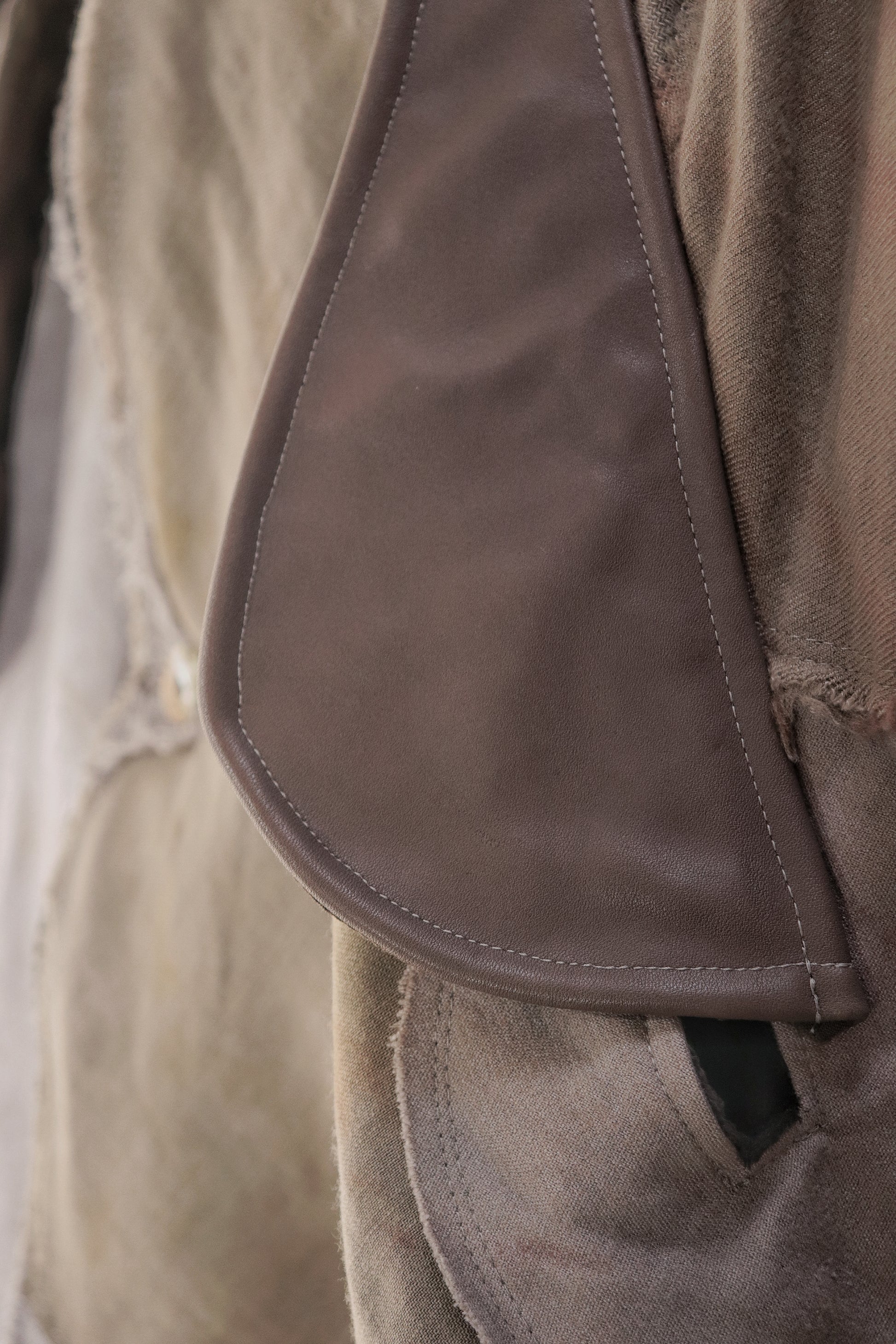 表衿、袖裏、身返し、裾裏はコーデュロイ、襟裏は縮絨ウール、ポケットのフラップは牛革を使用