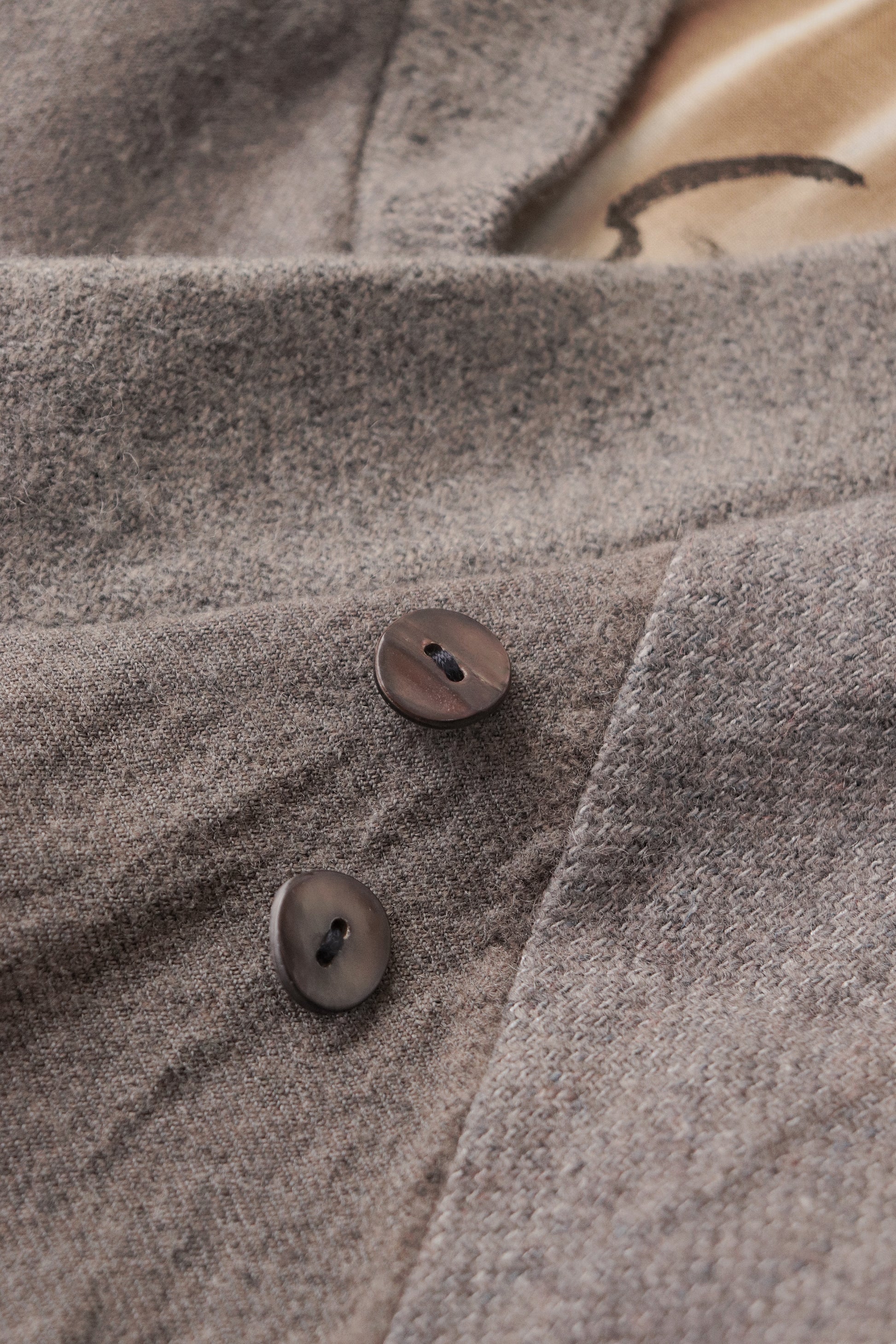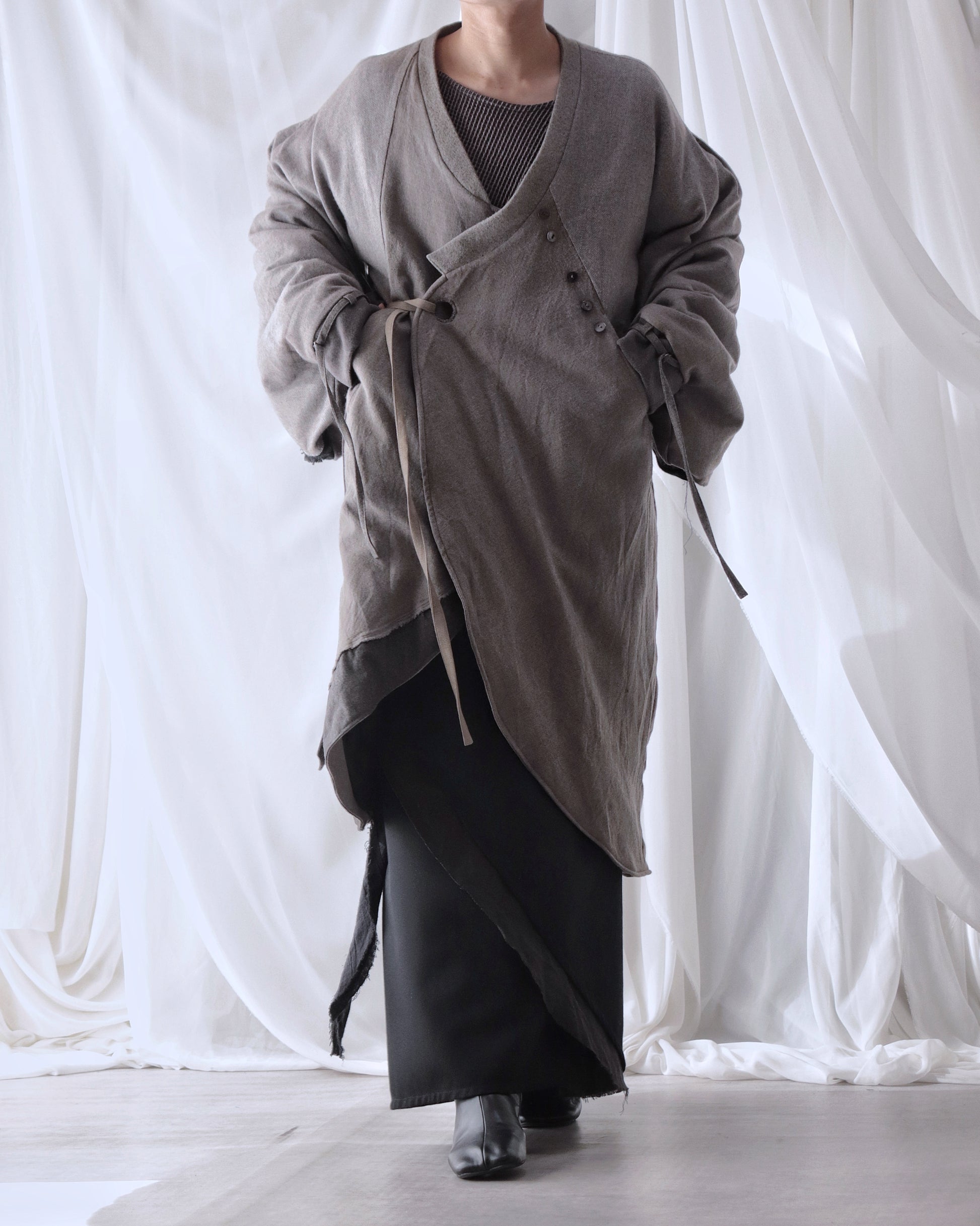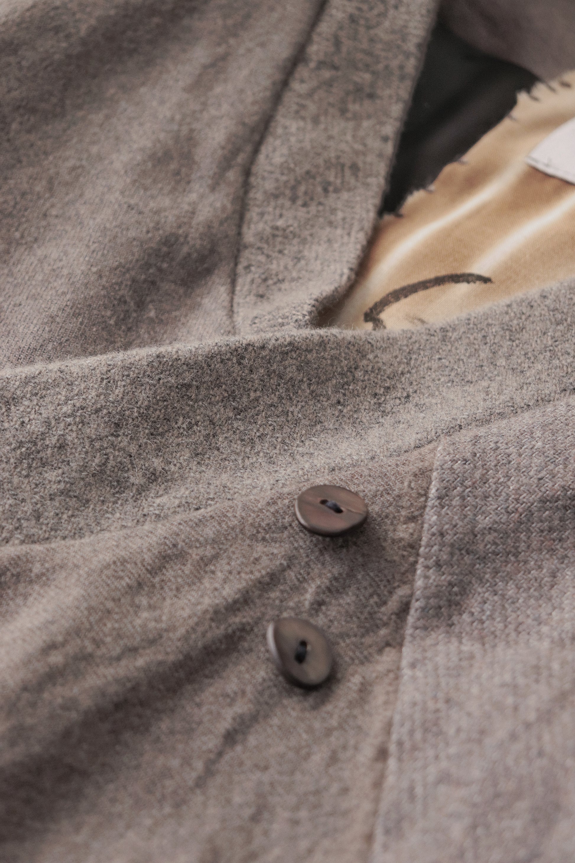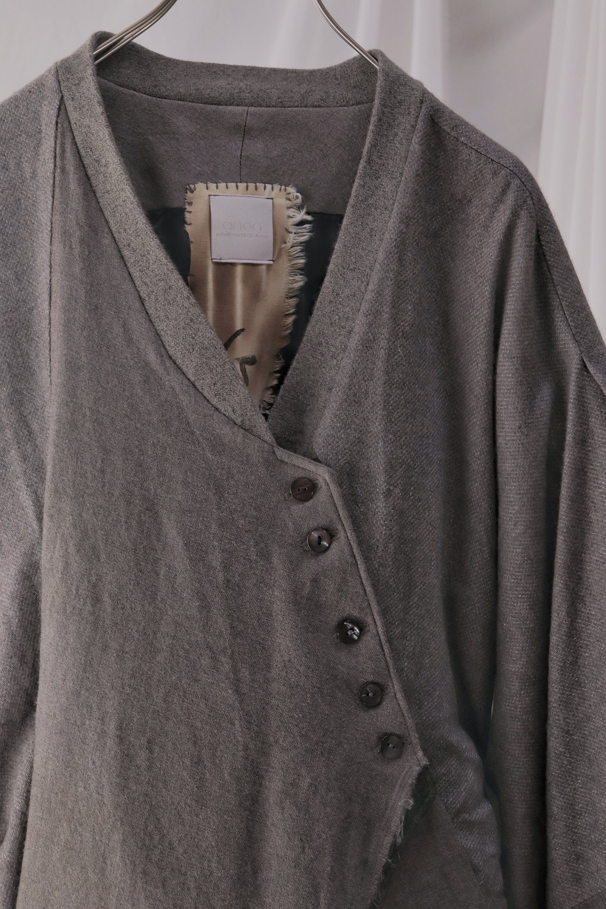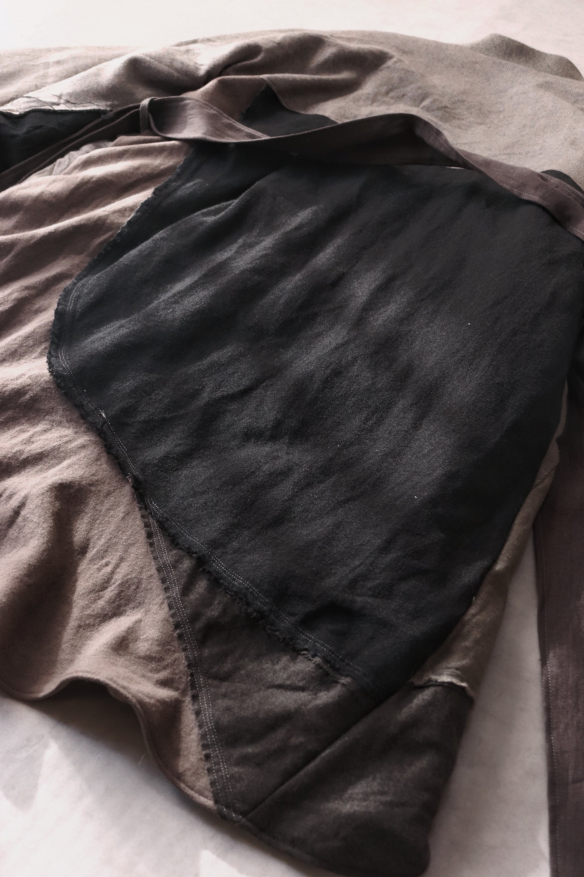8種の、柔らかく軽めのウールを合わせ、染め、中綿をキュプラ裏地で縫い閉じた総裏地付き。