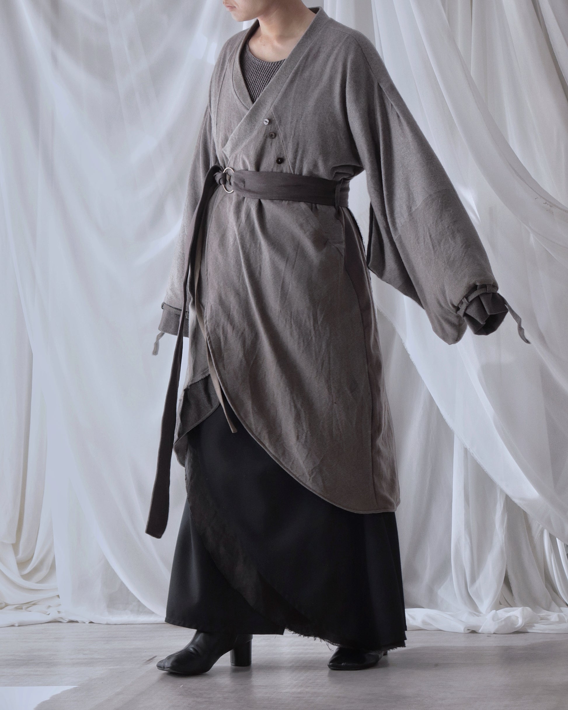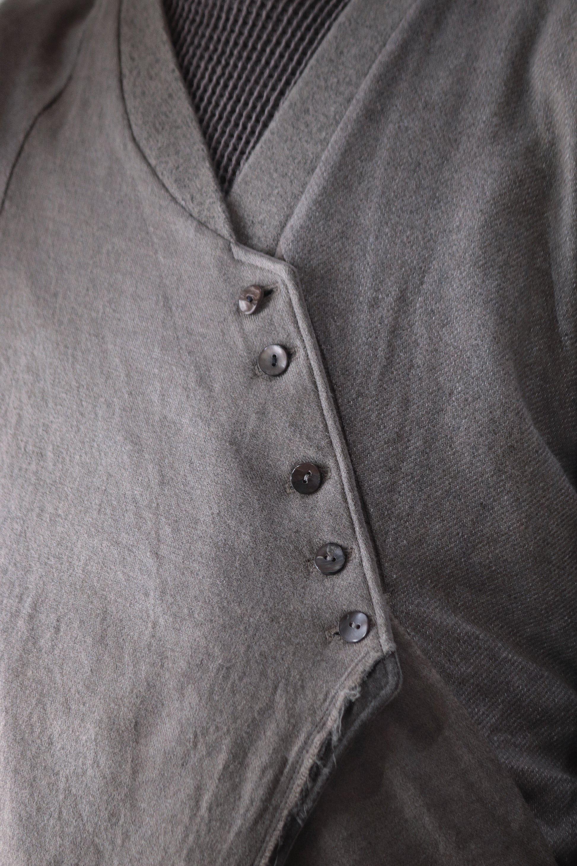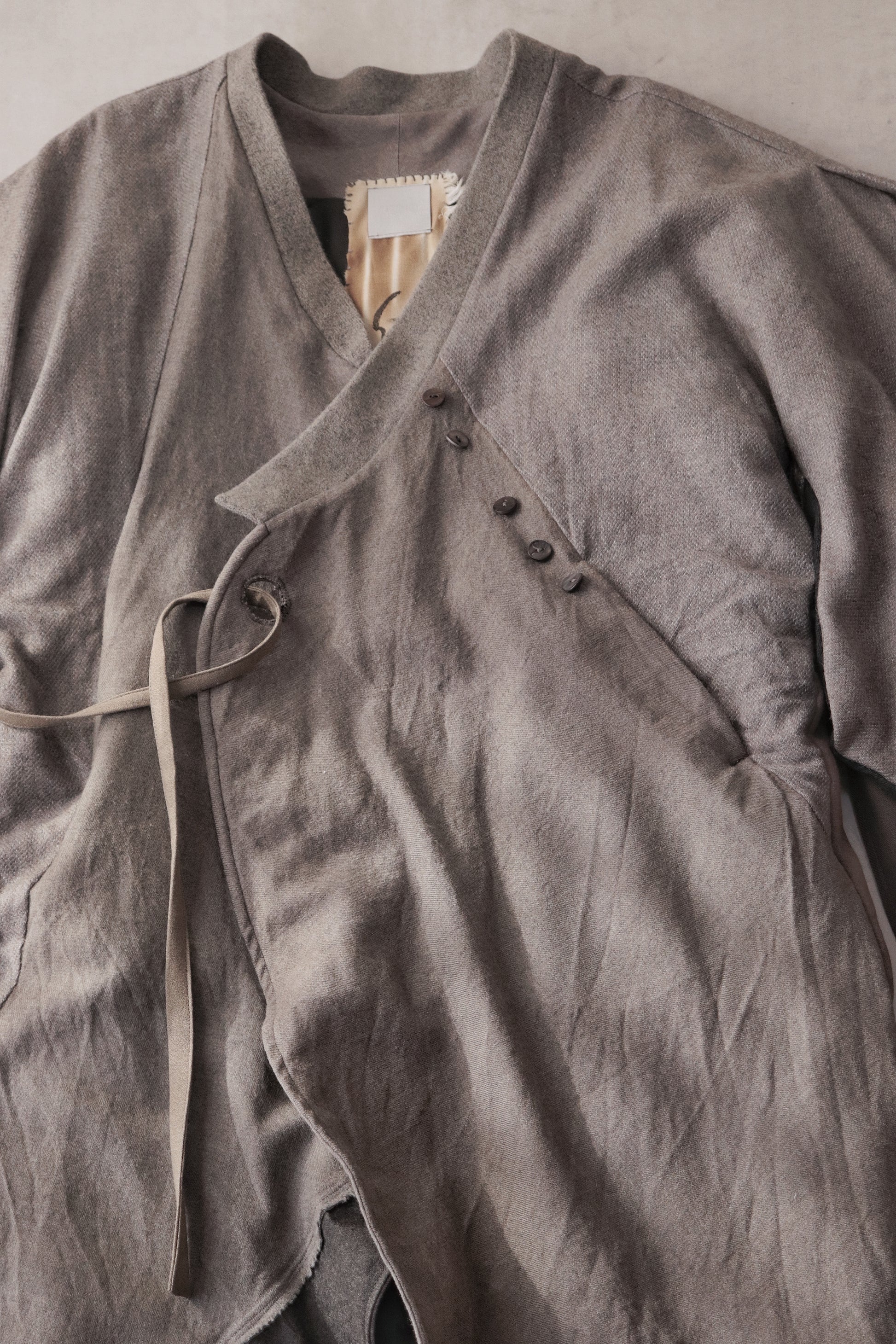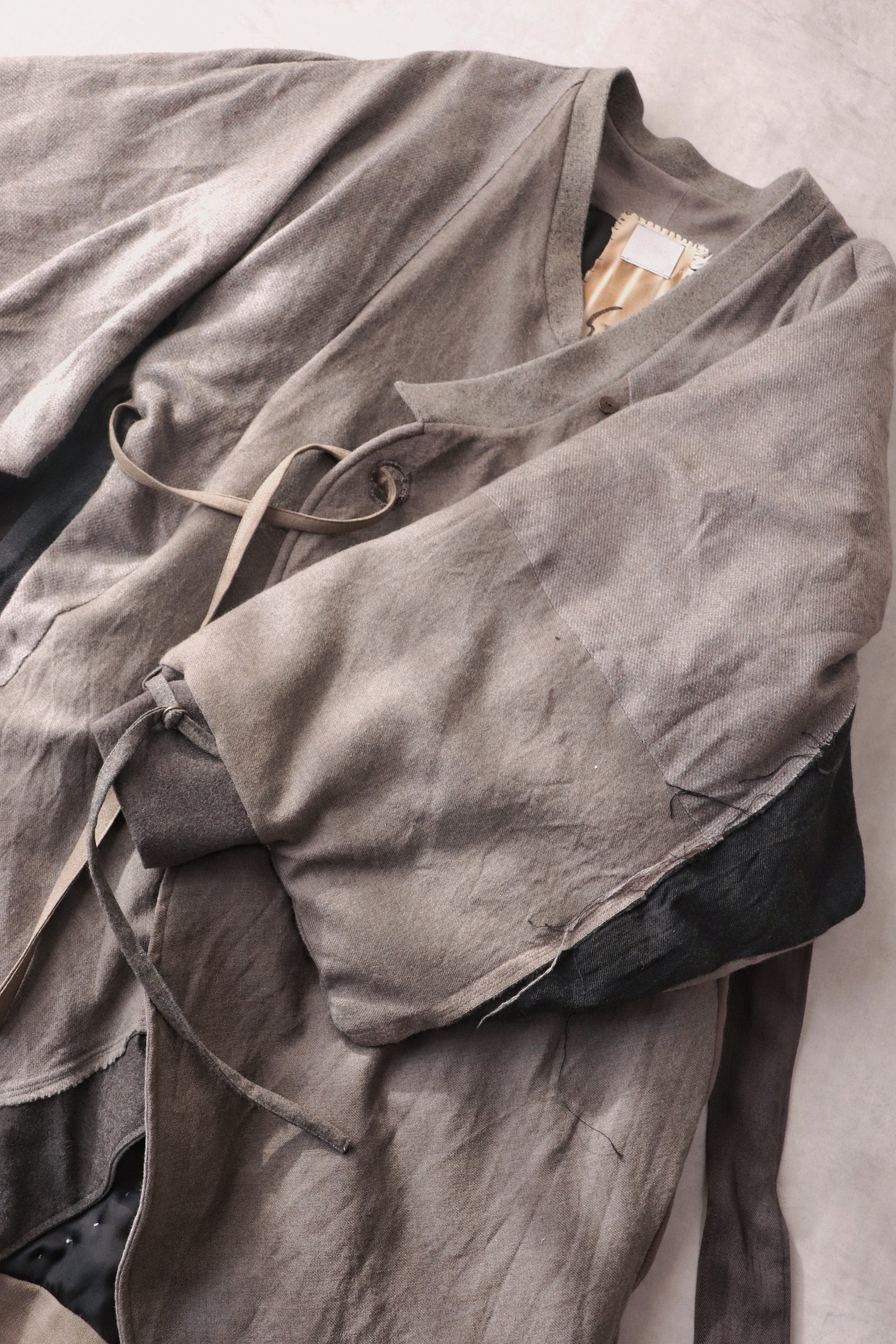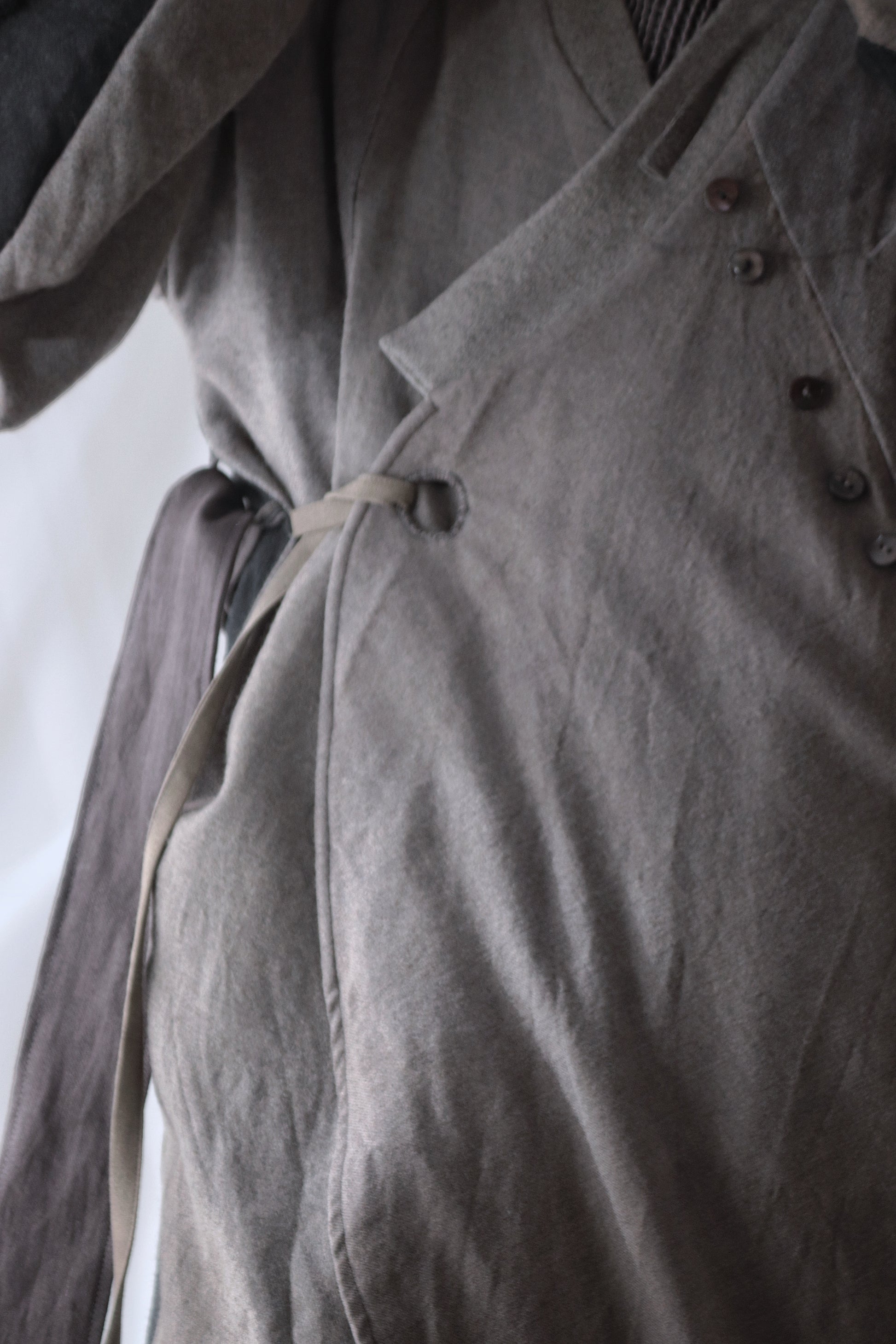 8種の、柔らかく軽めのウールを合わせ、染め、中綿をキュプラ裏地で縫い閉じた総裏地付き。