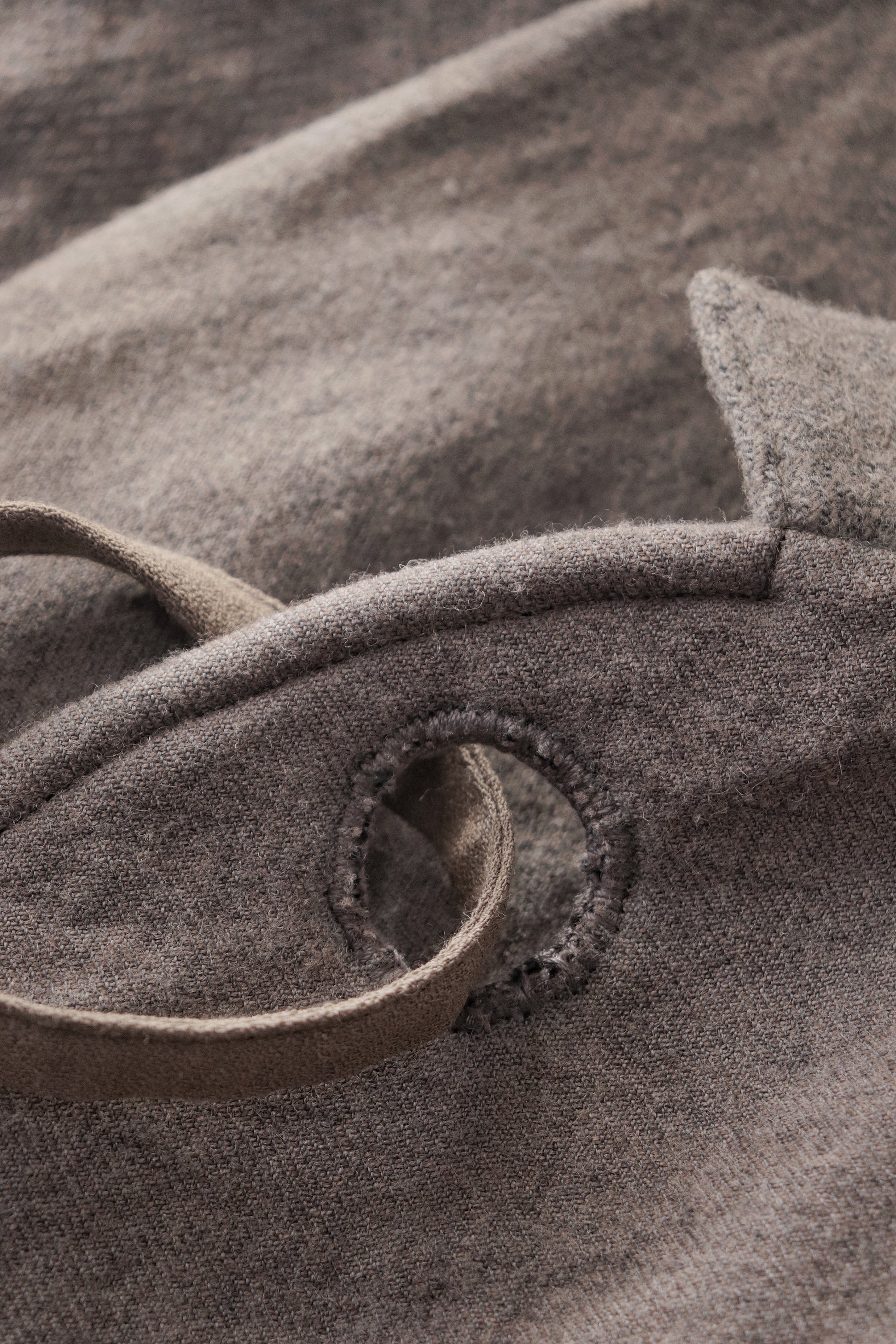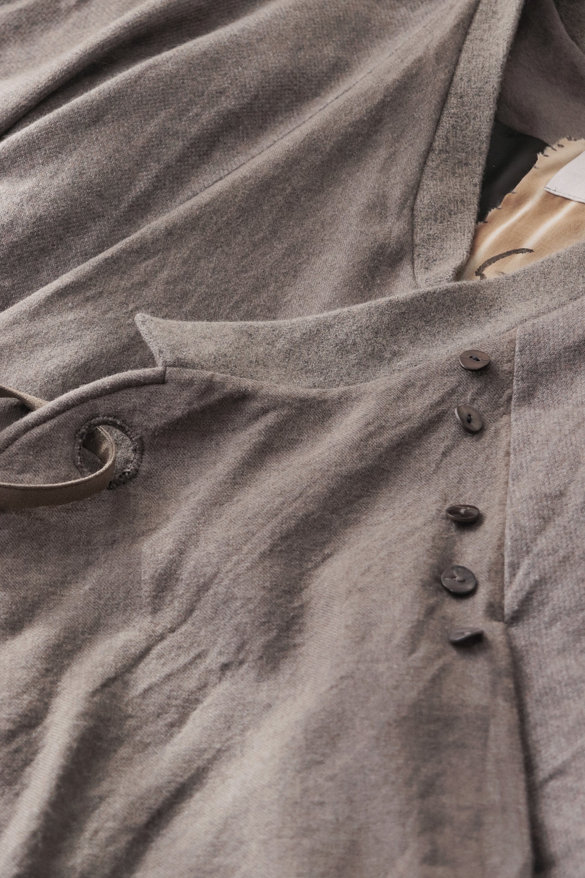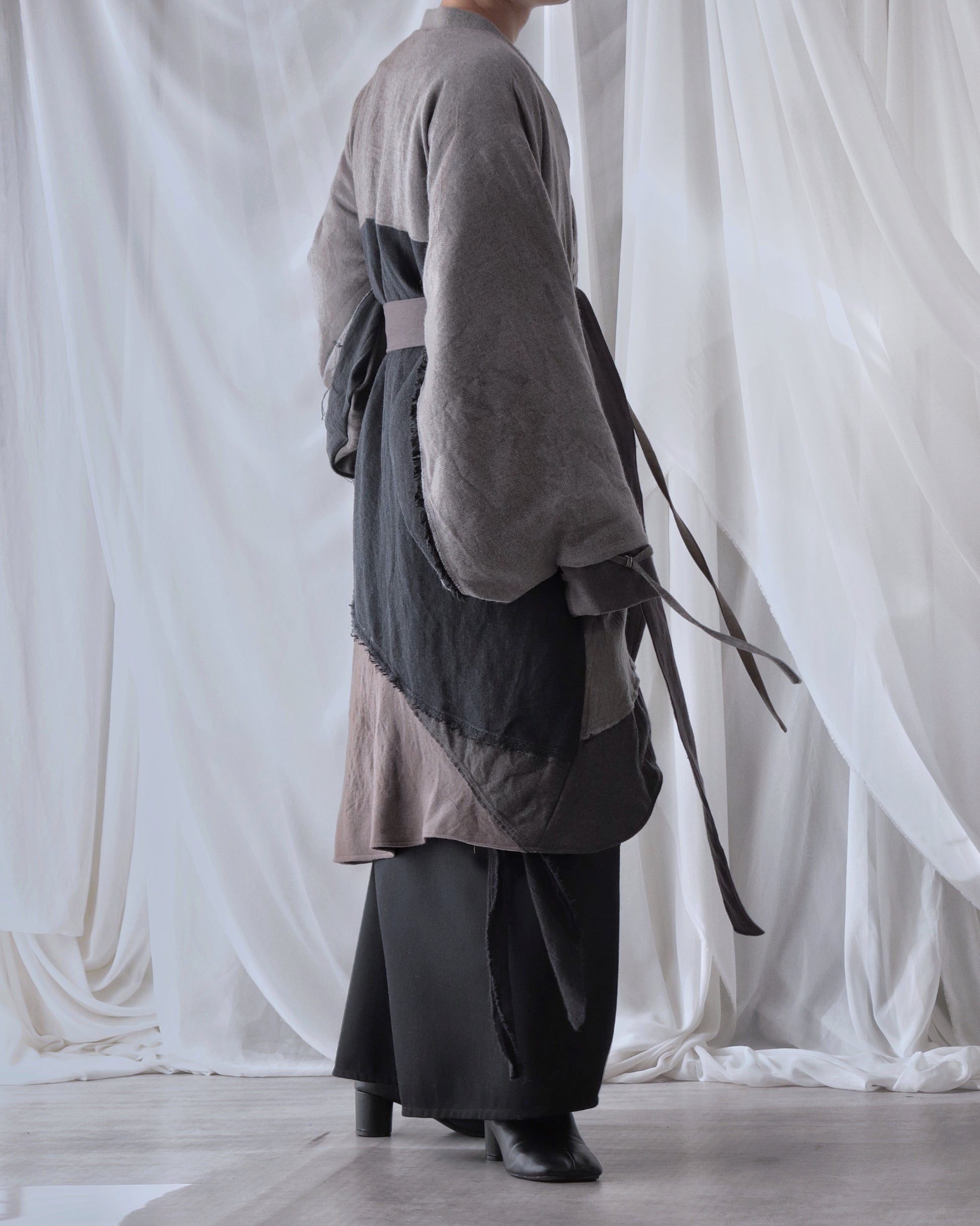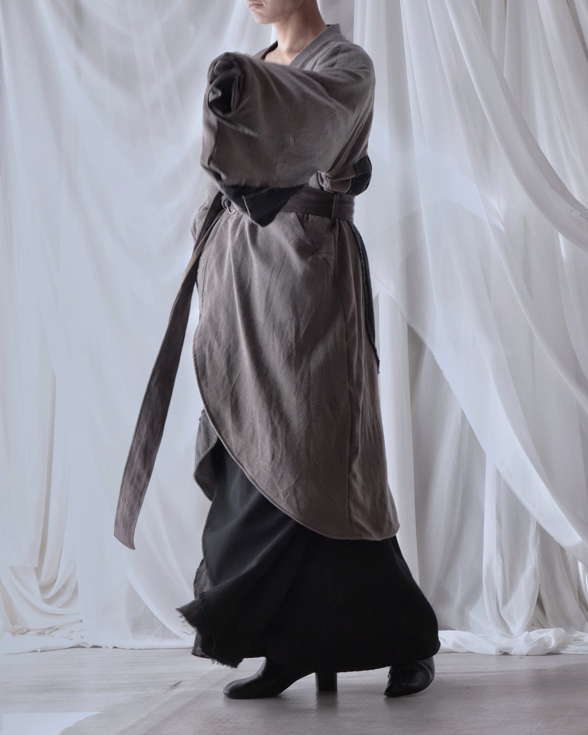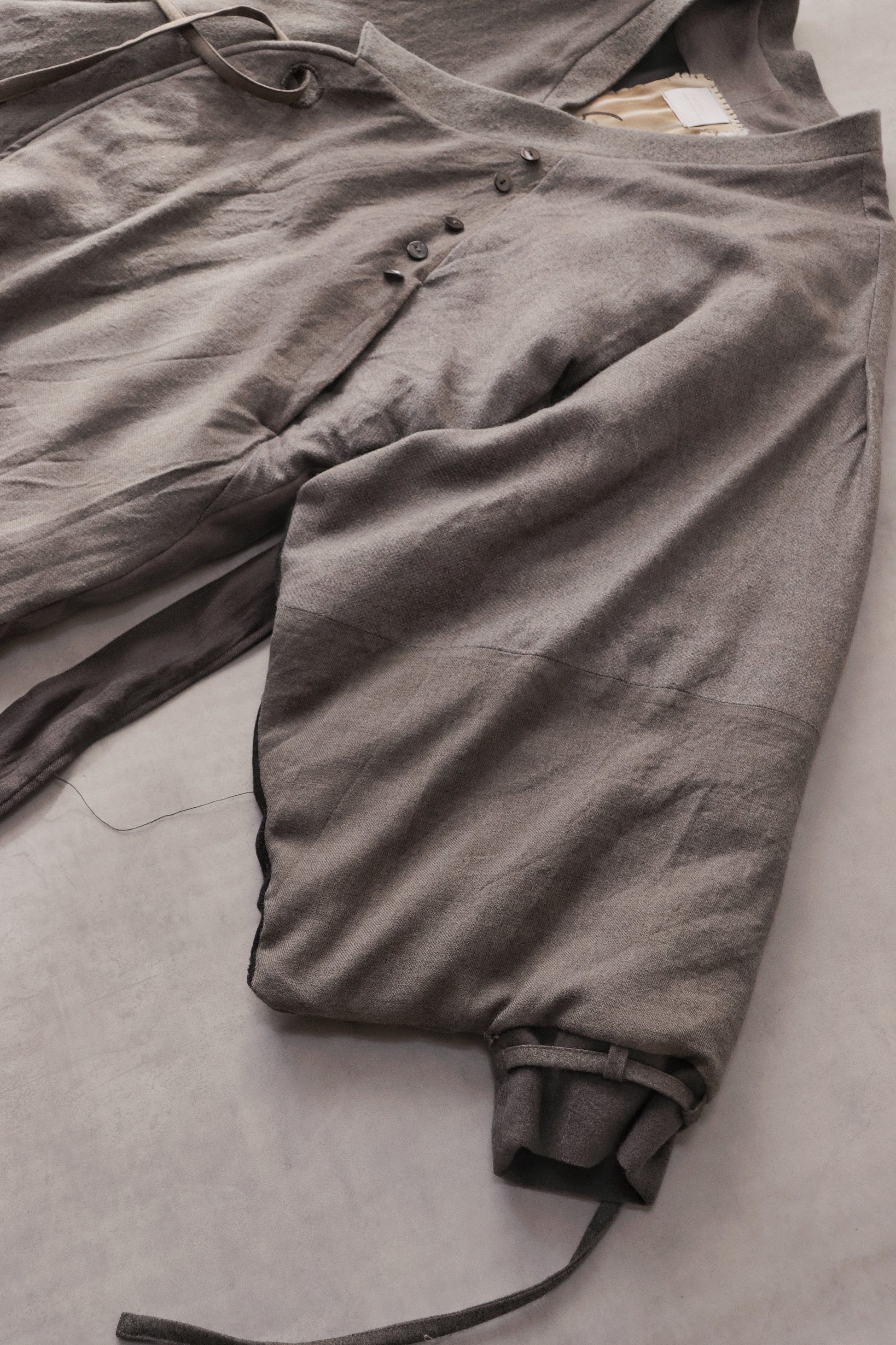 8種の、柔らかく軽めのウールを合わせ、染め、中綿をキュプラ裏地で縫い閉じた総裏地付き。