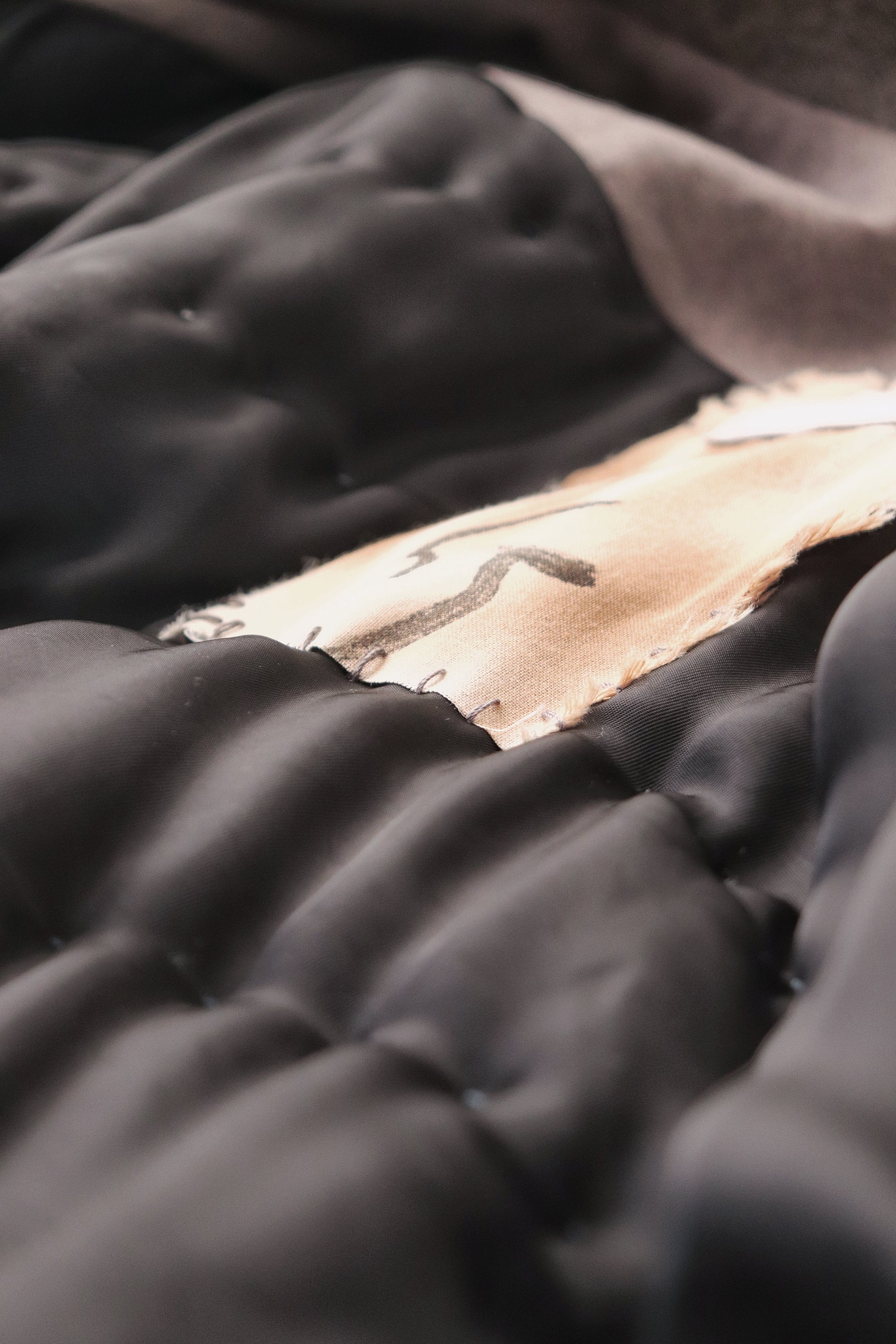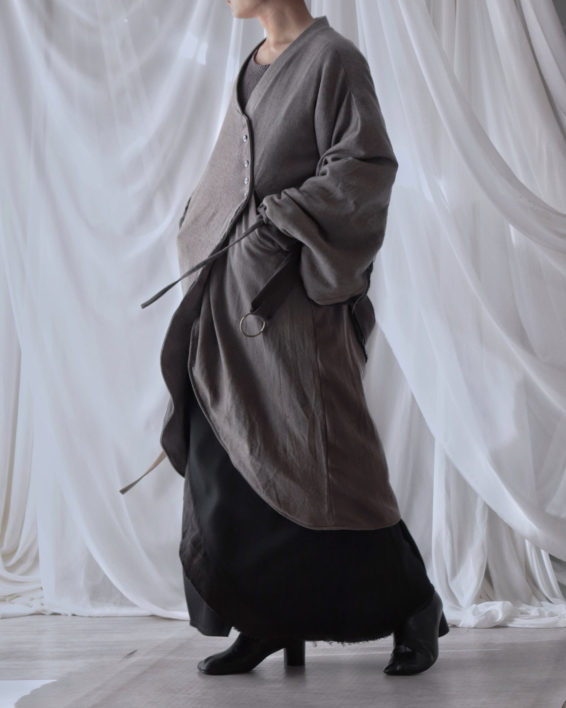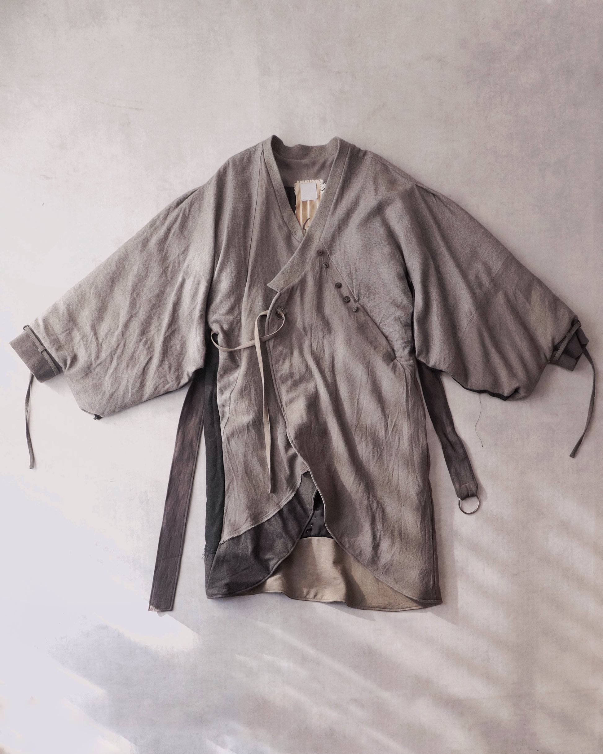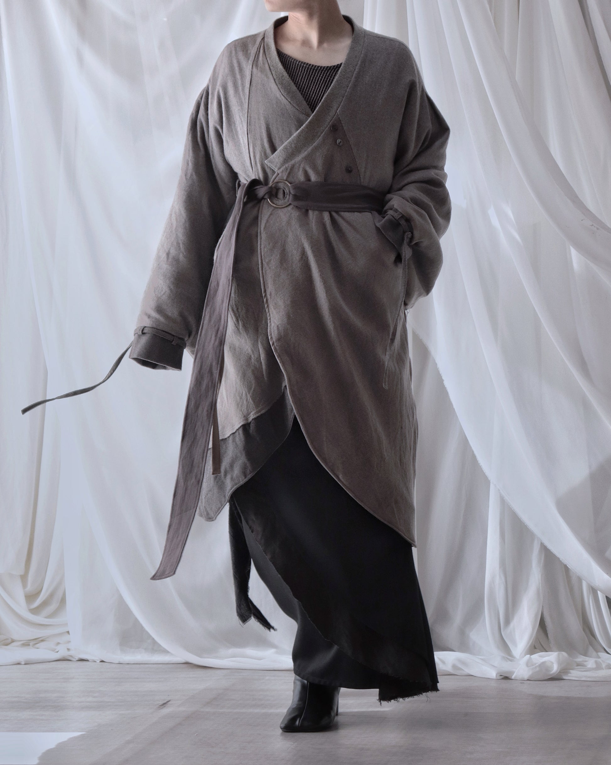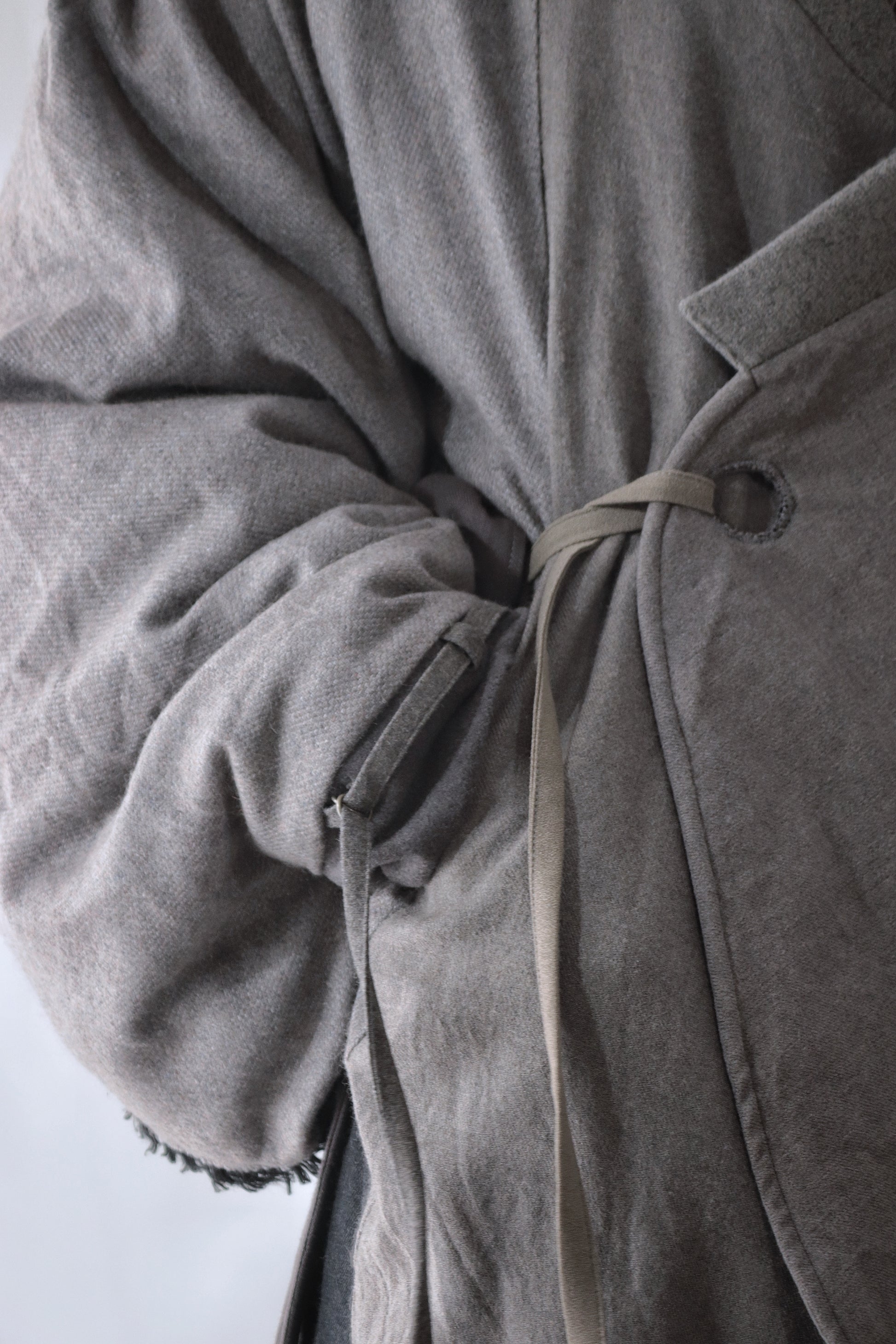 It is fully lined, made by combining and dyeing eight types of soft, lightweight wool, with padding quilted and enclosed in a cupro lining.
