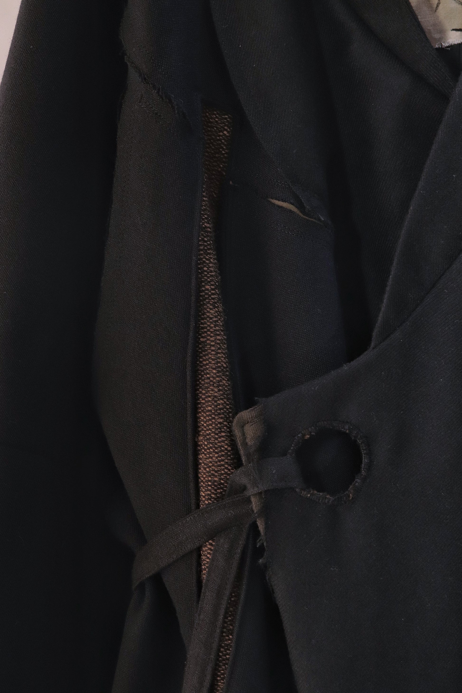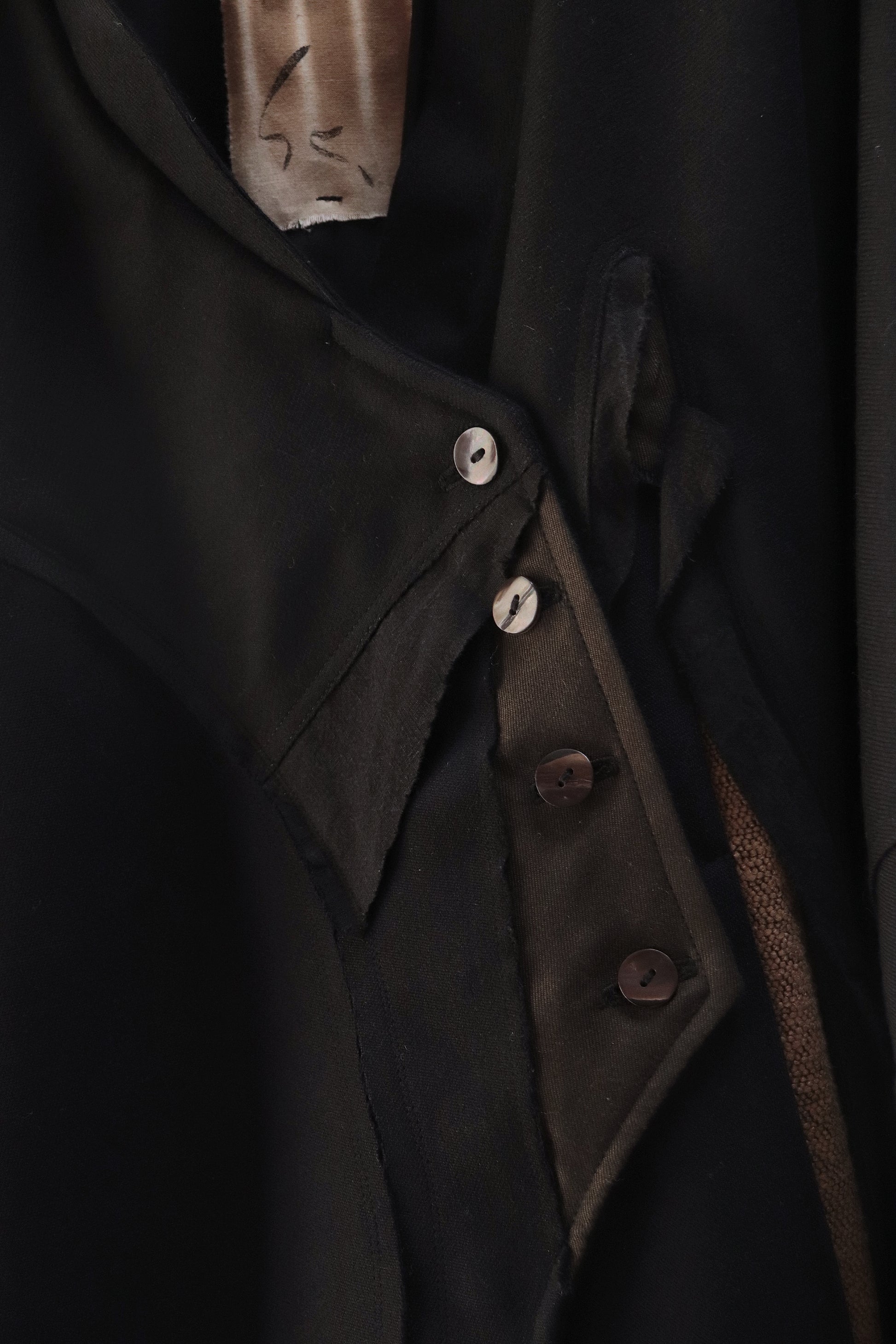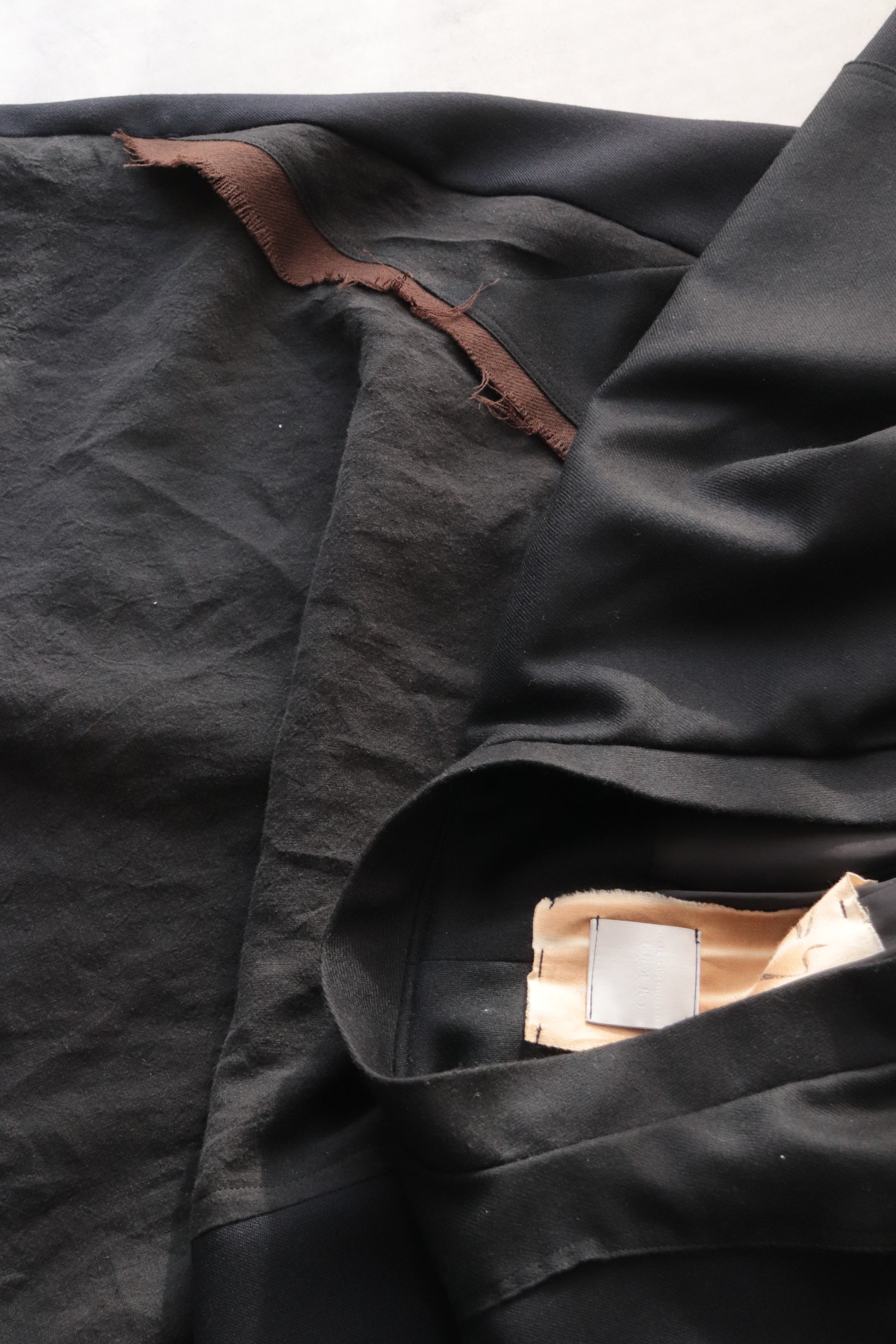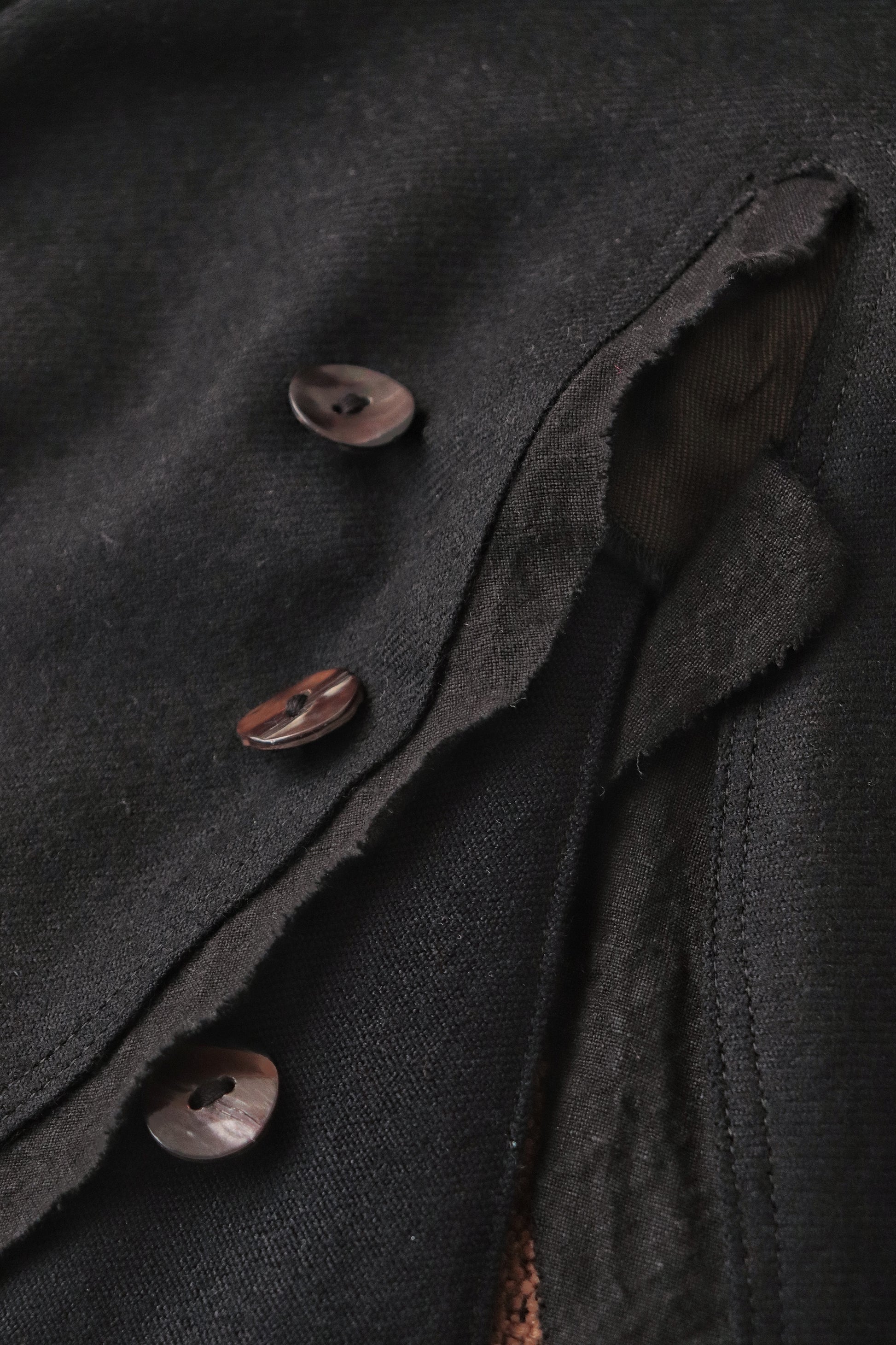 The sleeve linings are rayon velveteen, and the left back panel uses linen.
