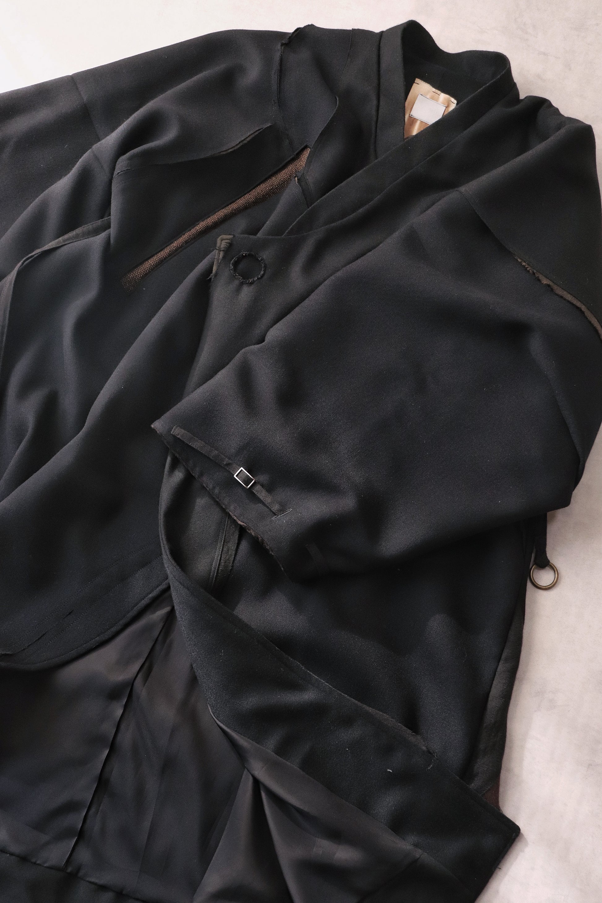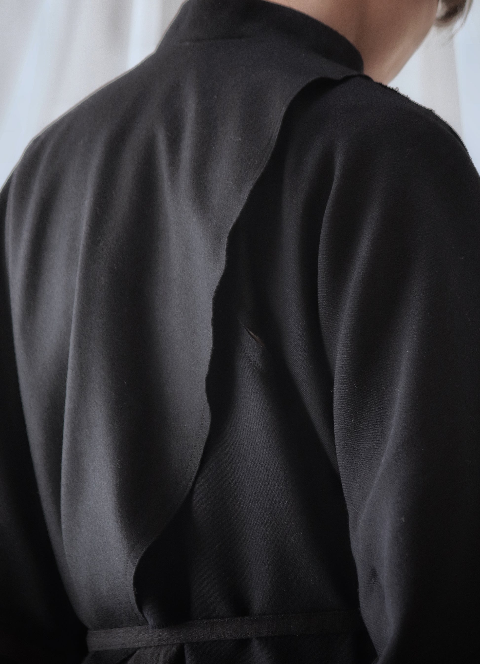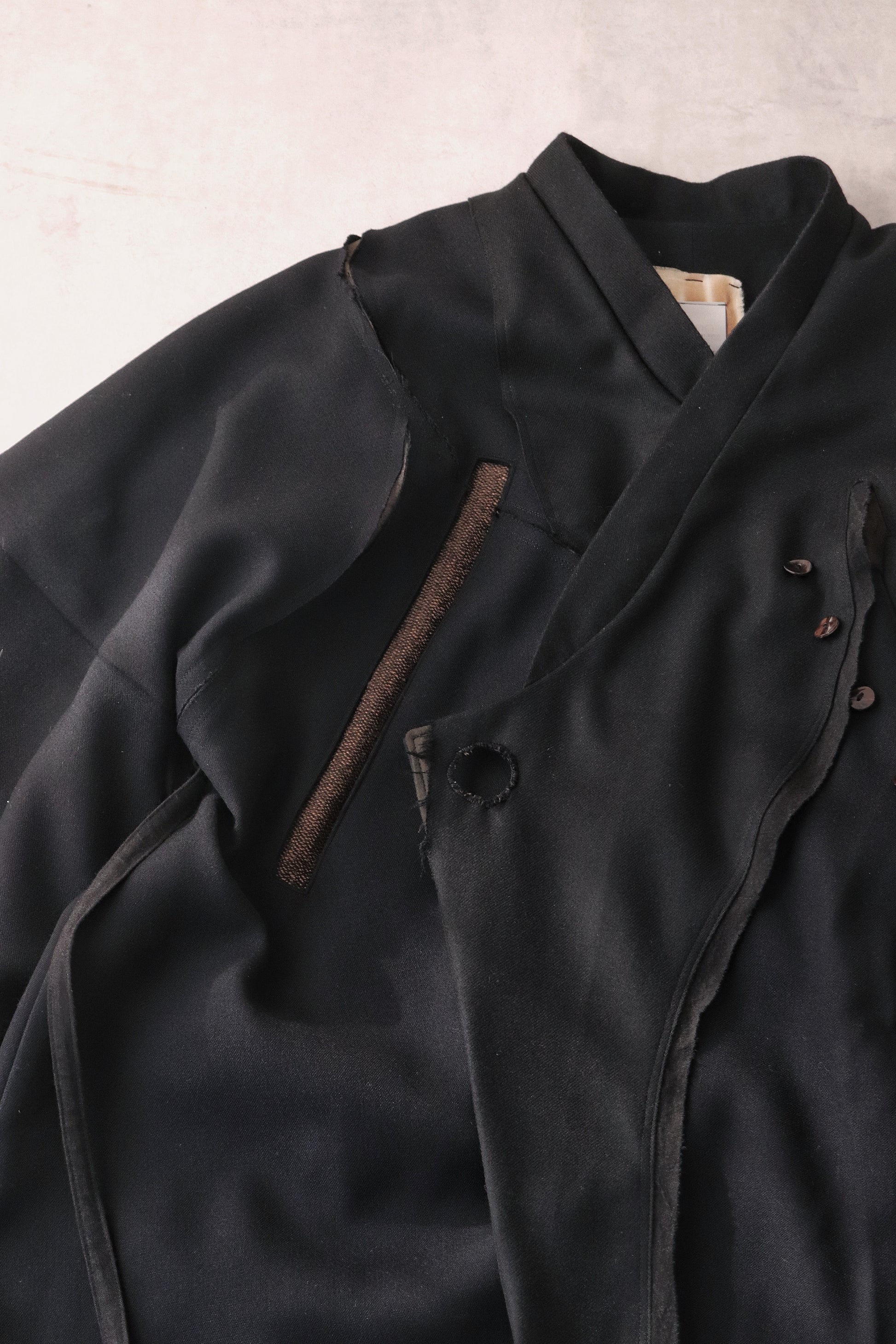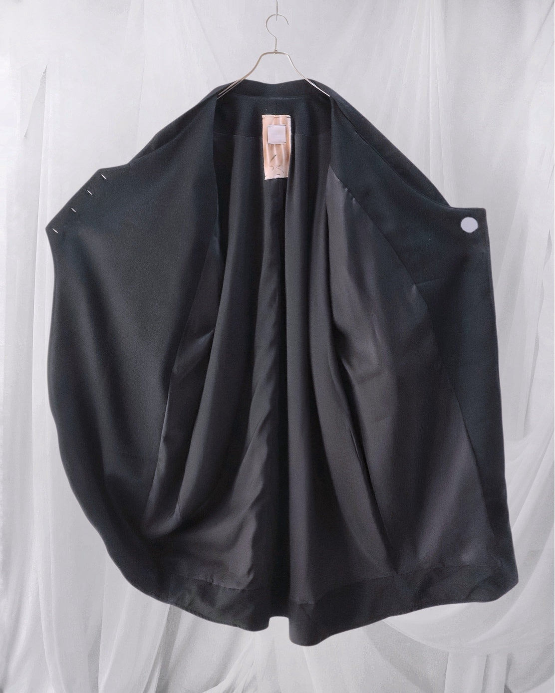 The sleeve linings are rayon velveteen, and the left back panel uses linen.