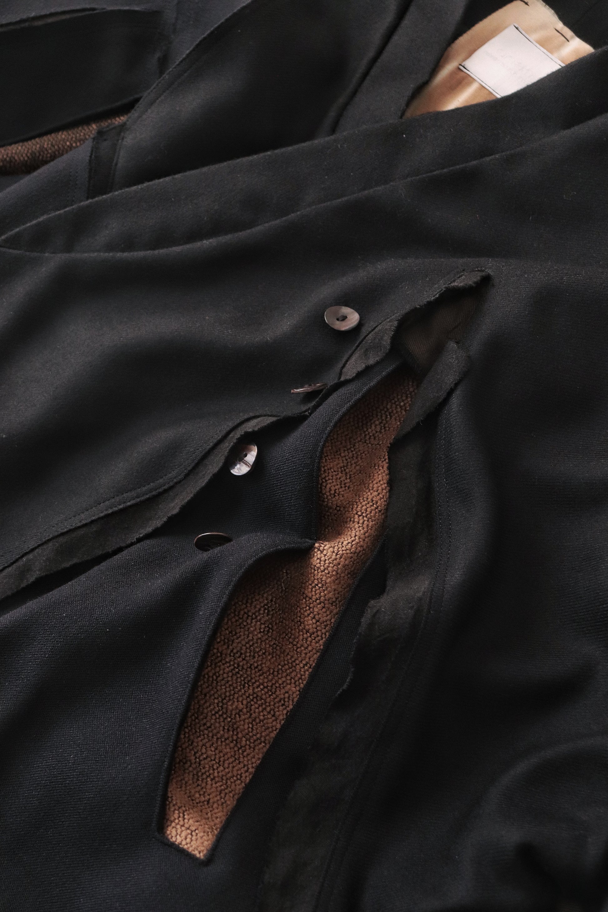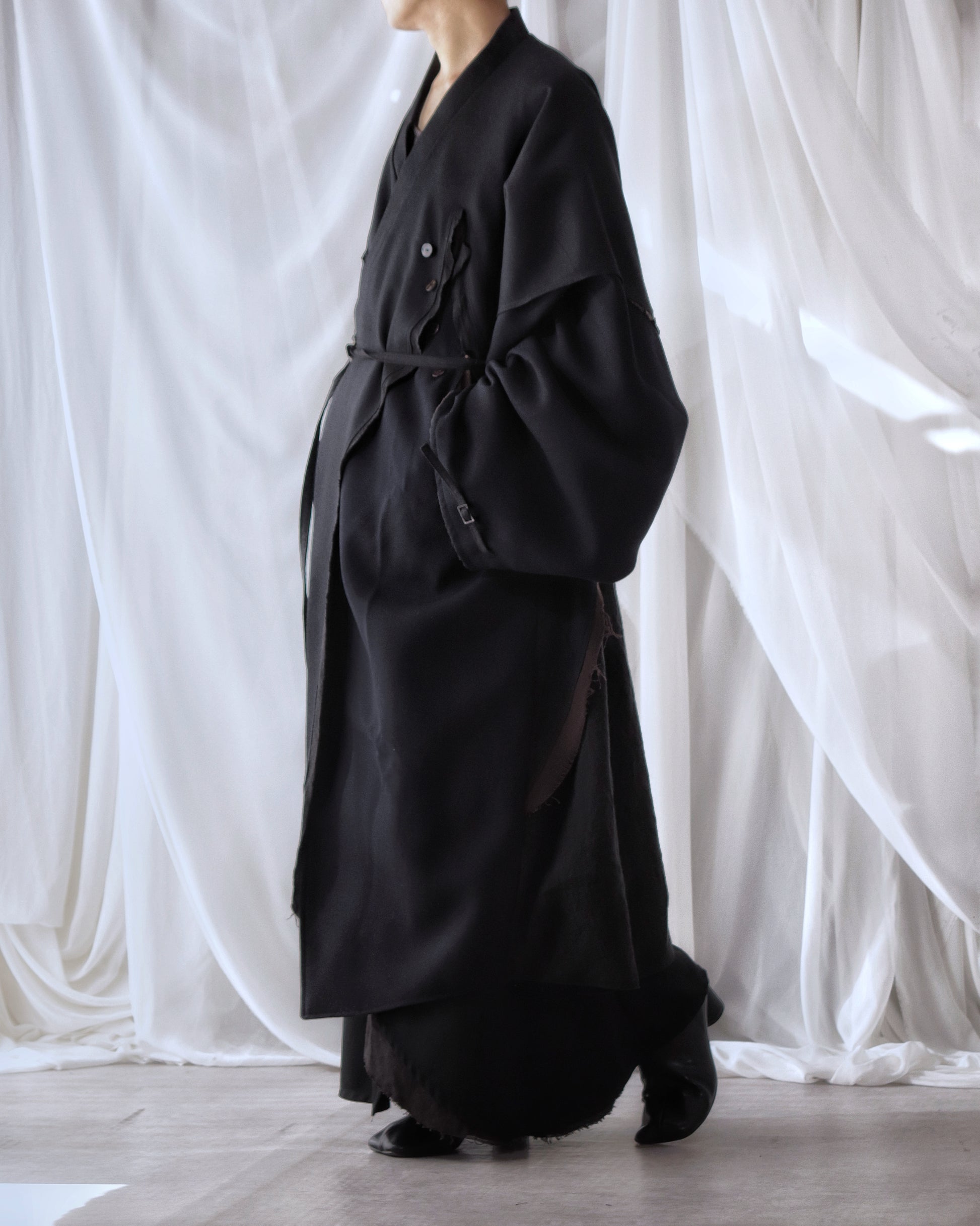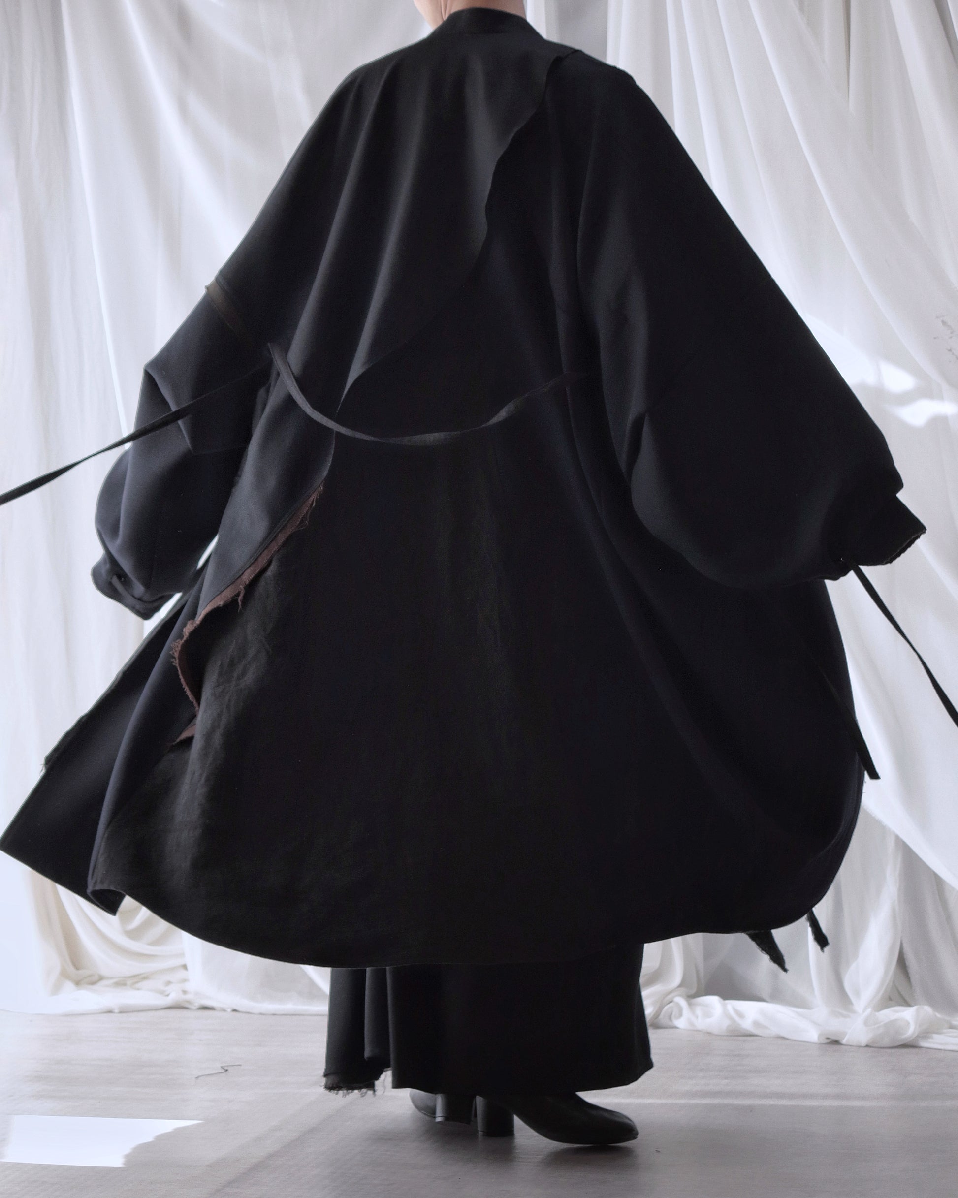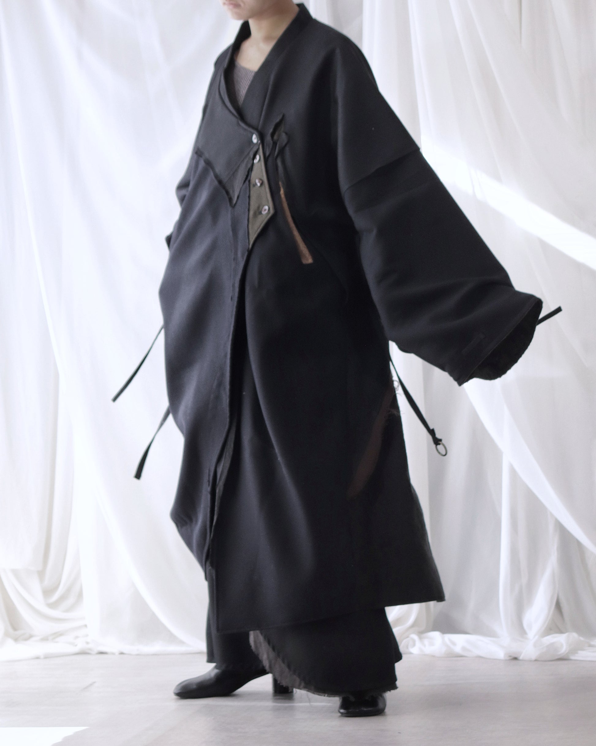 右身頃は前後全体にかけて割れ目を張り巡らせています。