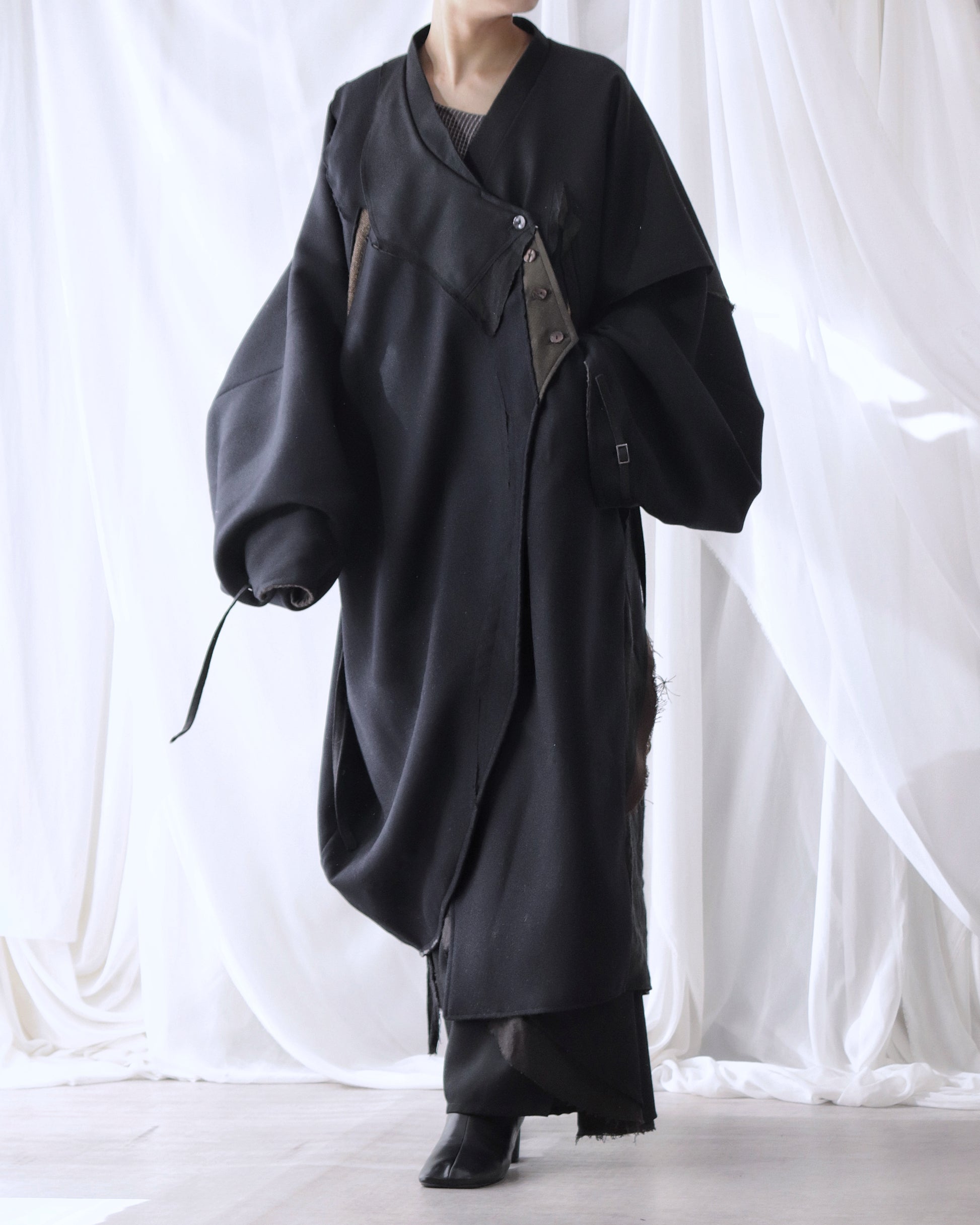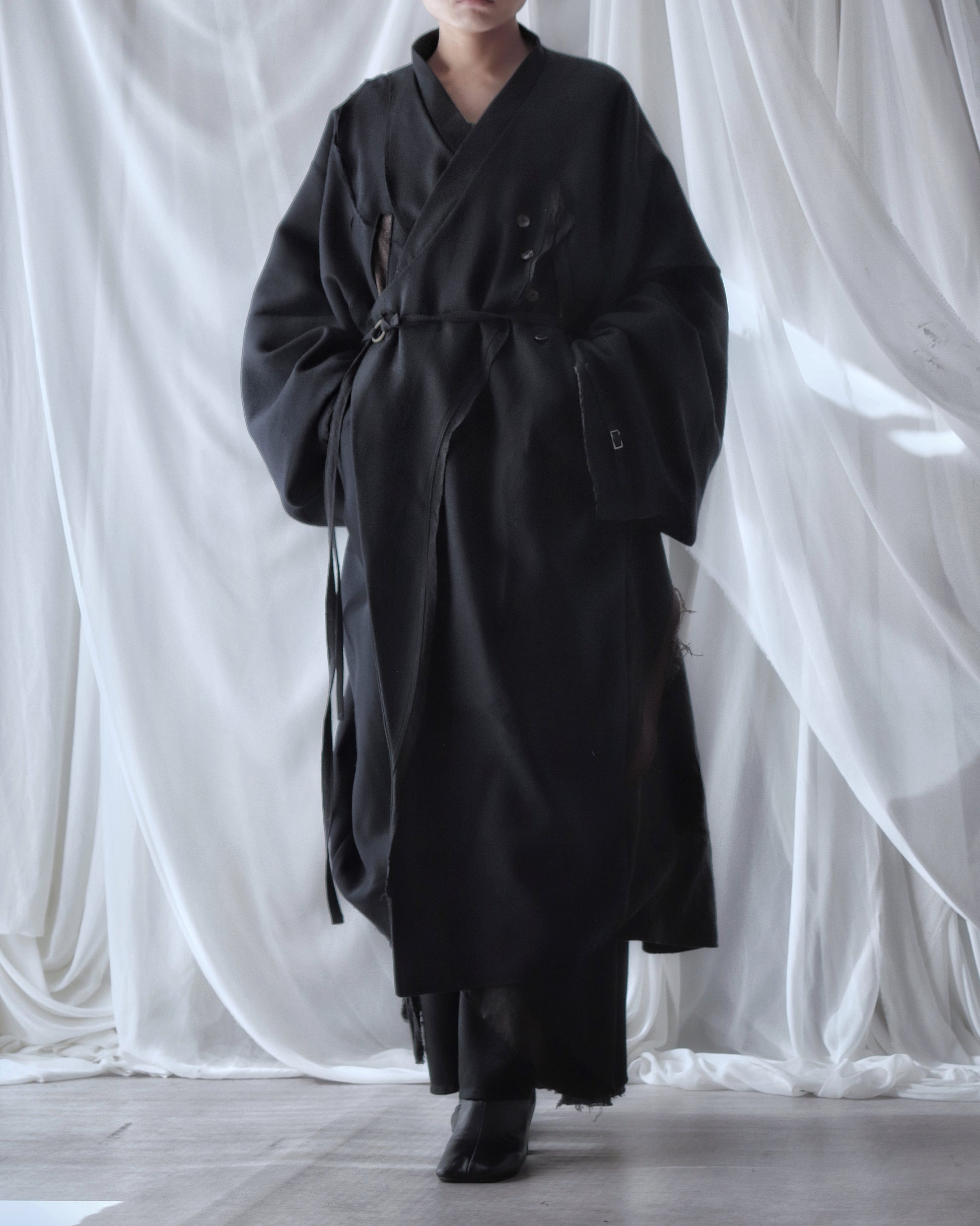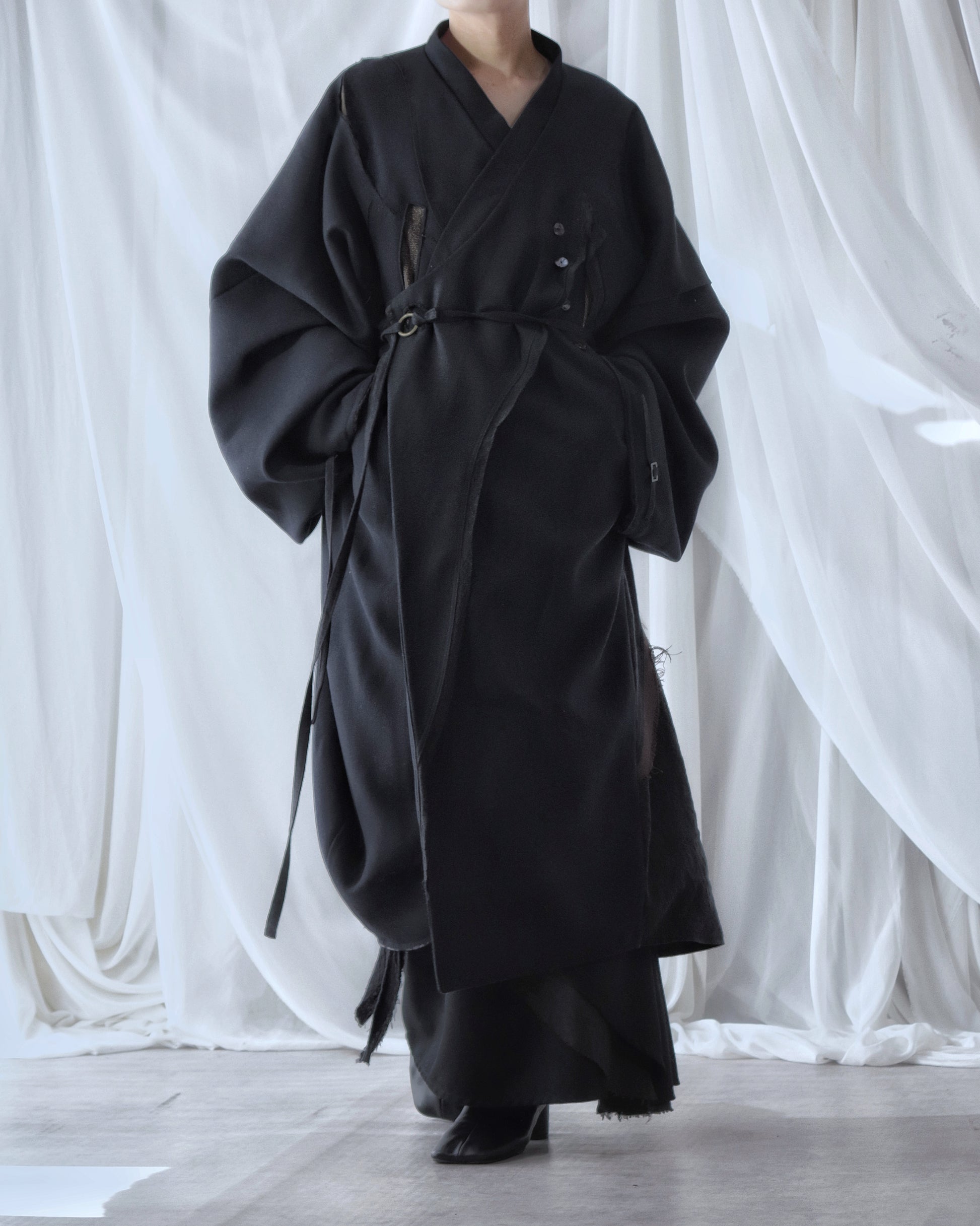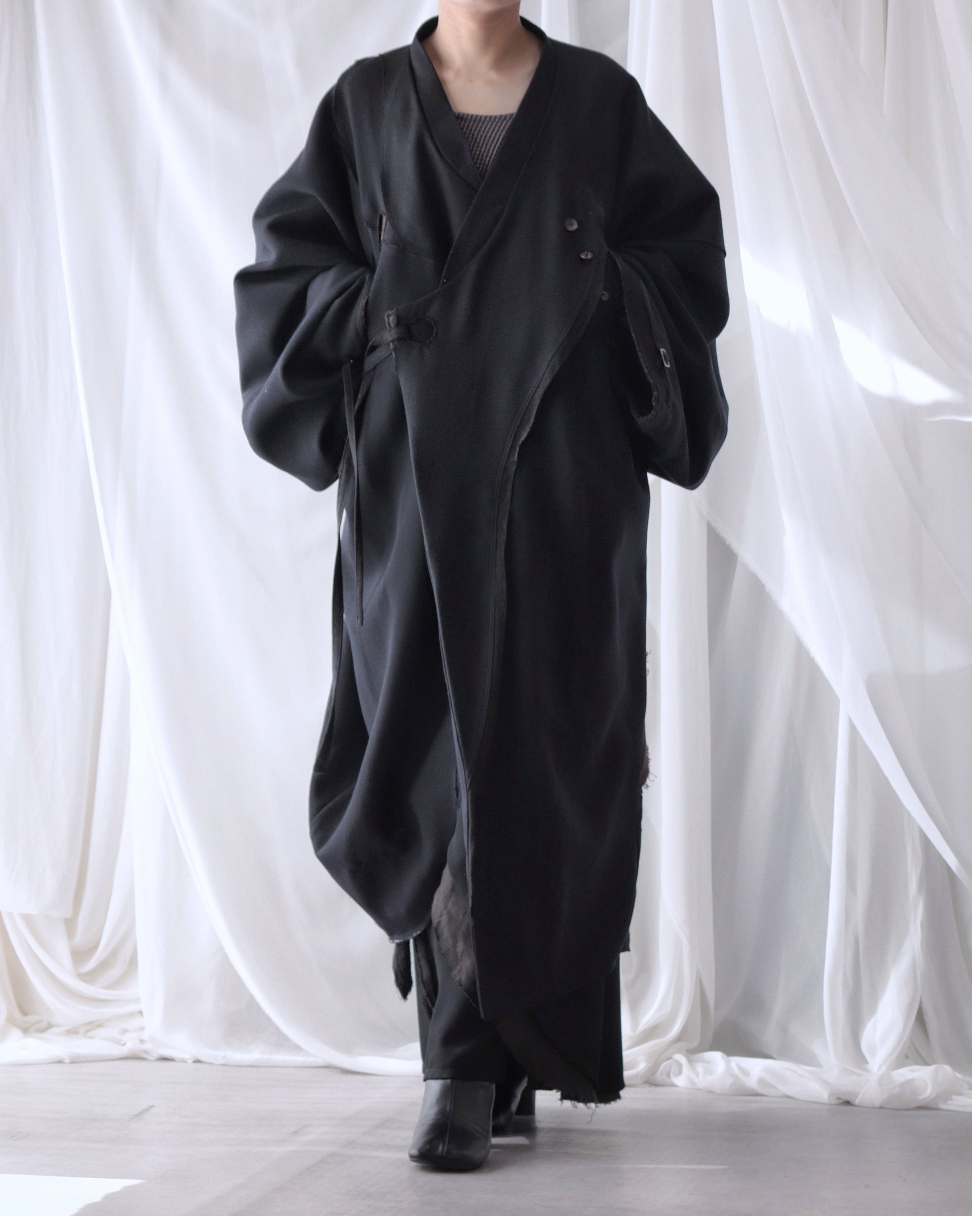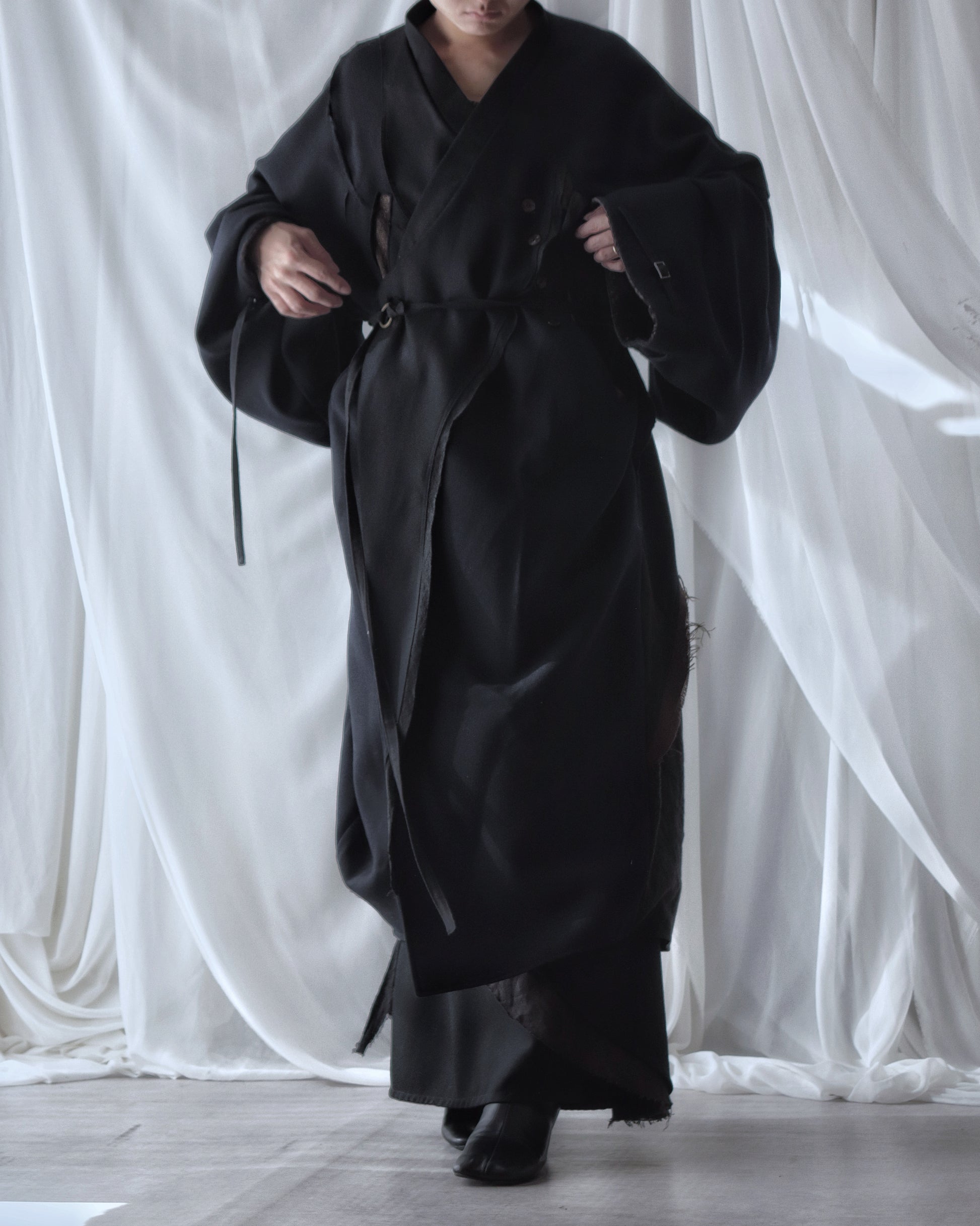 右身頃は前後全体にかけて割れ目を張り巡らせています。