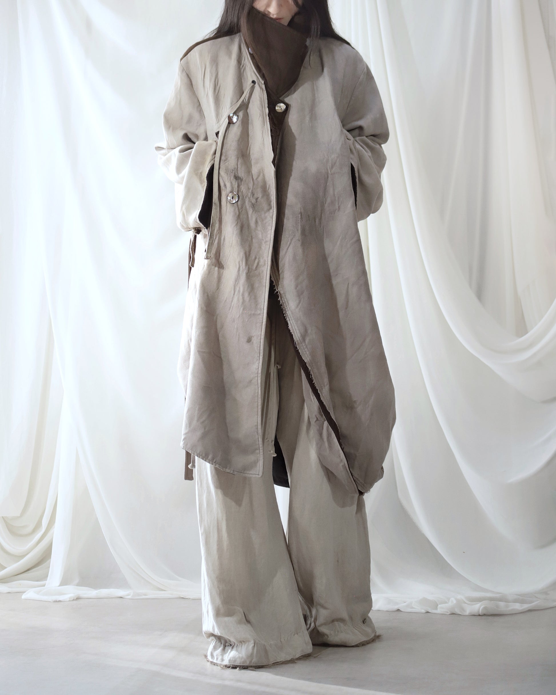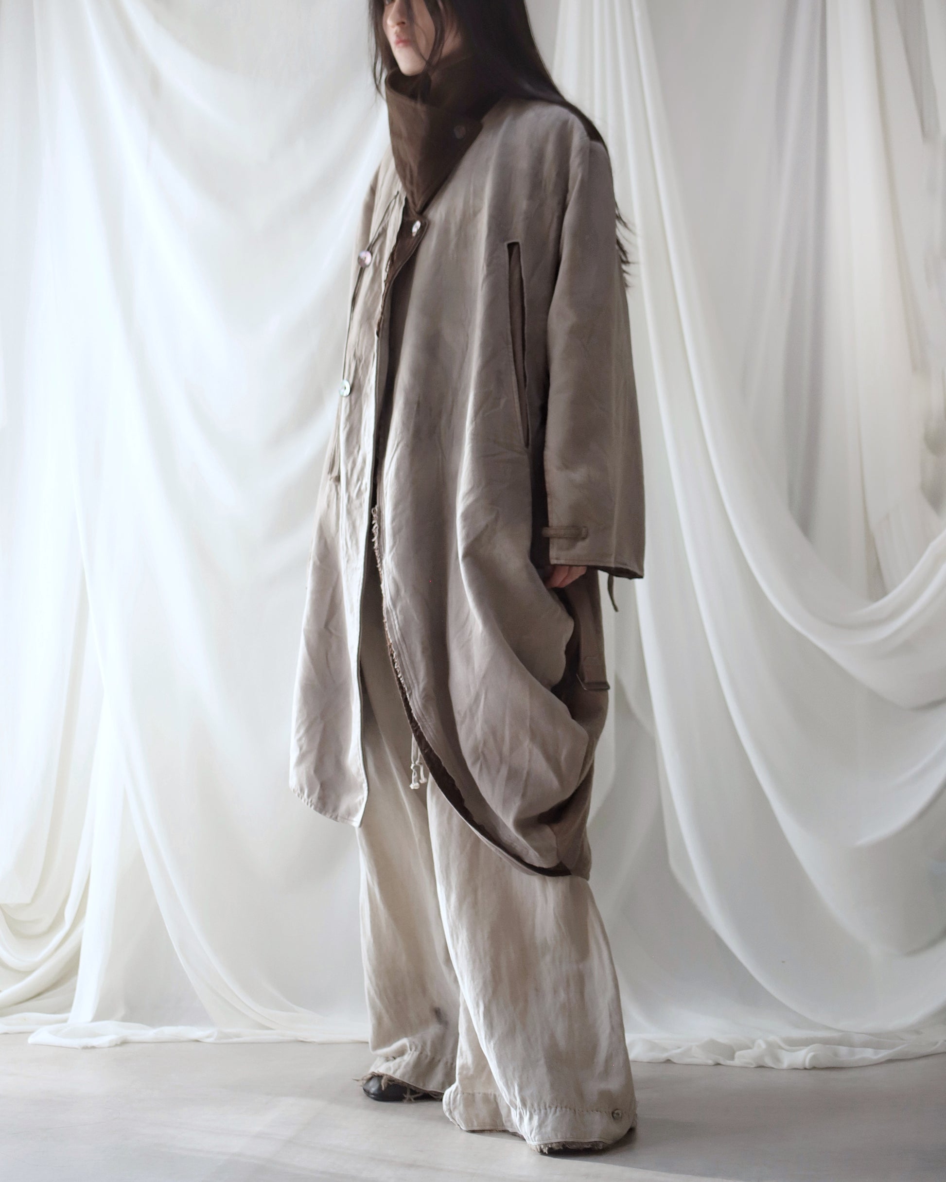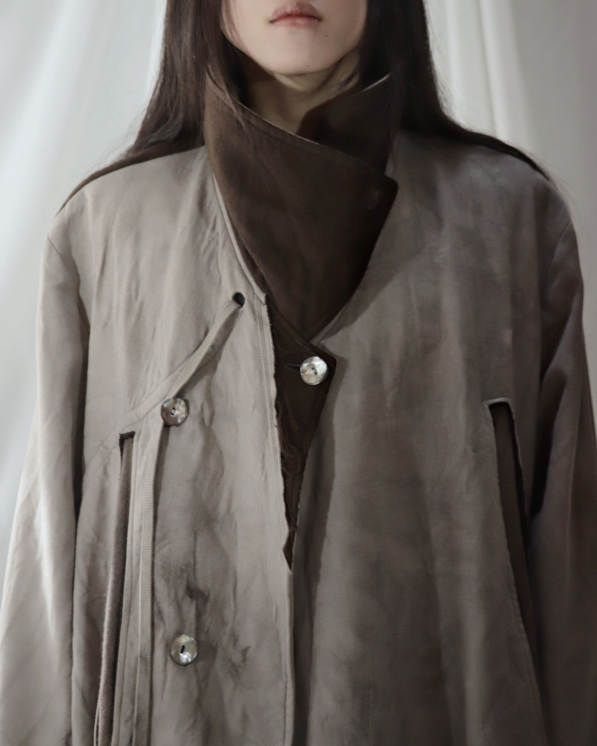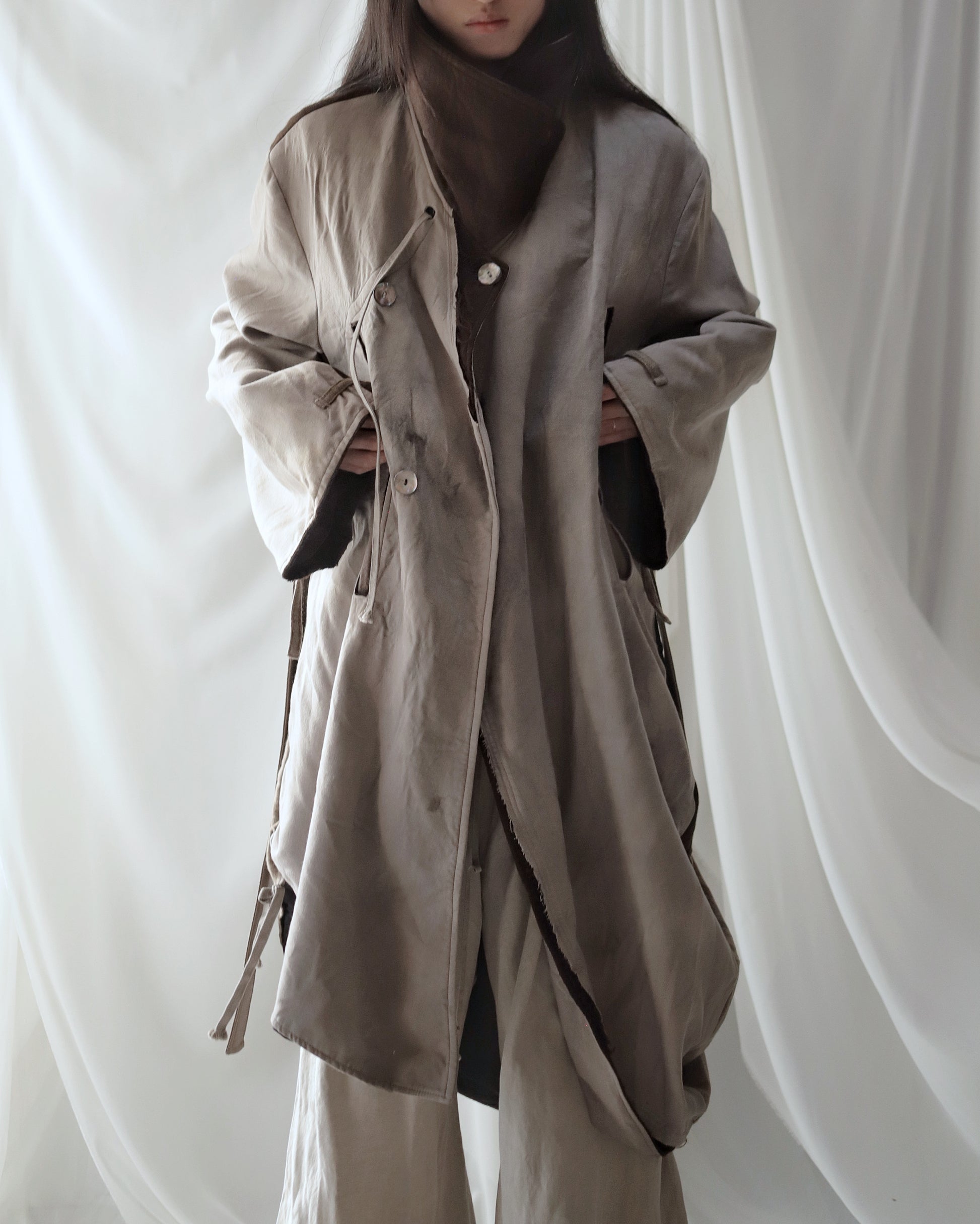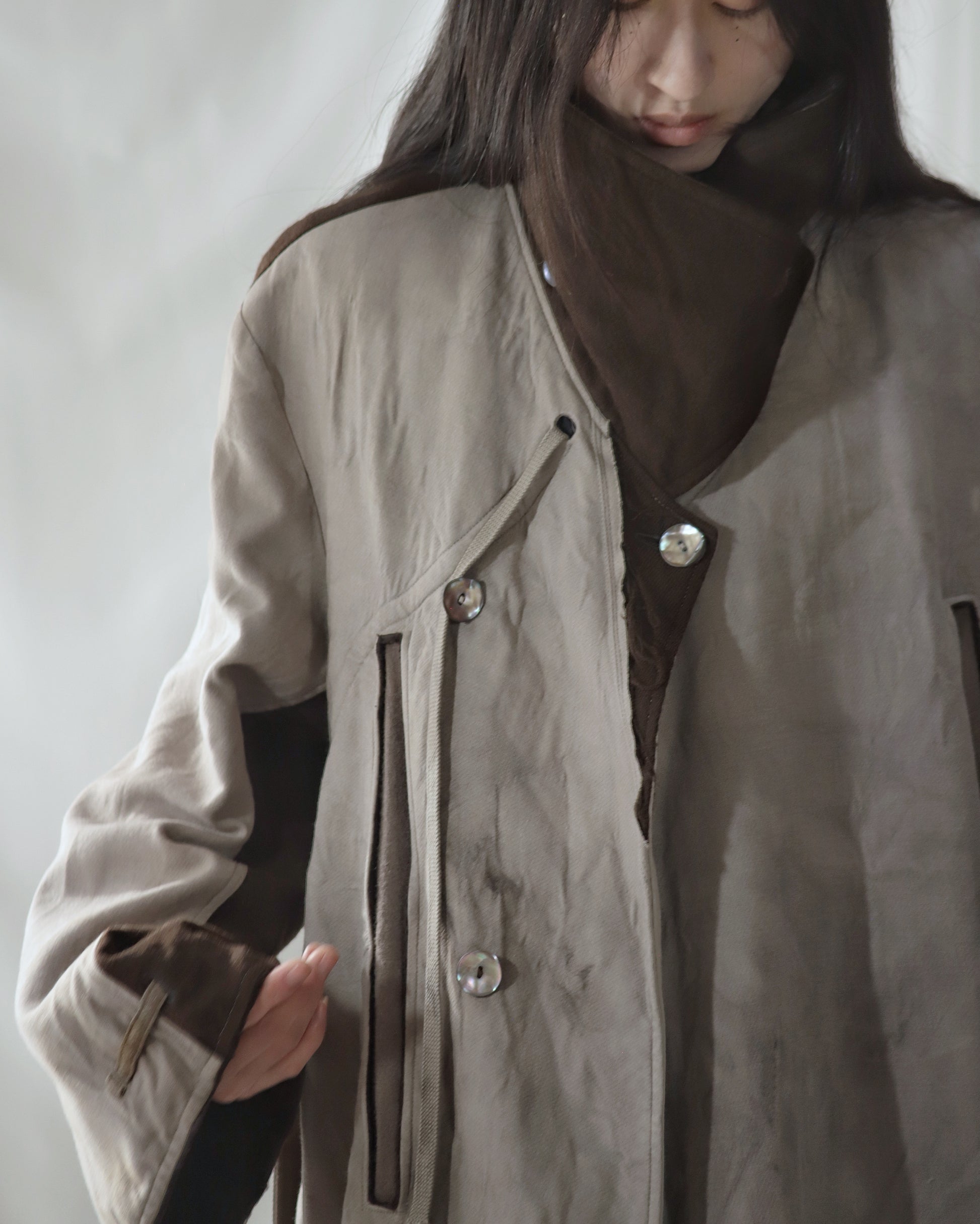 右襟元の紐を引っ張ると右裾脇にかけて絞られます。