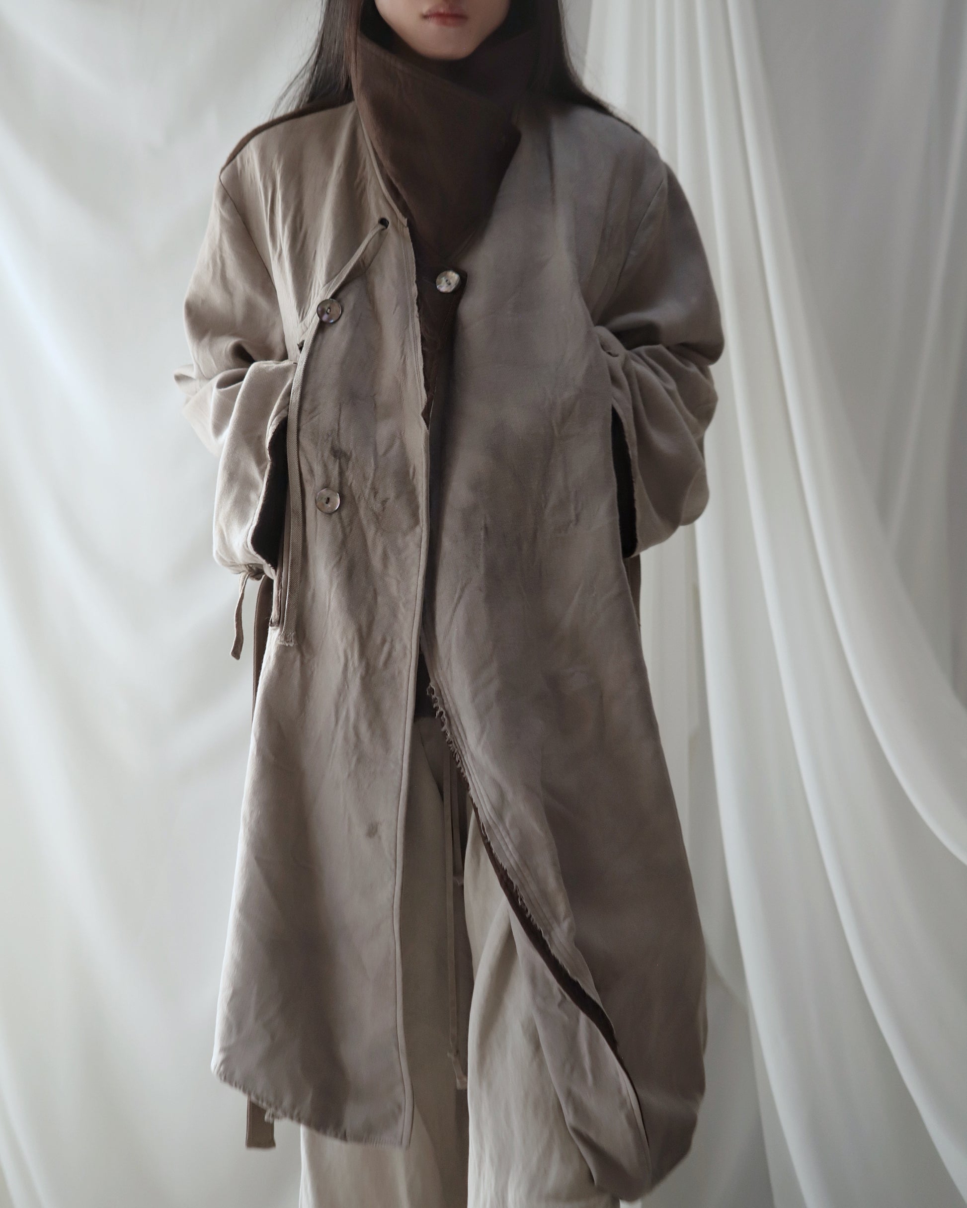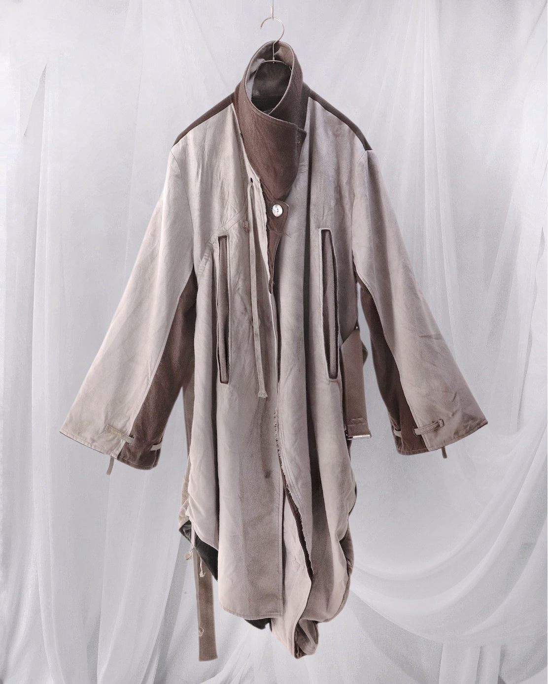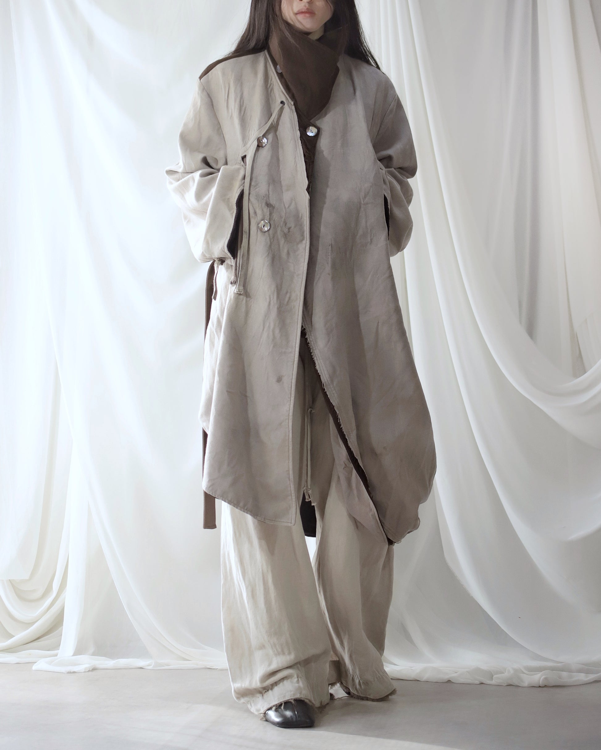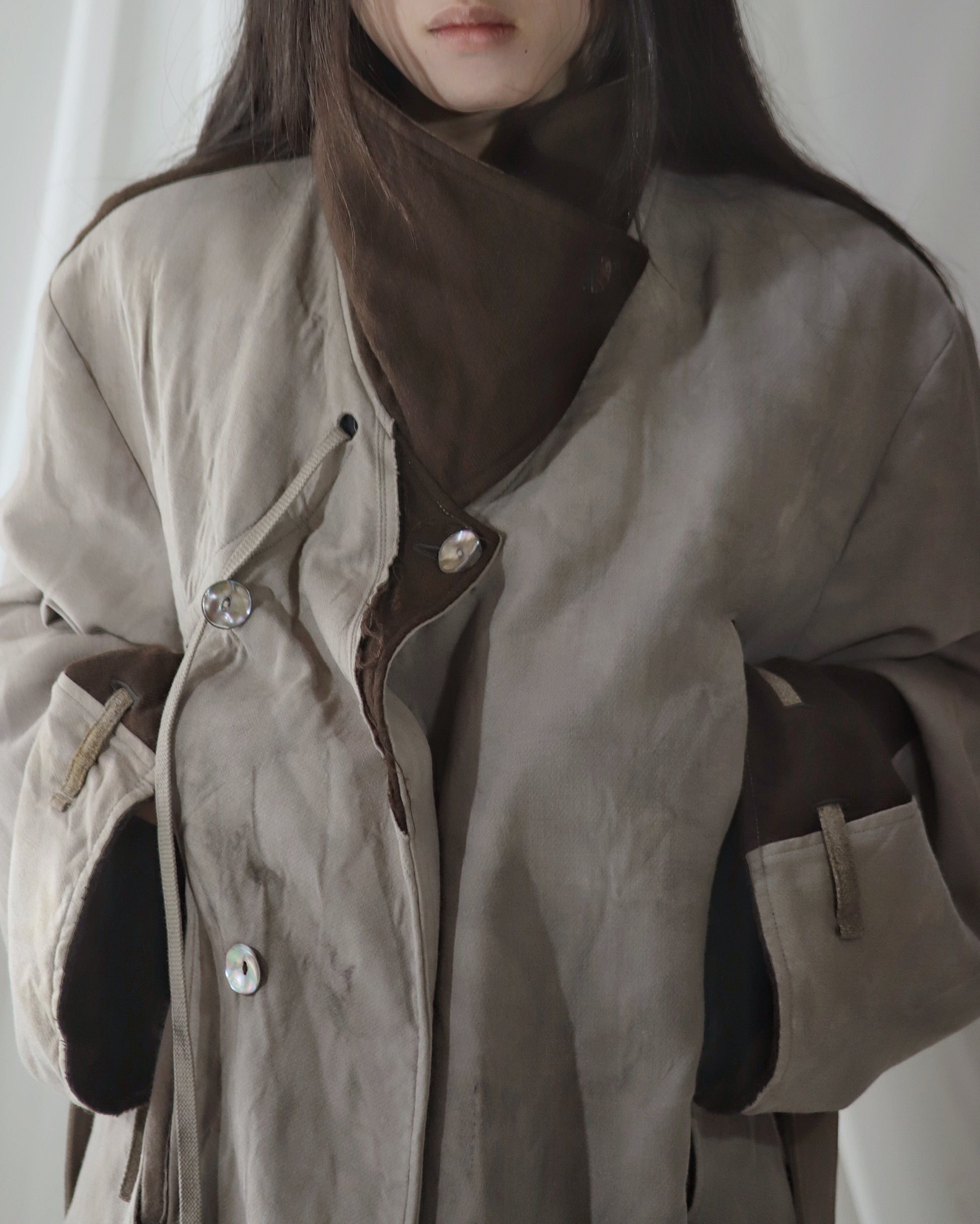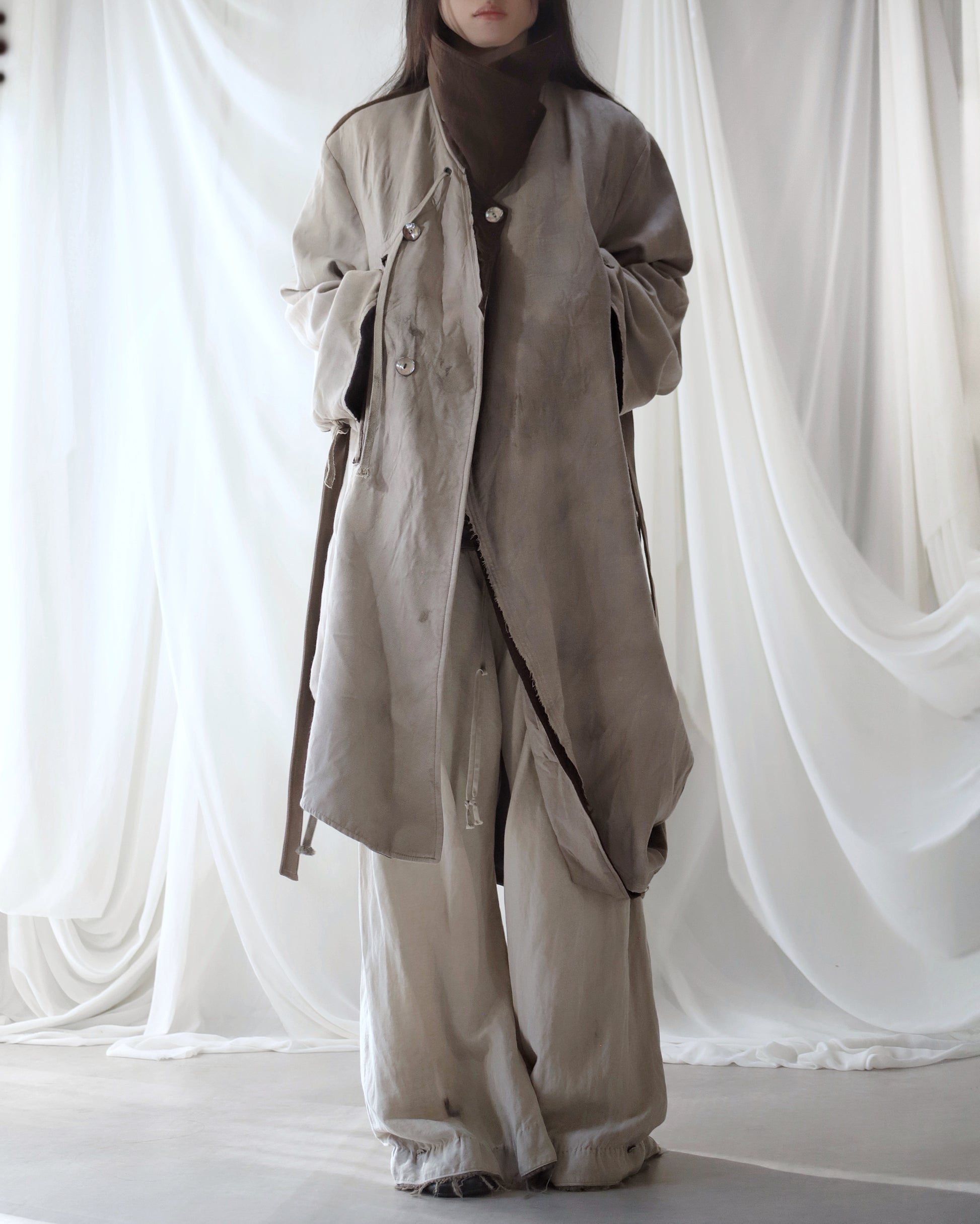 右襟元の紐を引っ張ると右裾脇にかけて絞られます。
