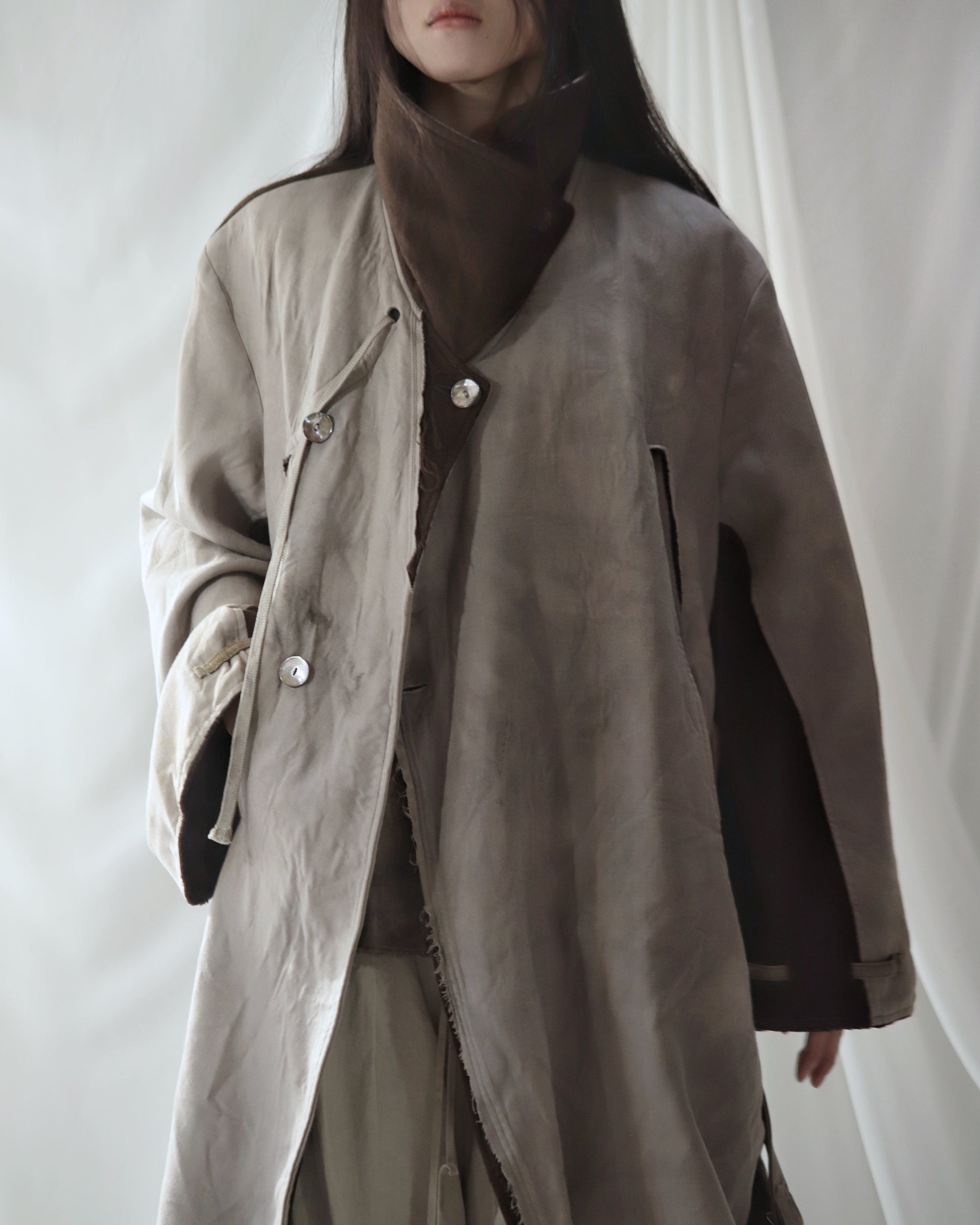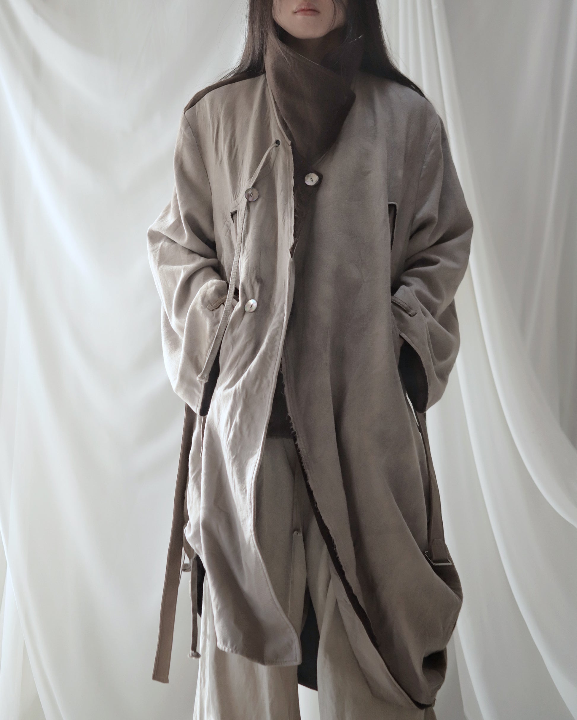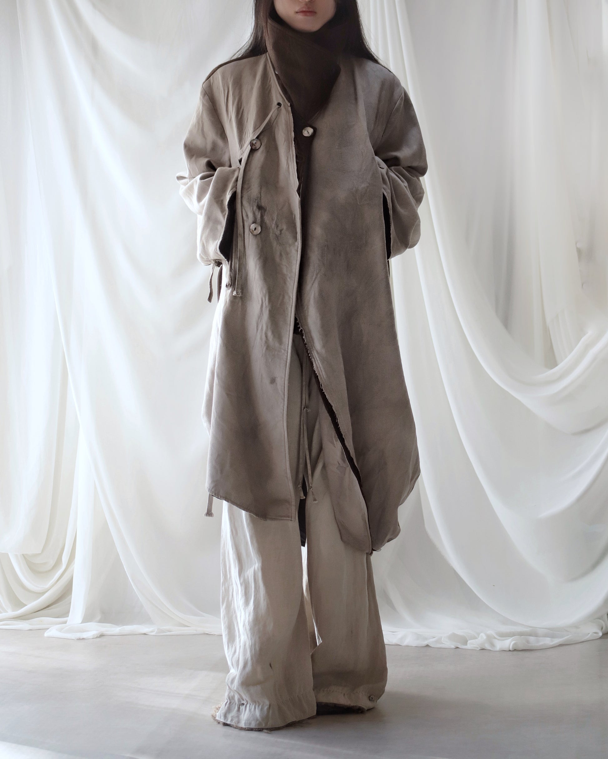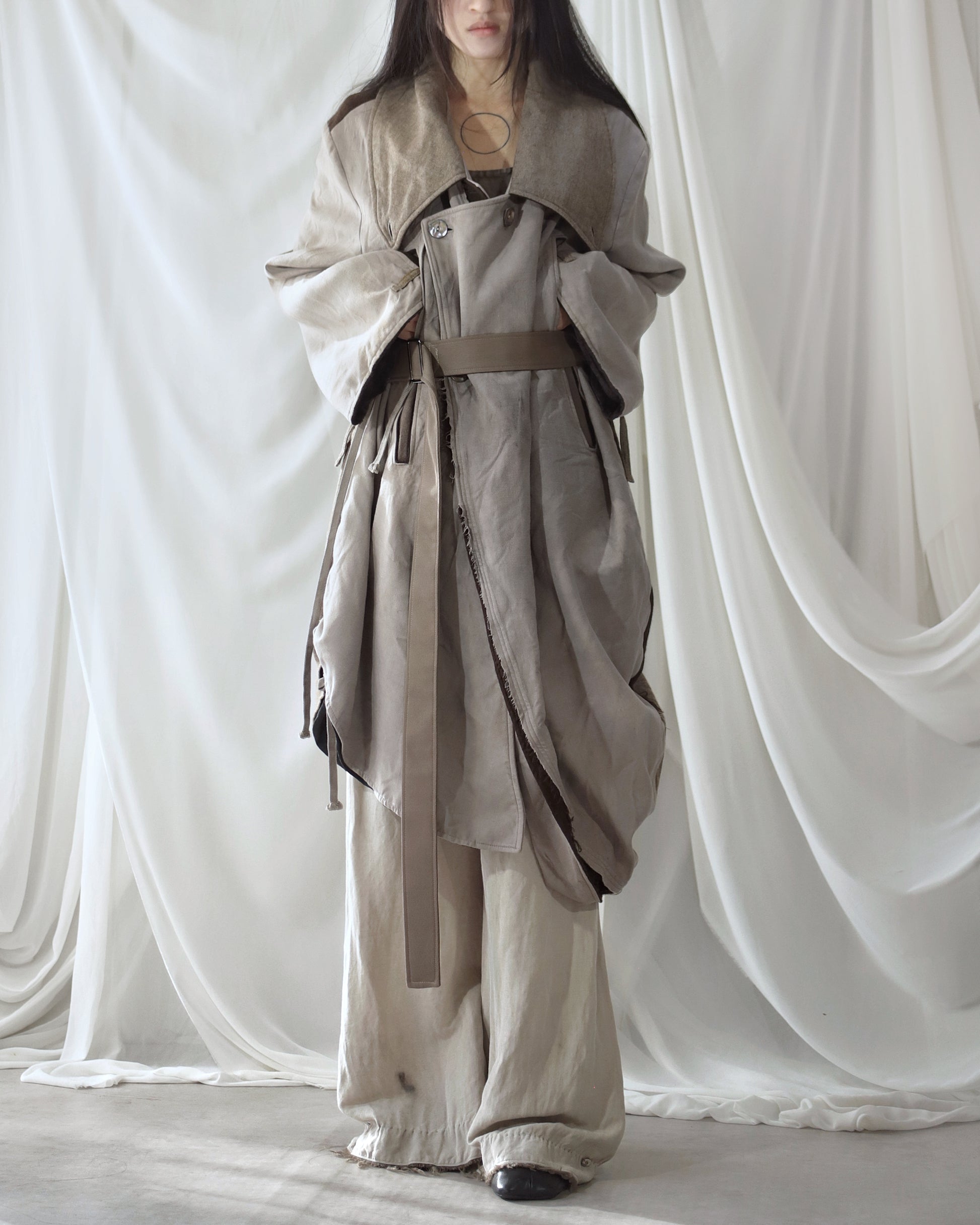 右襟元の紐を引っ張ると右裾脇にかけて絞られます。
