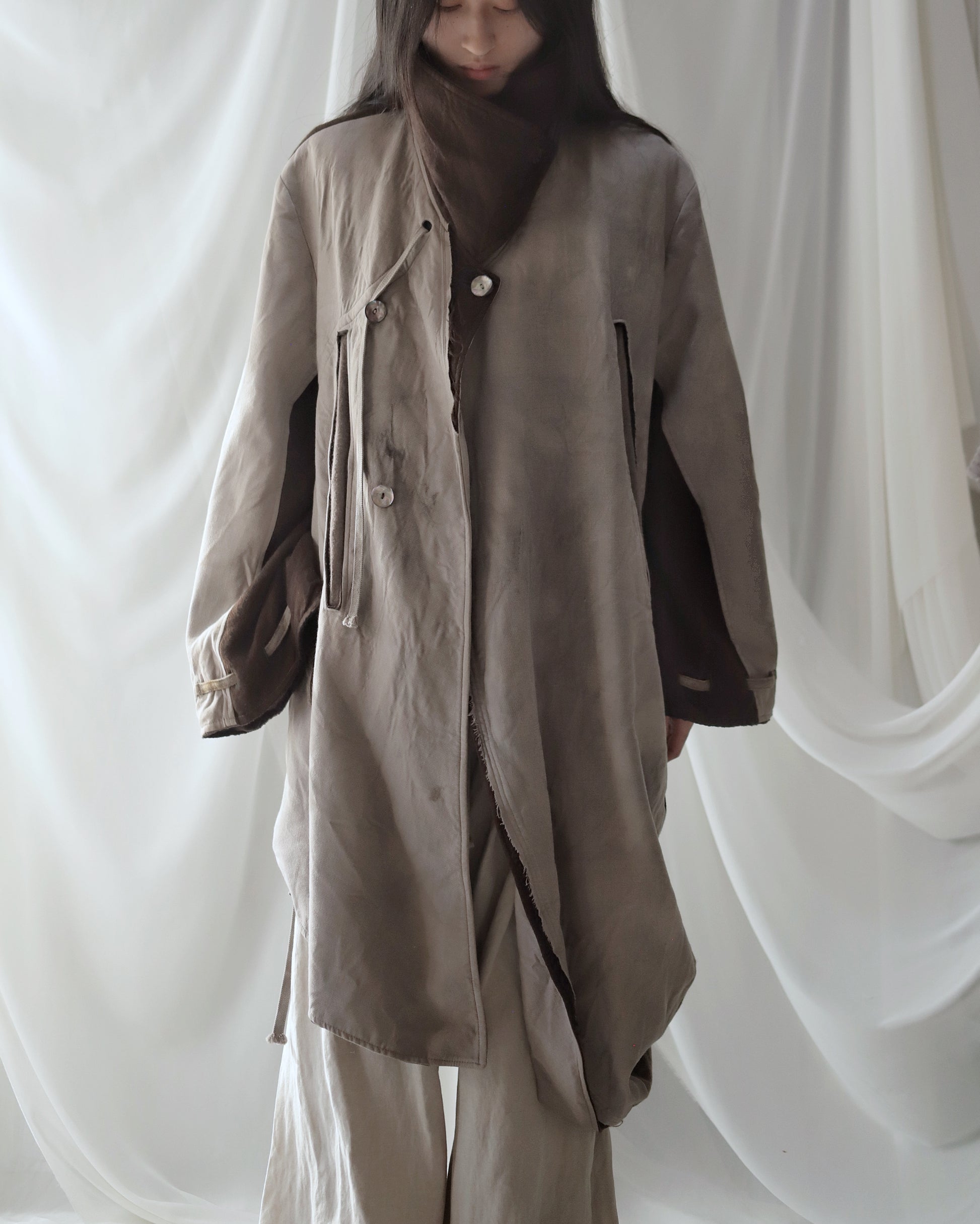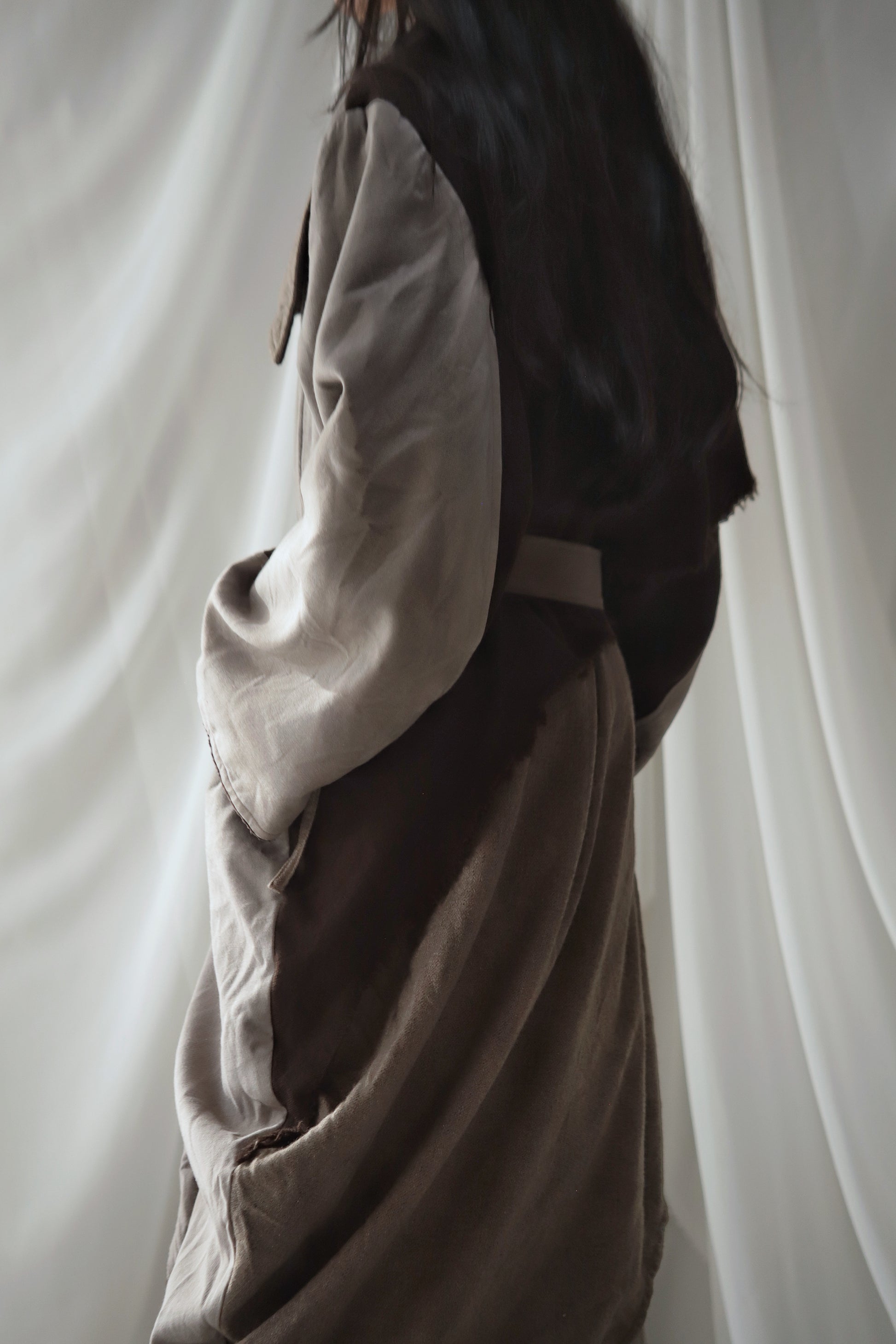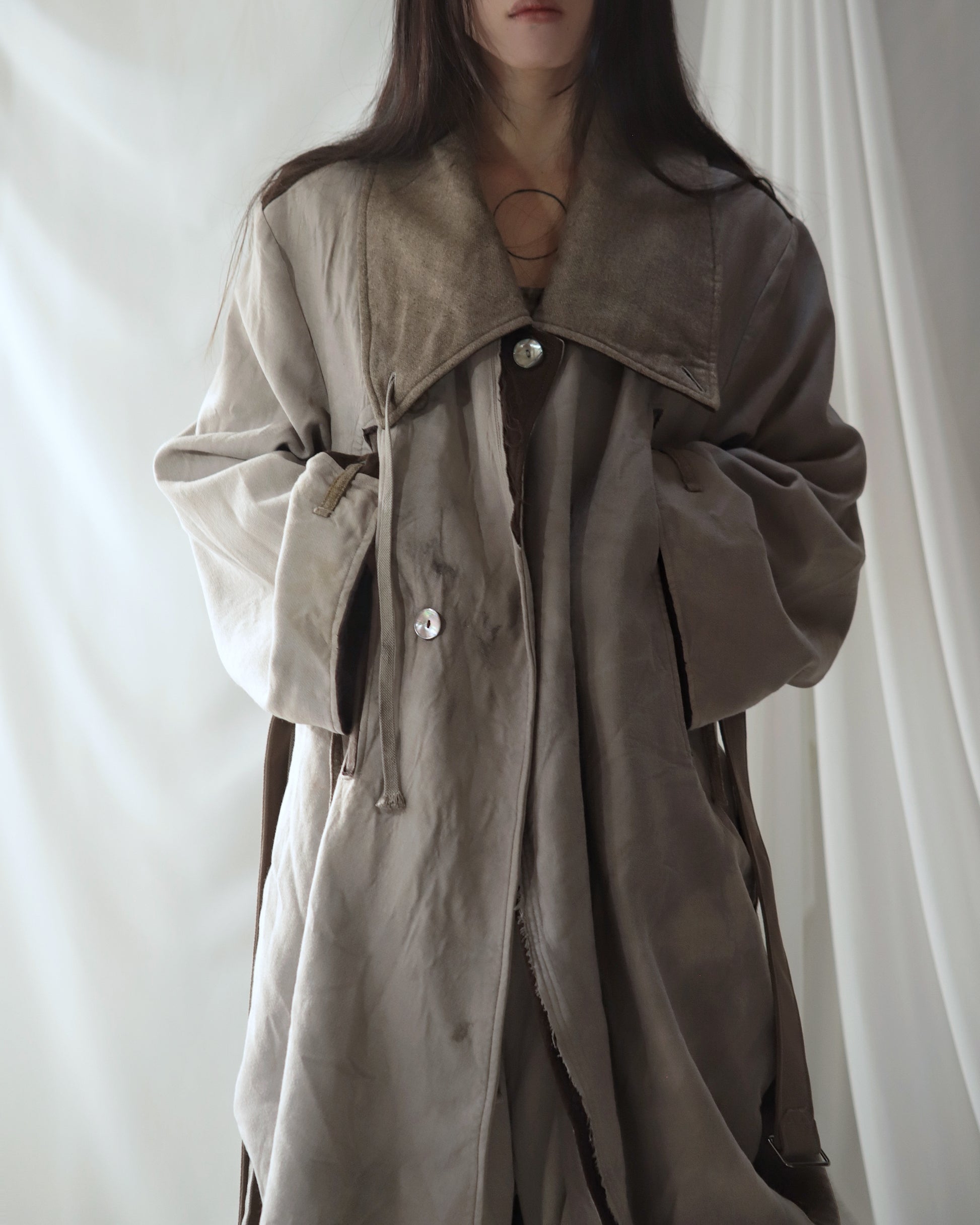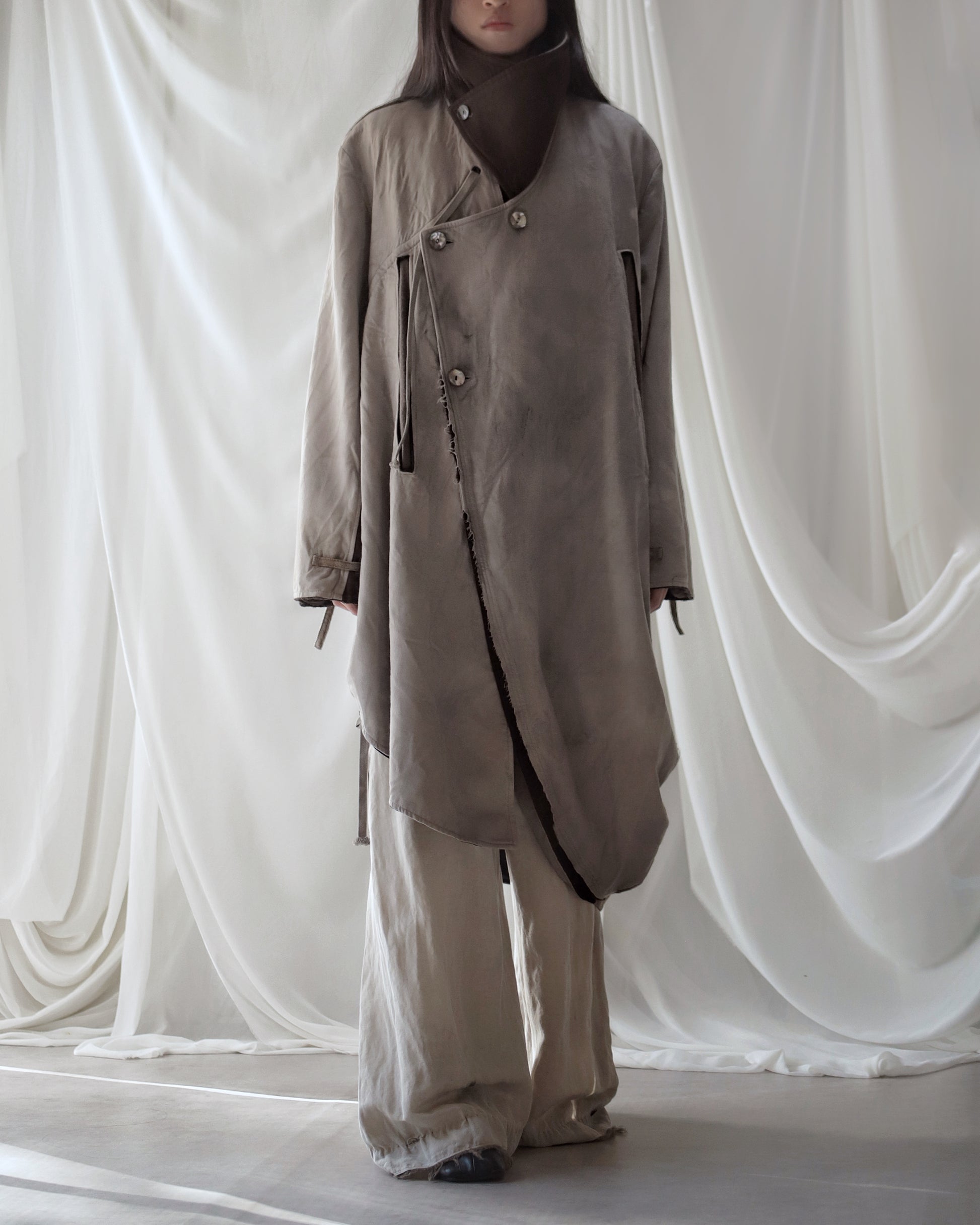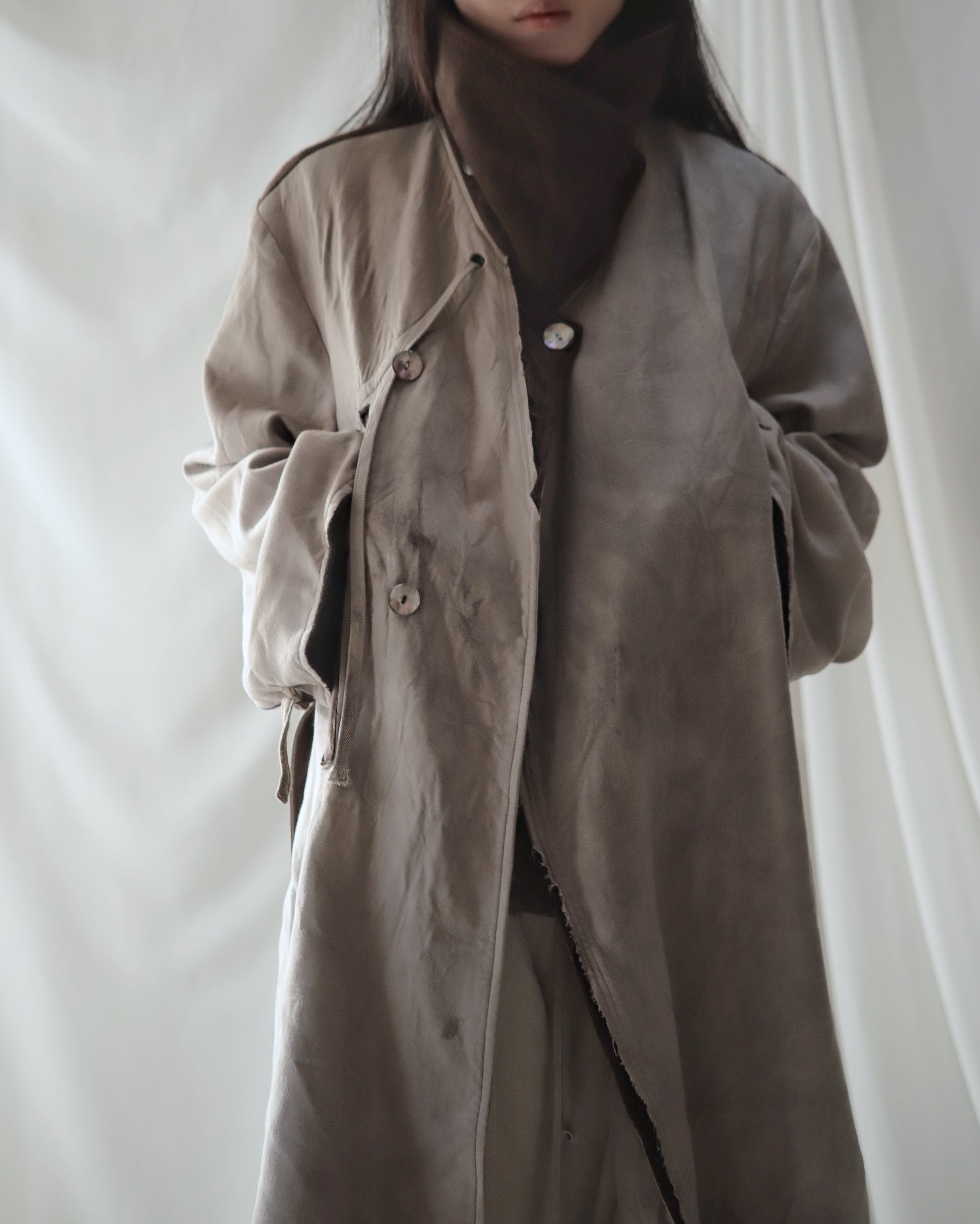 右襟元の紐を引っ張ると右裾脇にかけて絞られます。