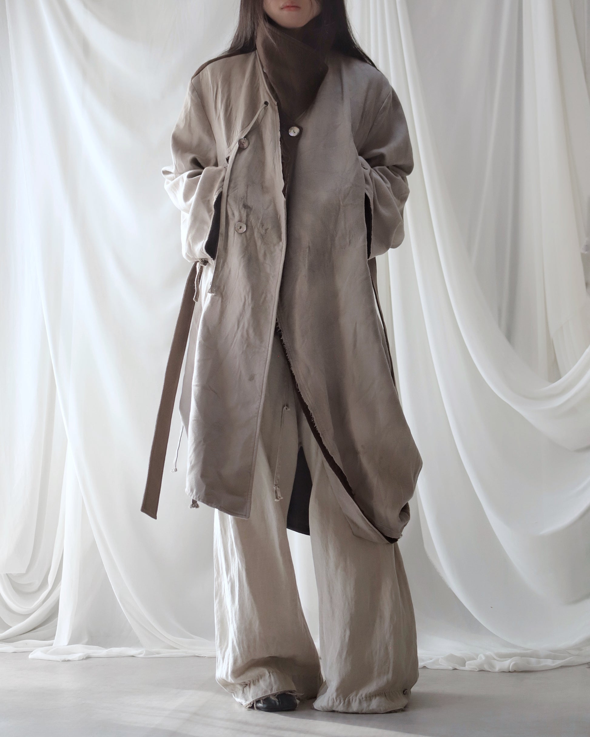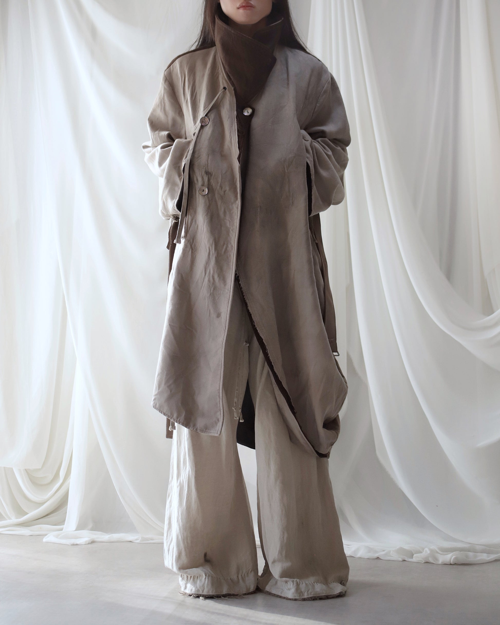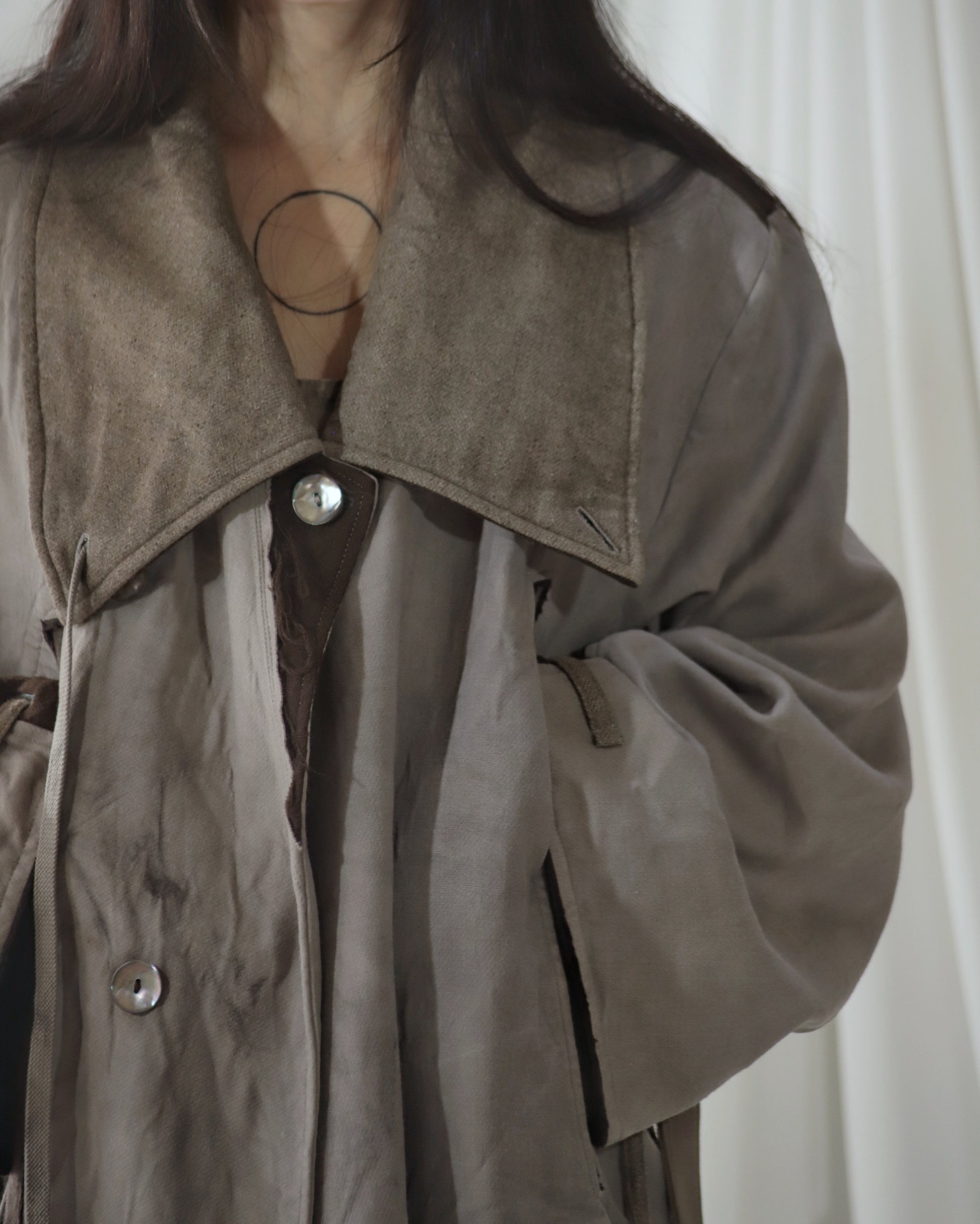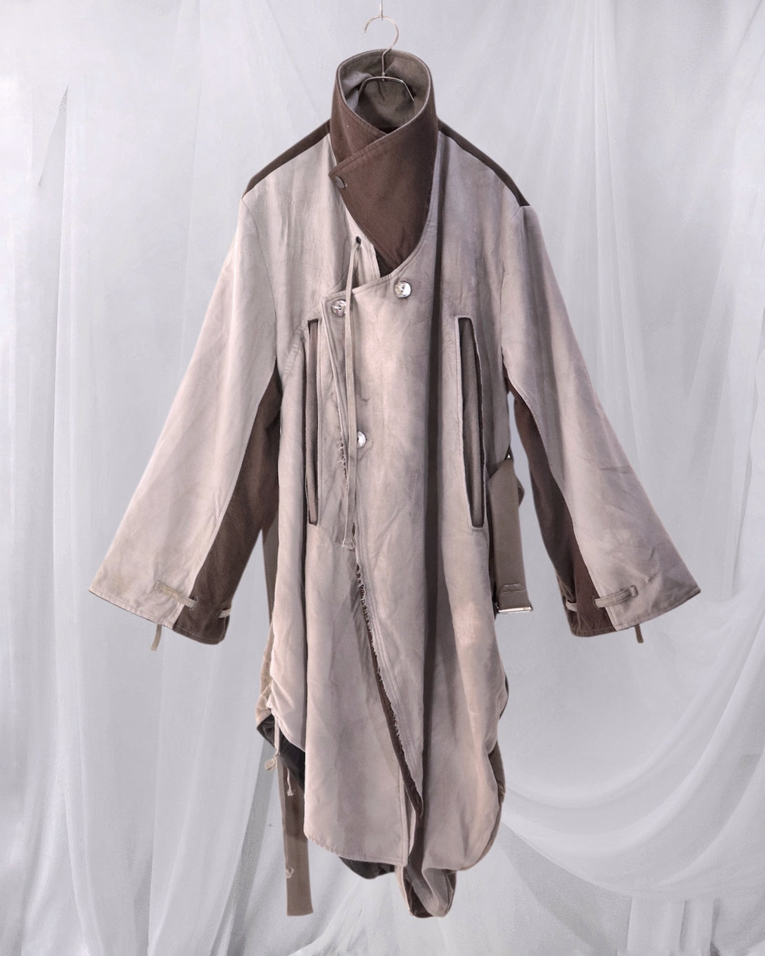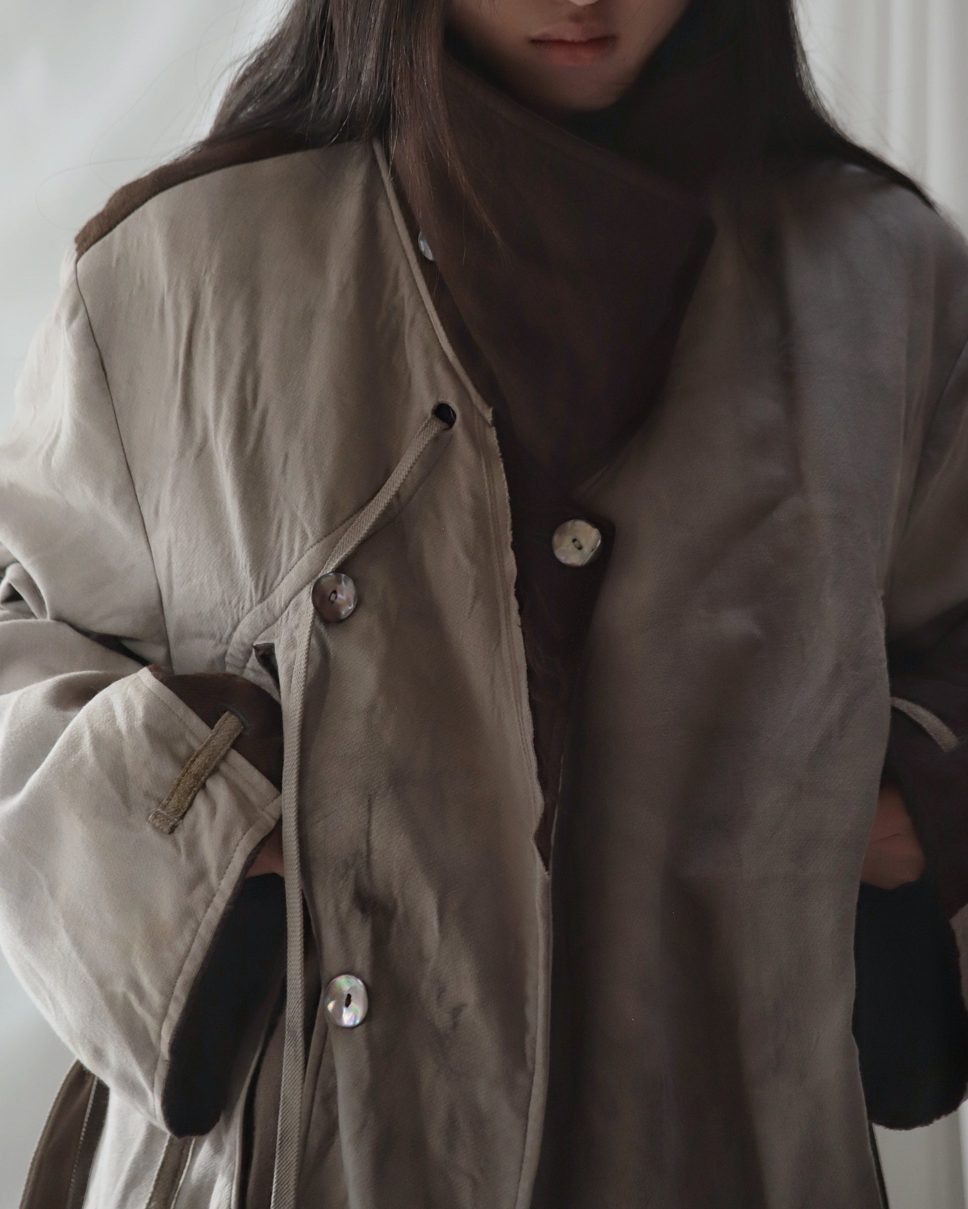 右襟元の紐を引っ張ると右裾脇にかけて絞られます。