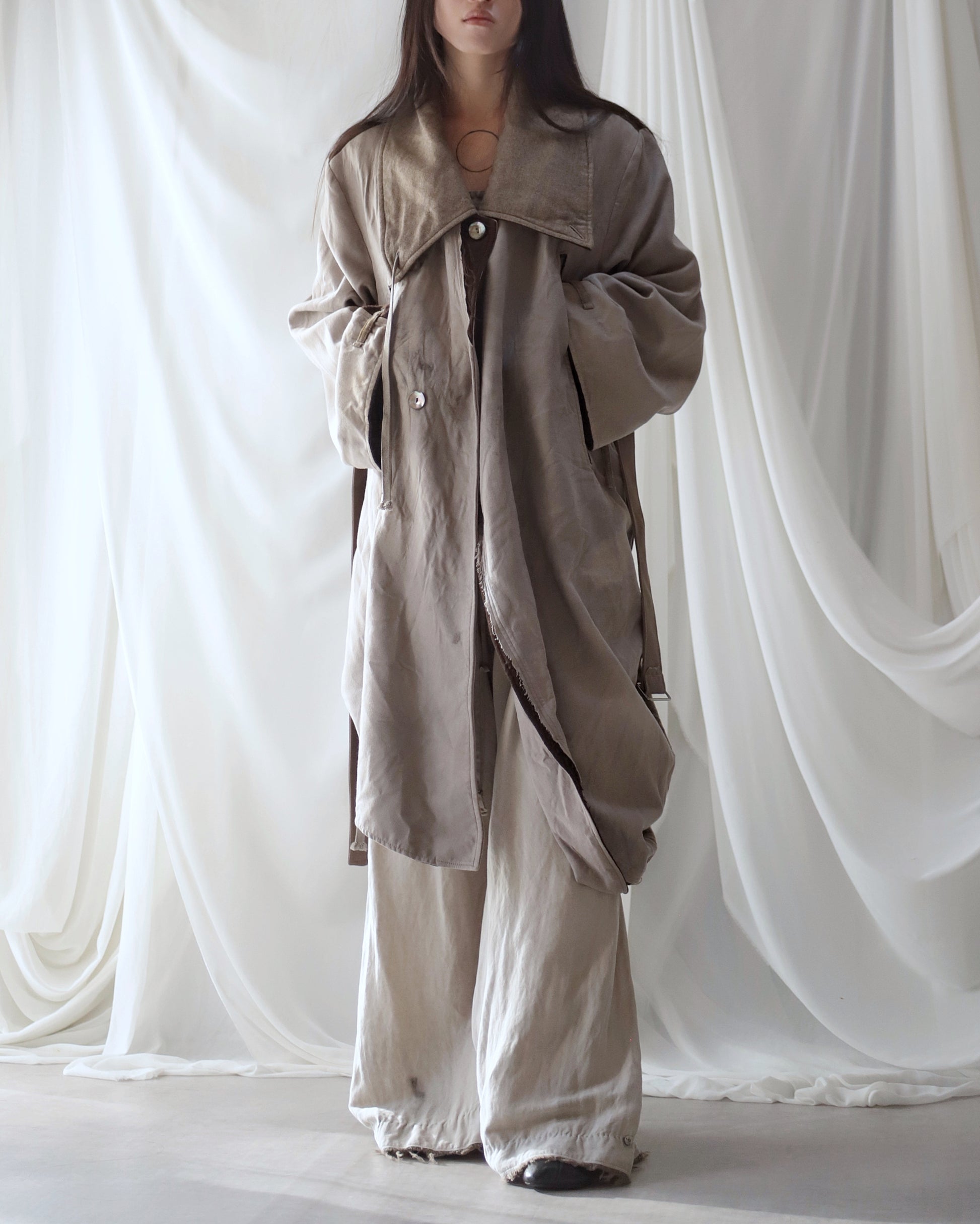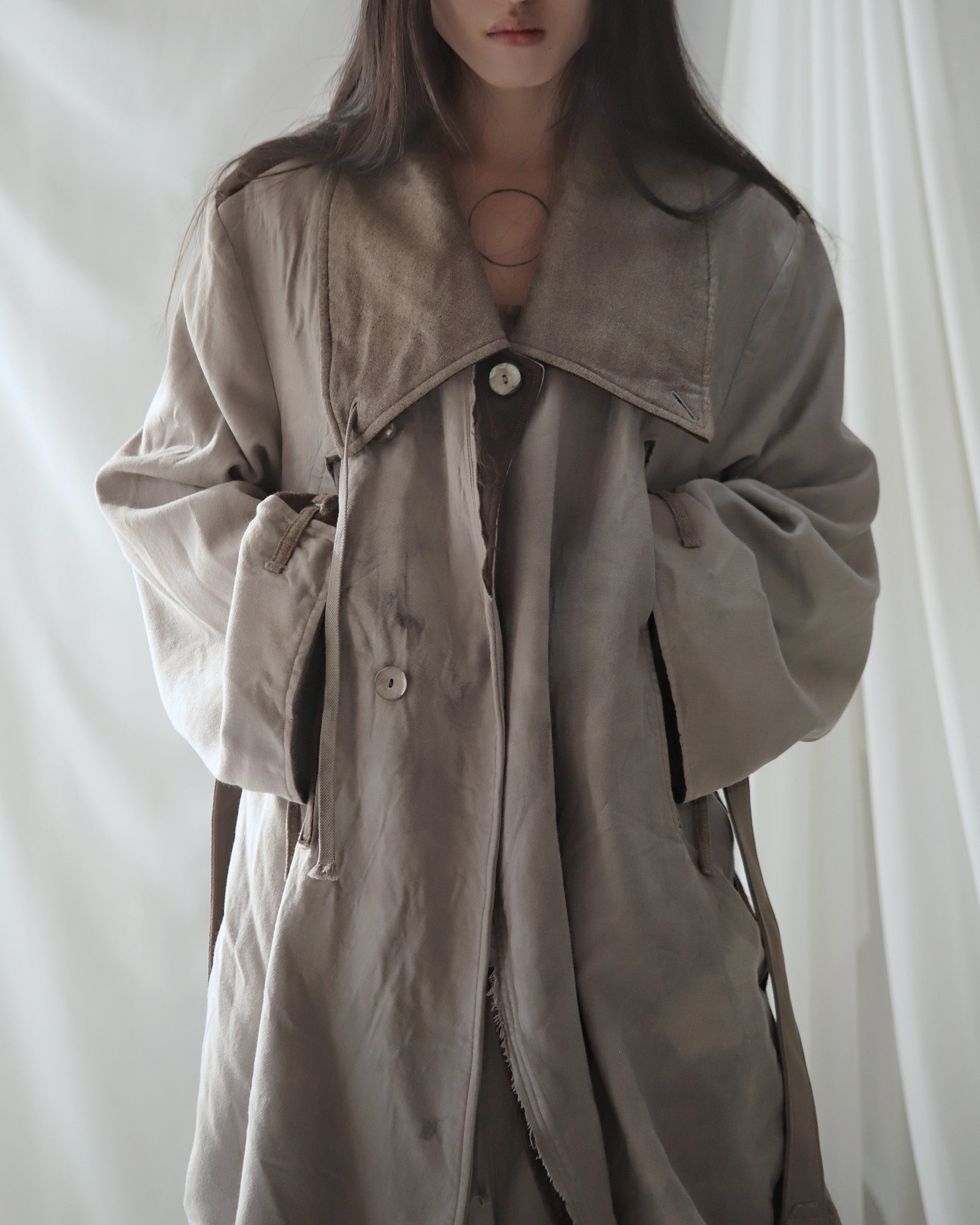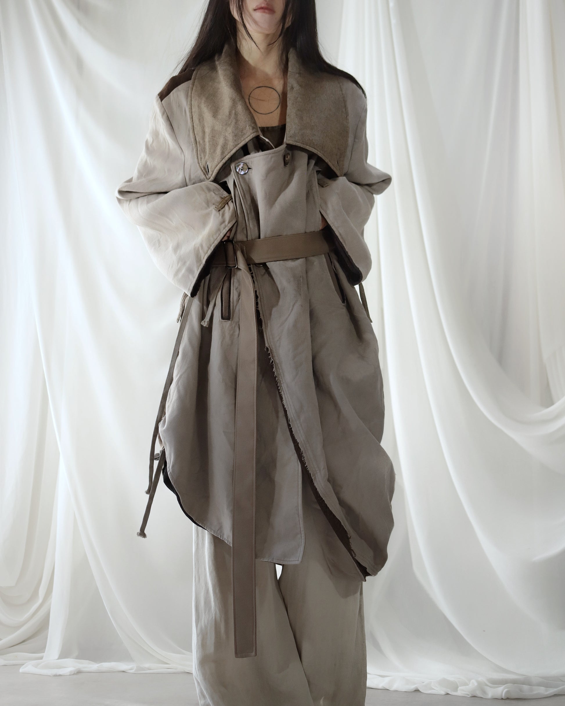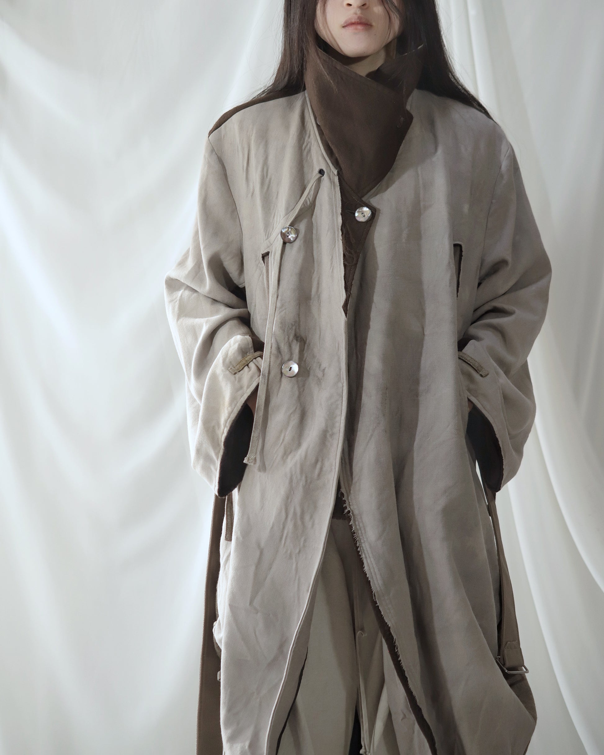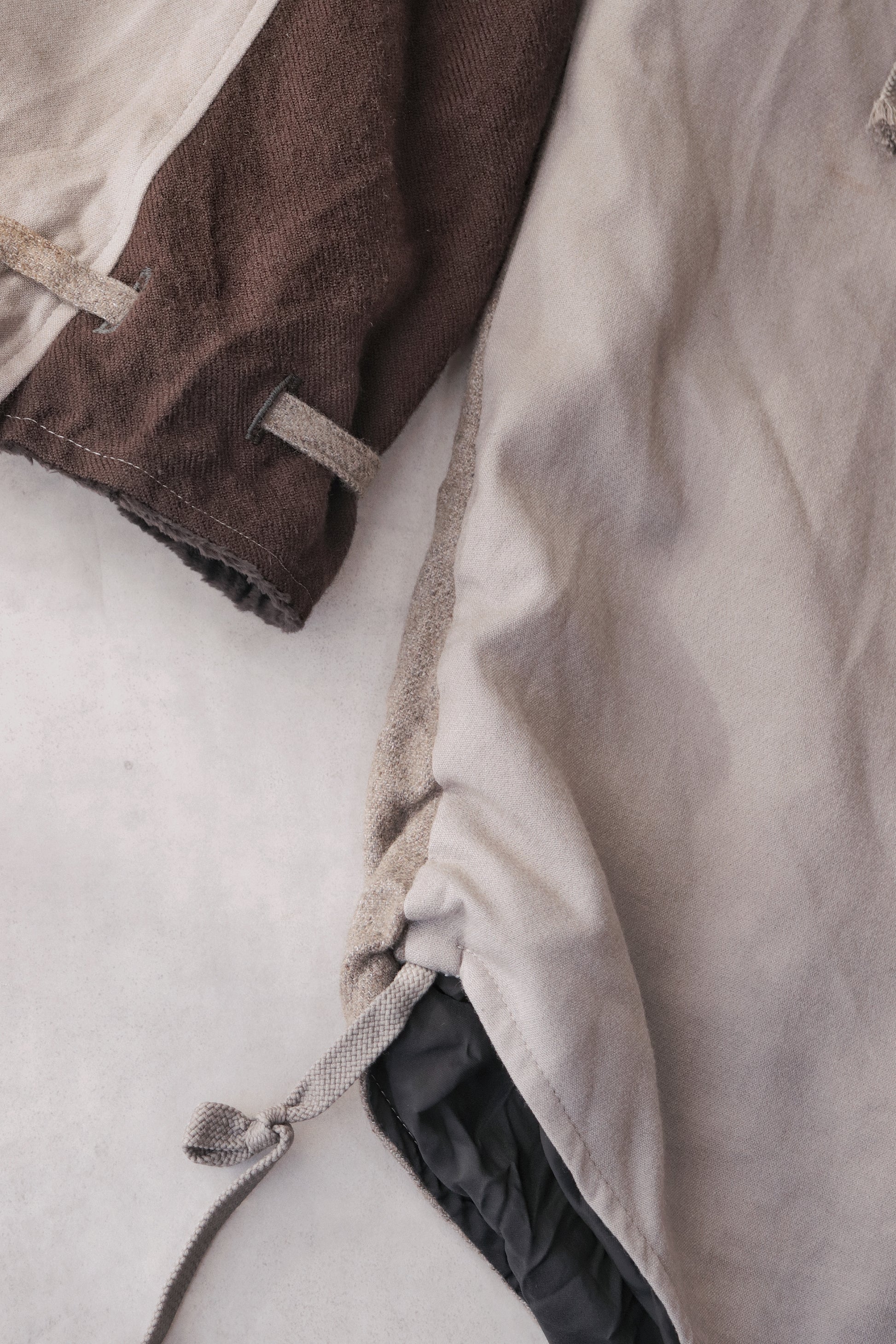 右襟元の紐を引っ張ると右裾脇にかけて絞られます。