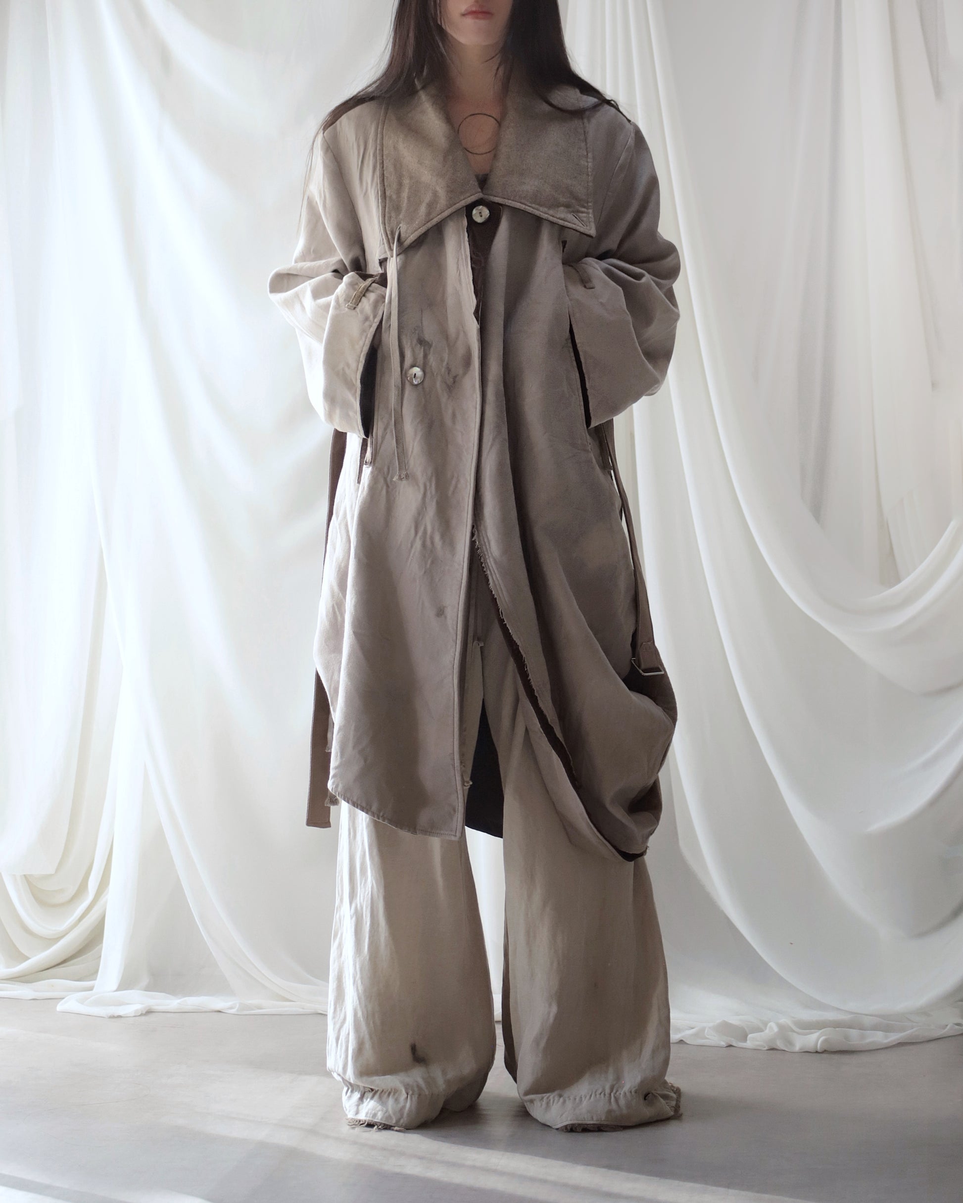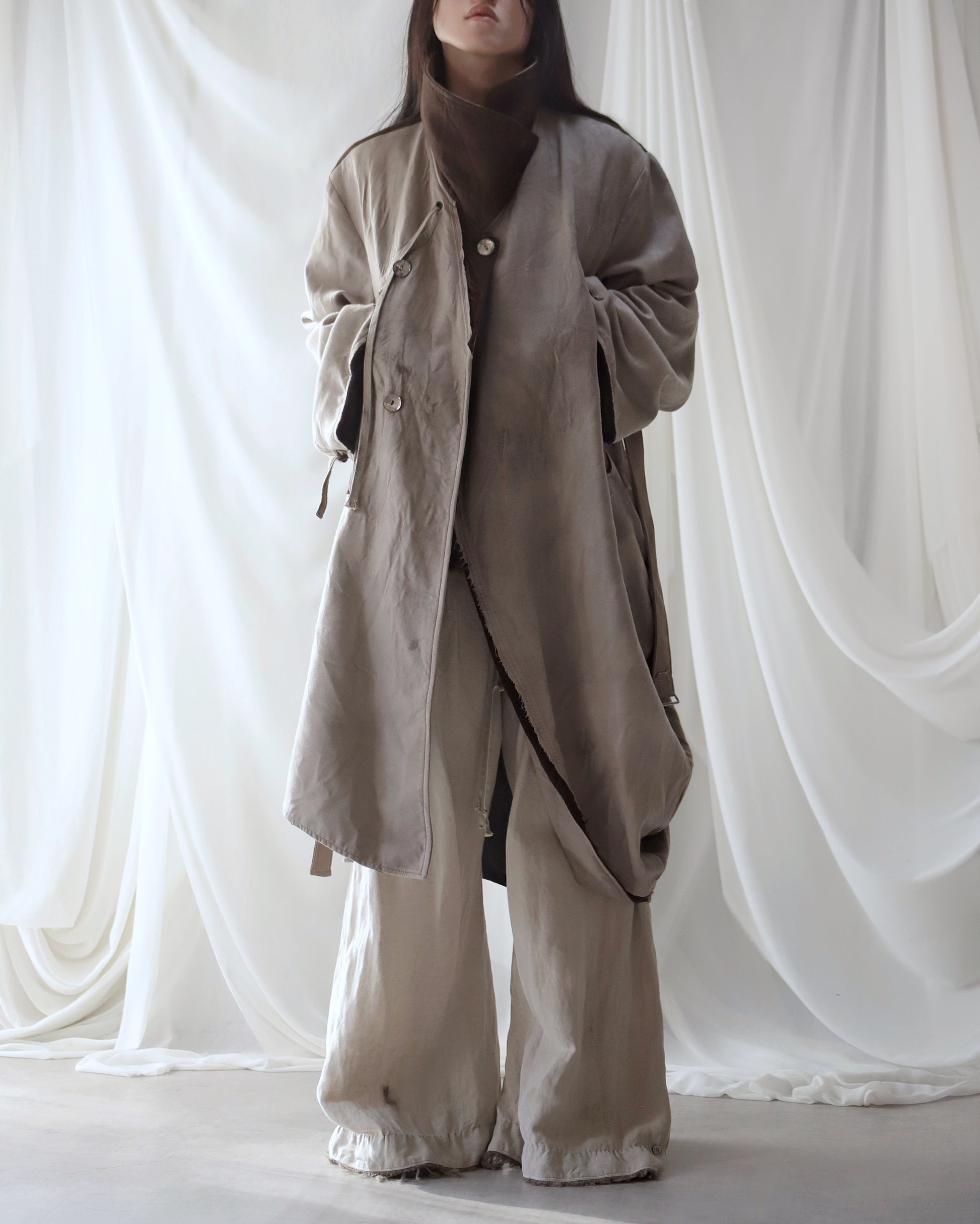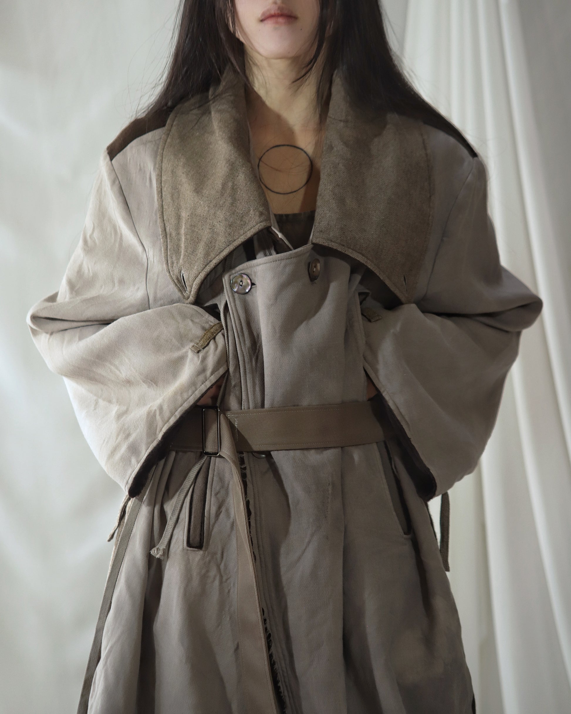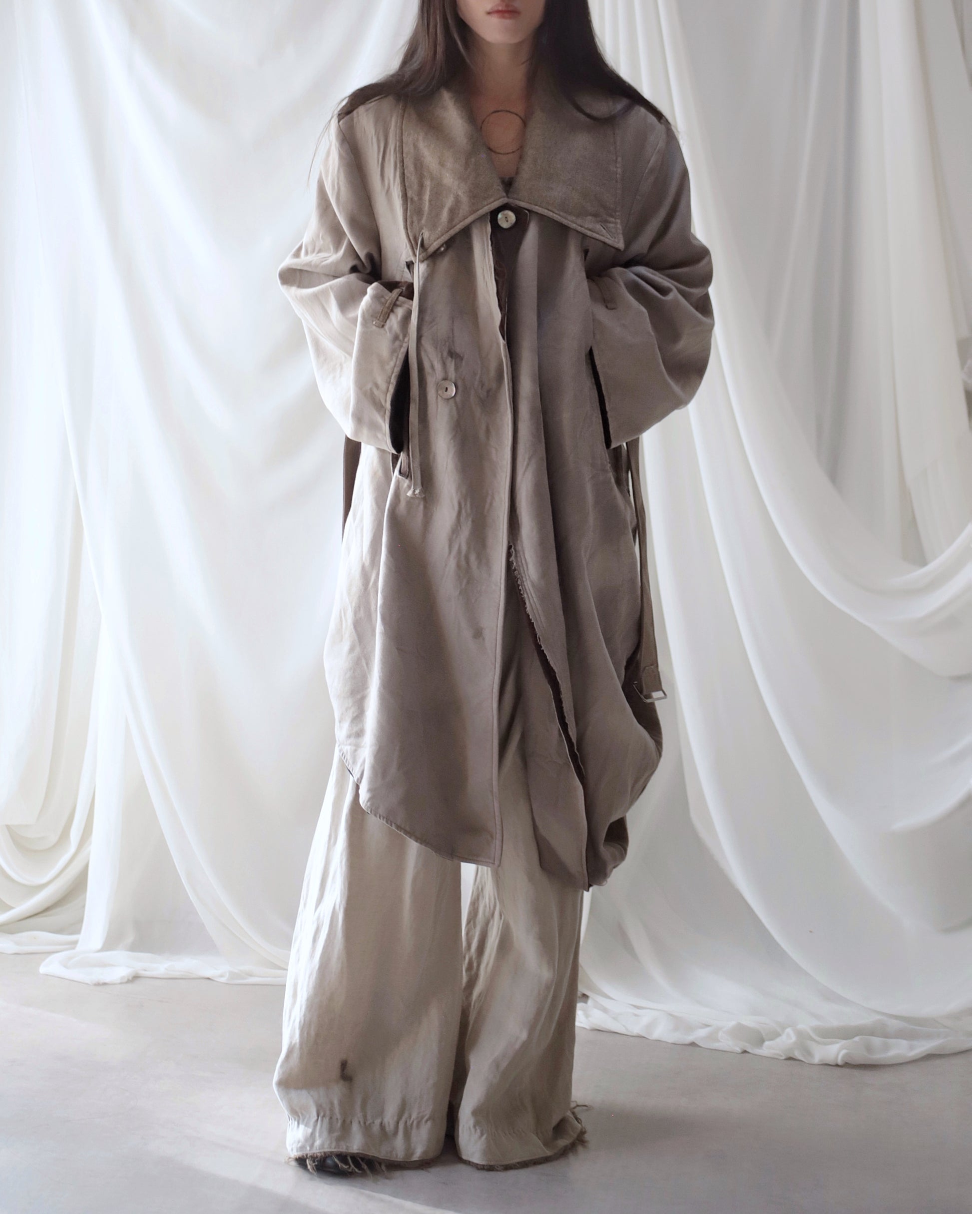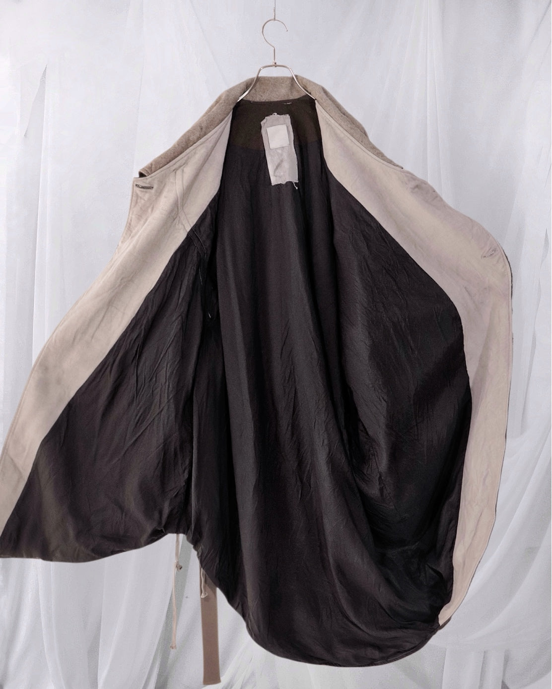 右襟元の紐を引っ張ると右裾脇にかけて絞られます。