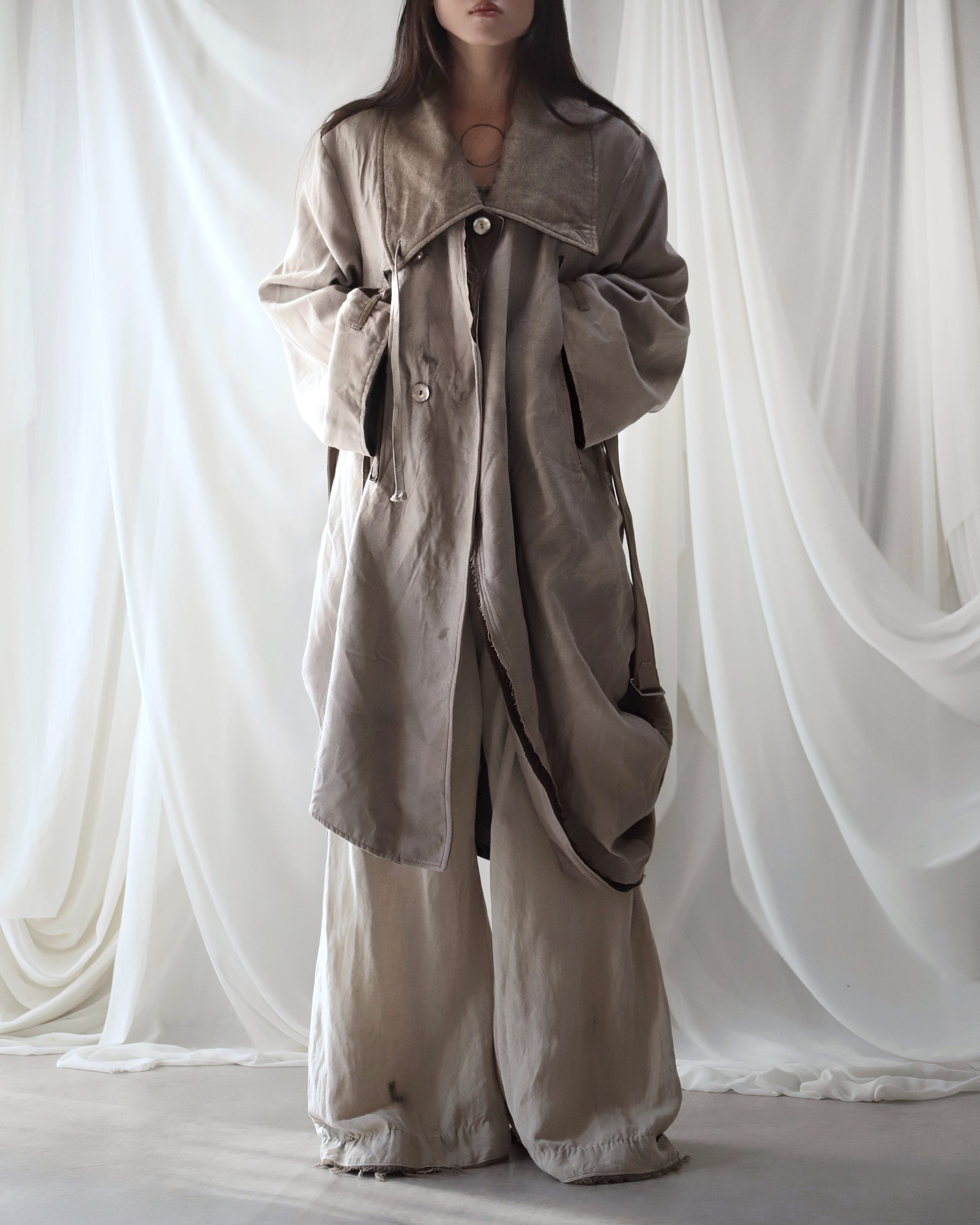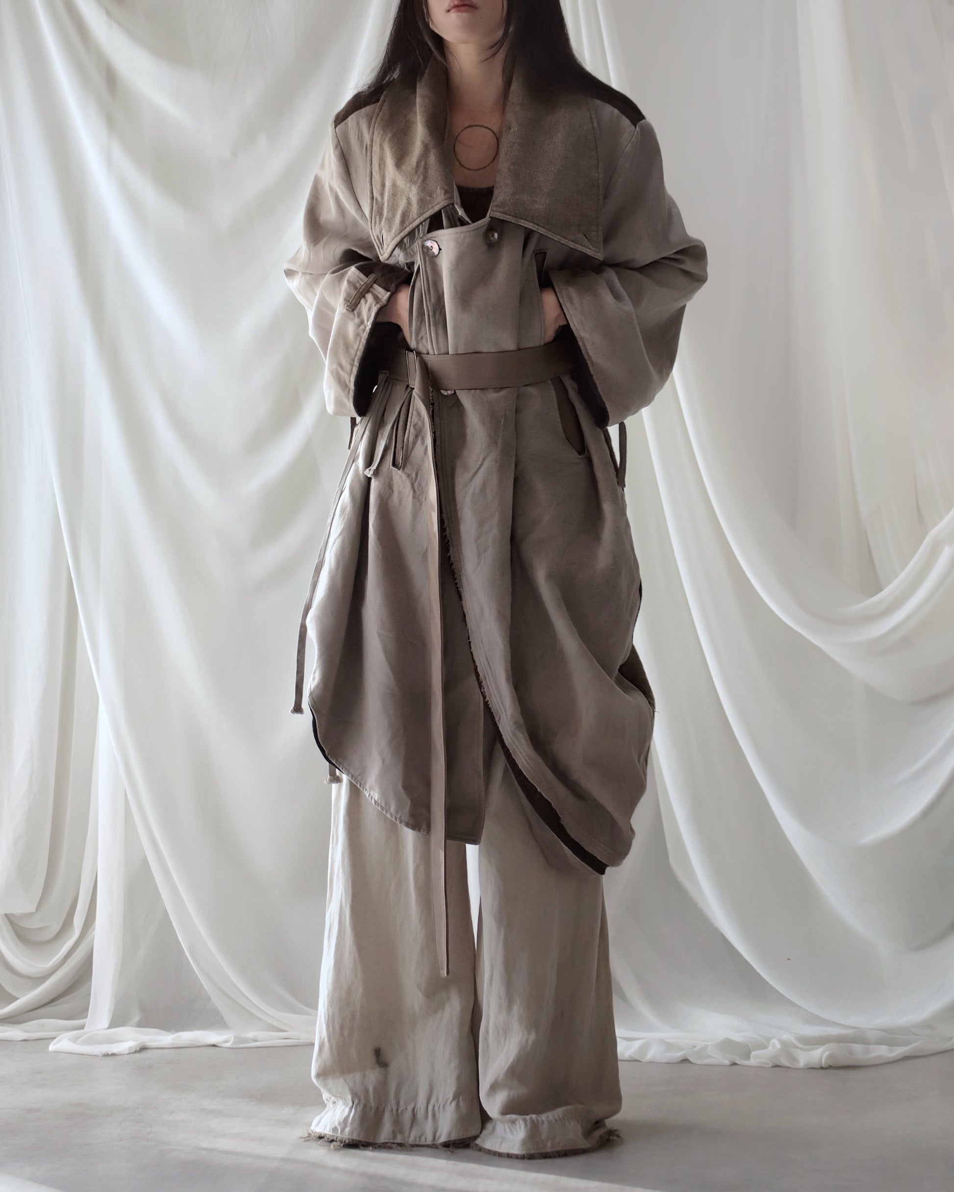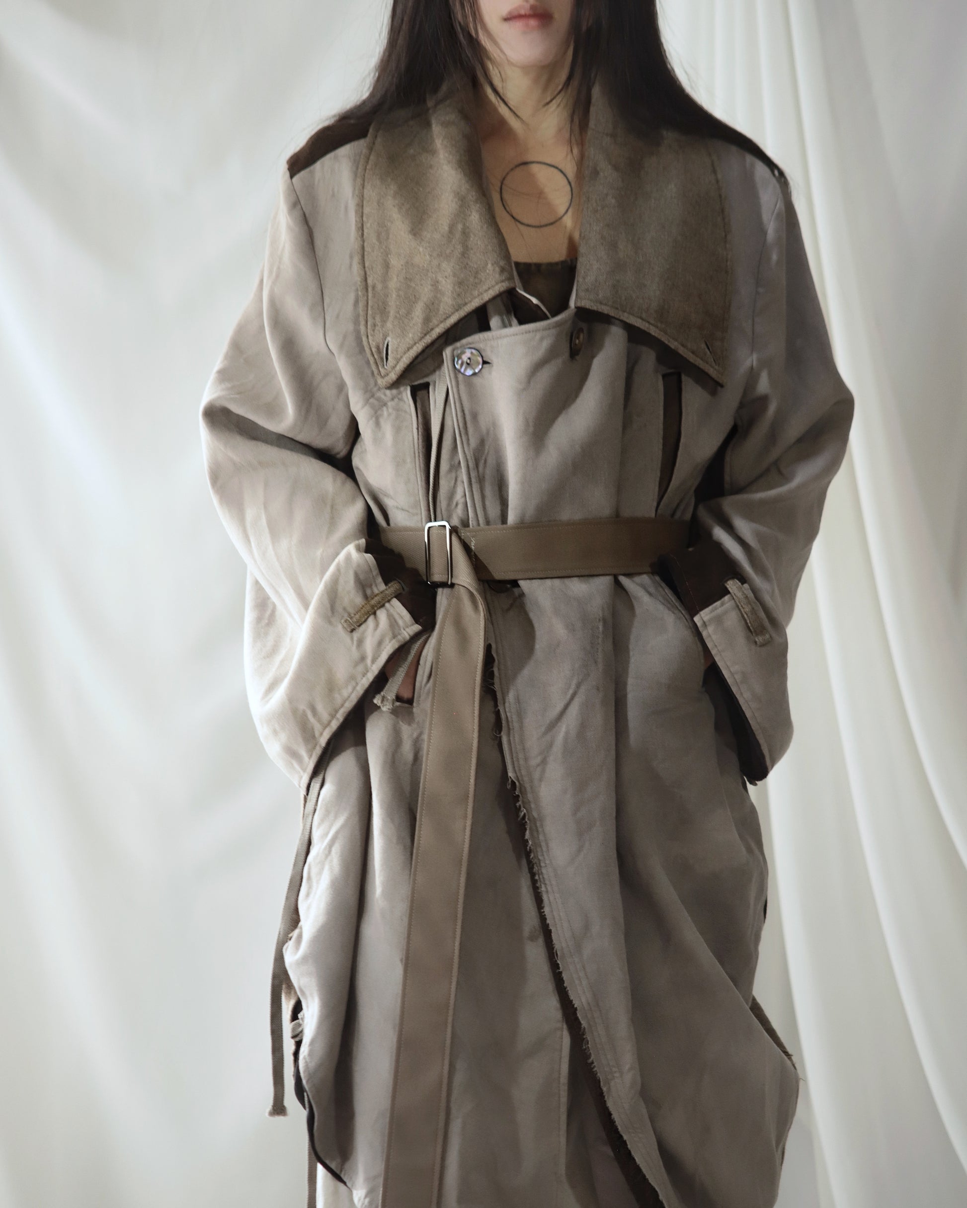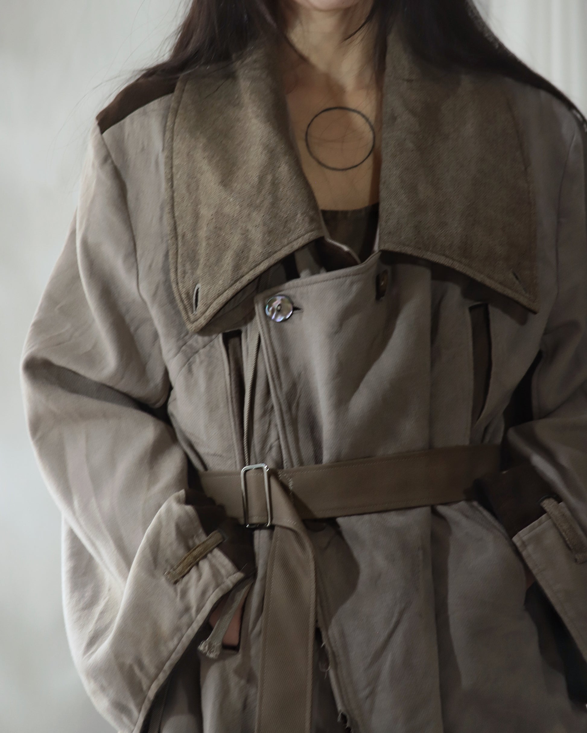 右襟元の紐を引っ張ると右裾脇にかけて絞られます。