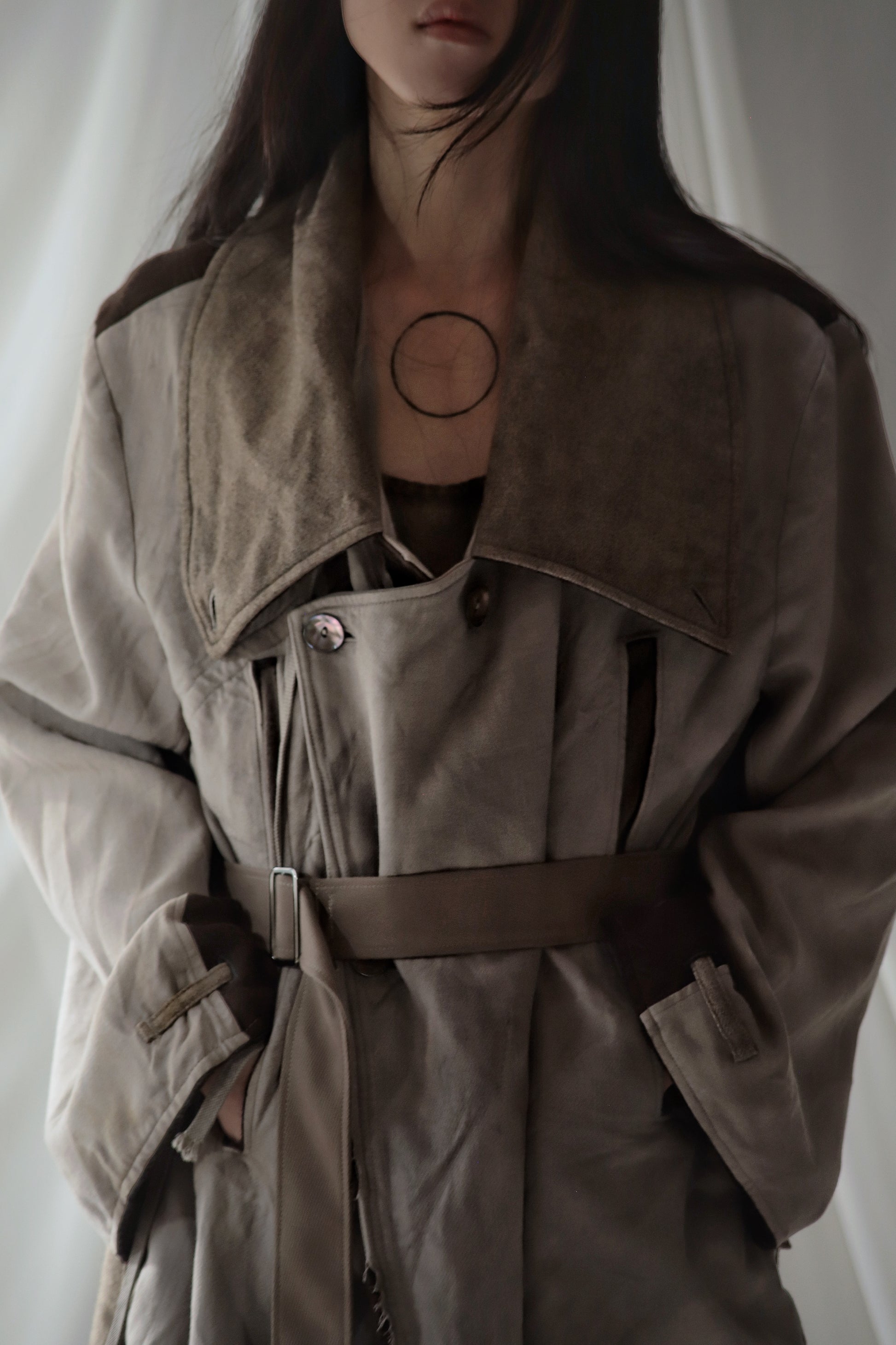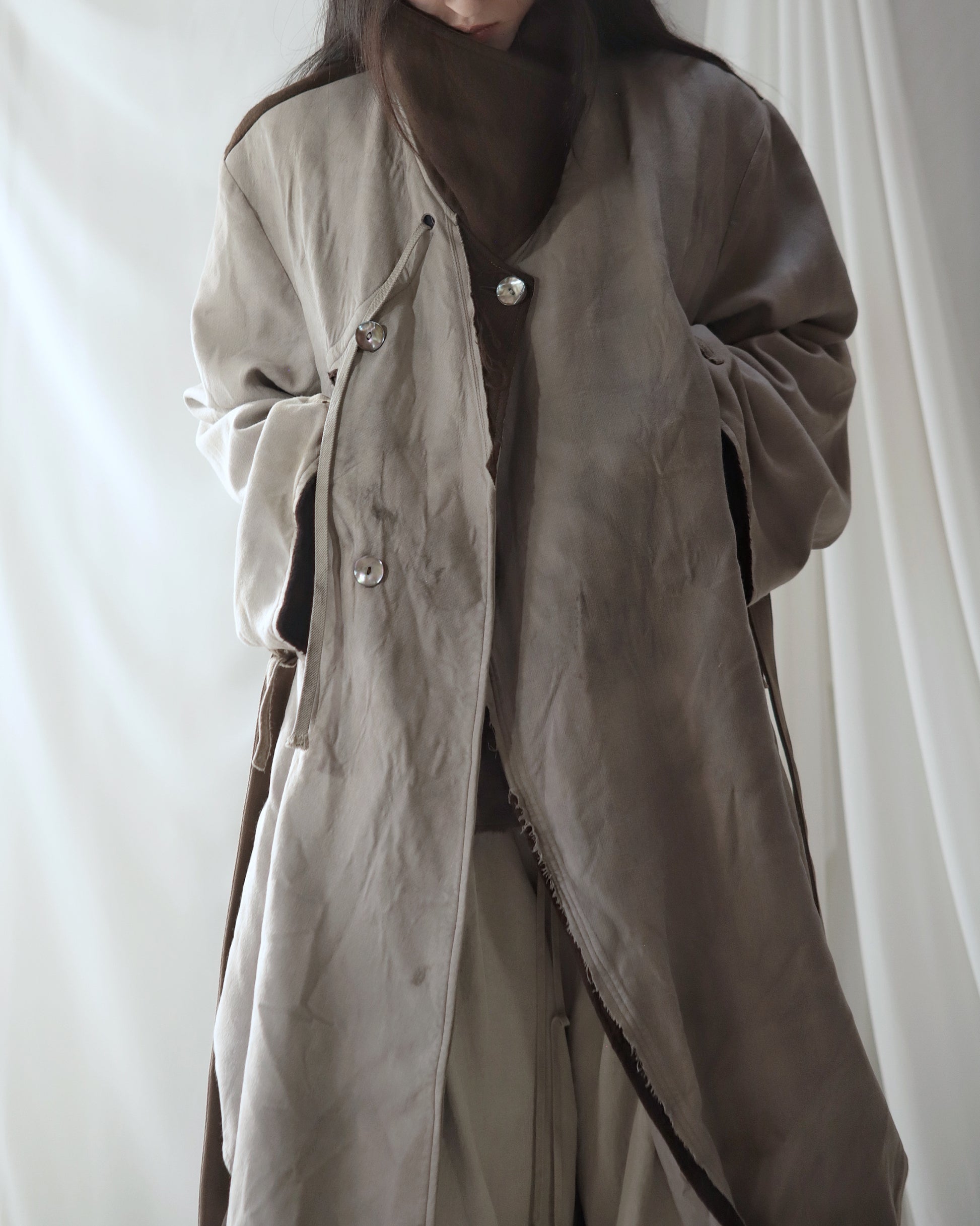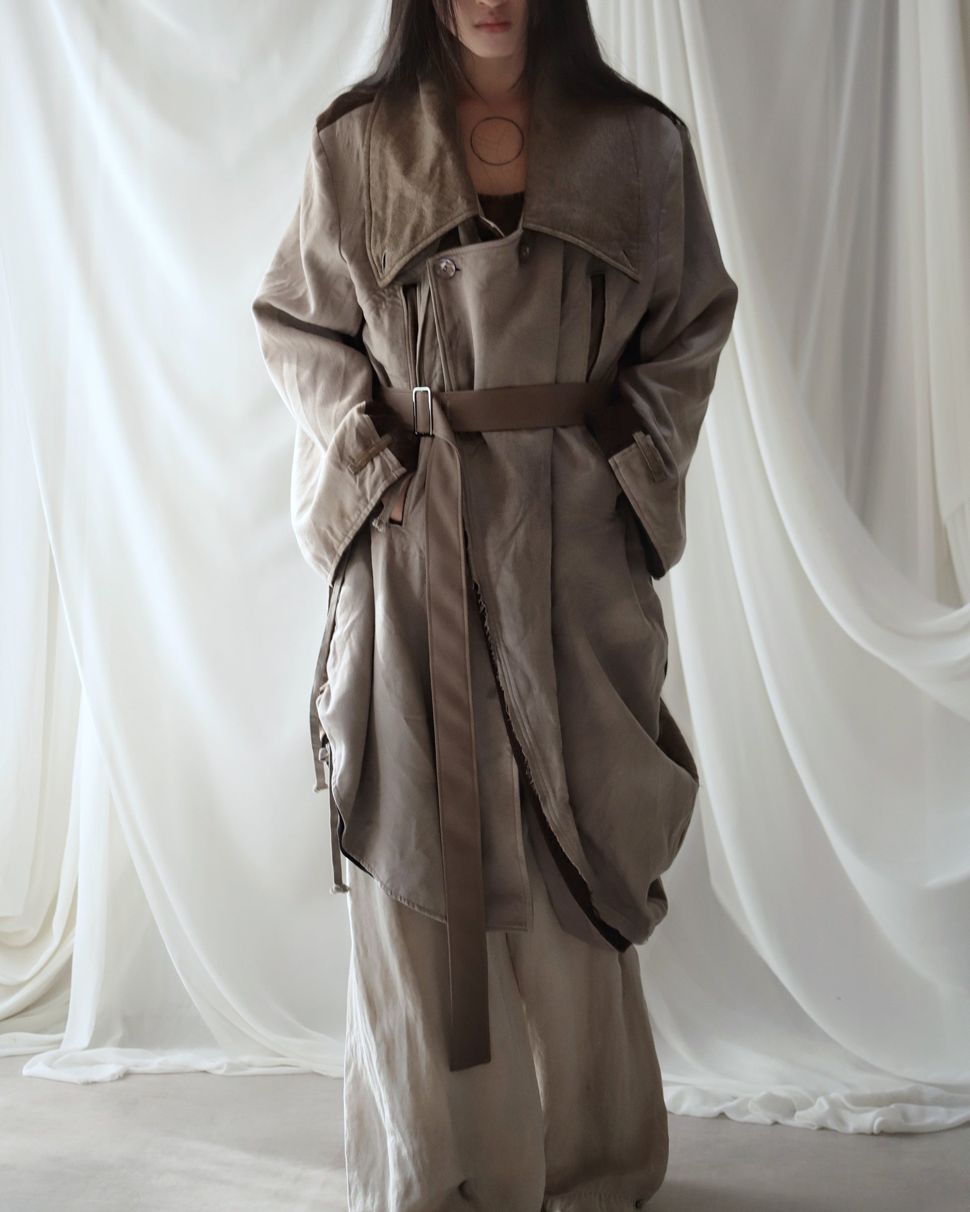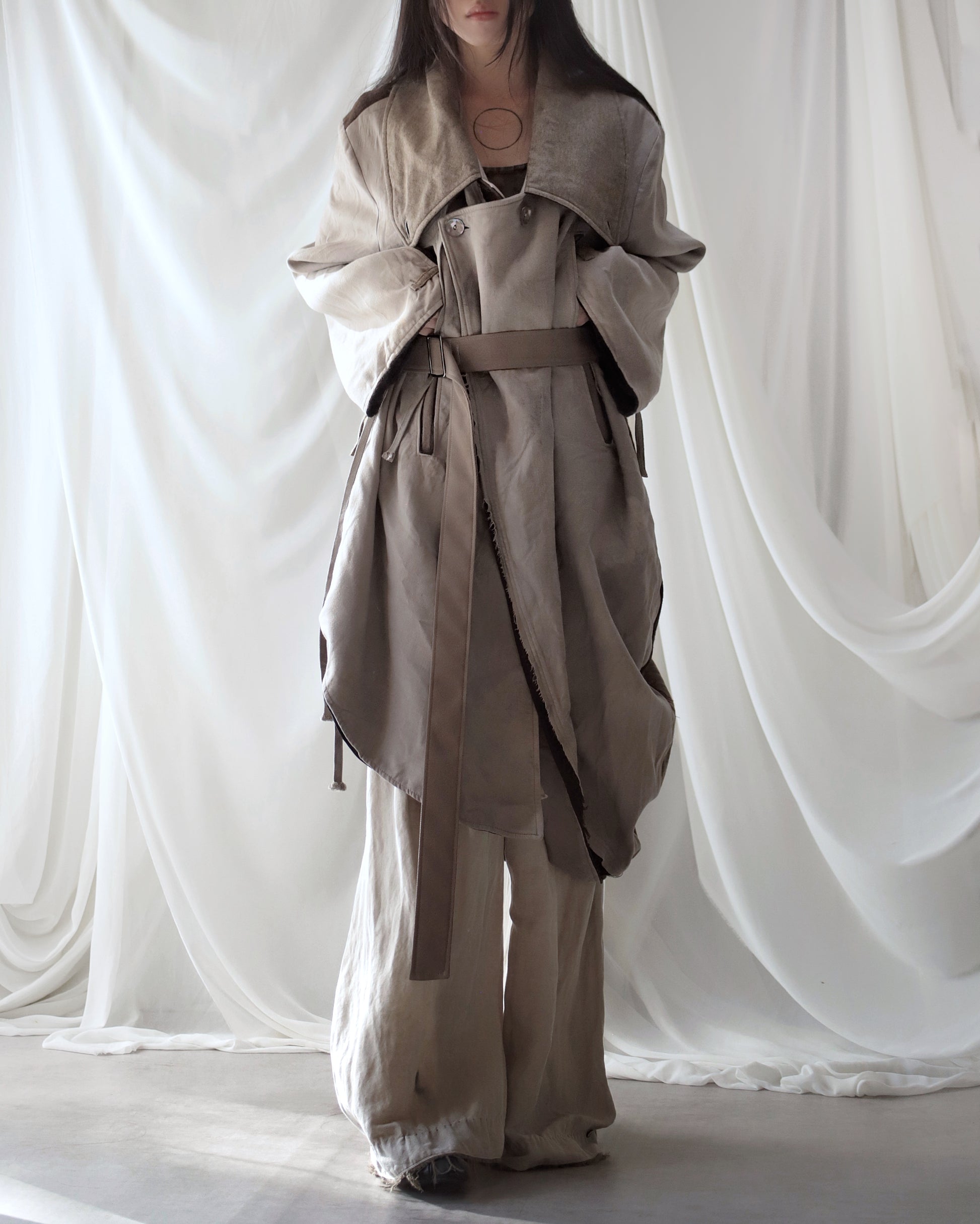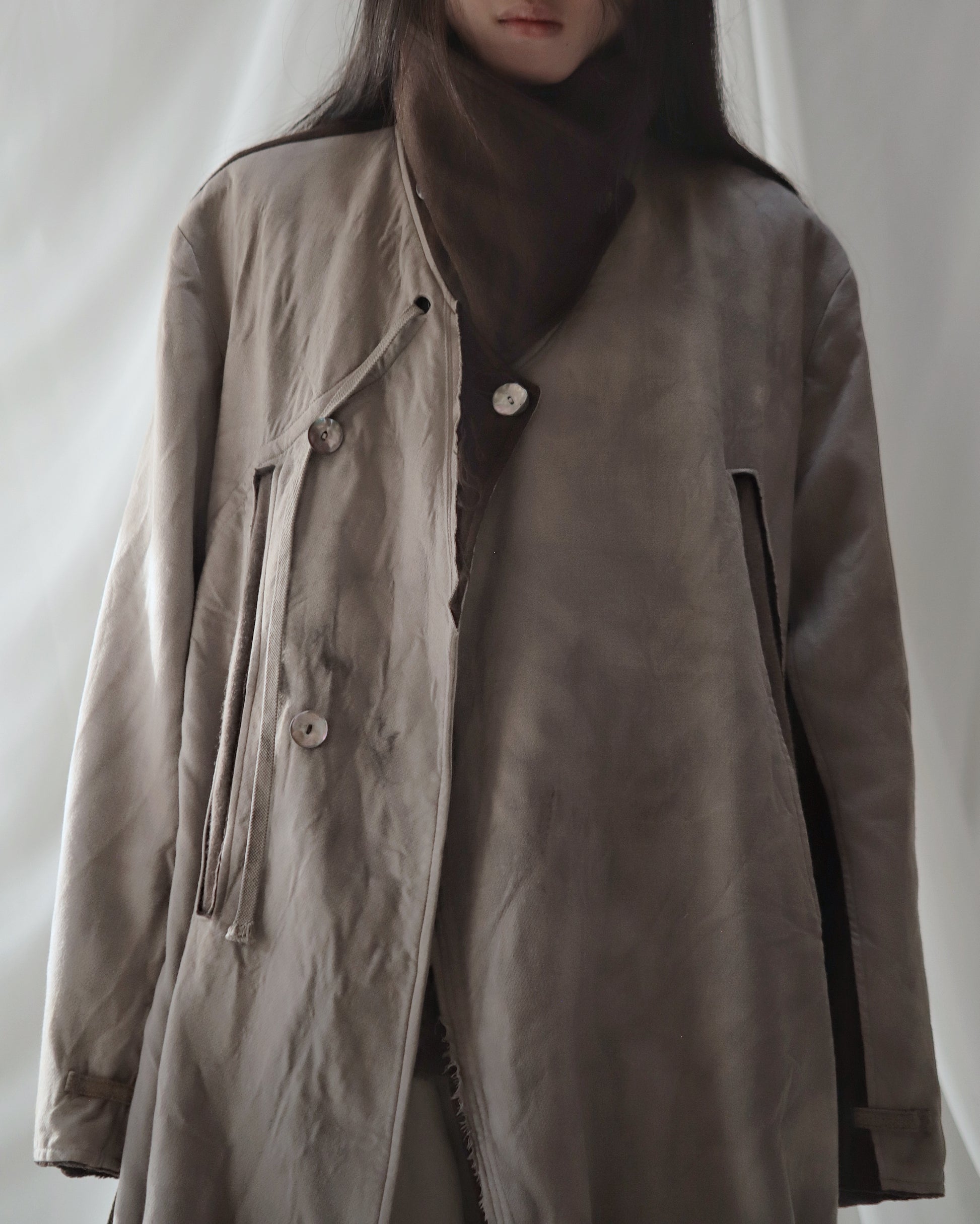 右襟元の紐を引っ張ると右裾脇にかけて絞られます。