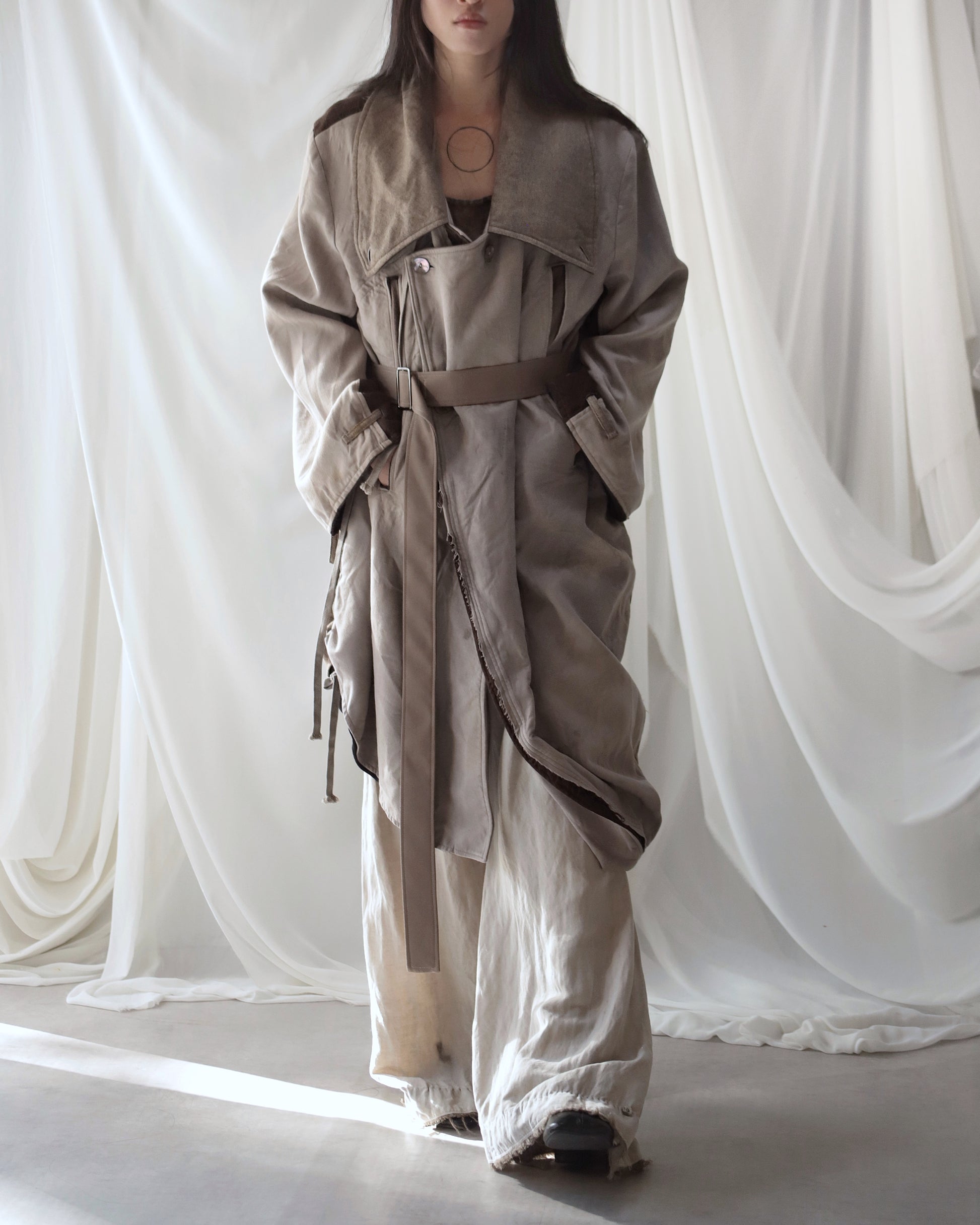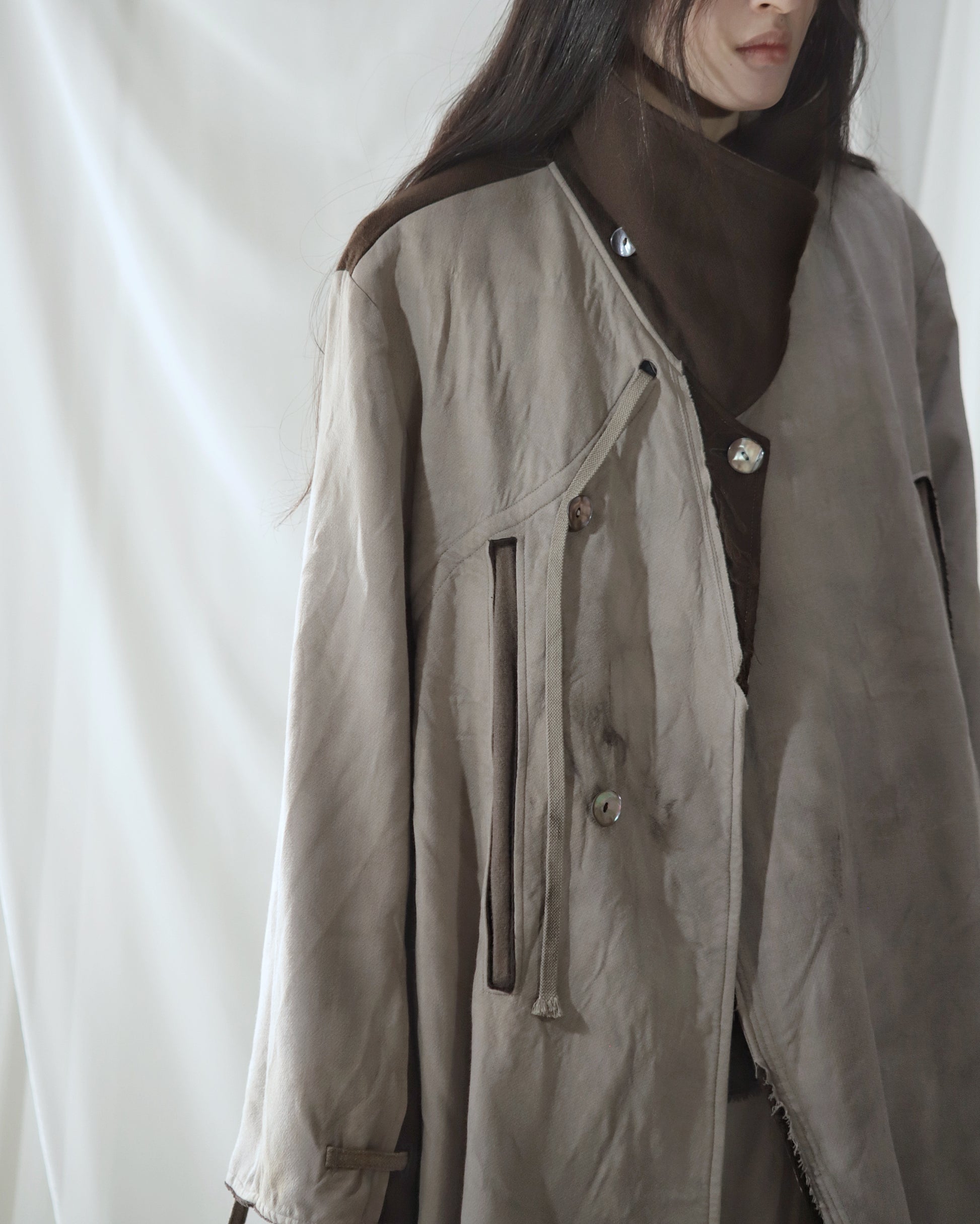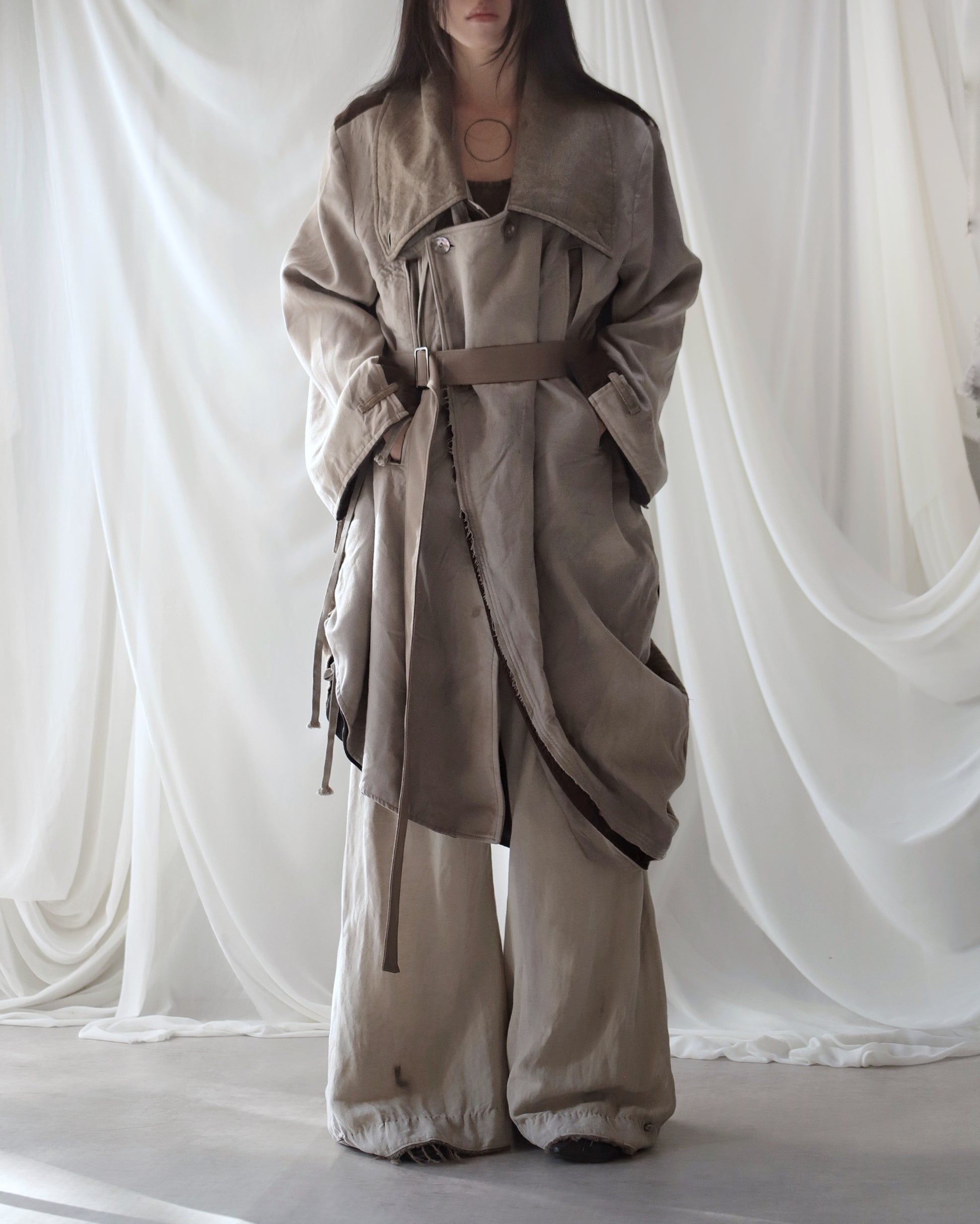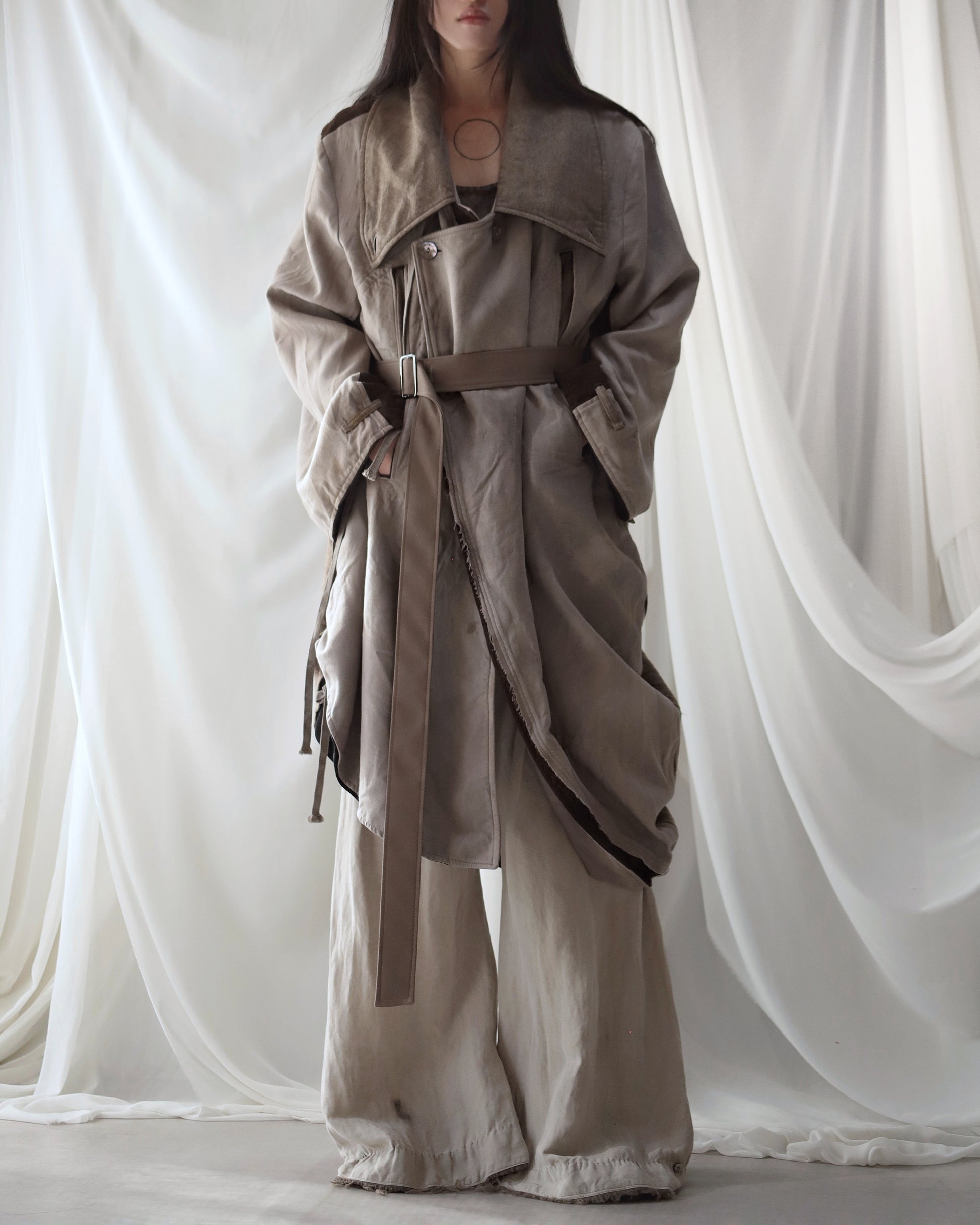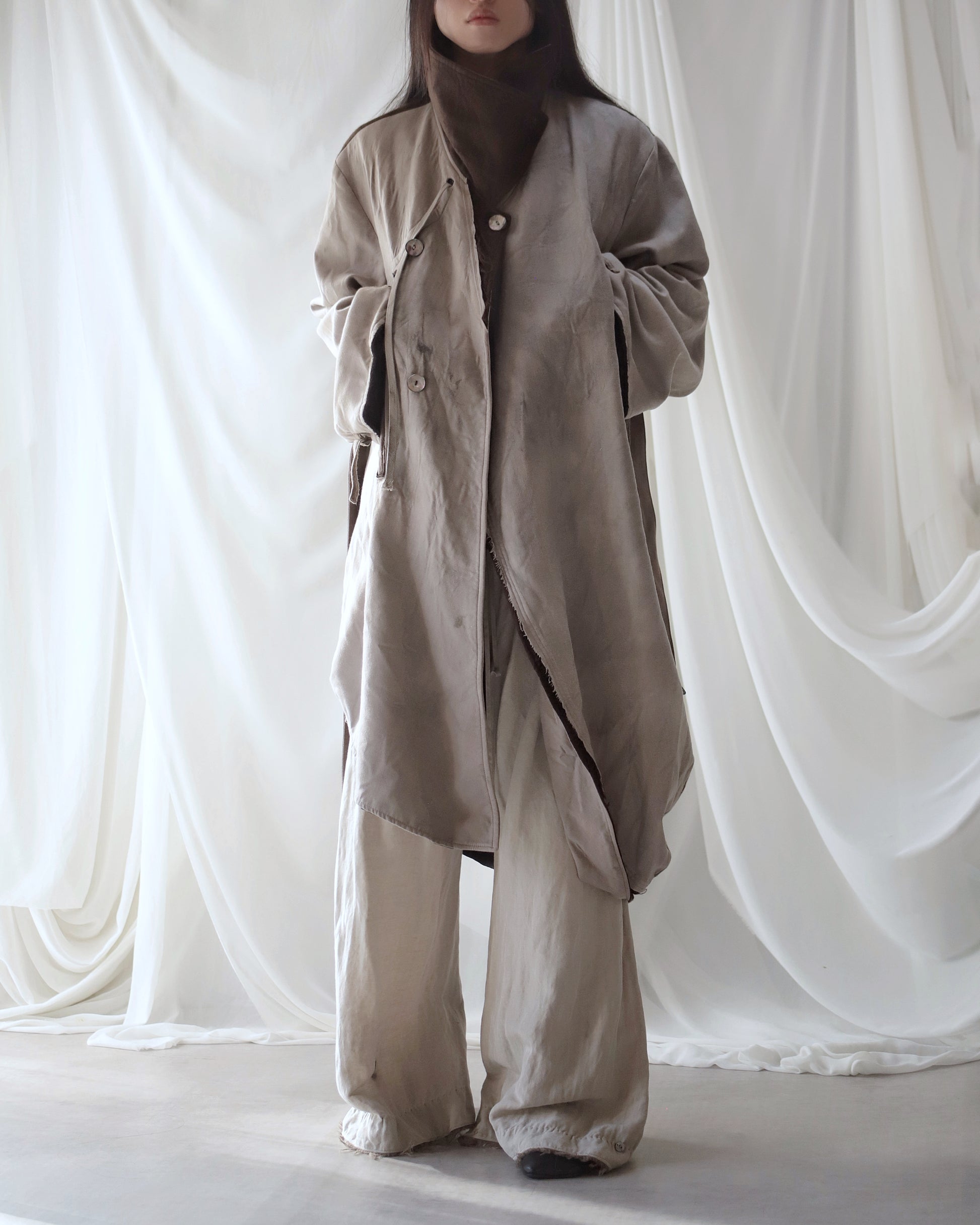 右襟元の紐を引っ張ると右裾脇にかけて絞られます。